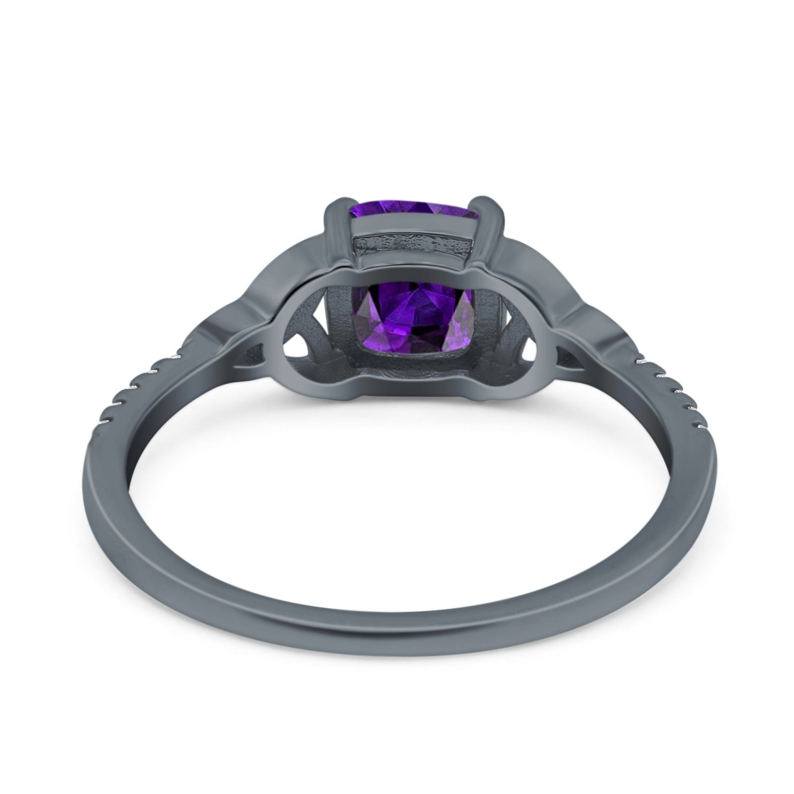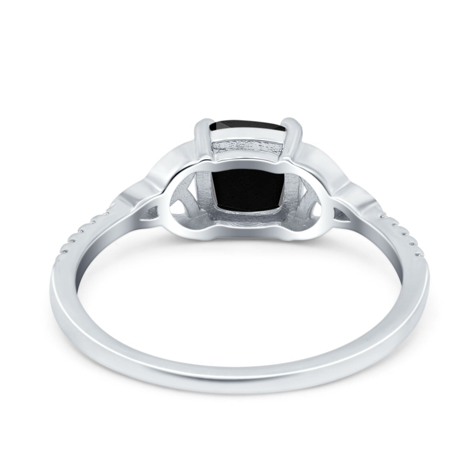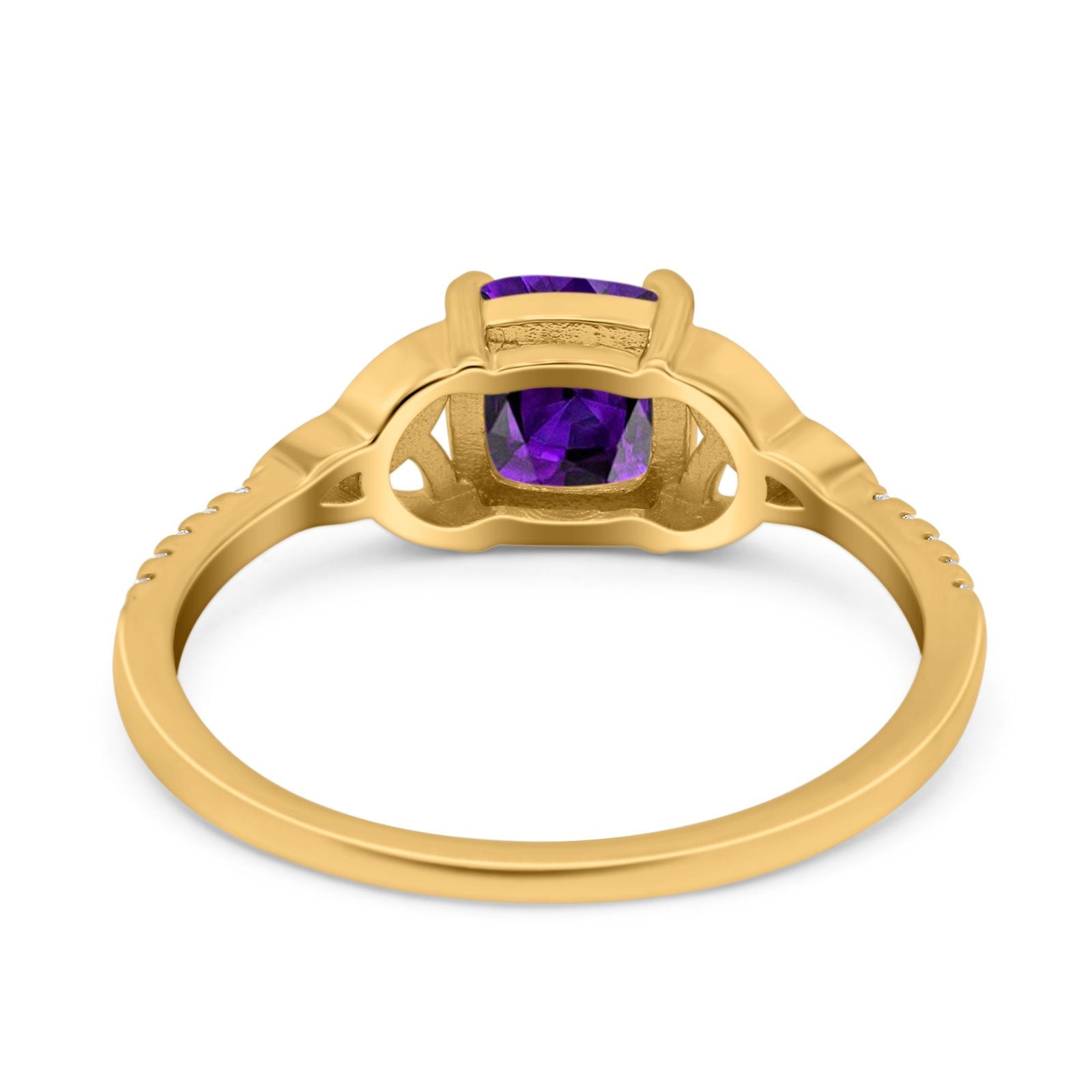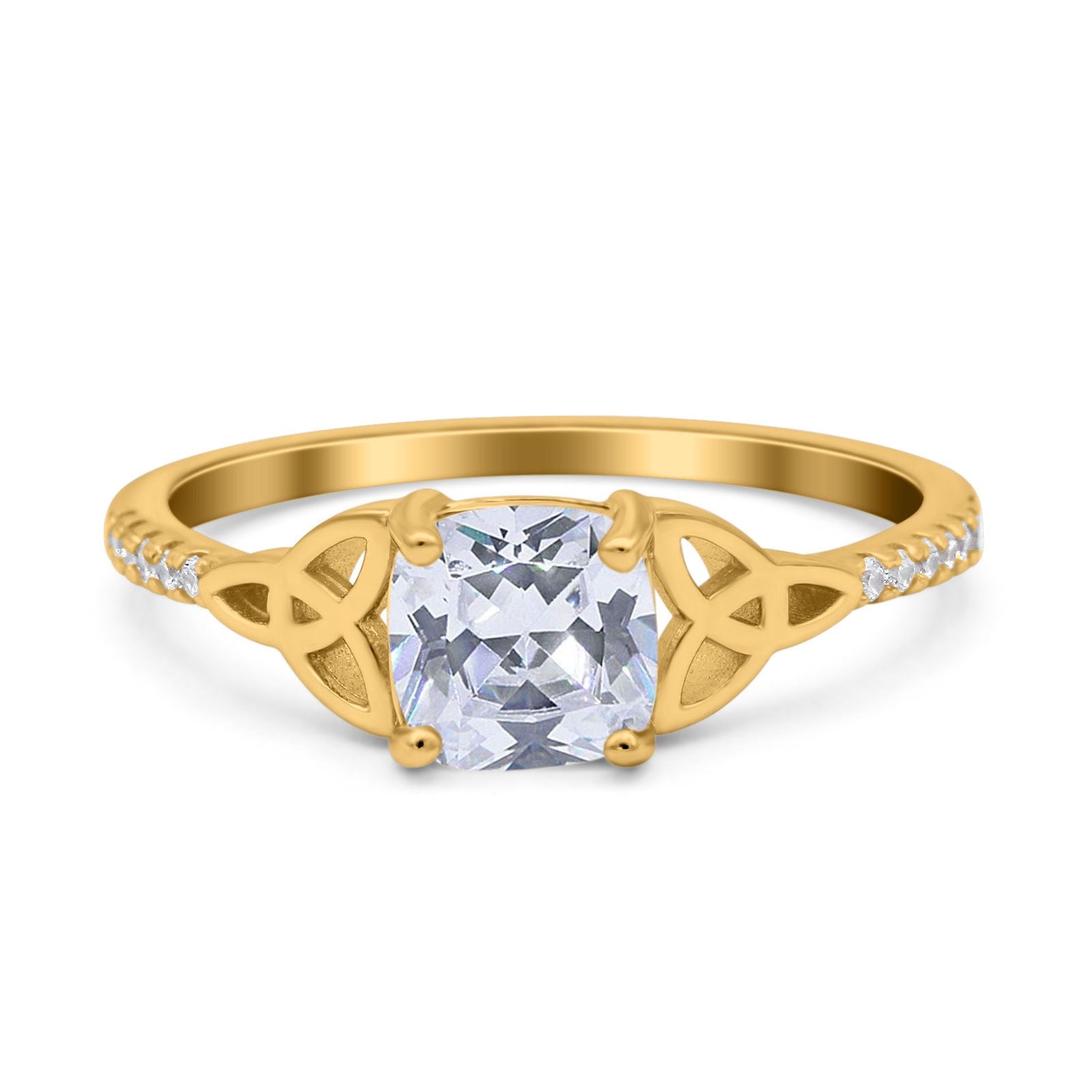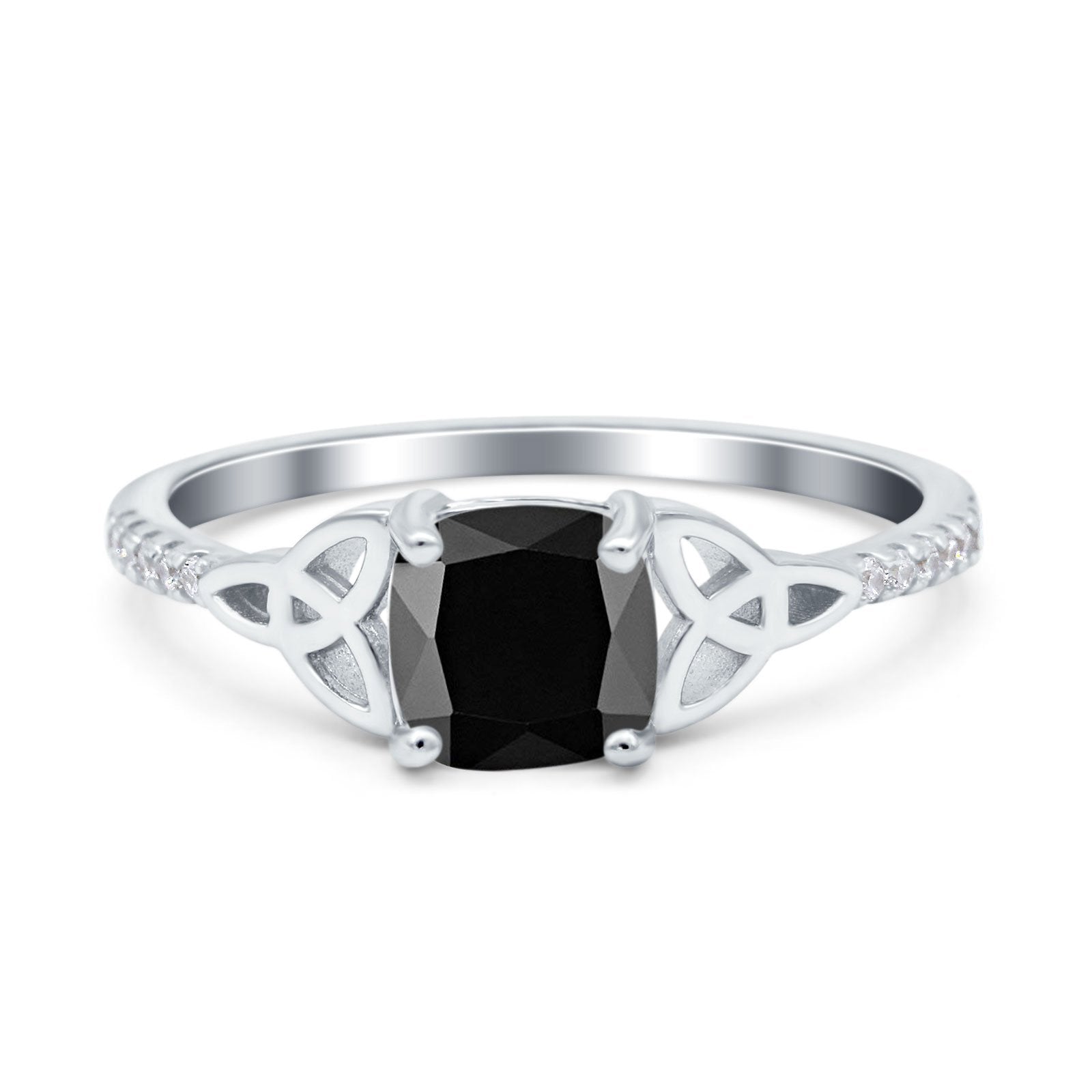 Cushion Cut Celtic Art Deco Wedding Engagement Bridal Ring Round Simulated Cubic Zirconia 925 Sterling Silver