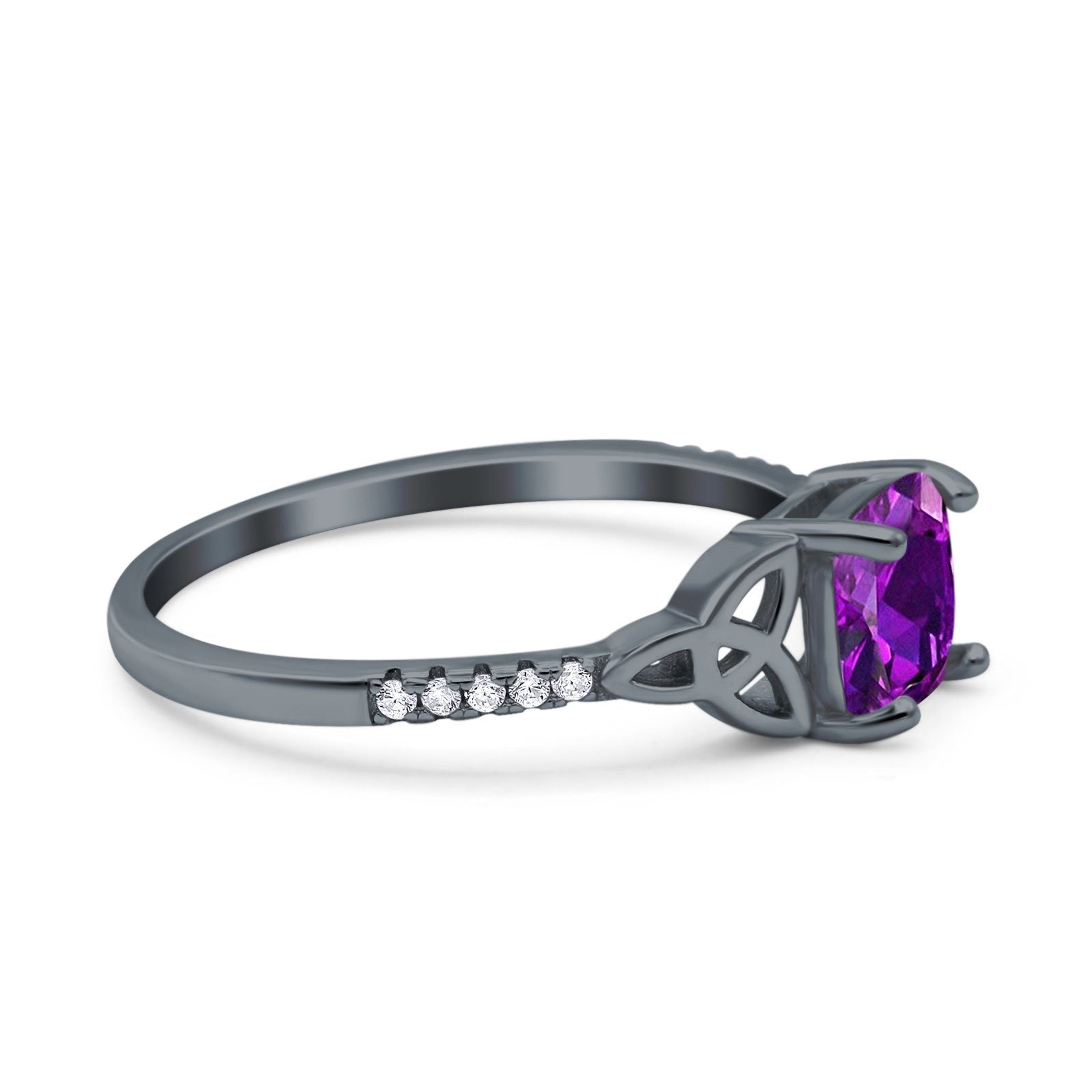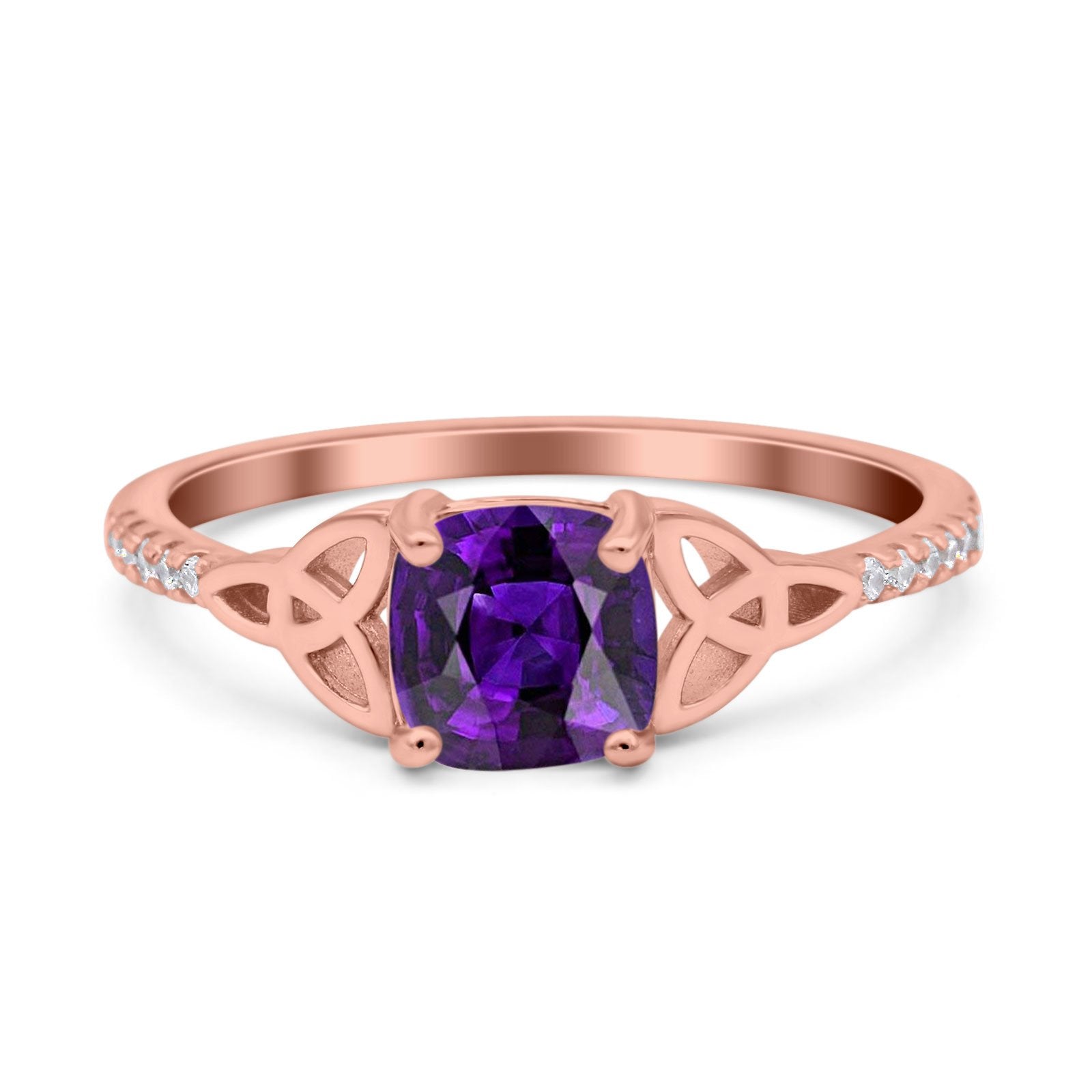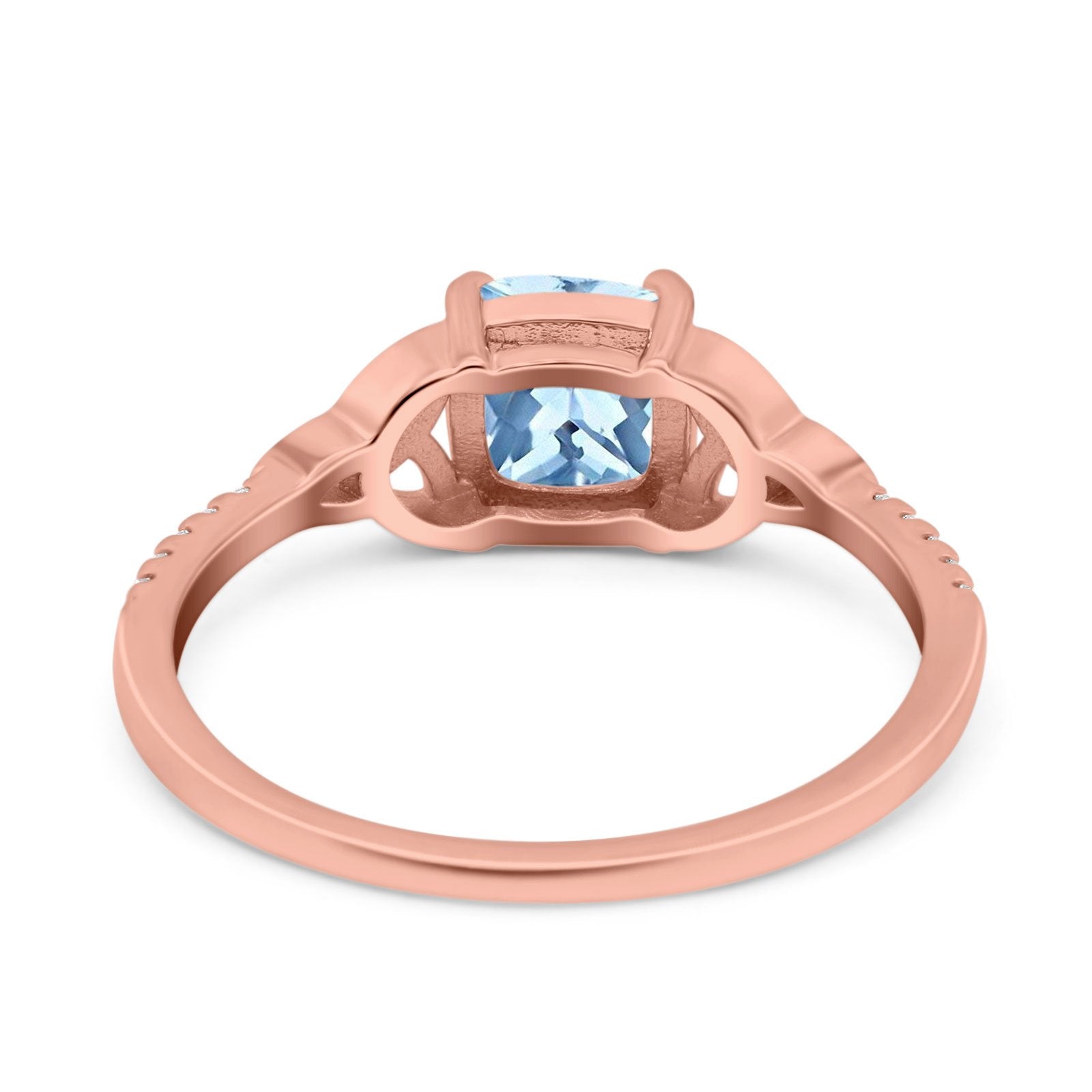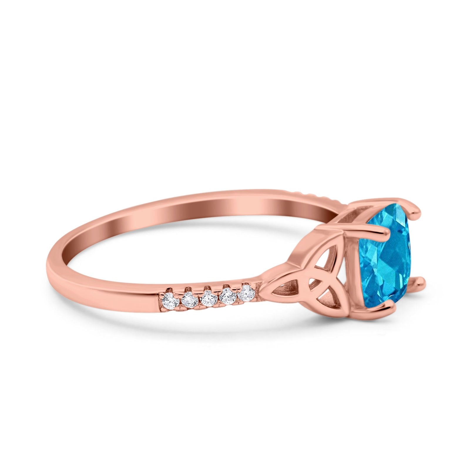 Cushion Cut Celtic Art Deco Wedding Engagement Bridal Ring Round Simulated Cubic Zirconia 925 Sterling Silver