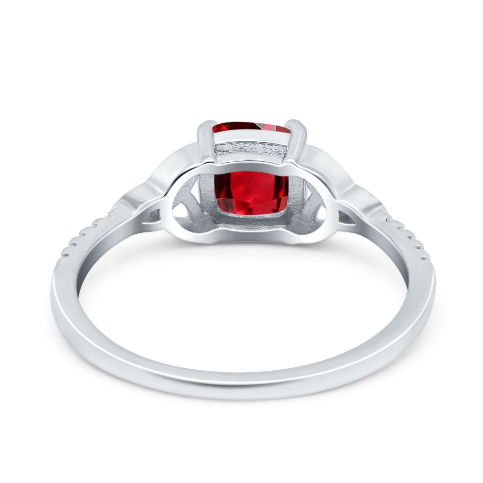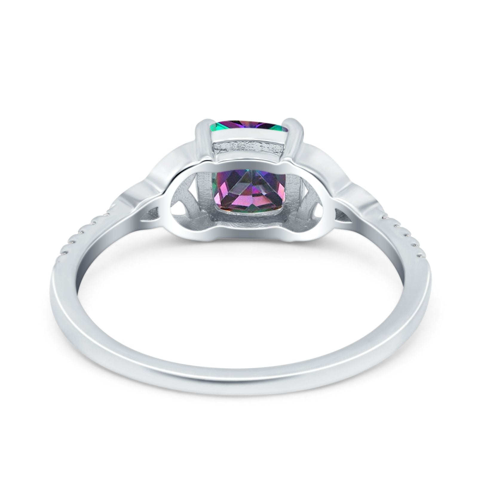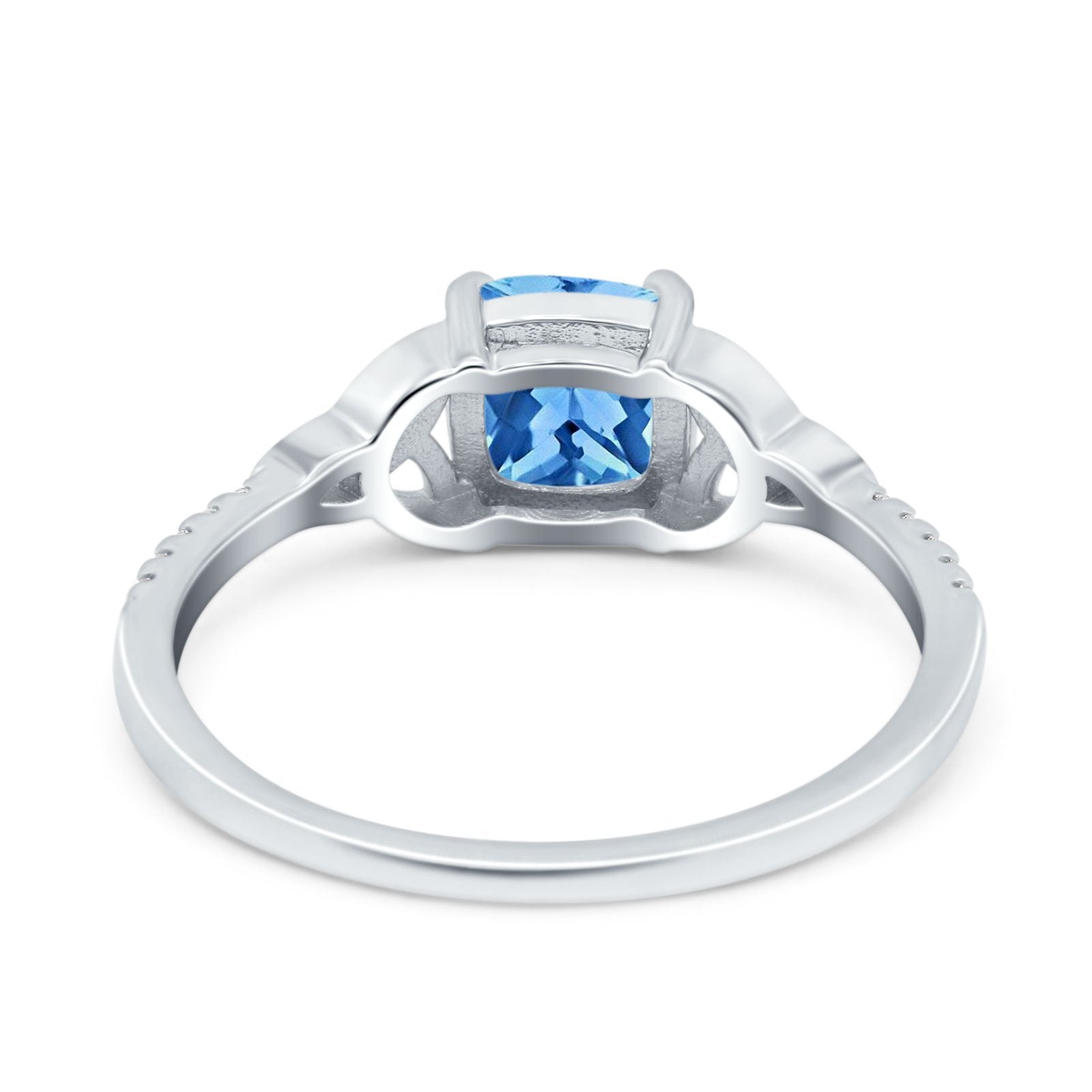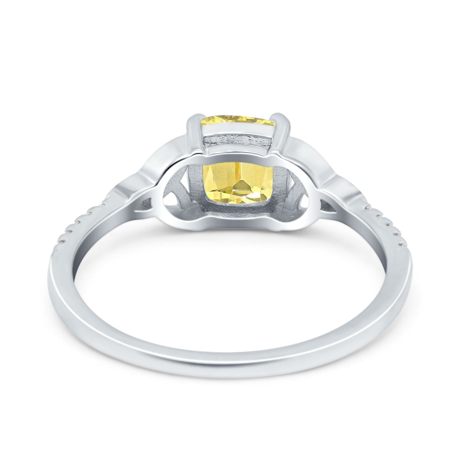 Cushion Cut Celtic Art Deco Wedding Engagement Bridal Ring Round Simulated Cubic Zirconia 925 Sterling Silver