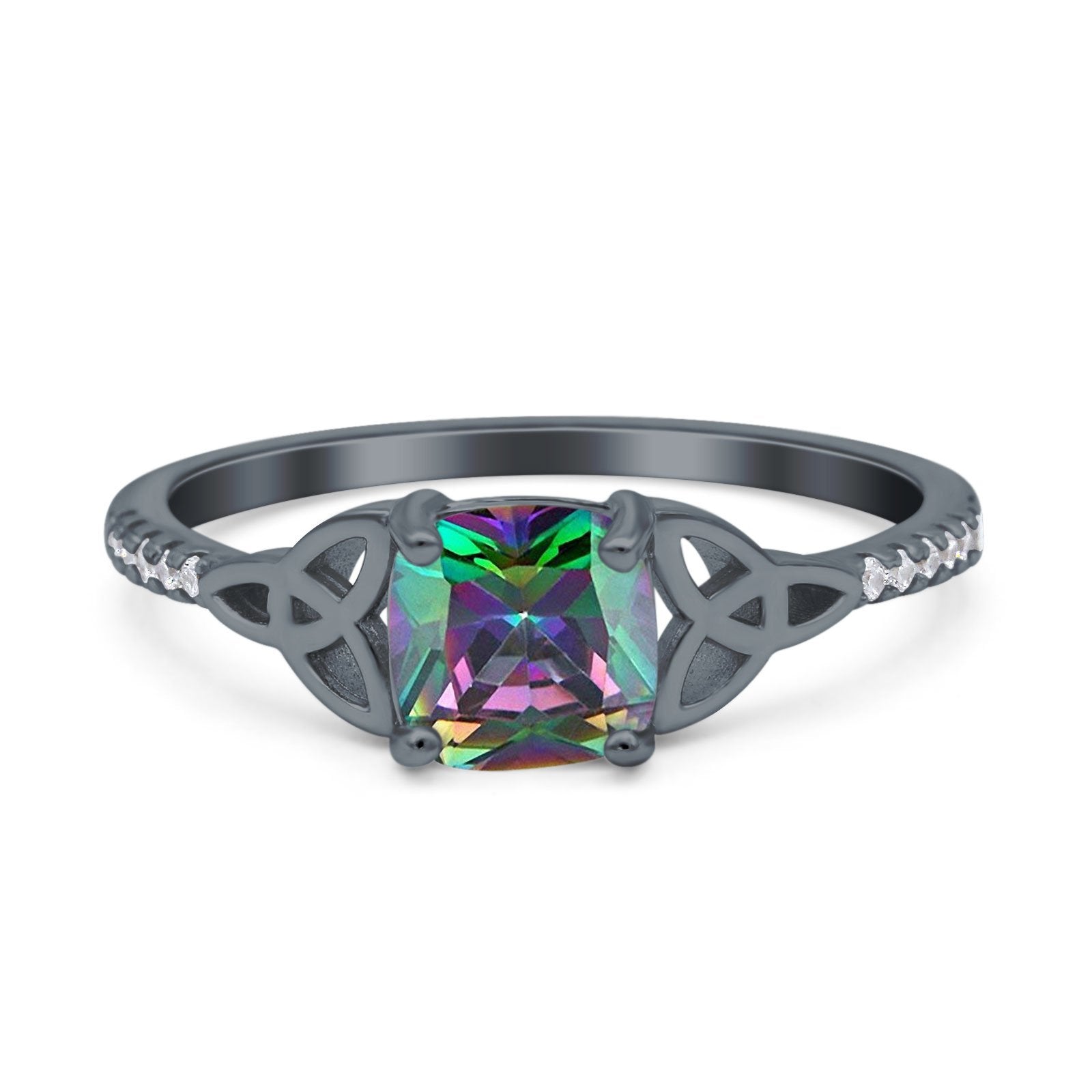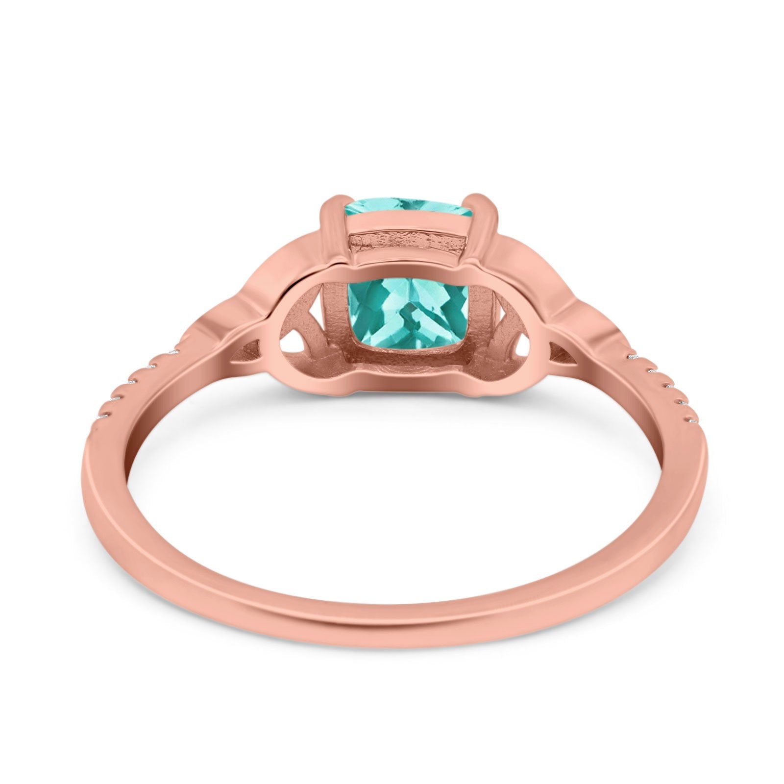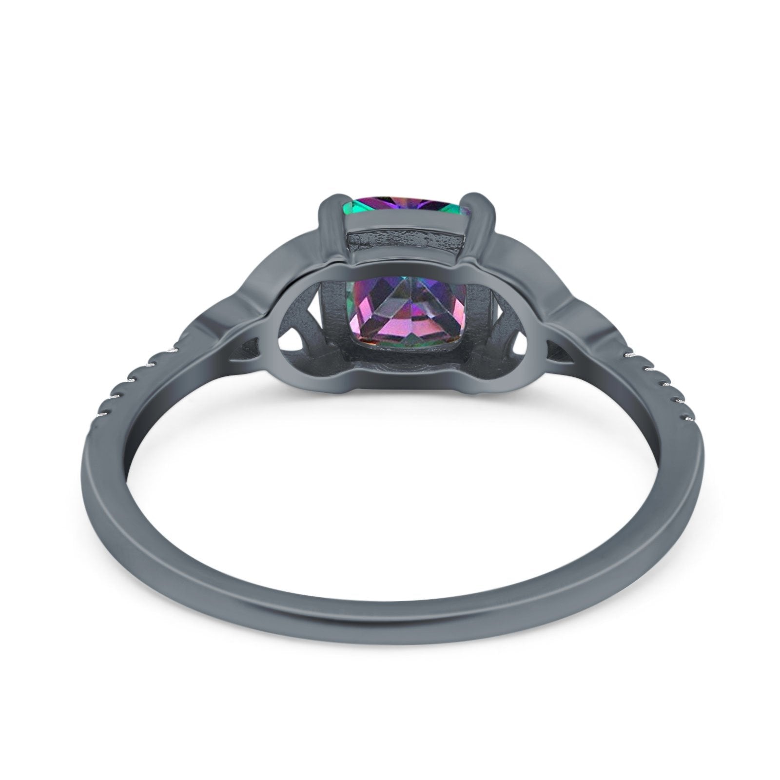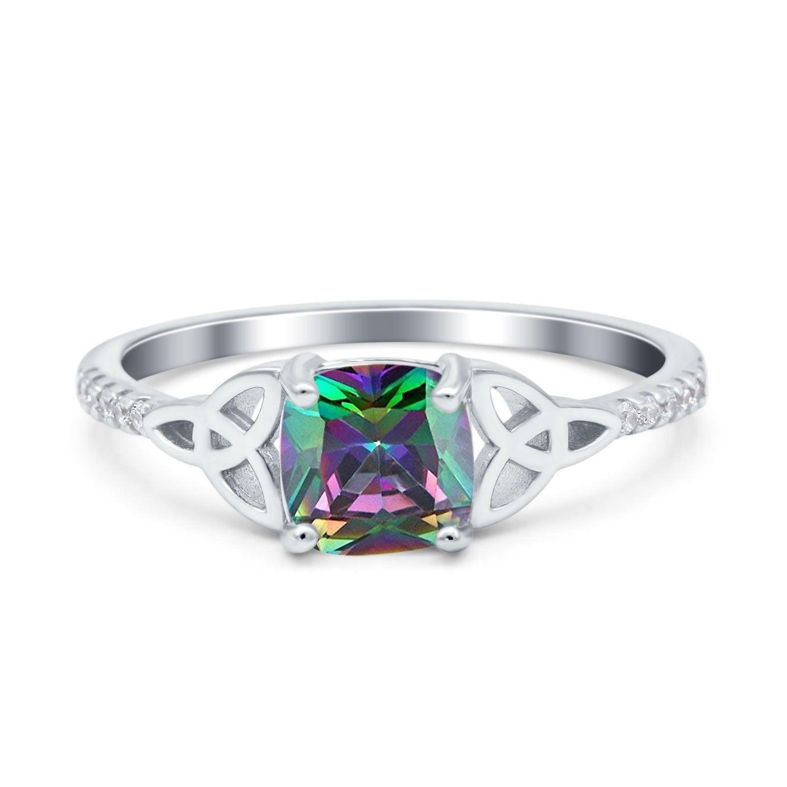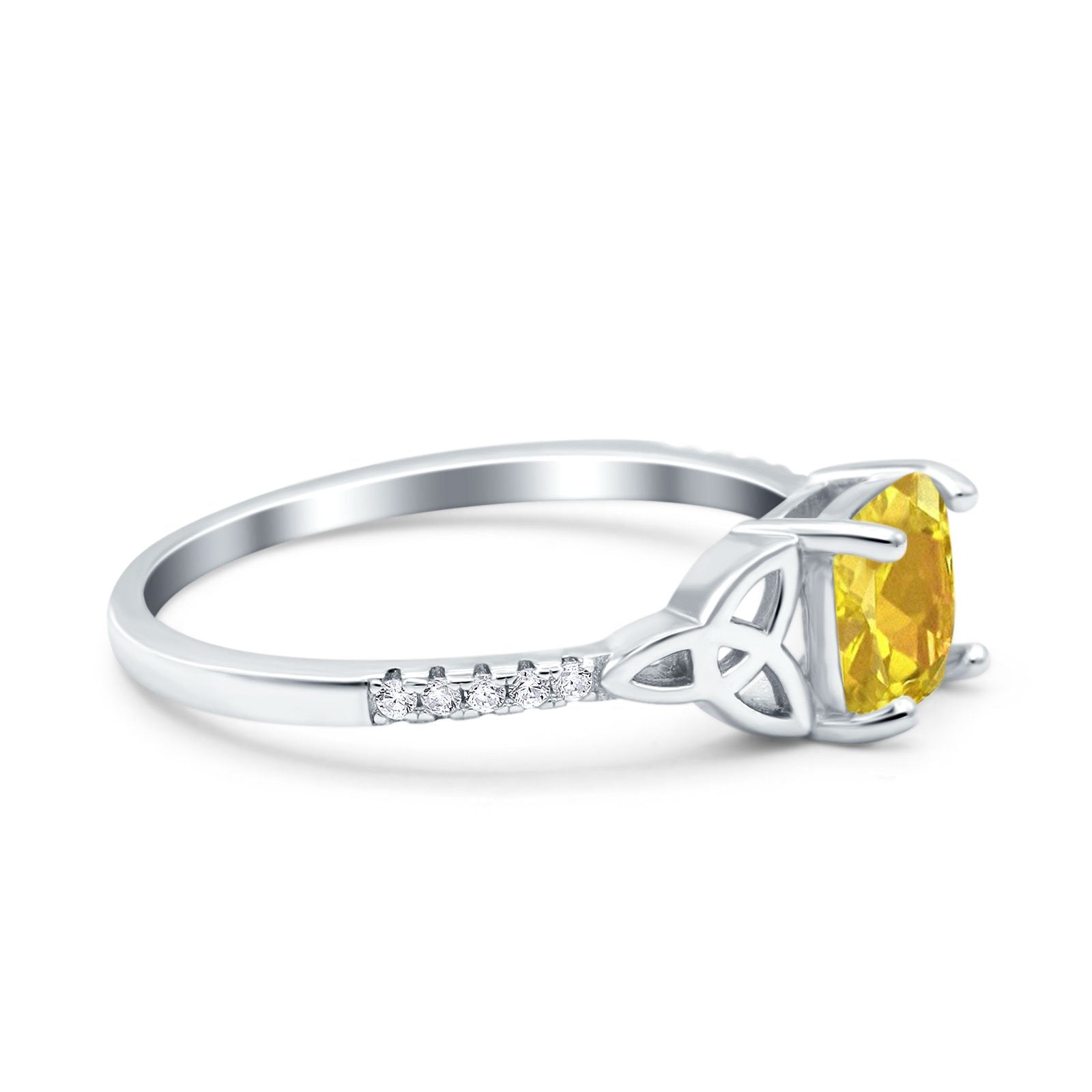 Cushion Cut Celtic Art Deco Wedding Engagement Bridal Ring Round Simulated Cubic Zirconia 925 Sterling Silver