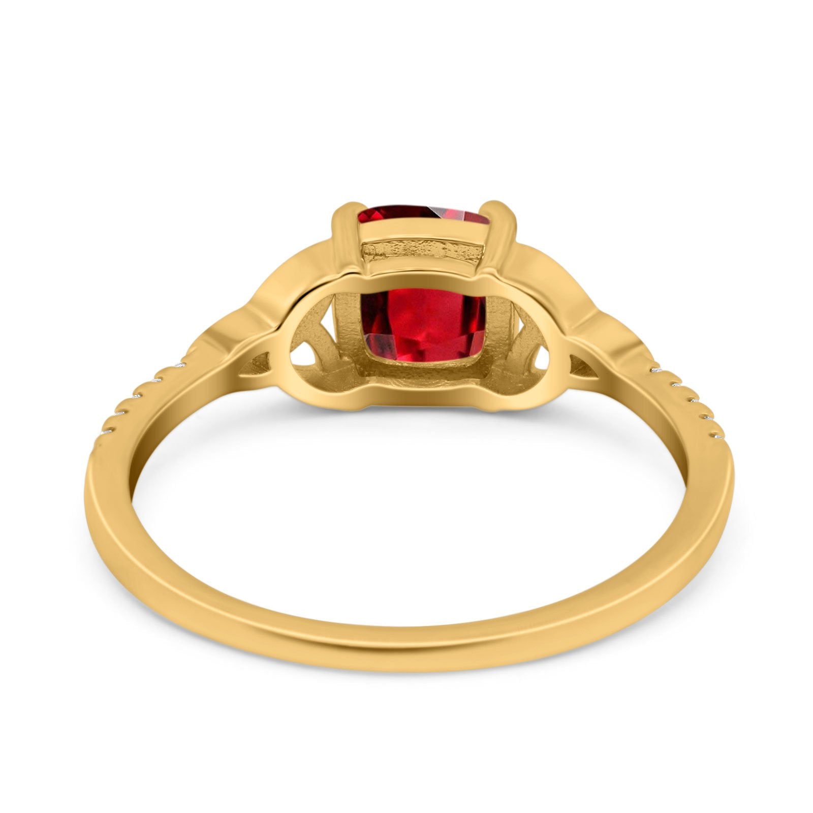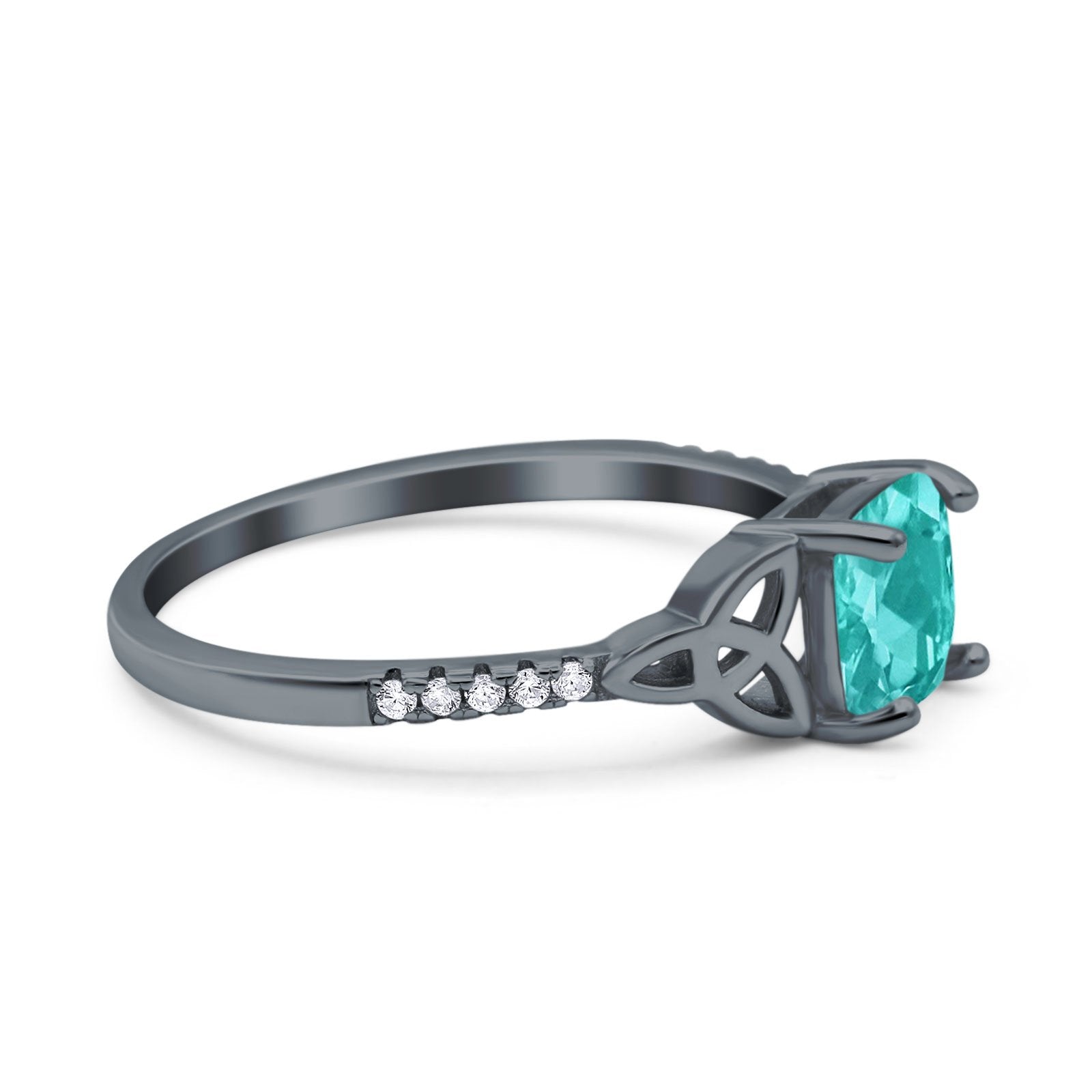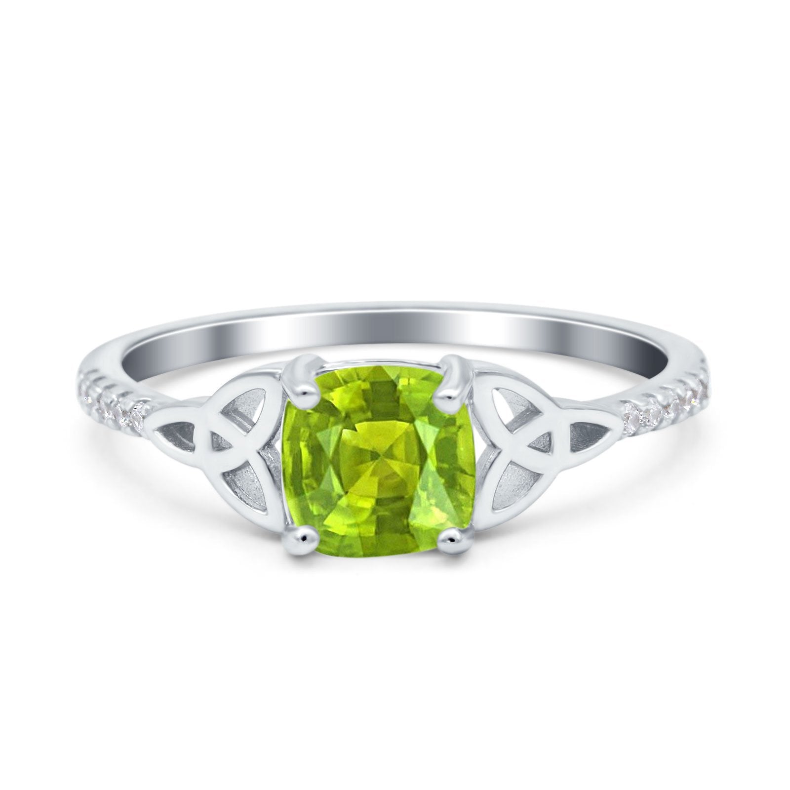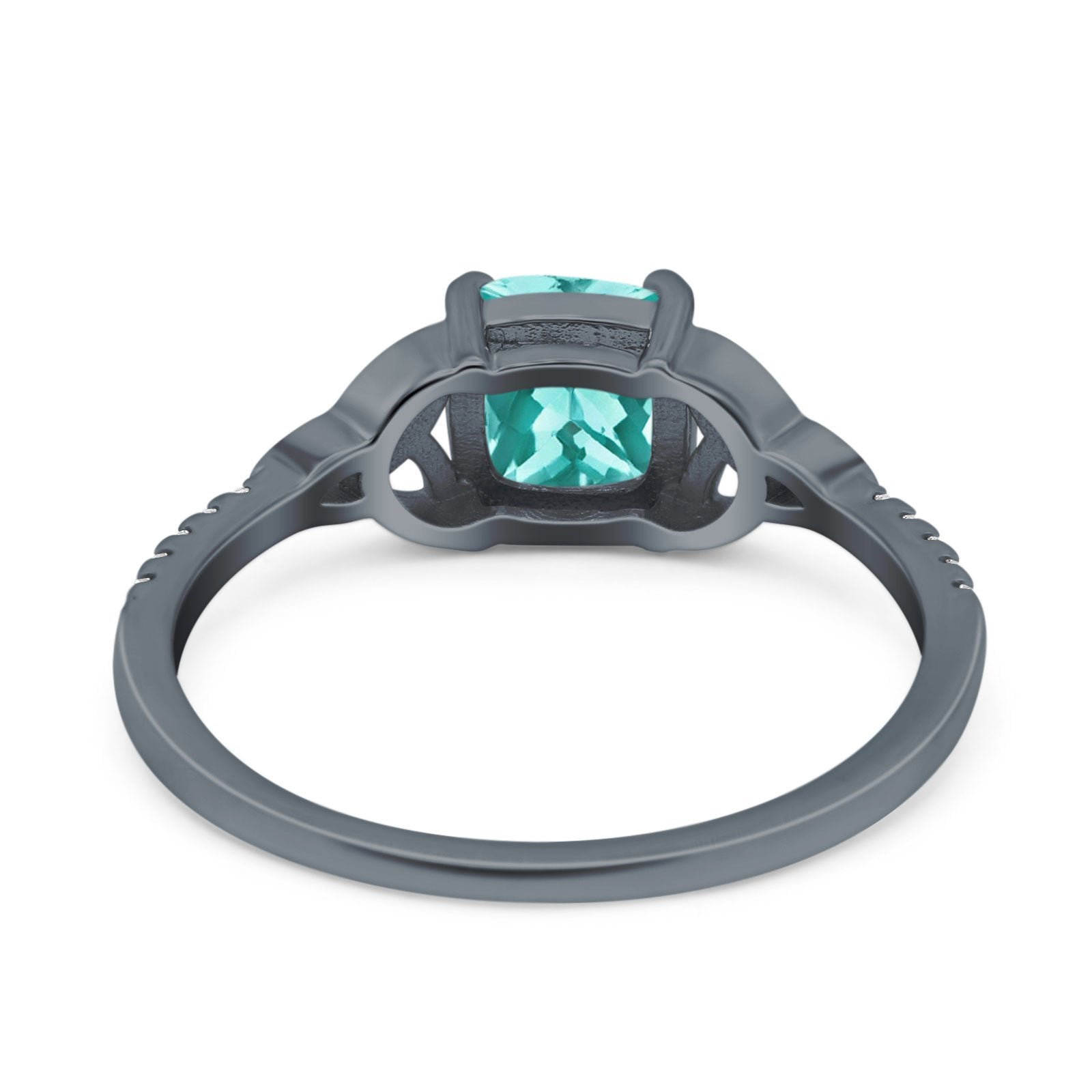 Cushion Cut Celtic Art Deco Wedding Engagement Bridal Ring Round Simulated Cubic Zirconia 925 Sterling Silver