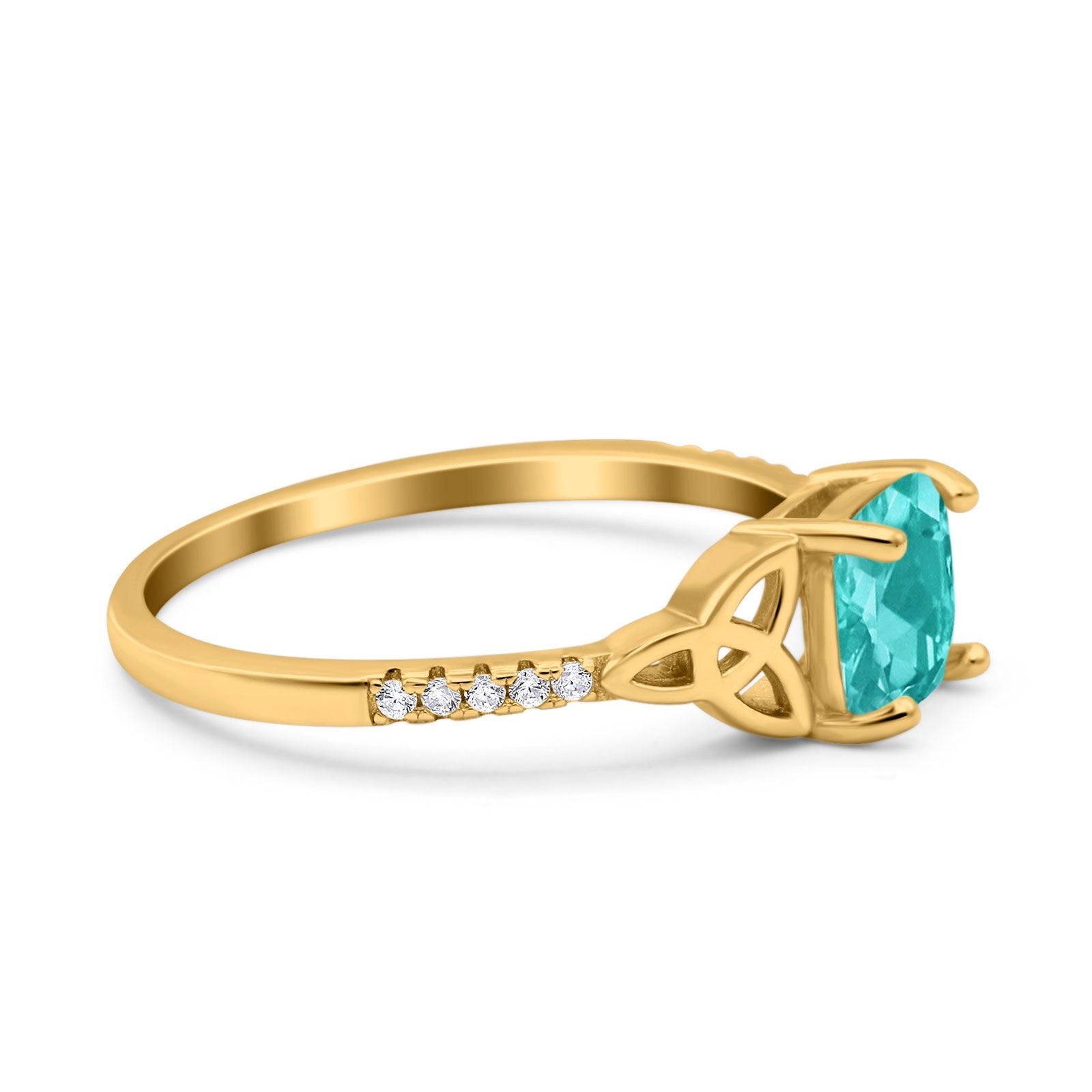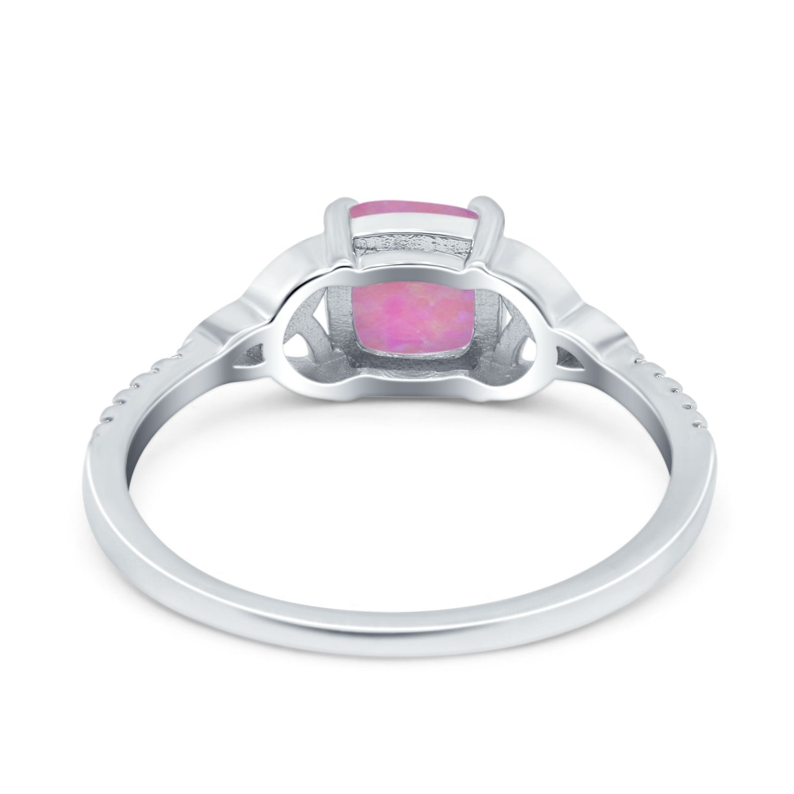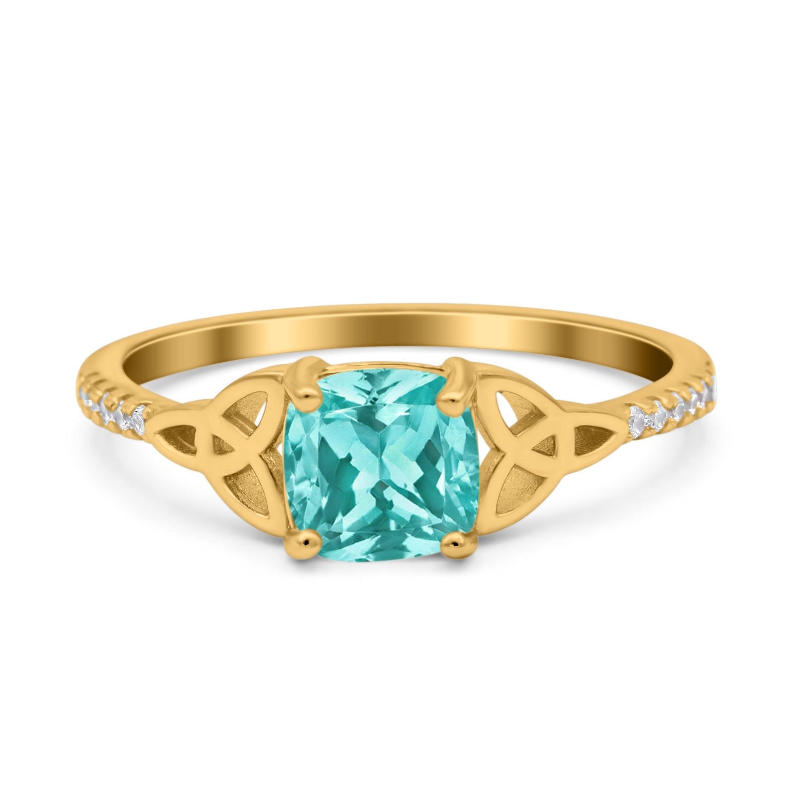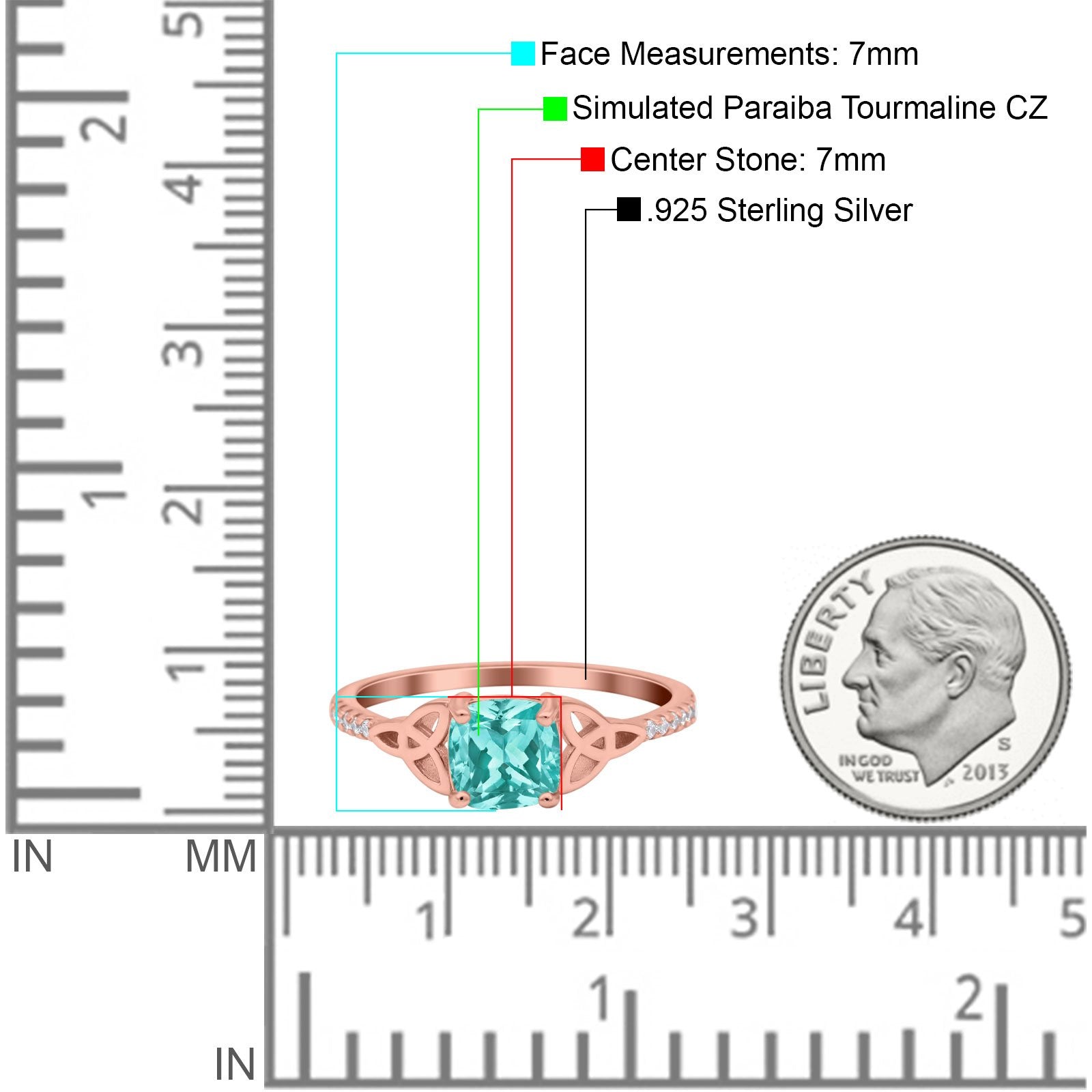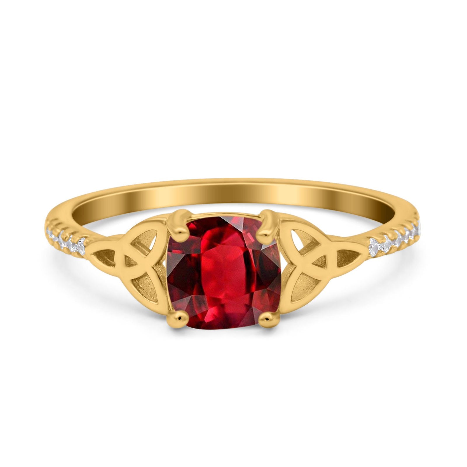 Cushion Cut Celtic Art Deco Wedding Engagement Bridal Ring Round Simulated Cubic Zirconia 925 Sterling Silver