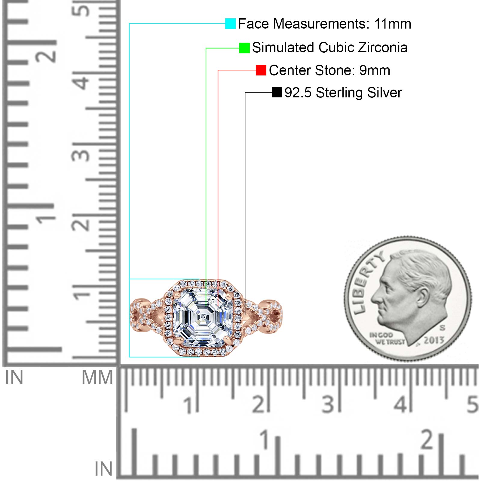 CZ & Blue Sapphire CZ Rose Tone Silver