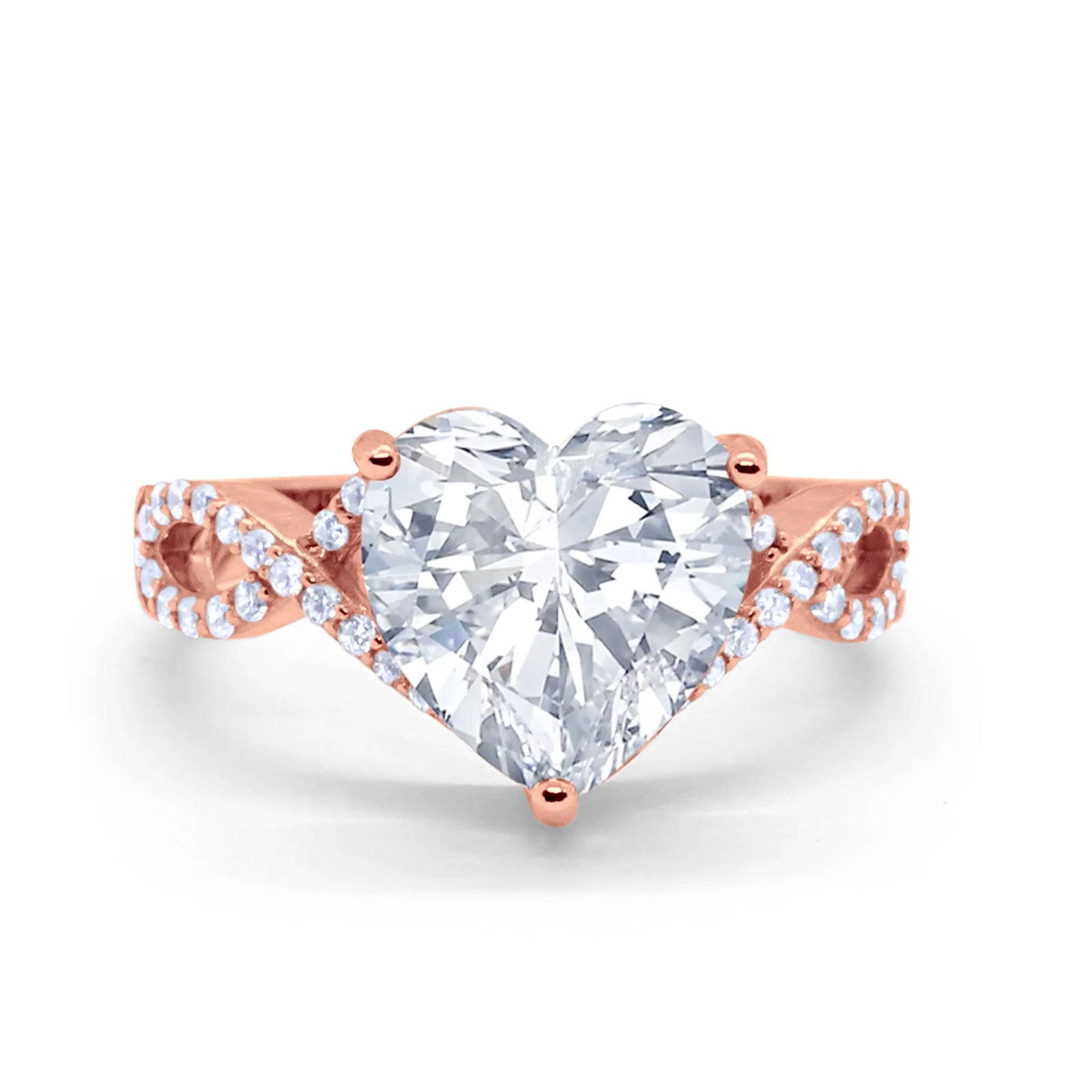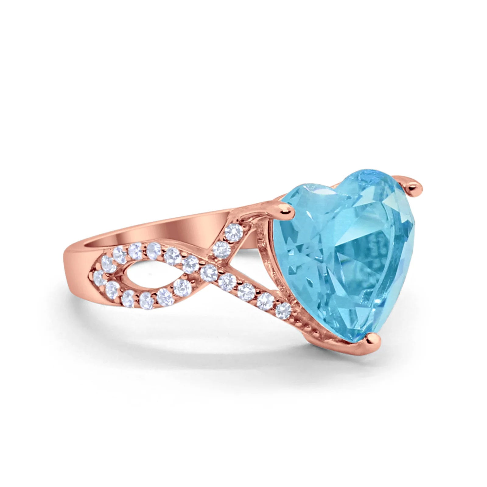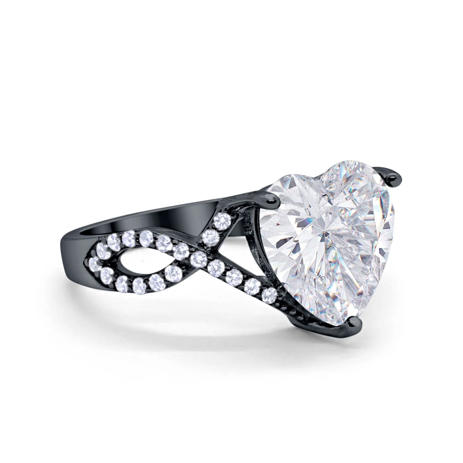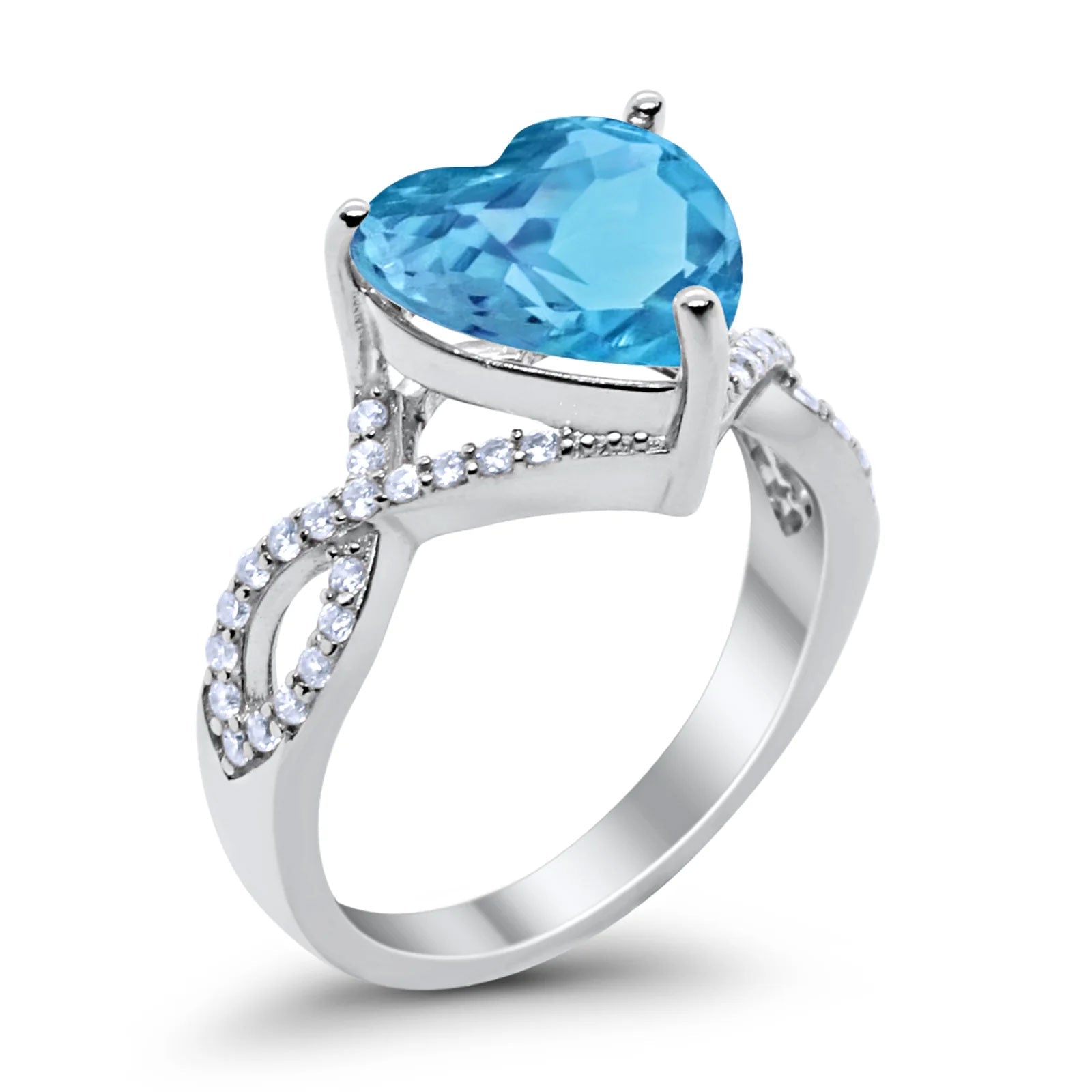 Large Infinity Heart Art Deco Promise Twisted Shank Wedding Engagement Ring Simulated Cubic Zirconia 925 Sterling Silver