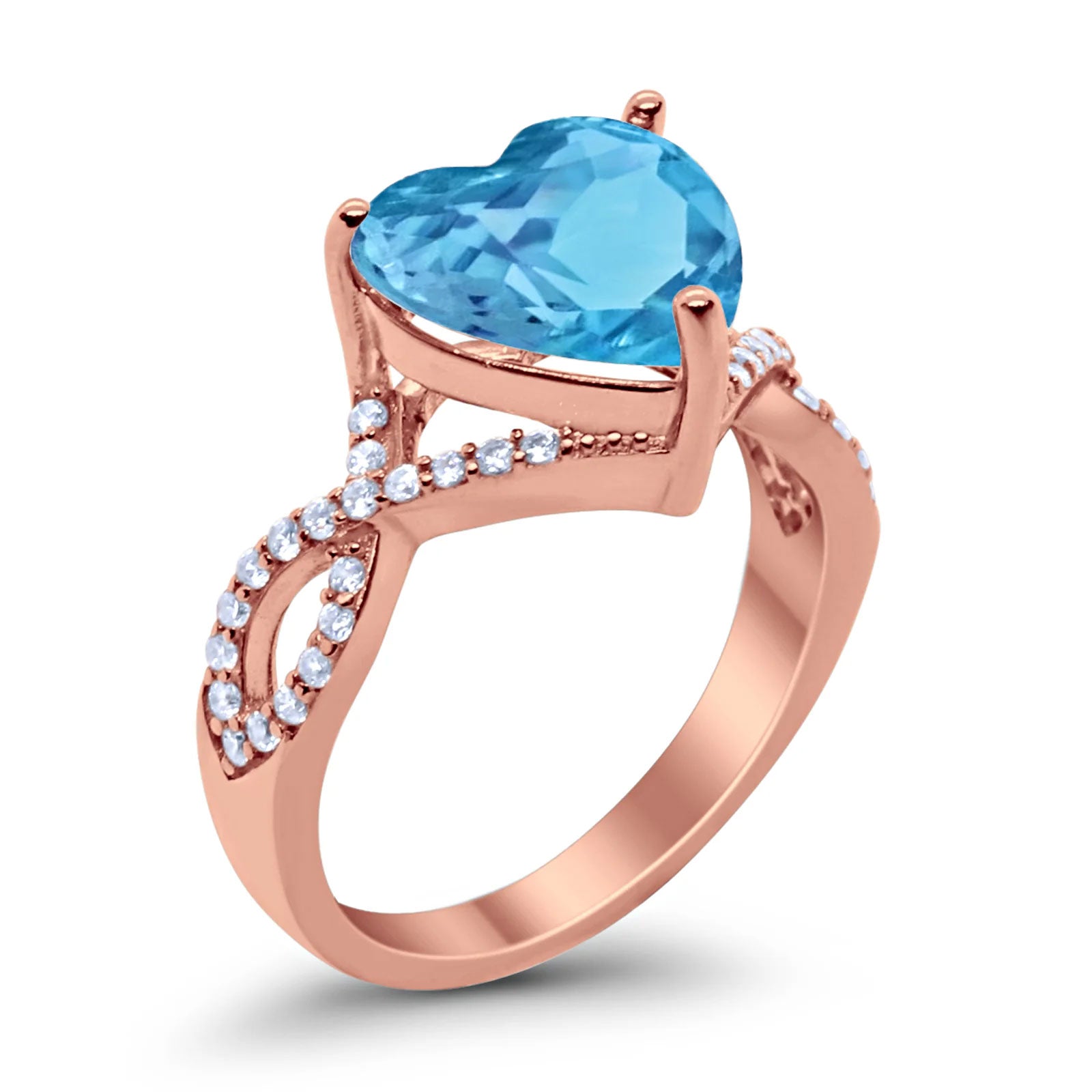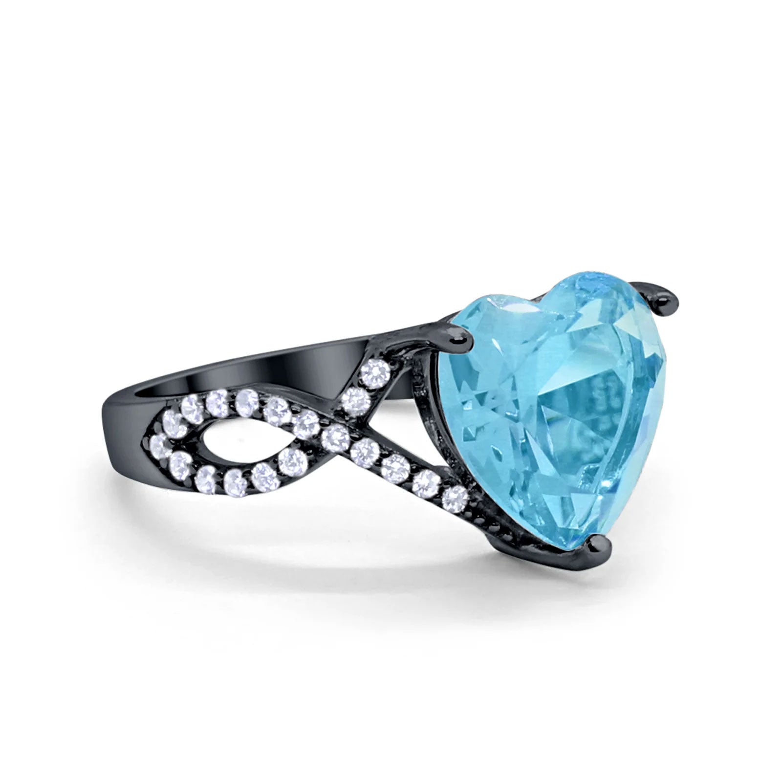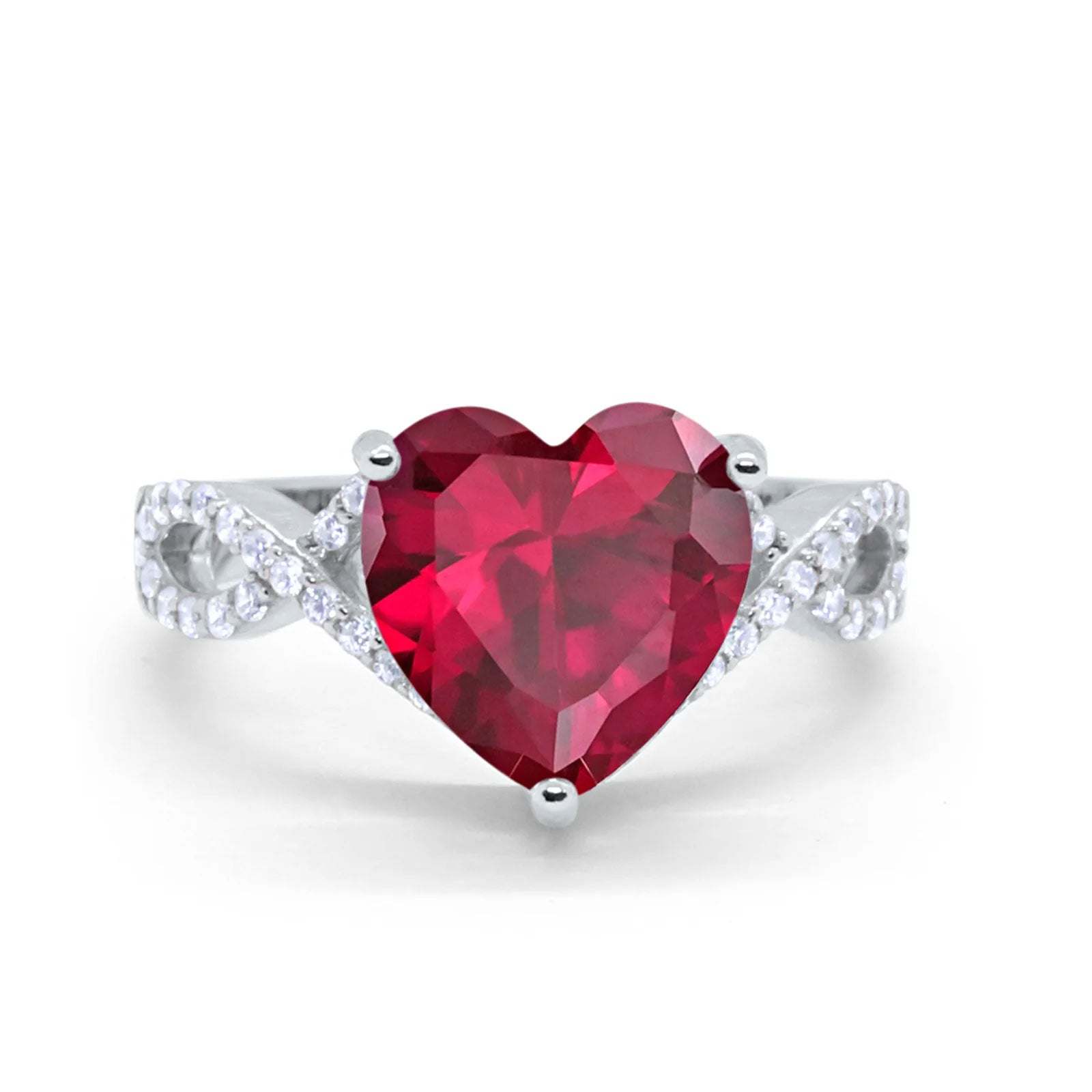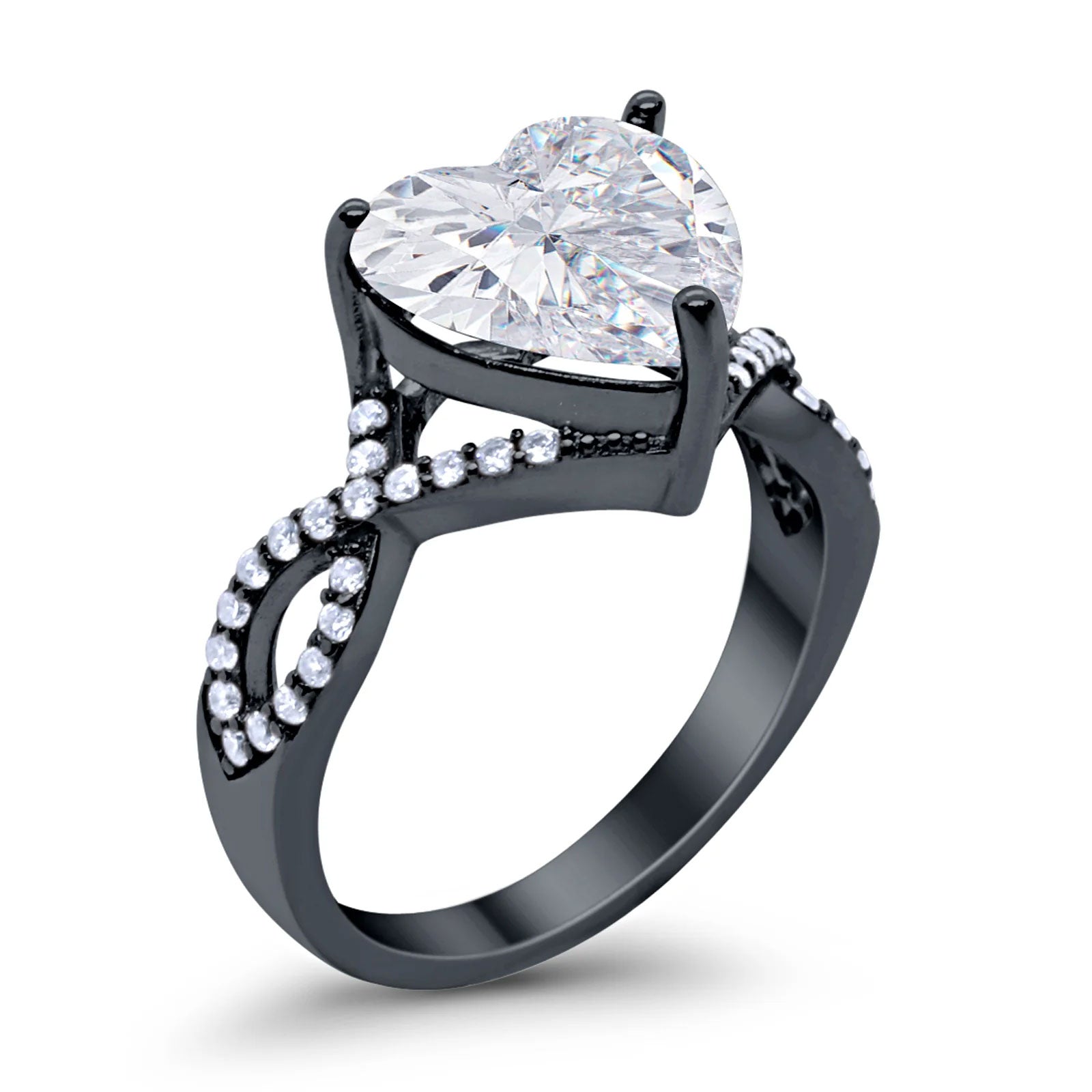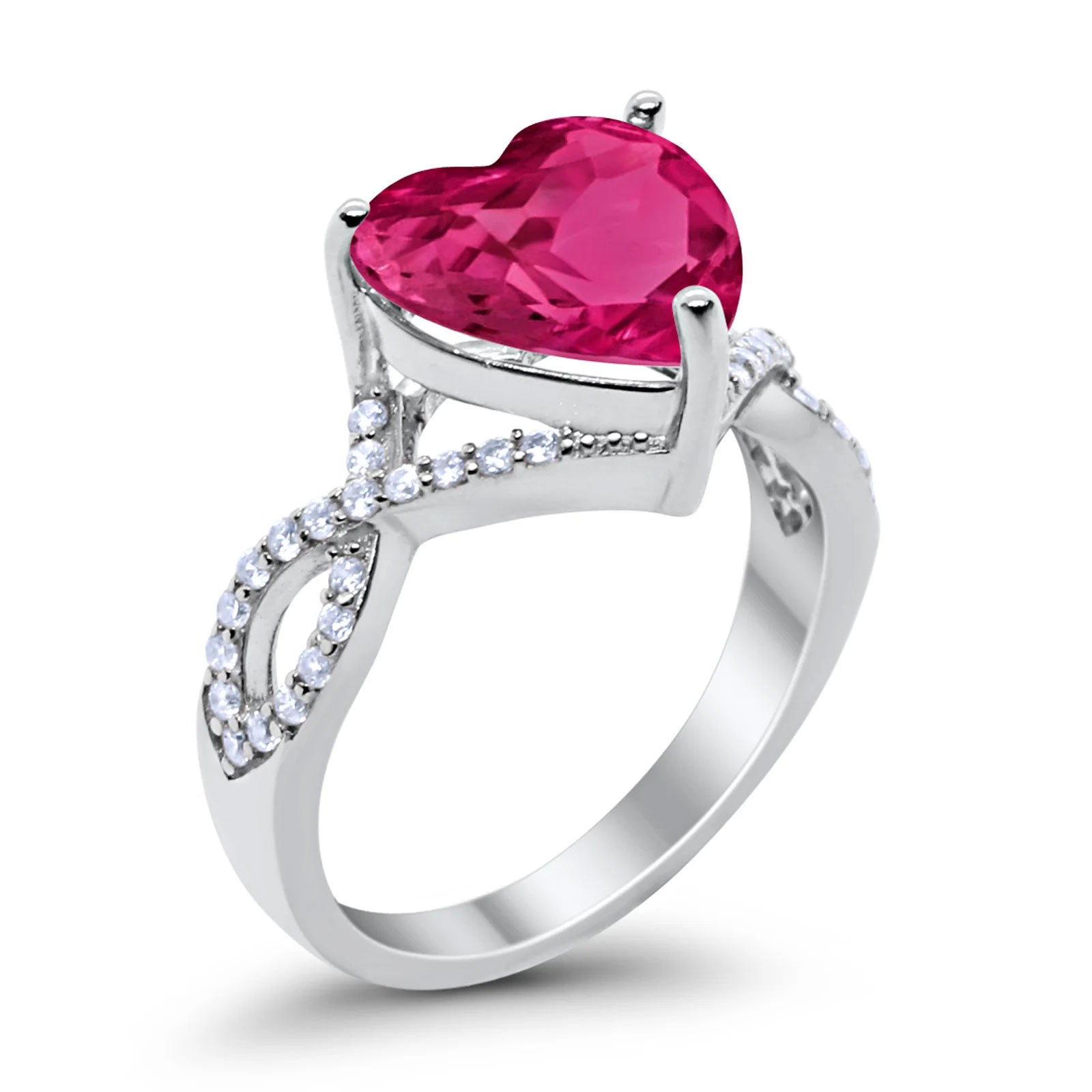 Large Infinity Heart Art Deco Promise Twisted Shank Wedding Engagement Ring Simulated Cubic Zirconia 925 Sterling Silver