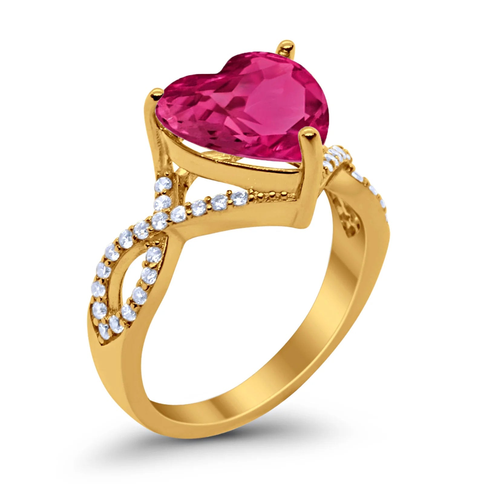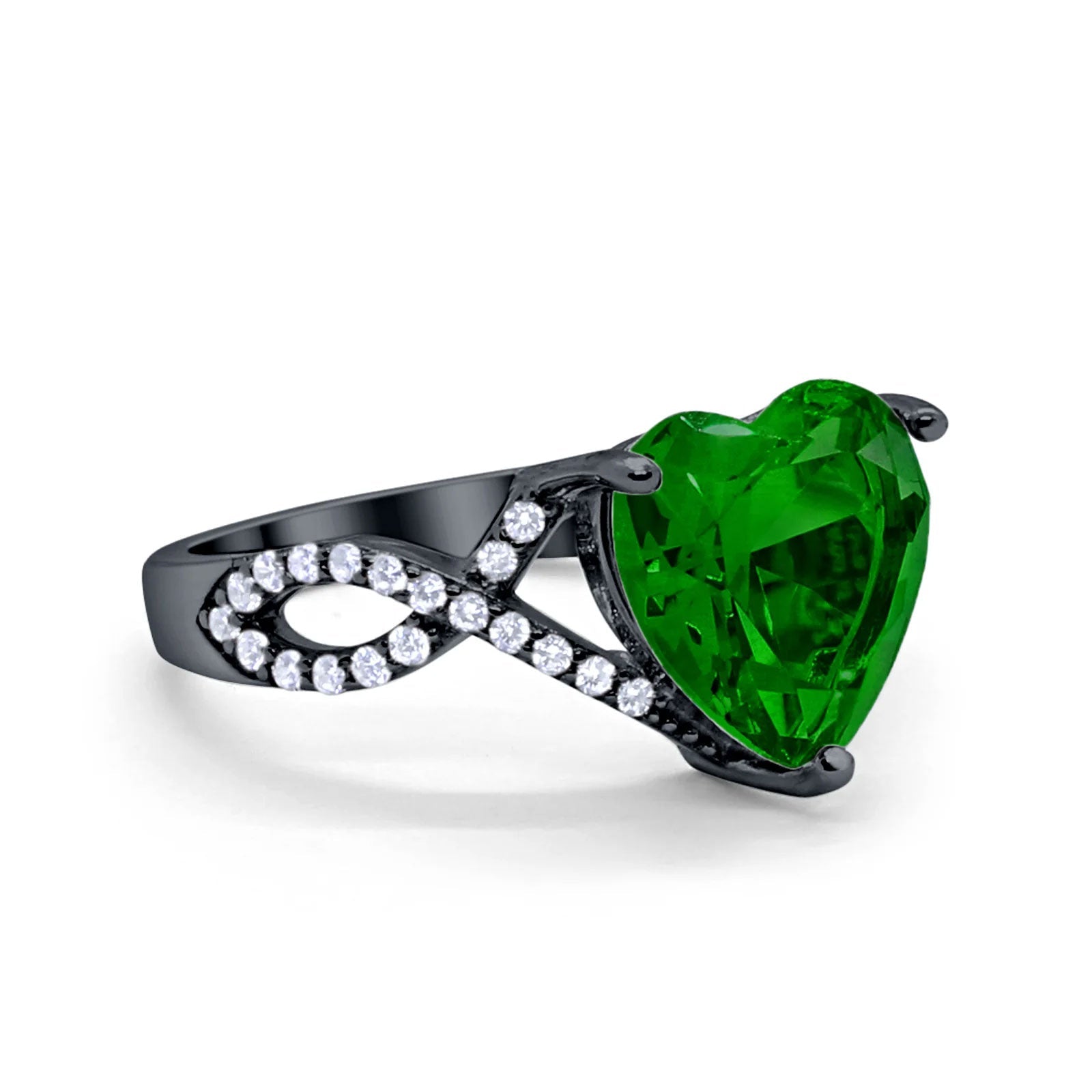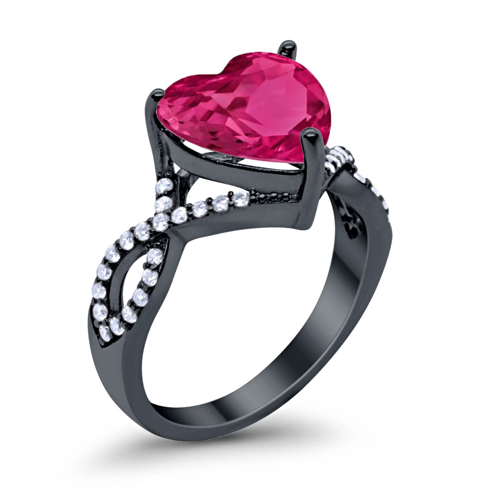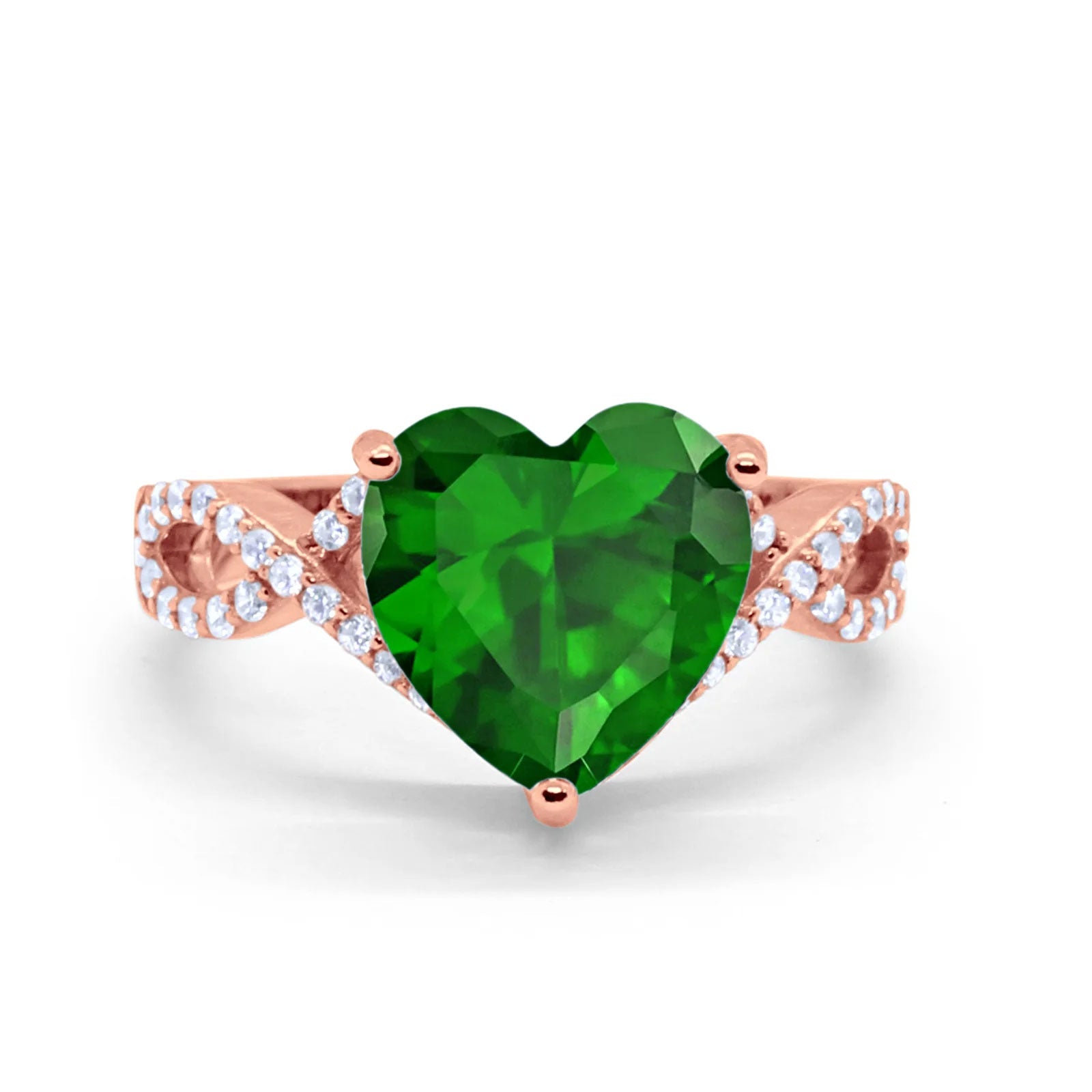 Large Infinity Heart Art Deco Promise Twisted Shank Wedding Engagement Ring Simulated Cubic Zirconia 925 Sterling Silver