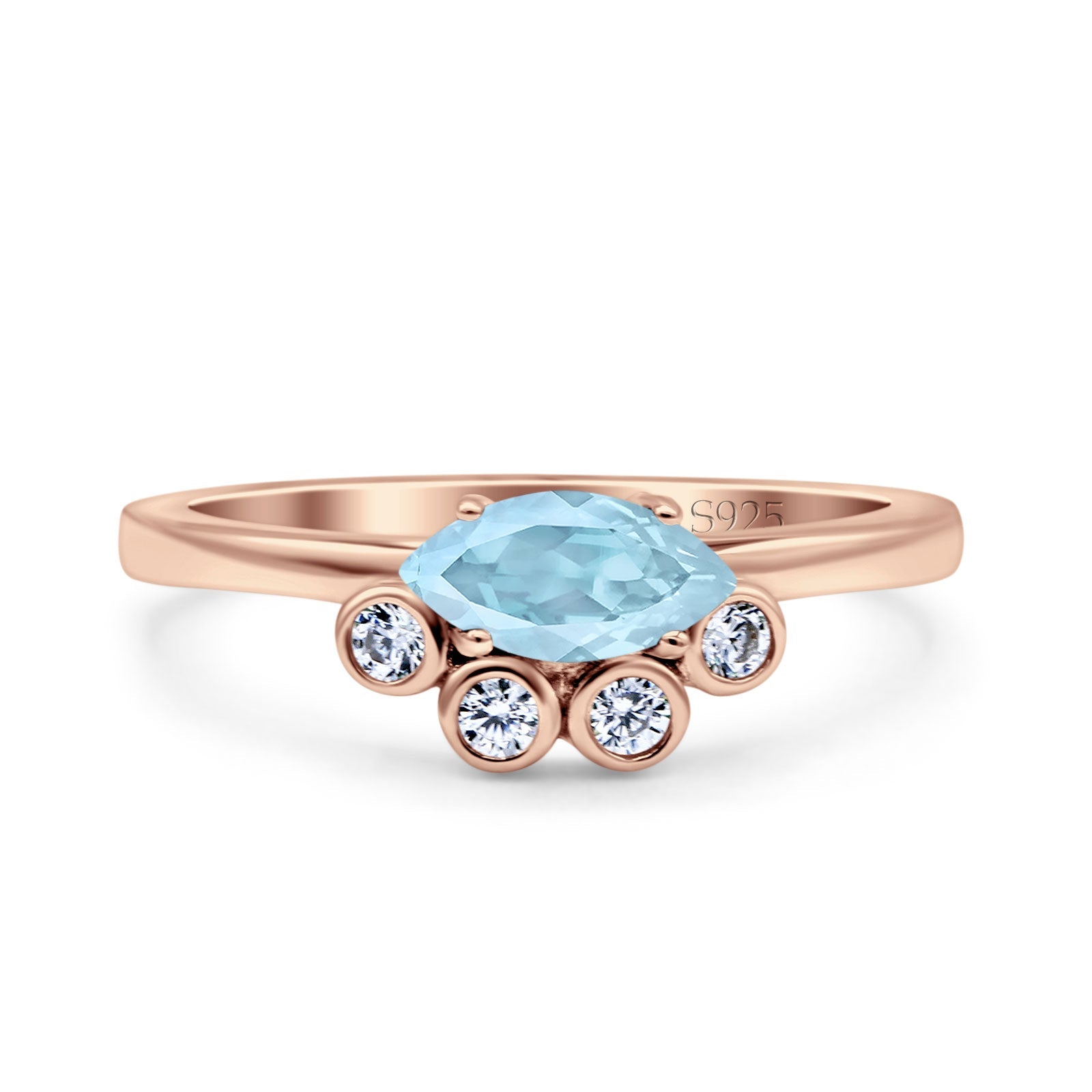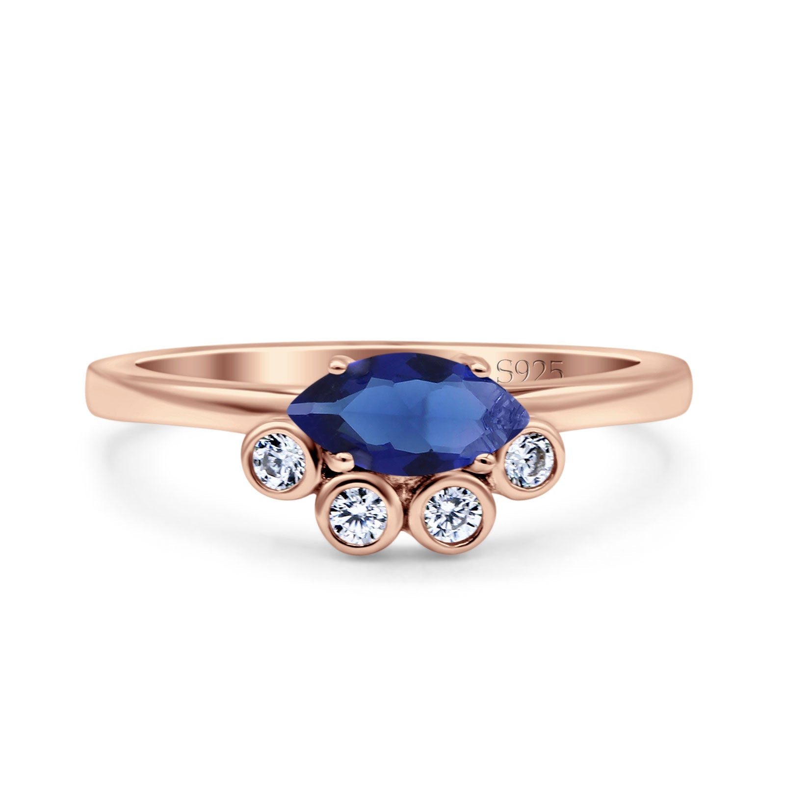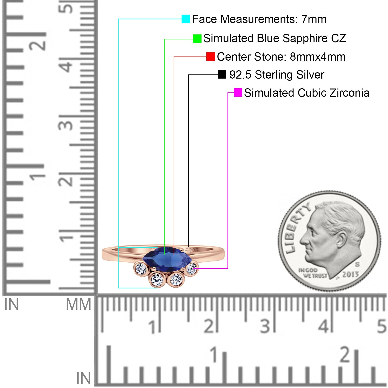 CZ & Blue Sapphire CZ Rose Tone Silver