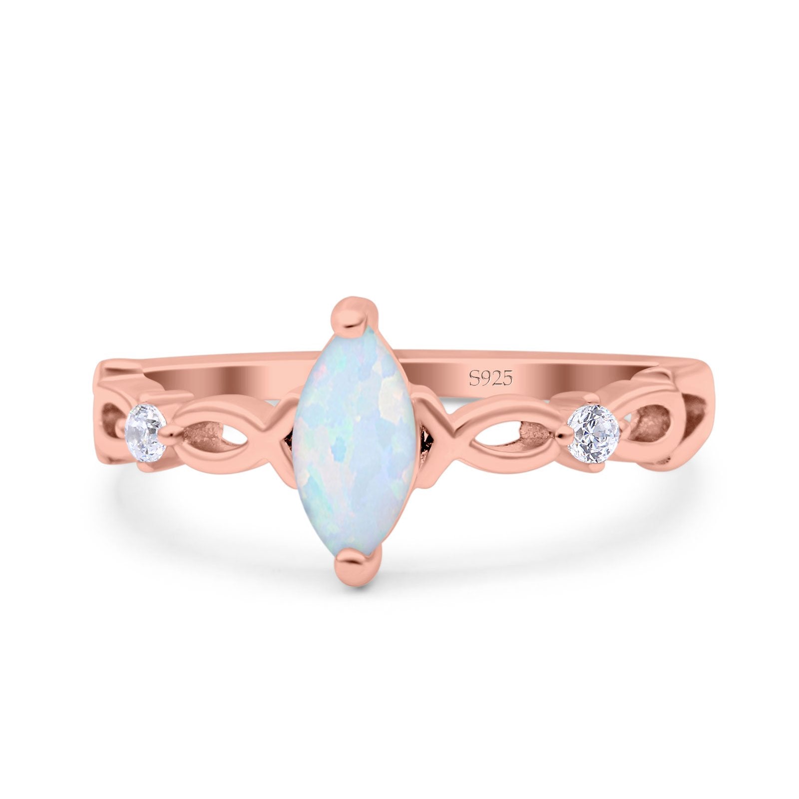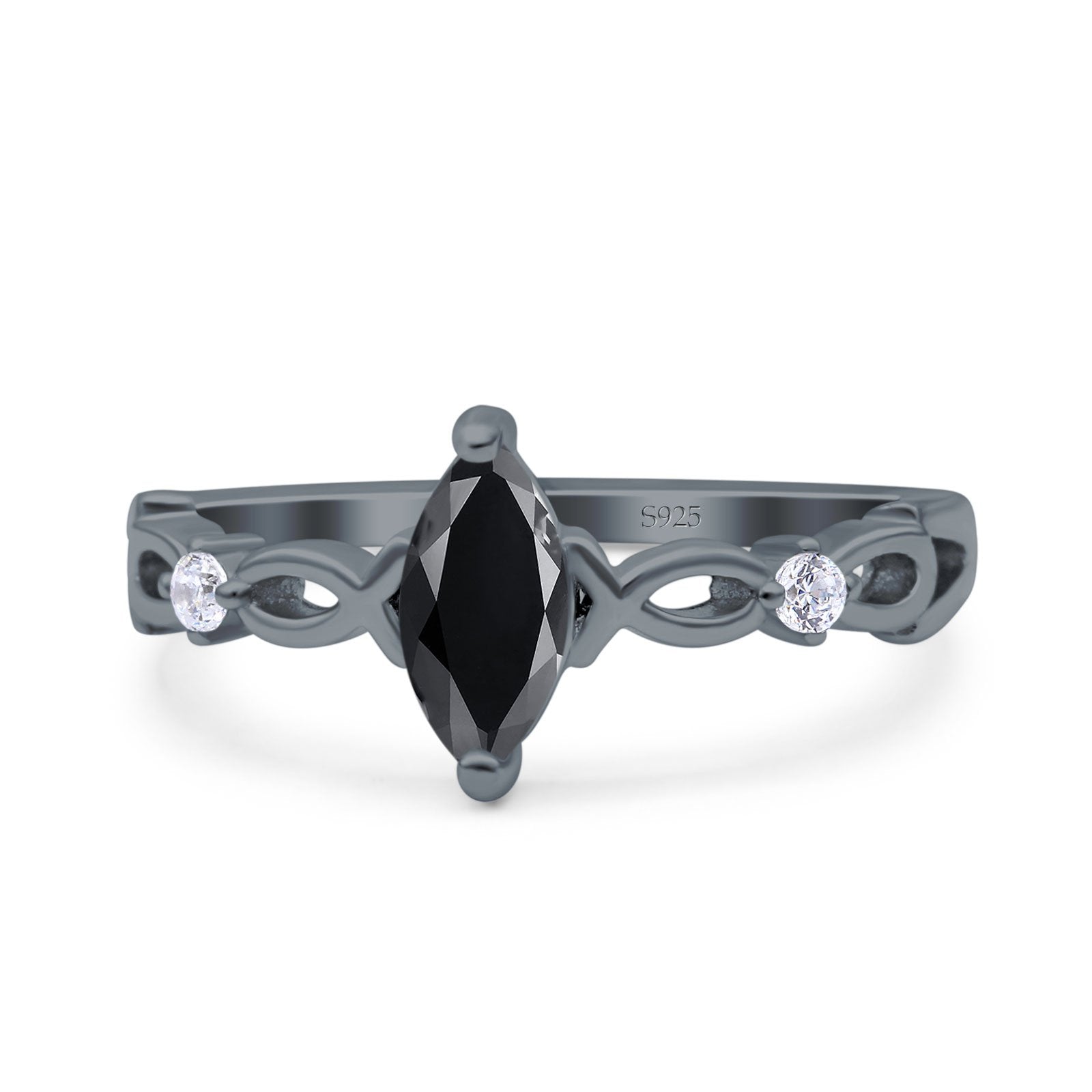Marquise Art Deco Wedding Bridal Ring Infinity Twisted Round Simulated Cubic Zirconia 925 Sterling Silver