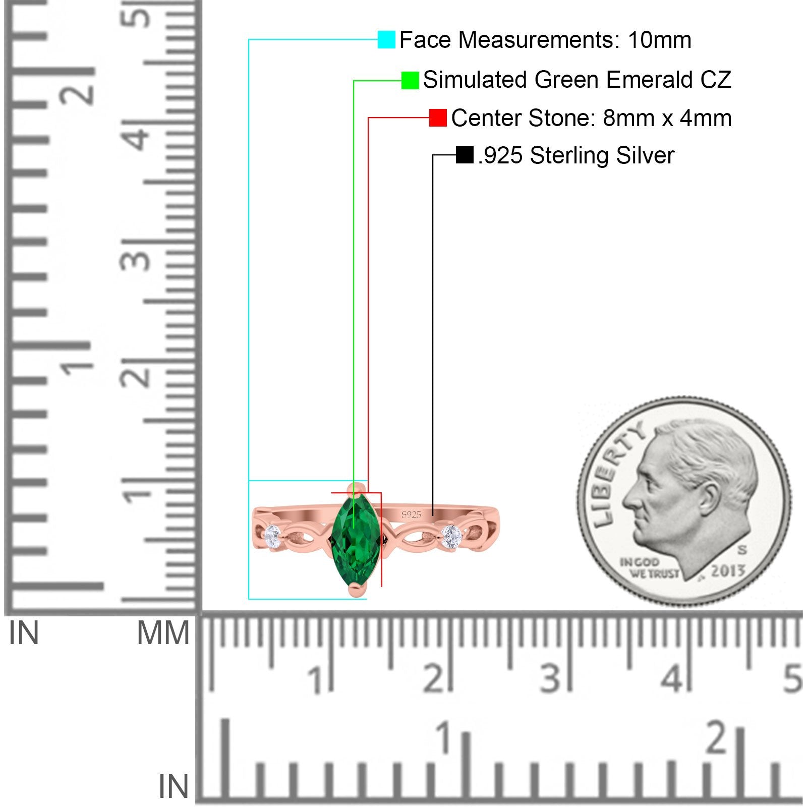 CZ & Green Emerald CZ Rose Tone Silver