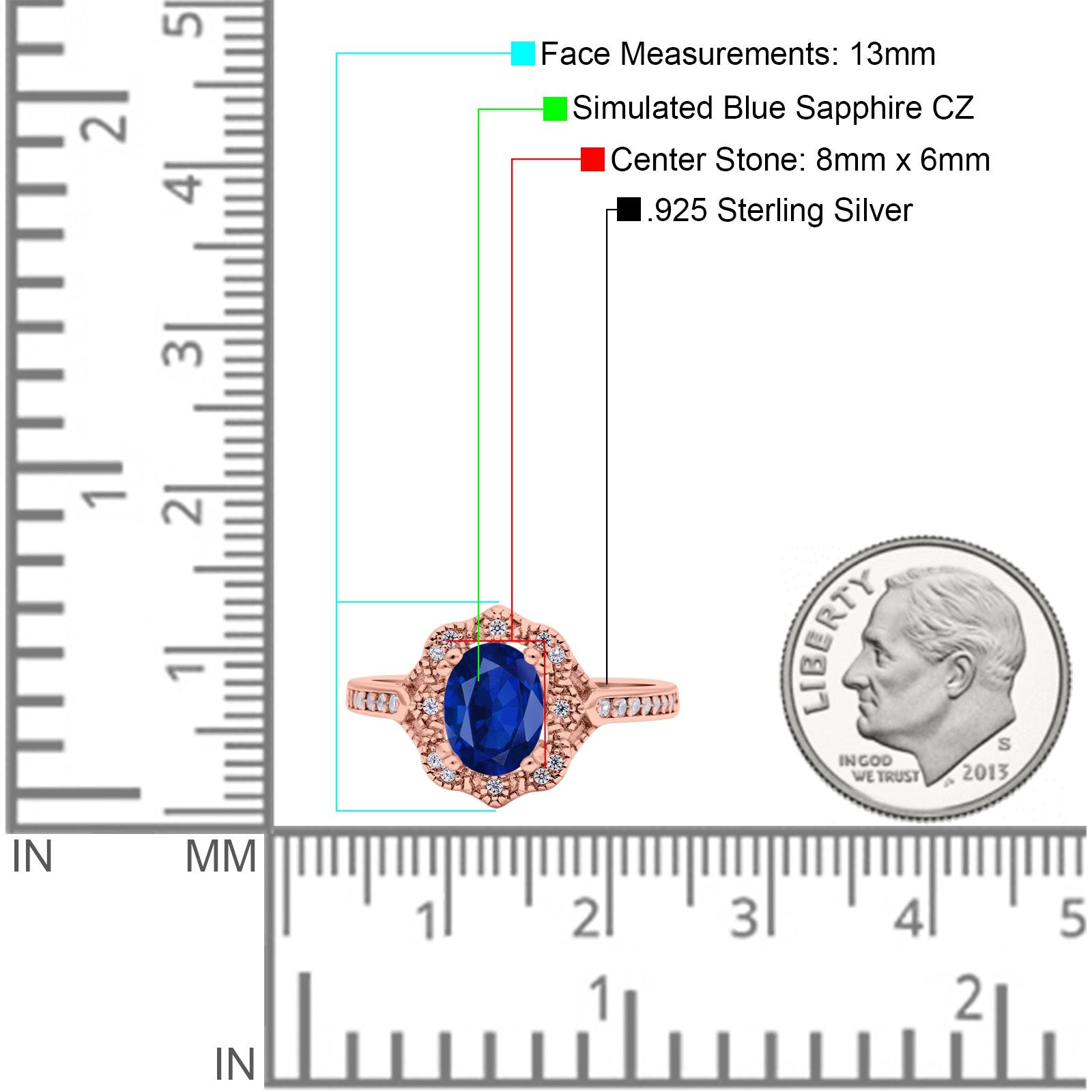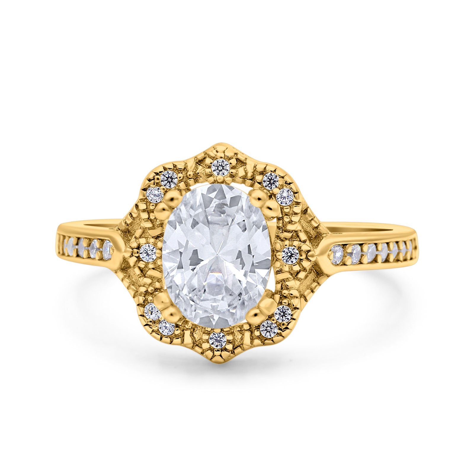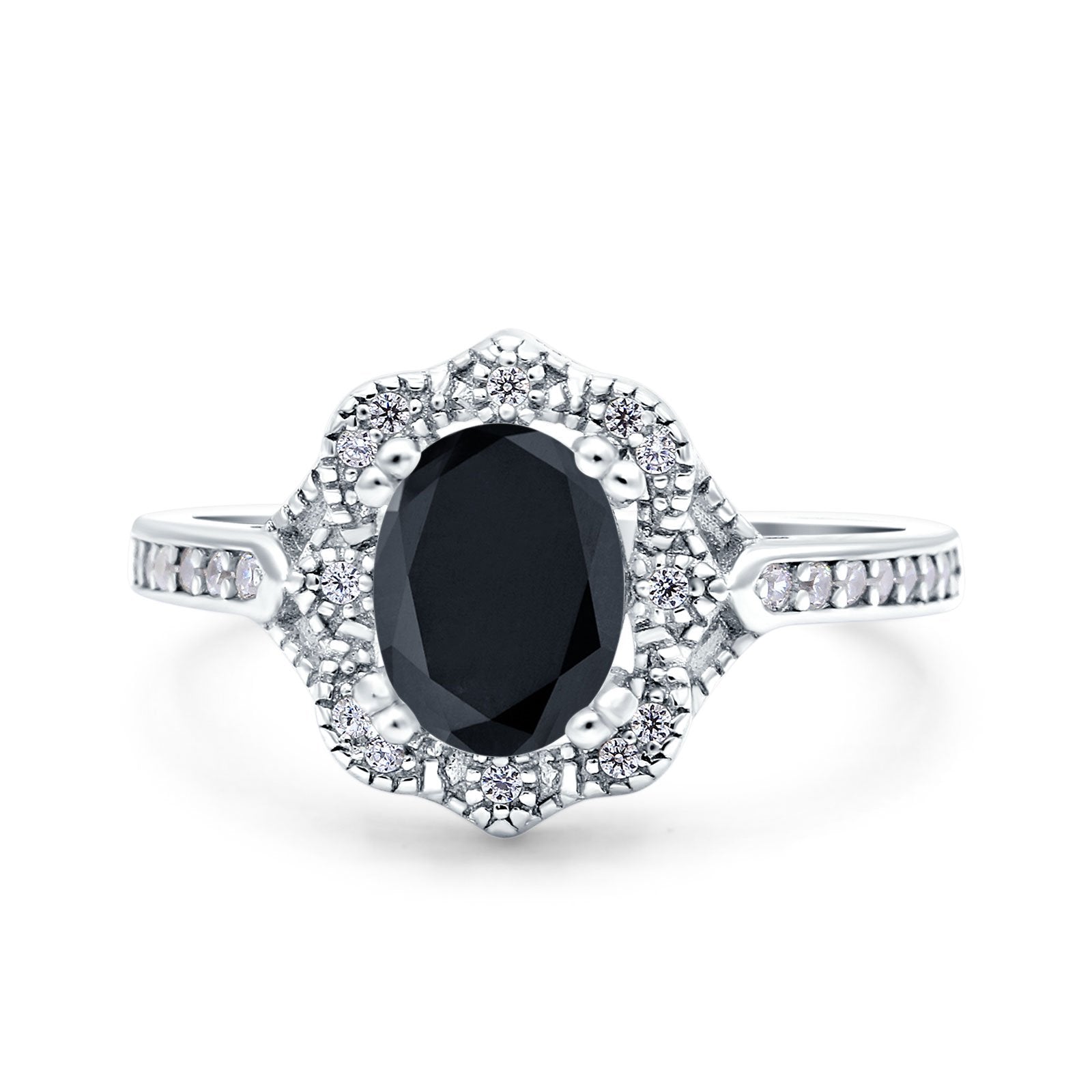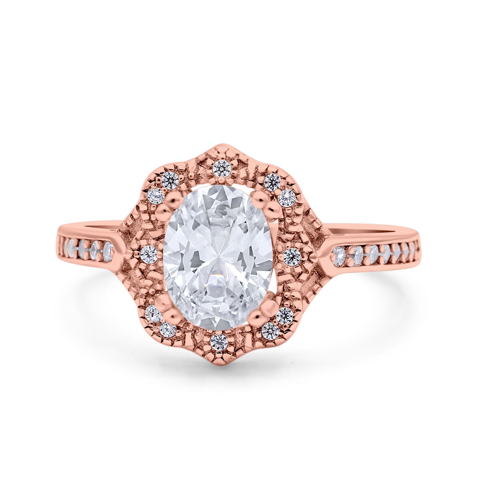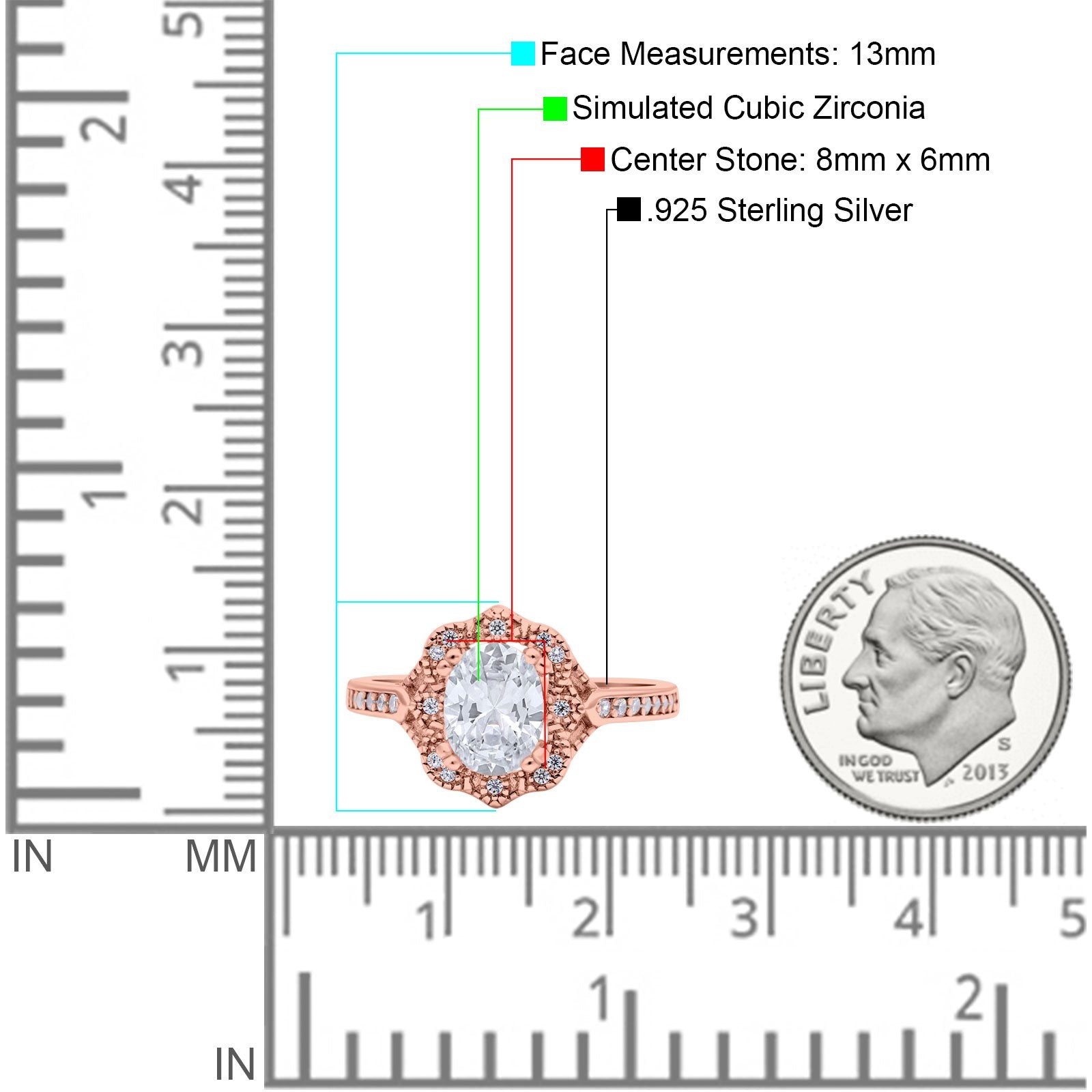 Oval Art Deco Wedding Engagement Bridal Ring Accent Vintage Round Simulated Cubic Zirconia 925 Sterling Silver