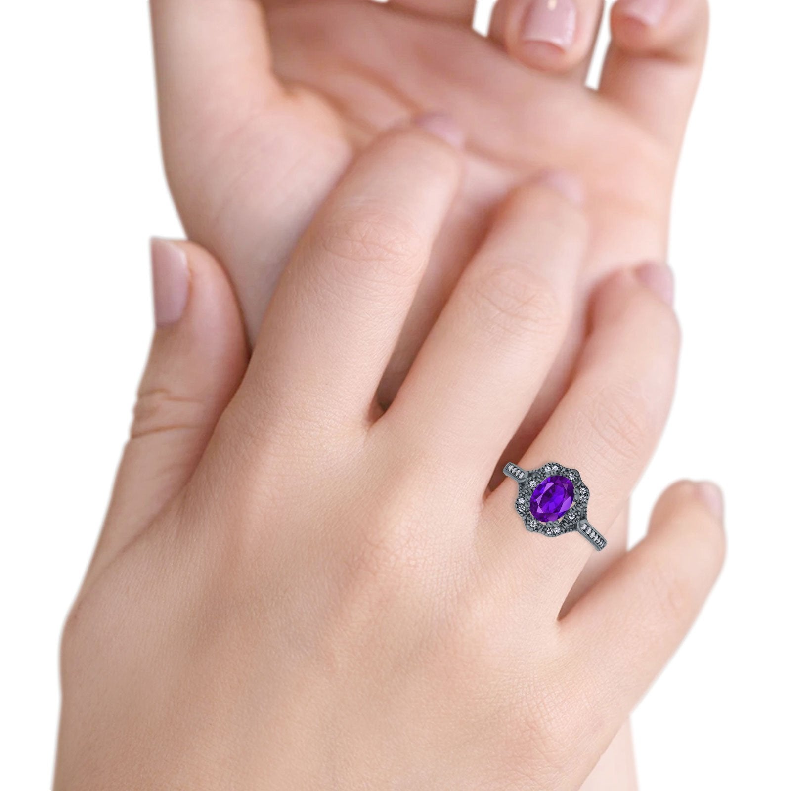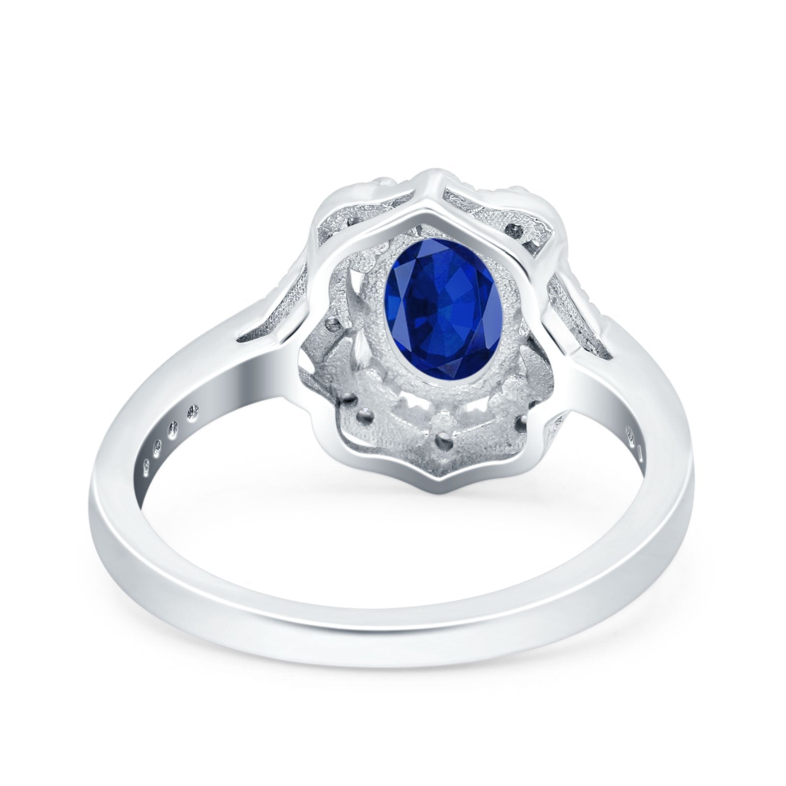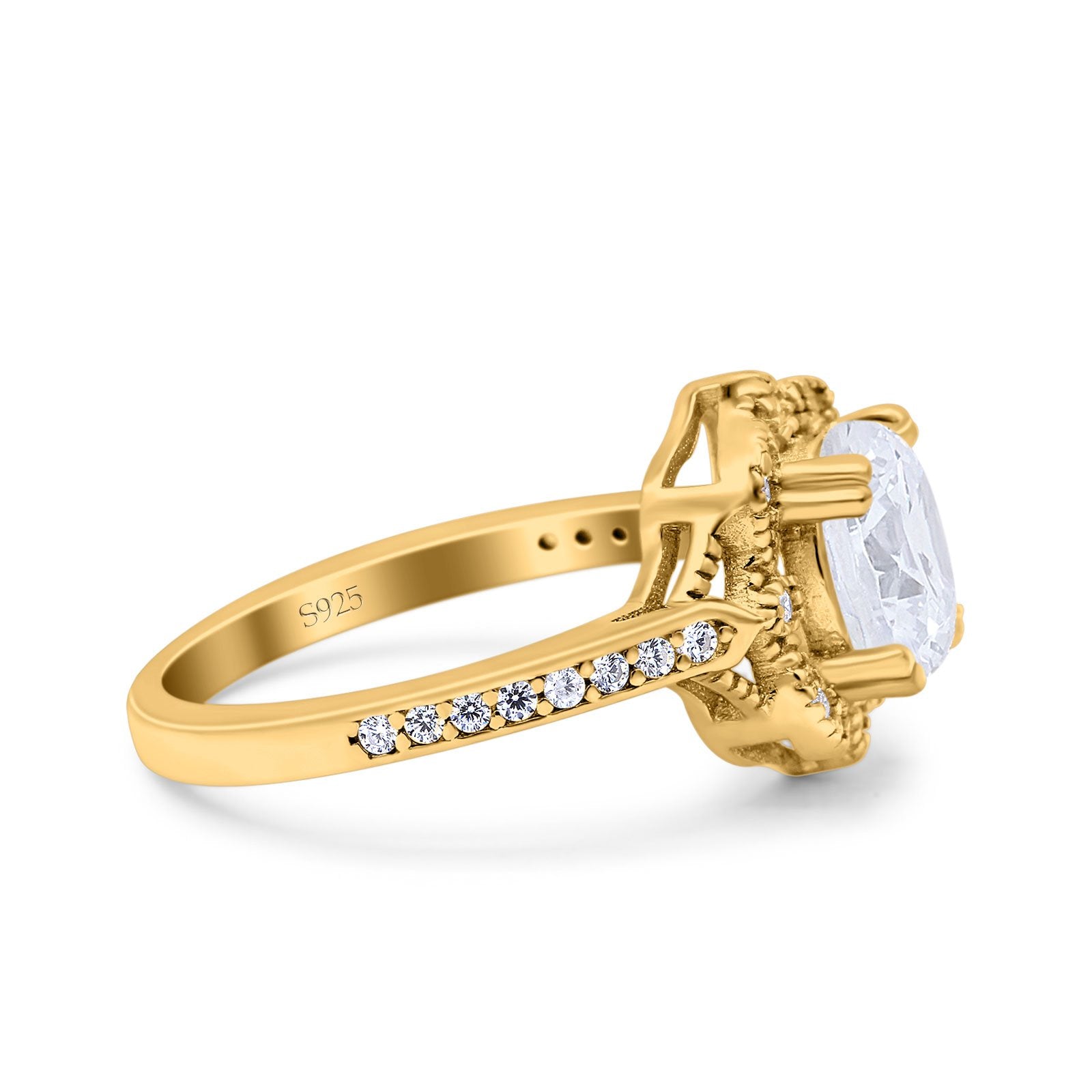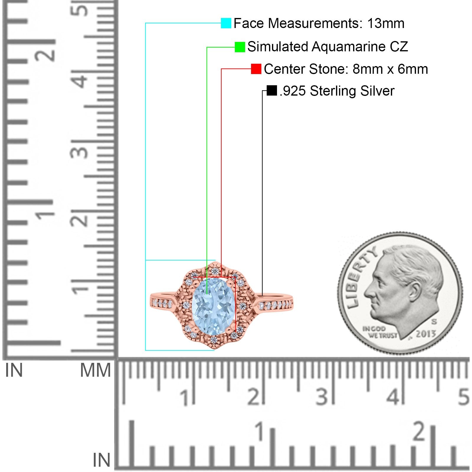 Oval Art Deco Wedding Engagement Bridal Ring Accent Vintage Round Simulated Cubic Zirconia 925 Sterling Silver
