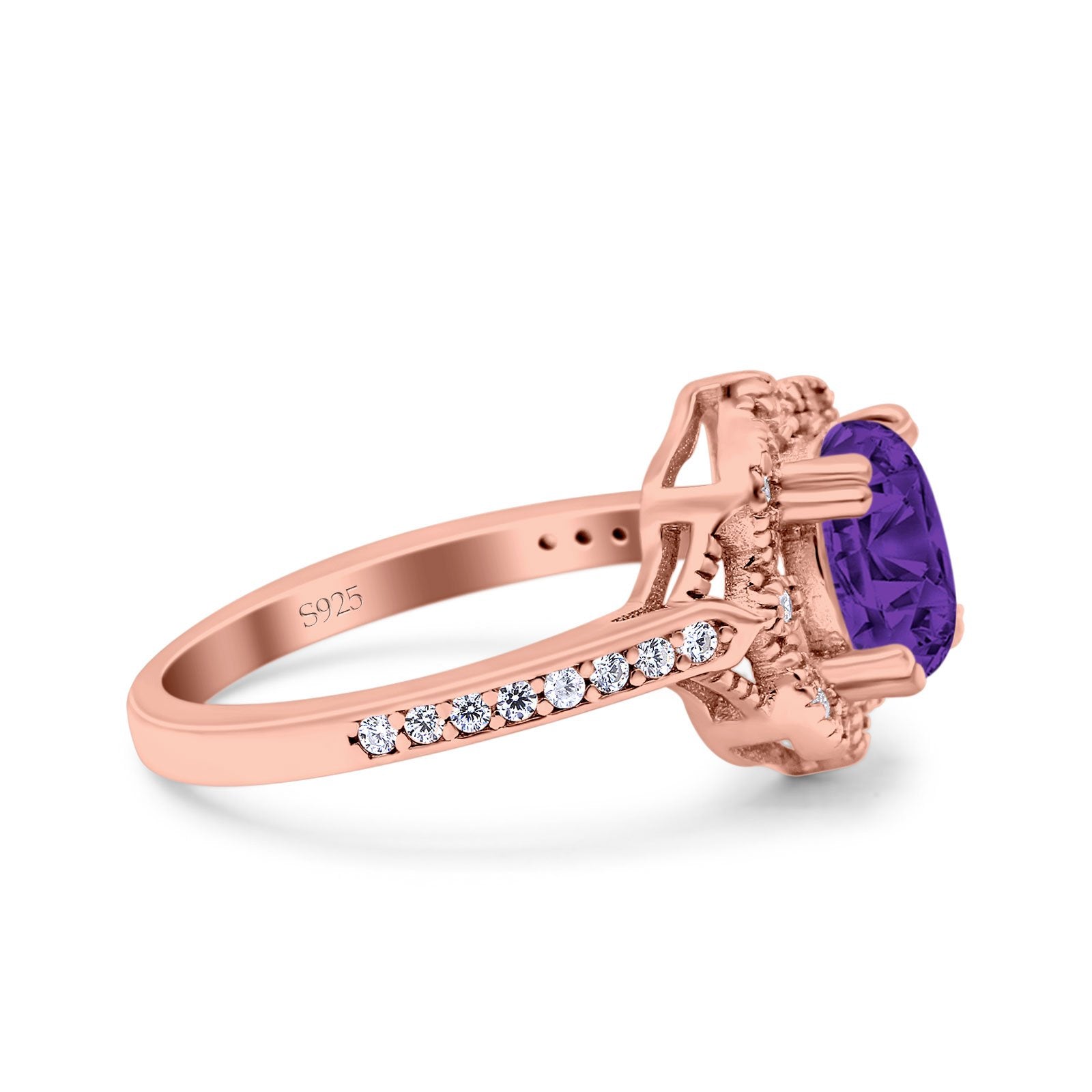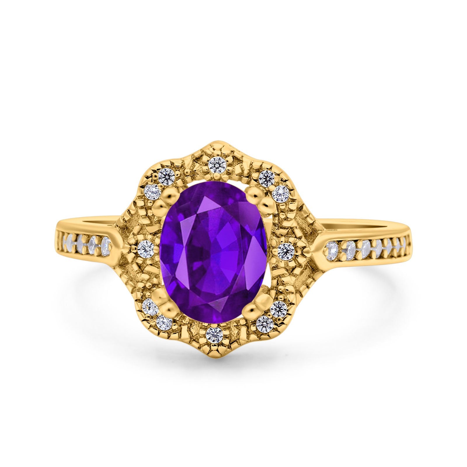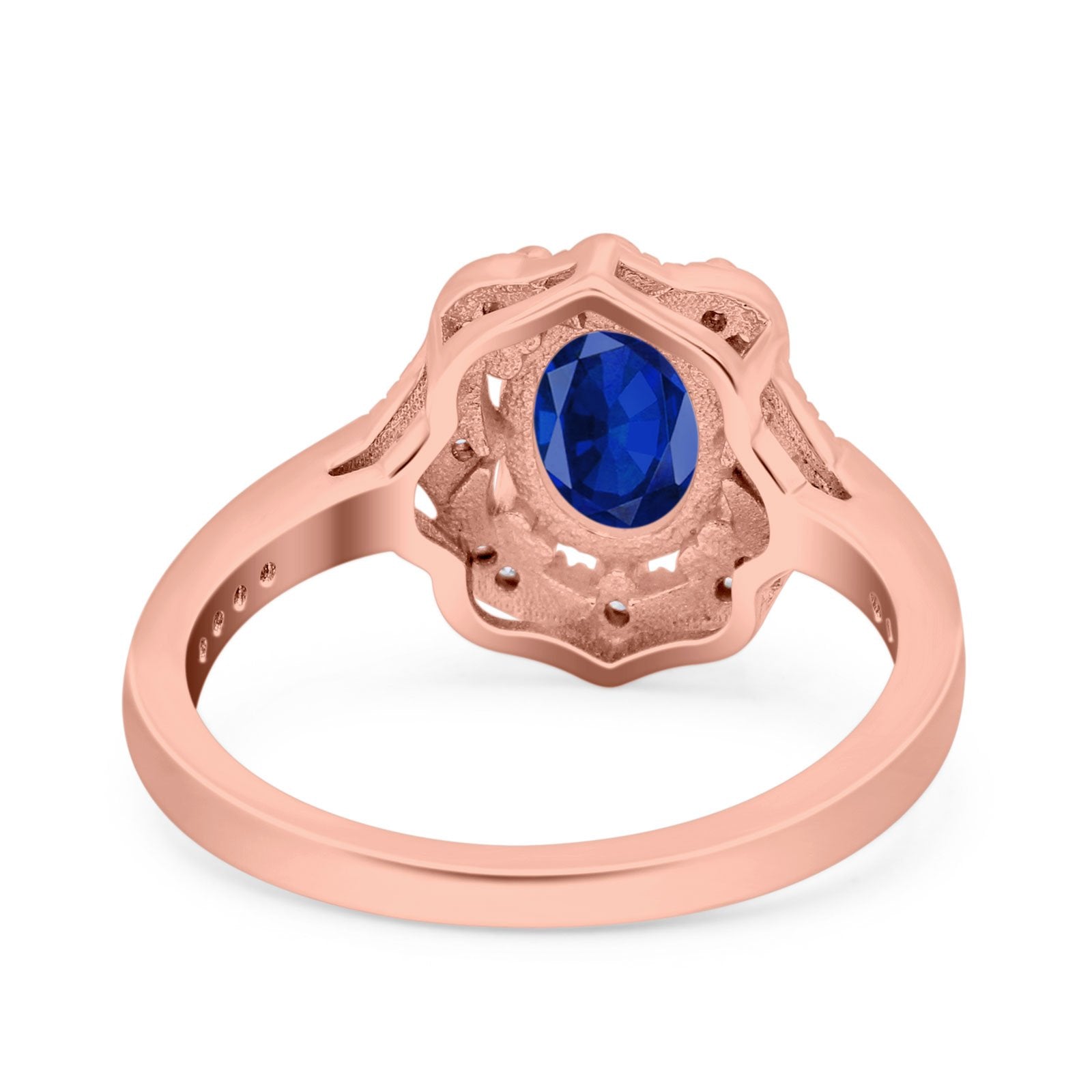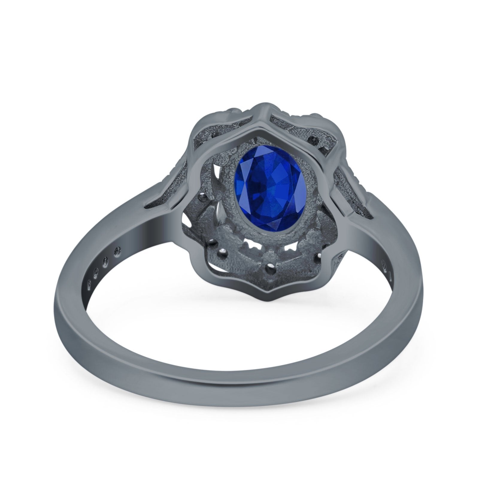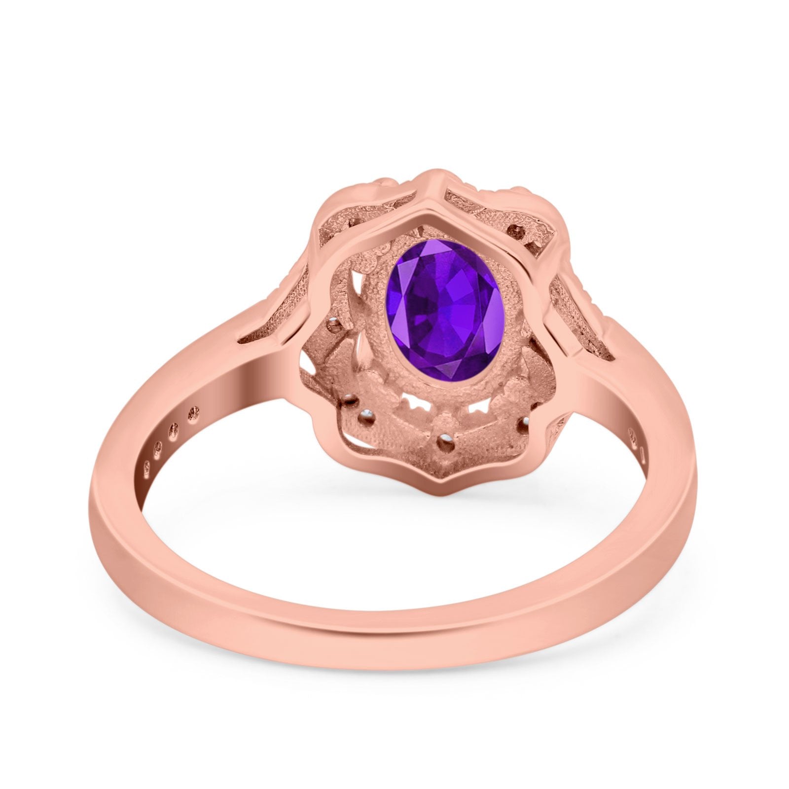 Oval Art Deco Wedding Engagement Bridal Ring Accent Vintage Round Simulated Cubic Zirconia 925 Sterling Silver
