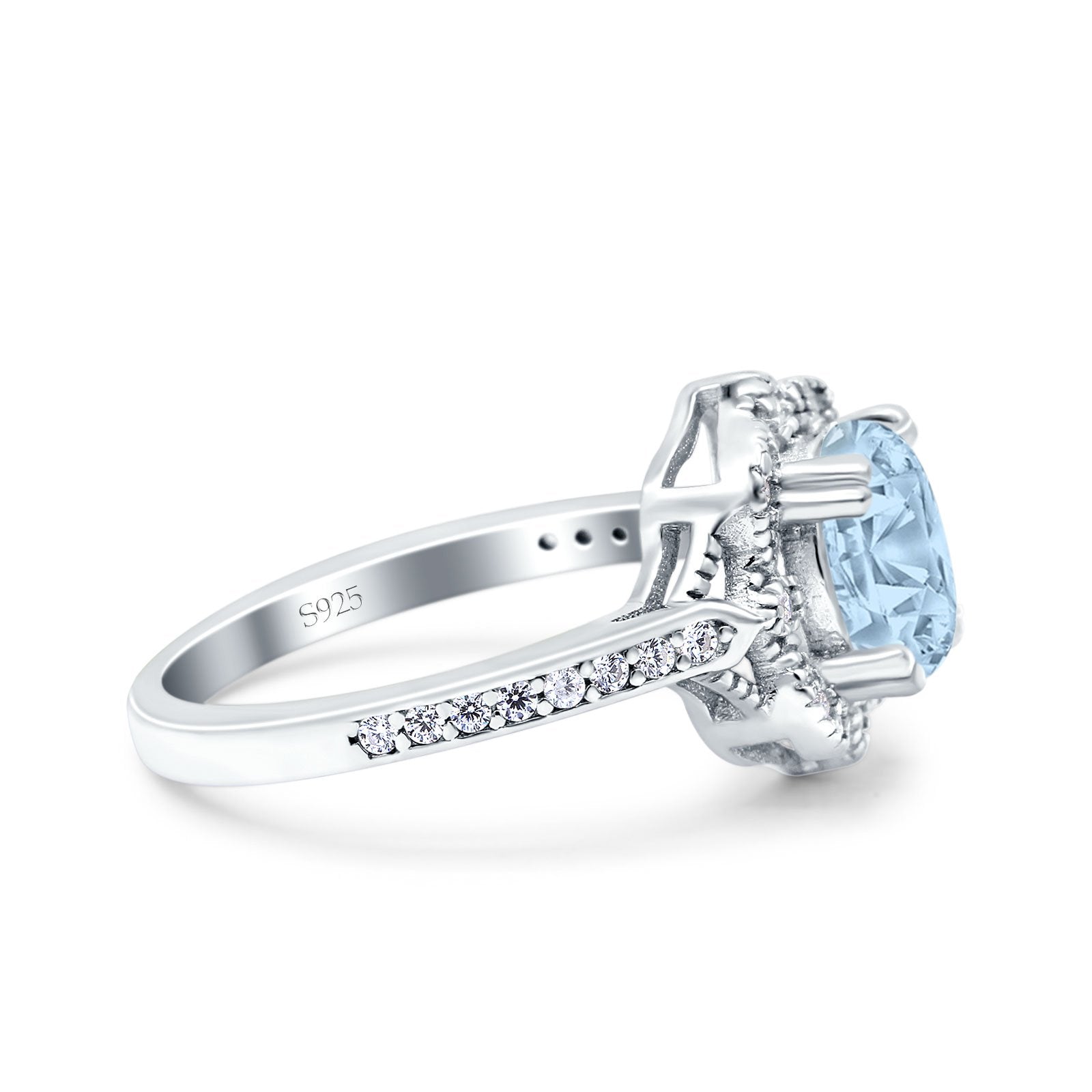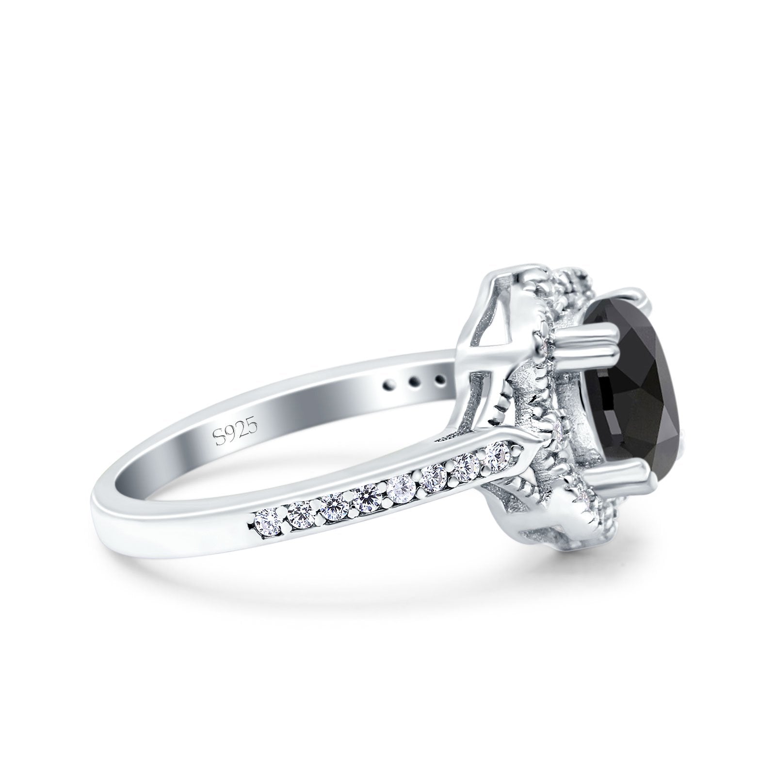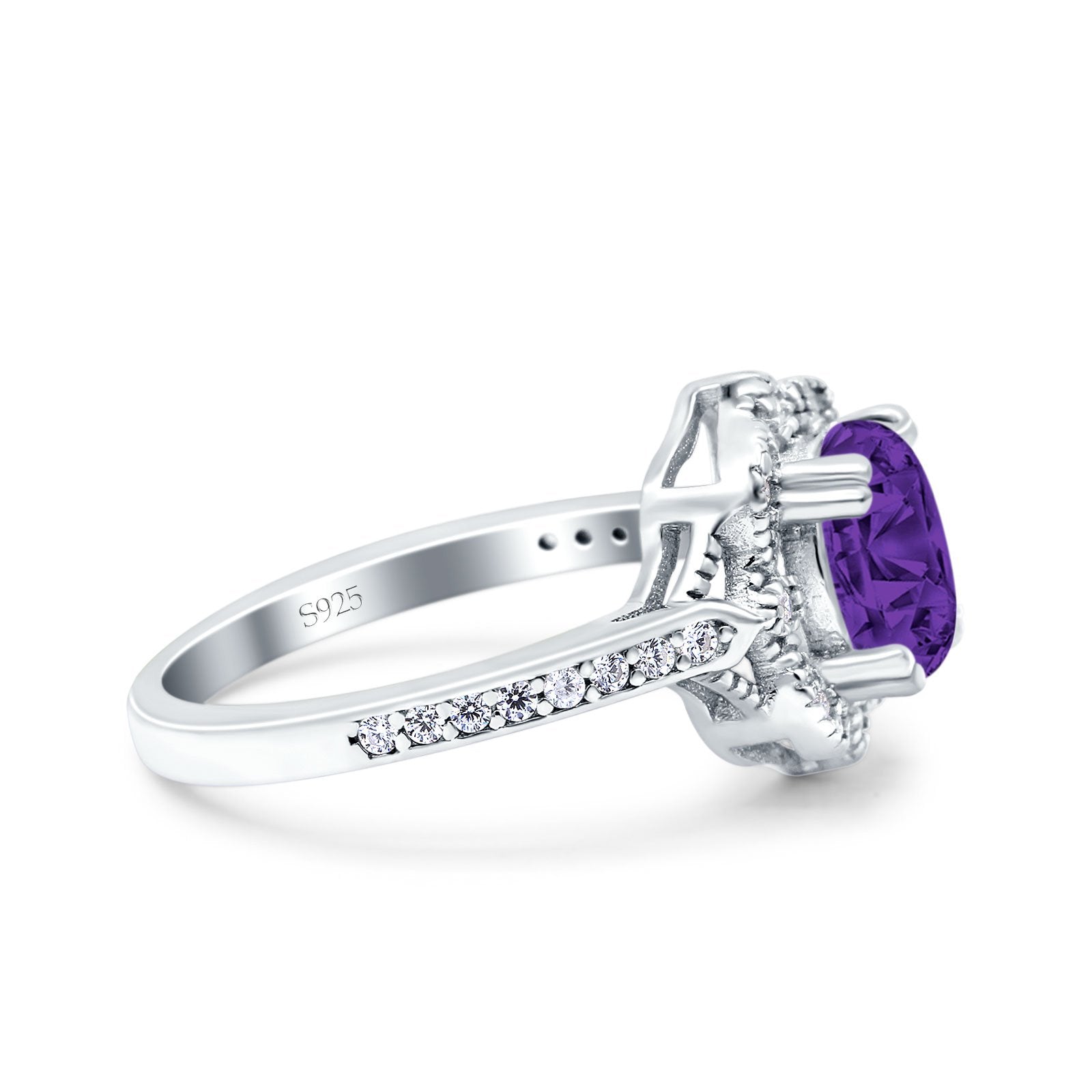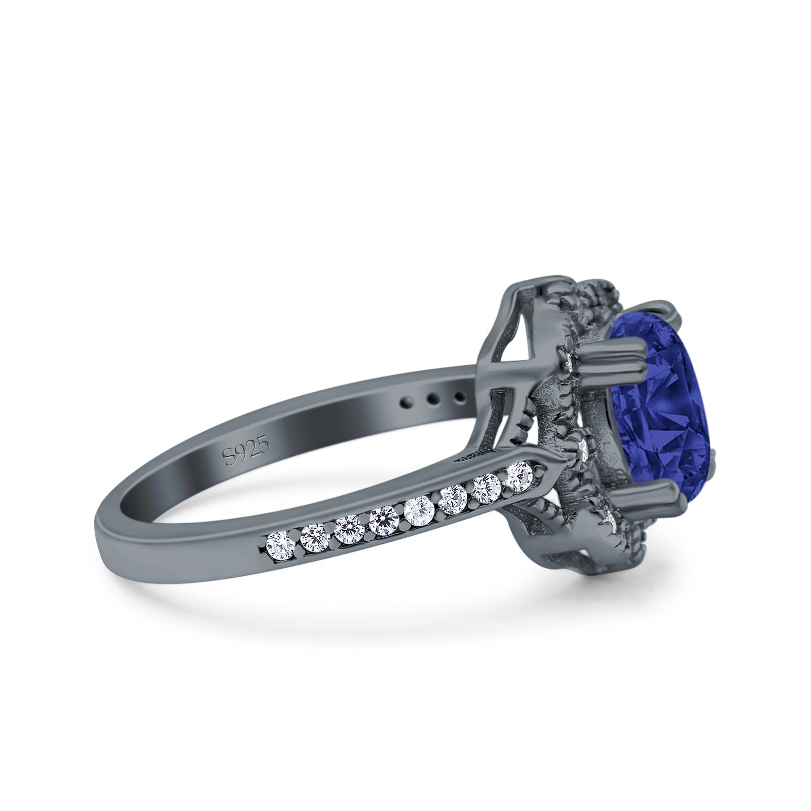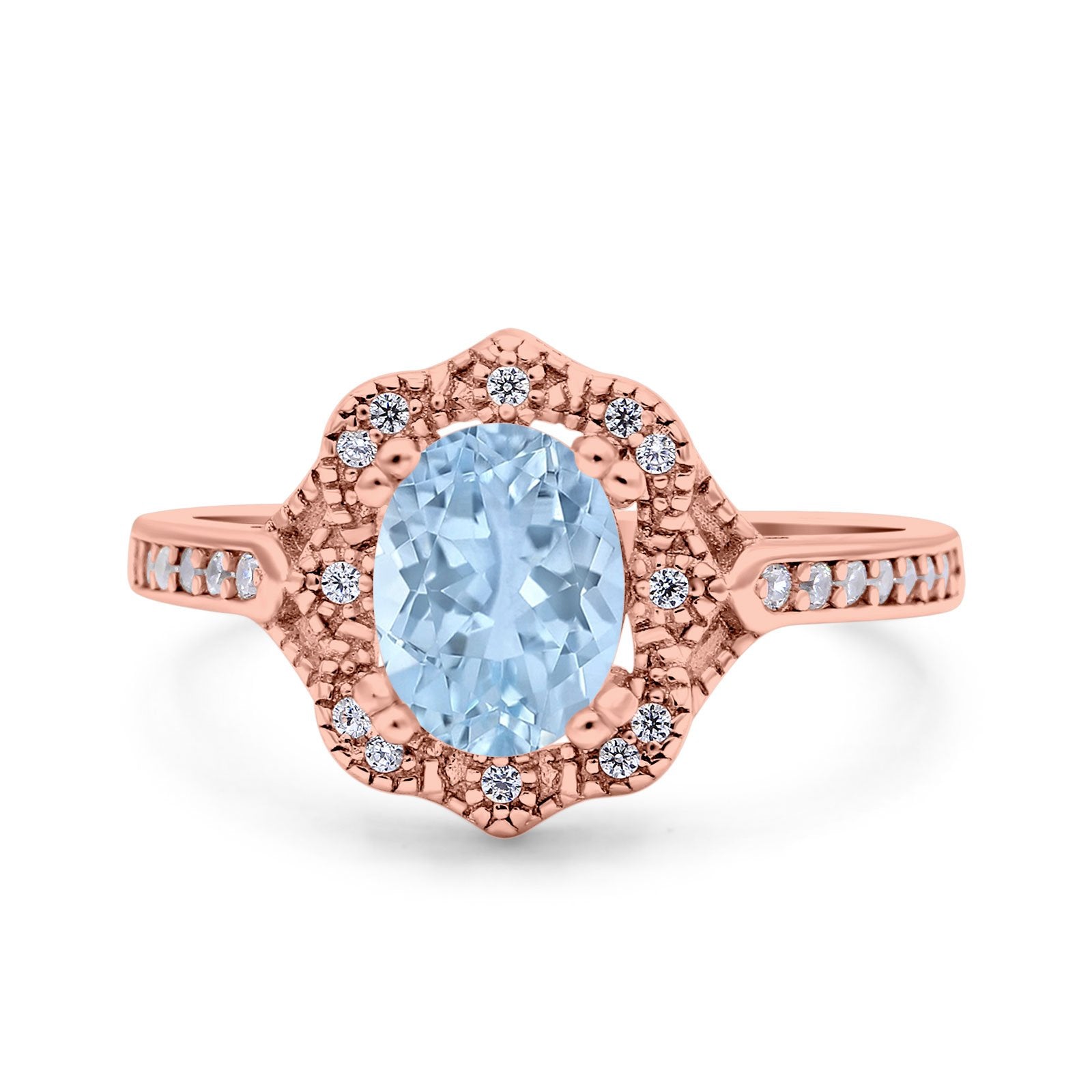 Oval Art Deco Wedding Engagement Bridal Ring Accent Vintage Round Simulated Cubic Zirconia 925 Sterling Silver