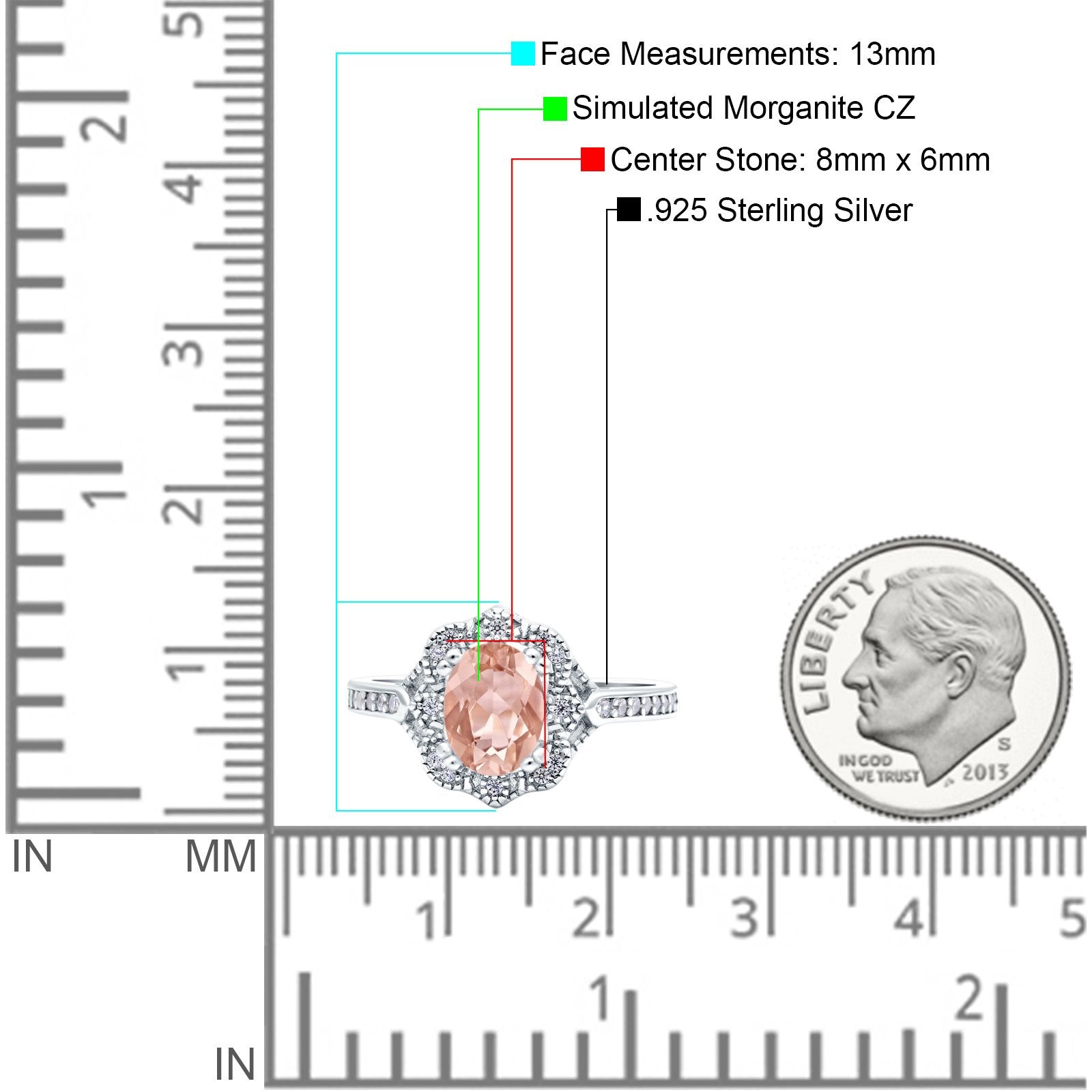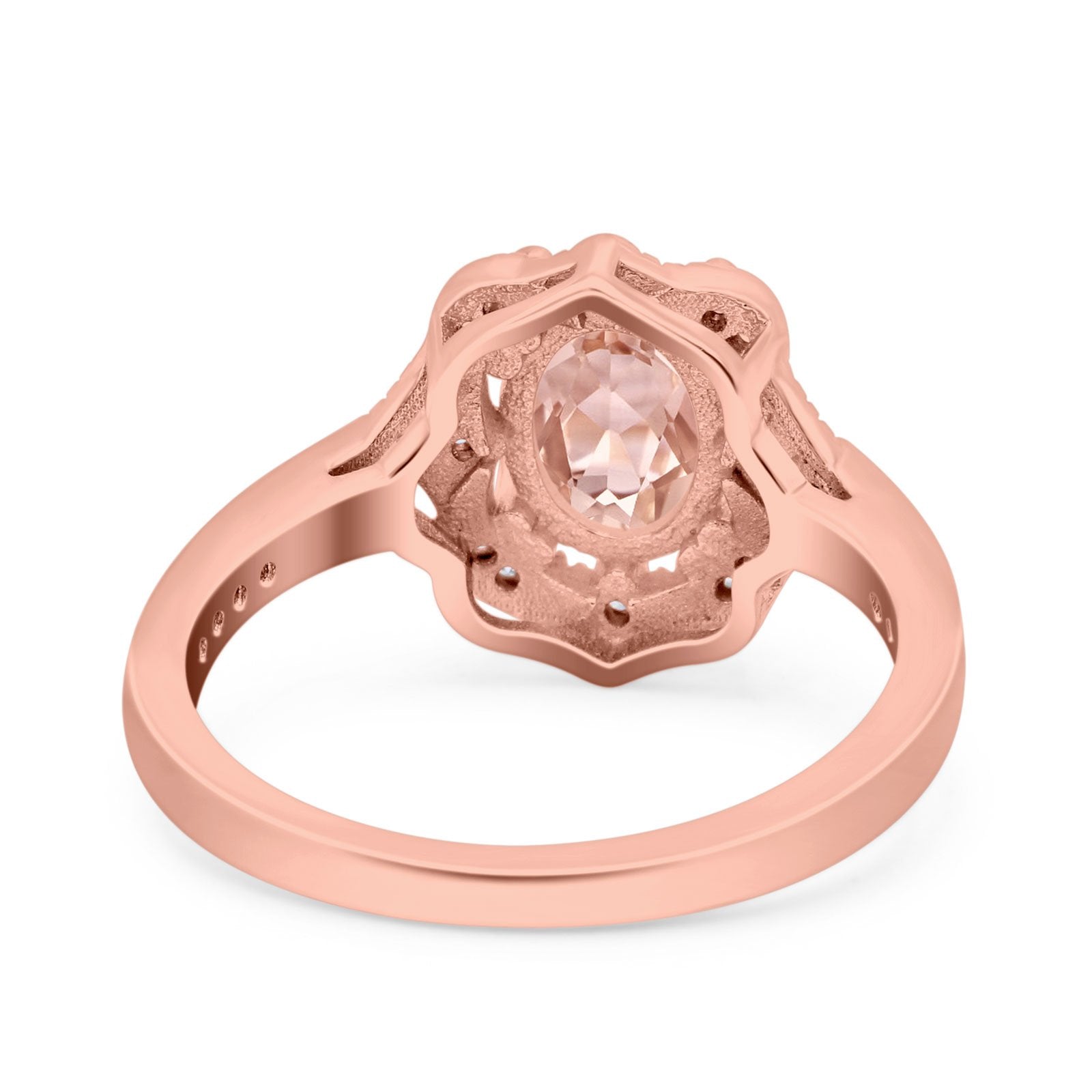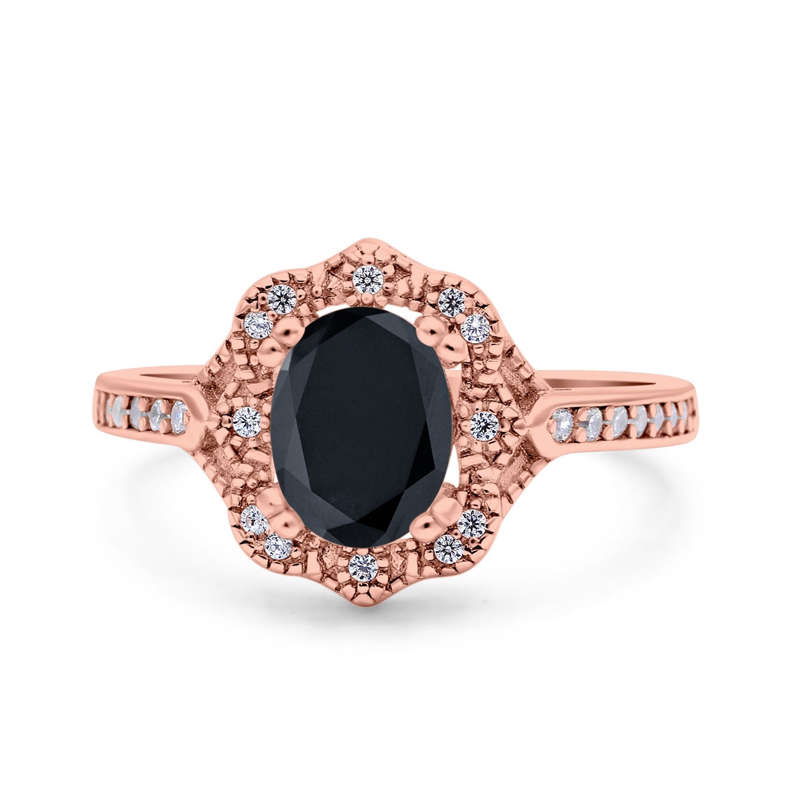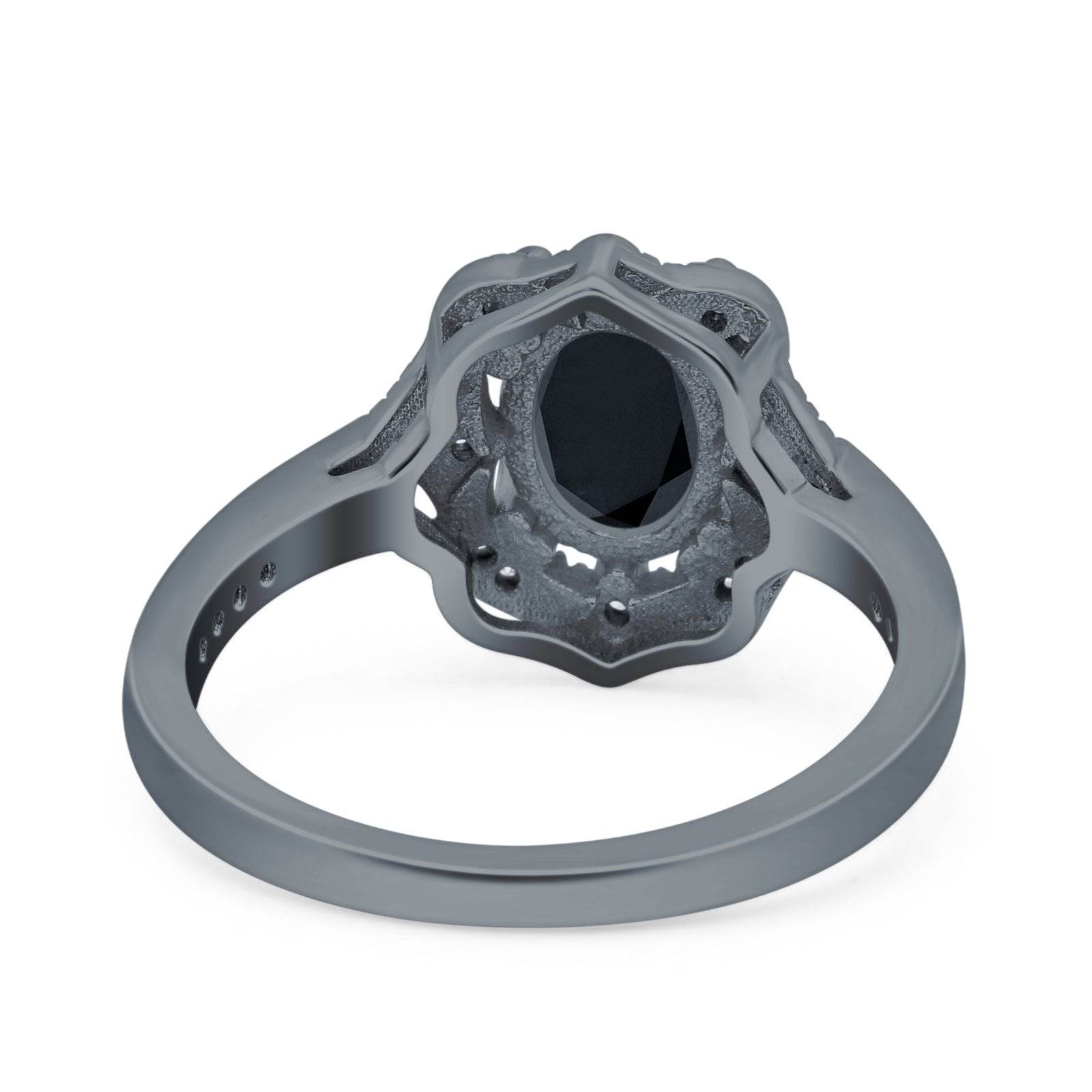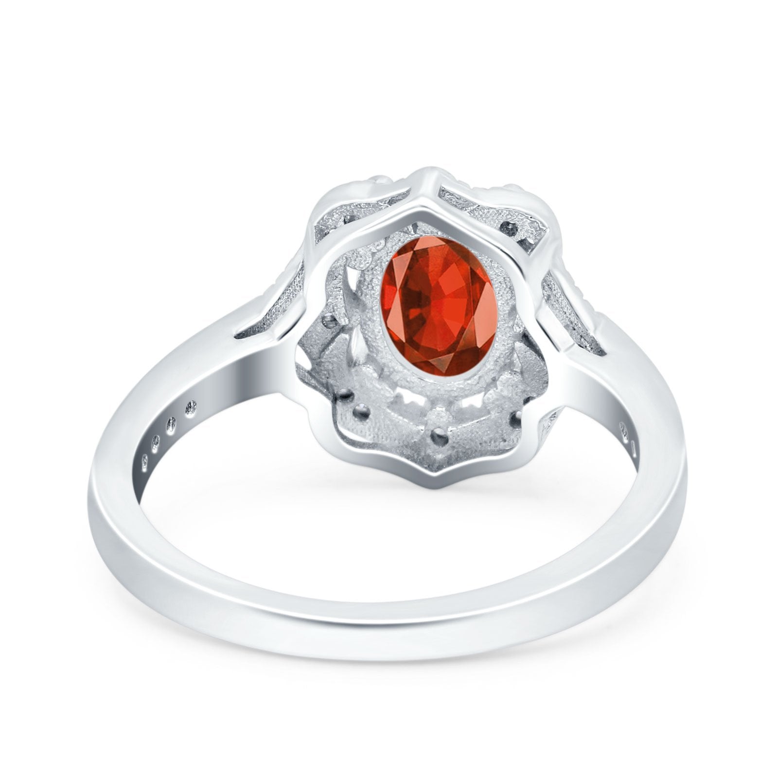 Oval Art Deco Wedding Engagement Bridal Ring Accent Vintage Round Simulated Cubic Zirconia 925 Sterling Silver