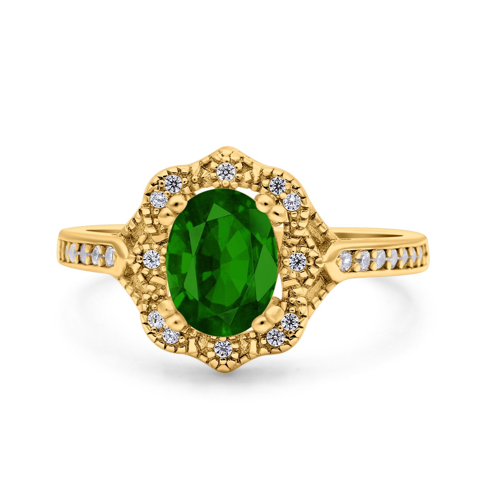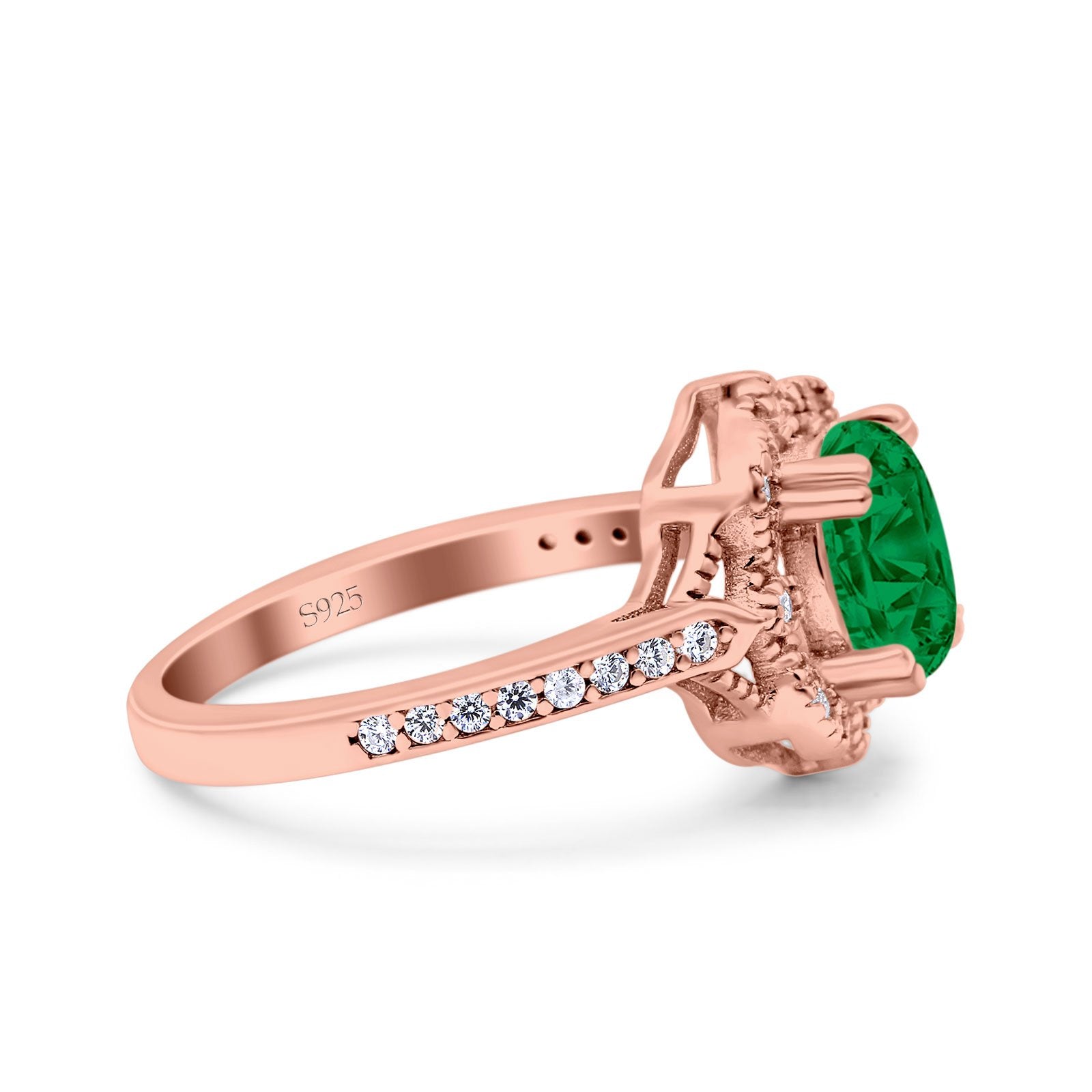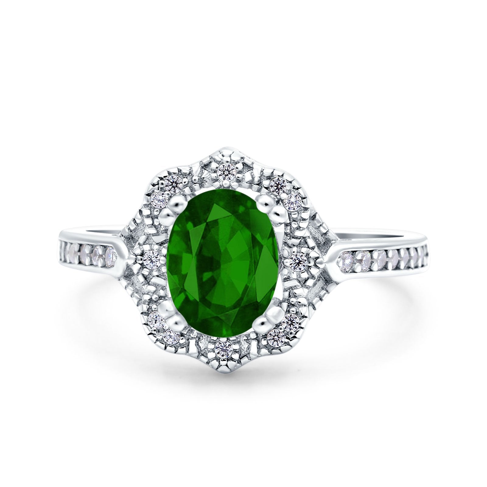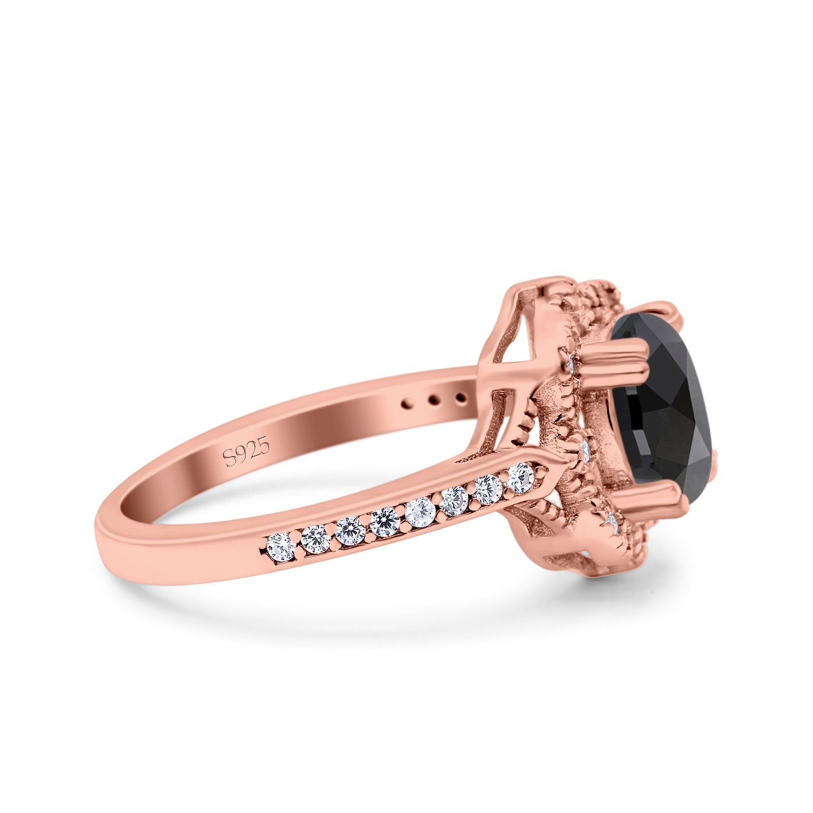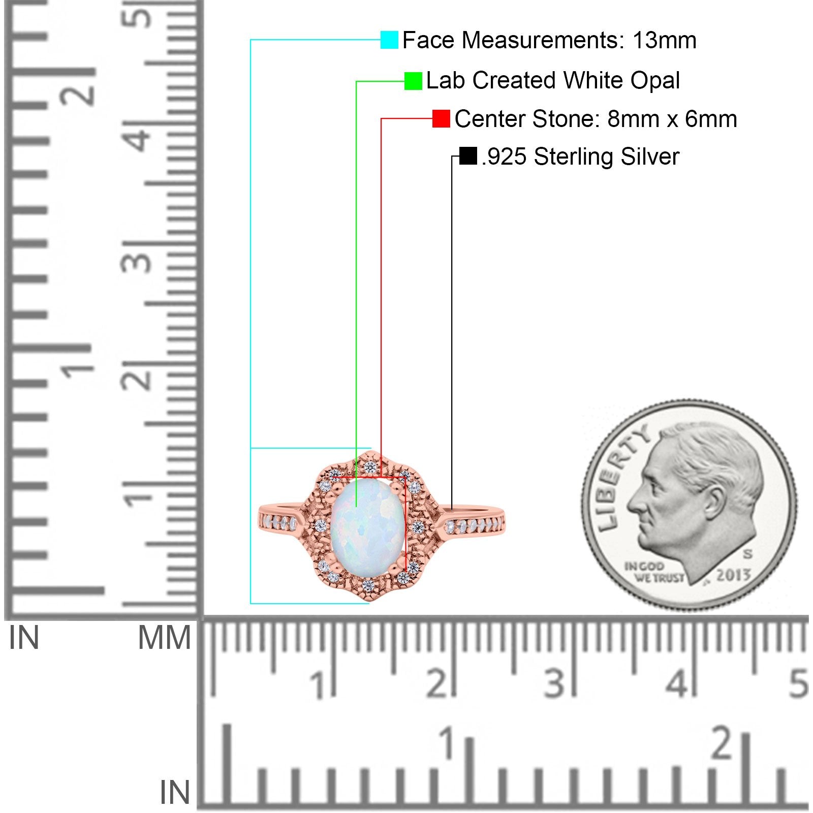 Oval Art Deco Wedding Engagement Bridal Ring Accent Vintage Round Simulated Cubic Zirconia 925 Sterling Silver