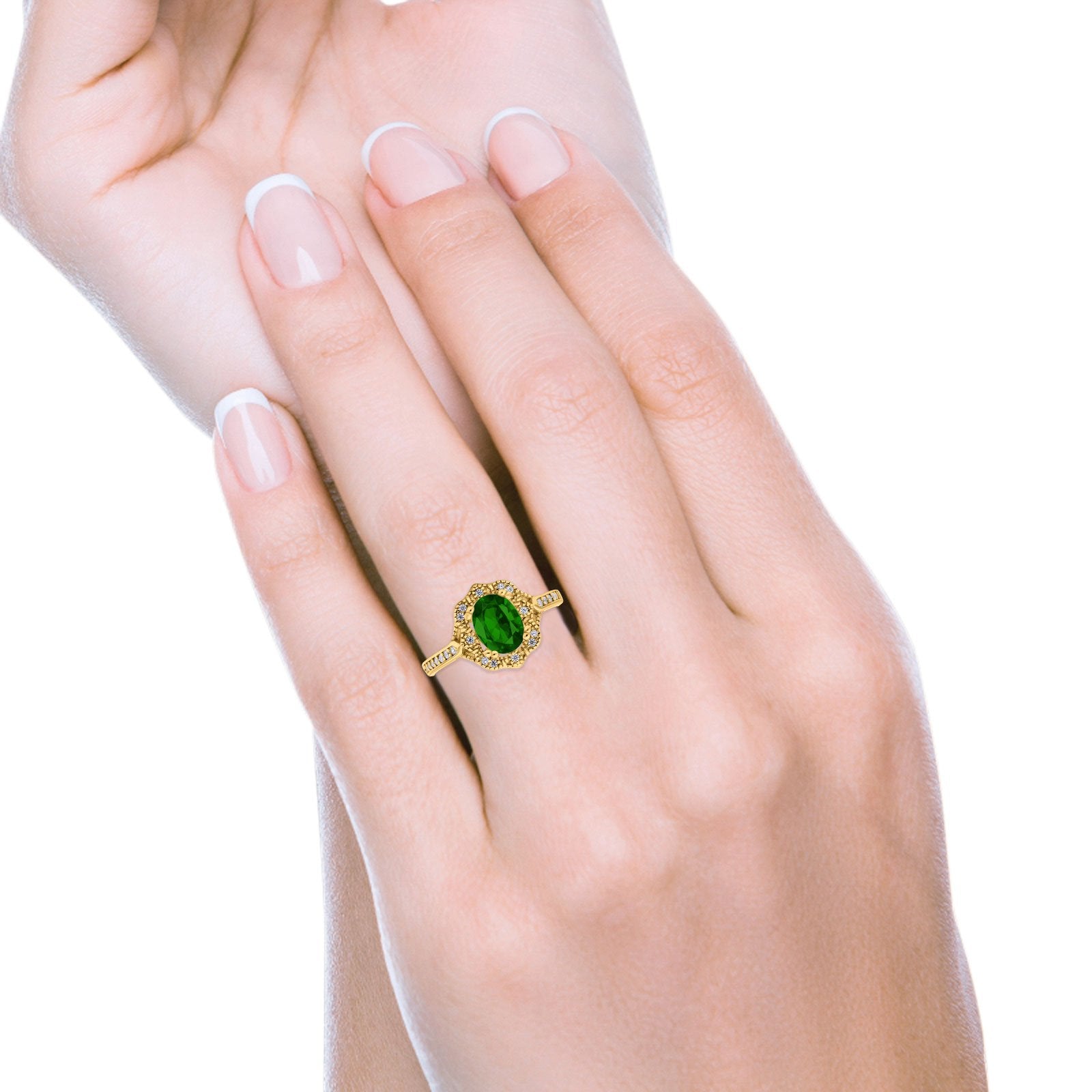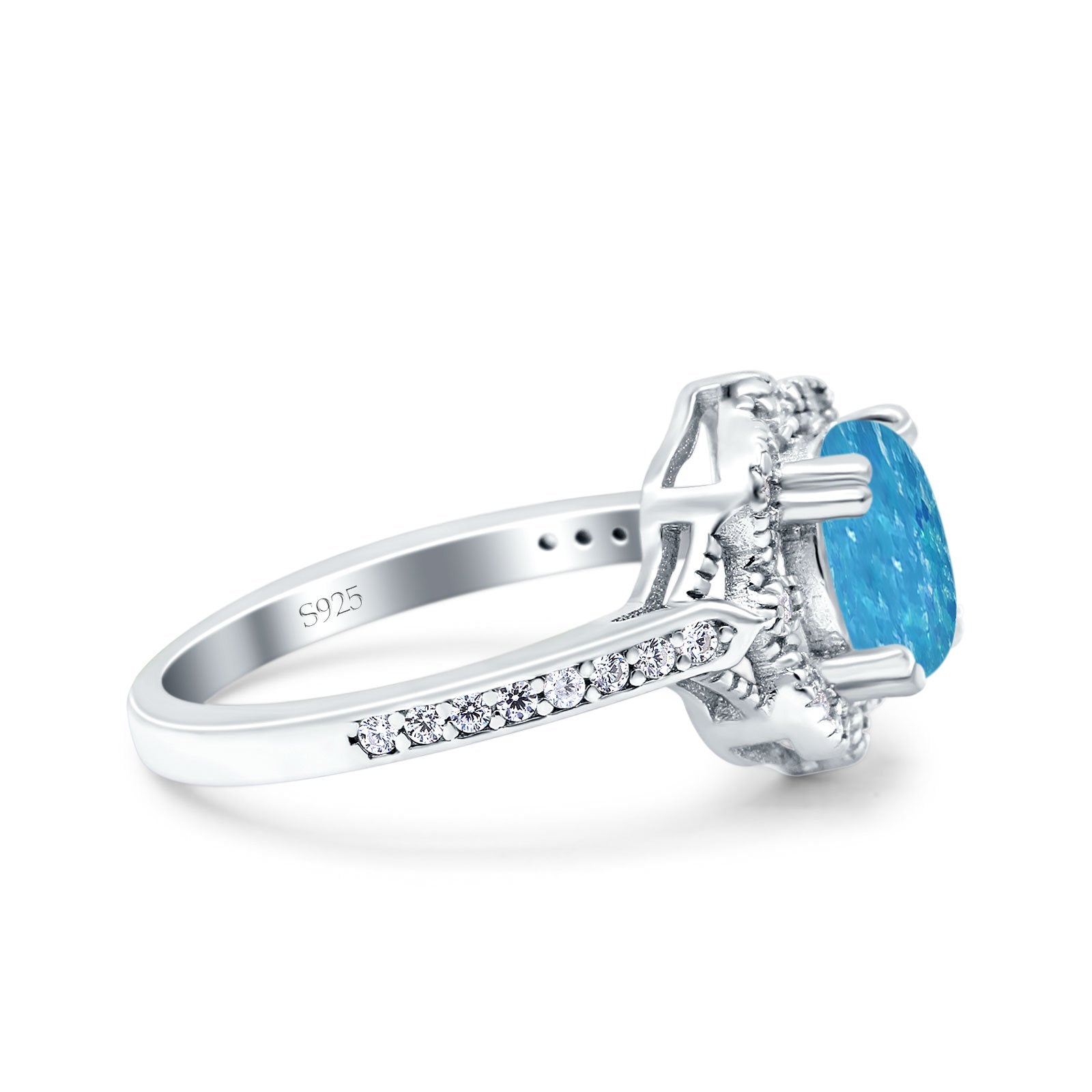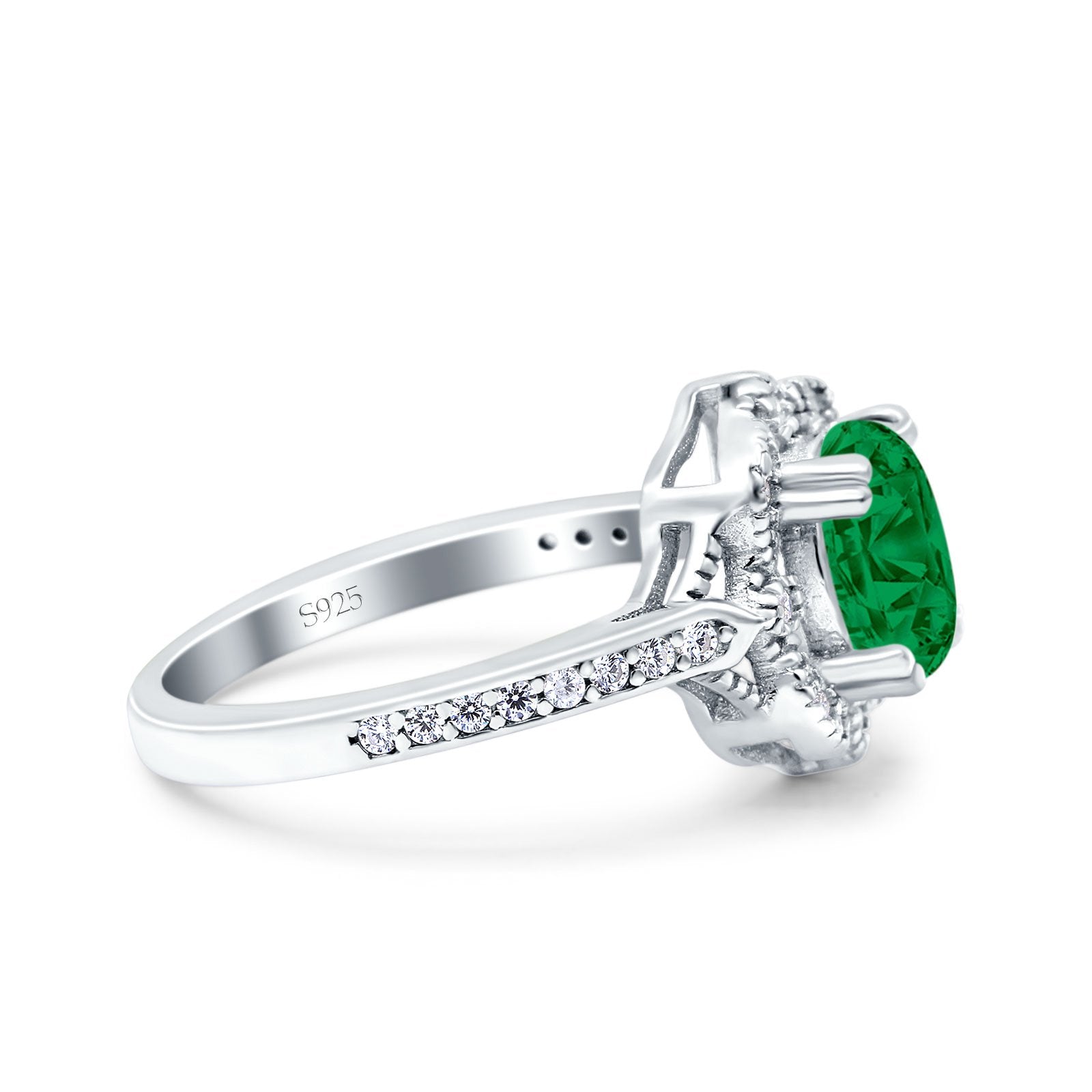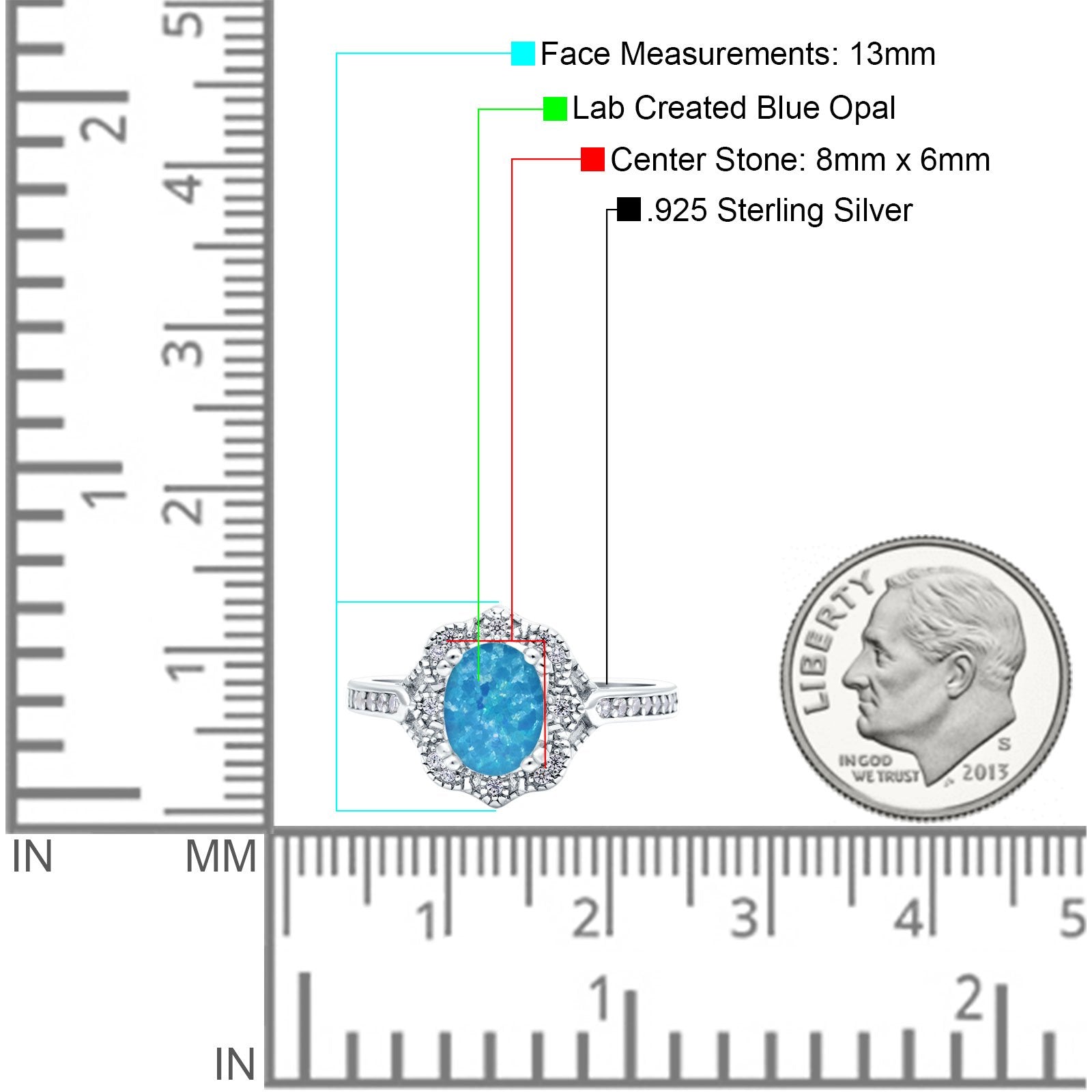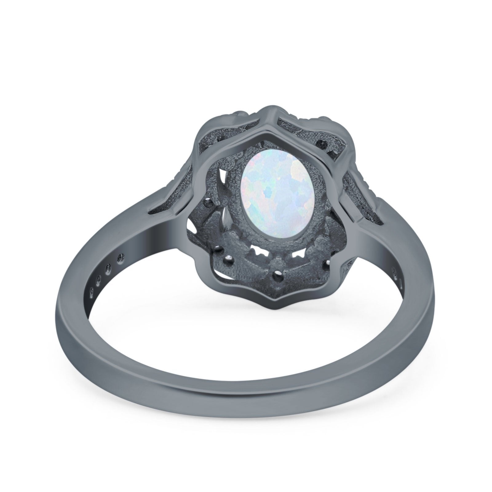Oval Art Deco Wedding Engagement Bridal Ring Accent Vintage Round Simulated Cubic Zirconia 925 Sterling Silver