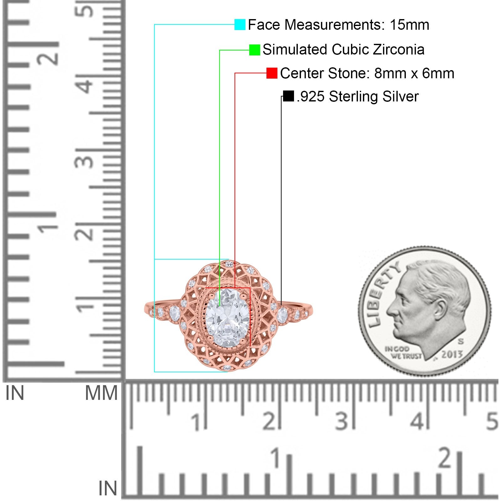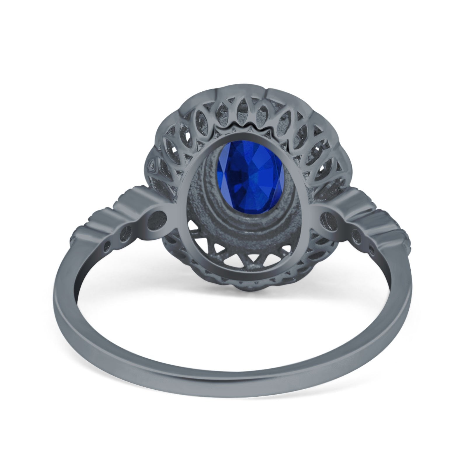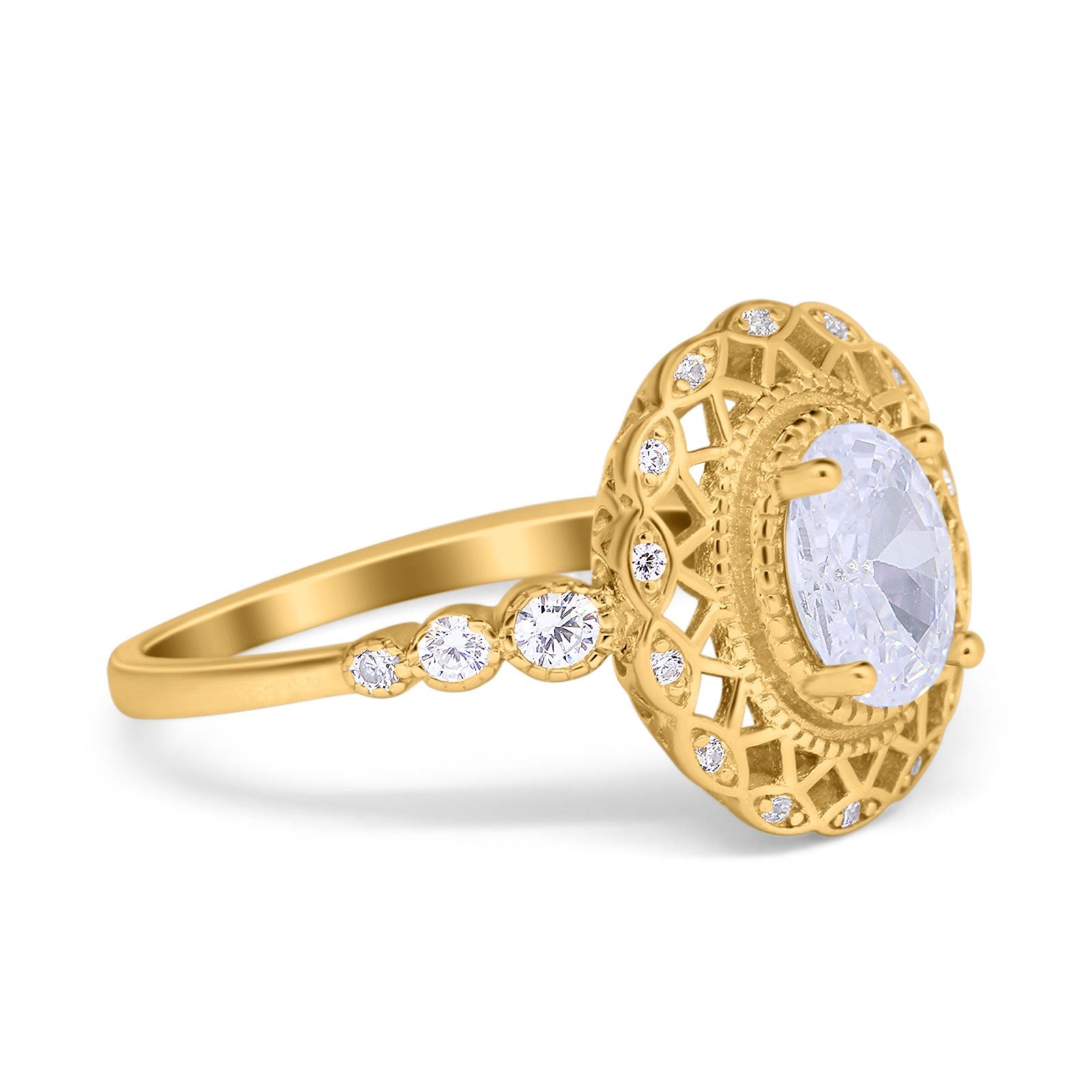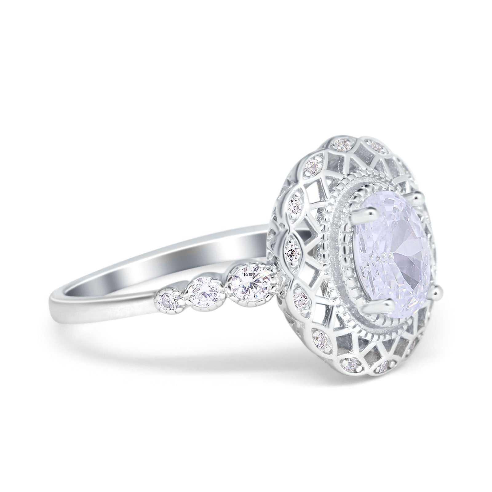 Oval Vintage Art Deco Halo Wedding Engagement Bridal Ring Round Simulated Cubic Zirconia 925 Sterling Silver
