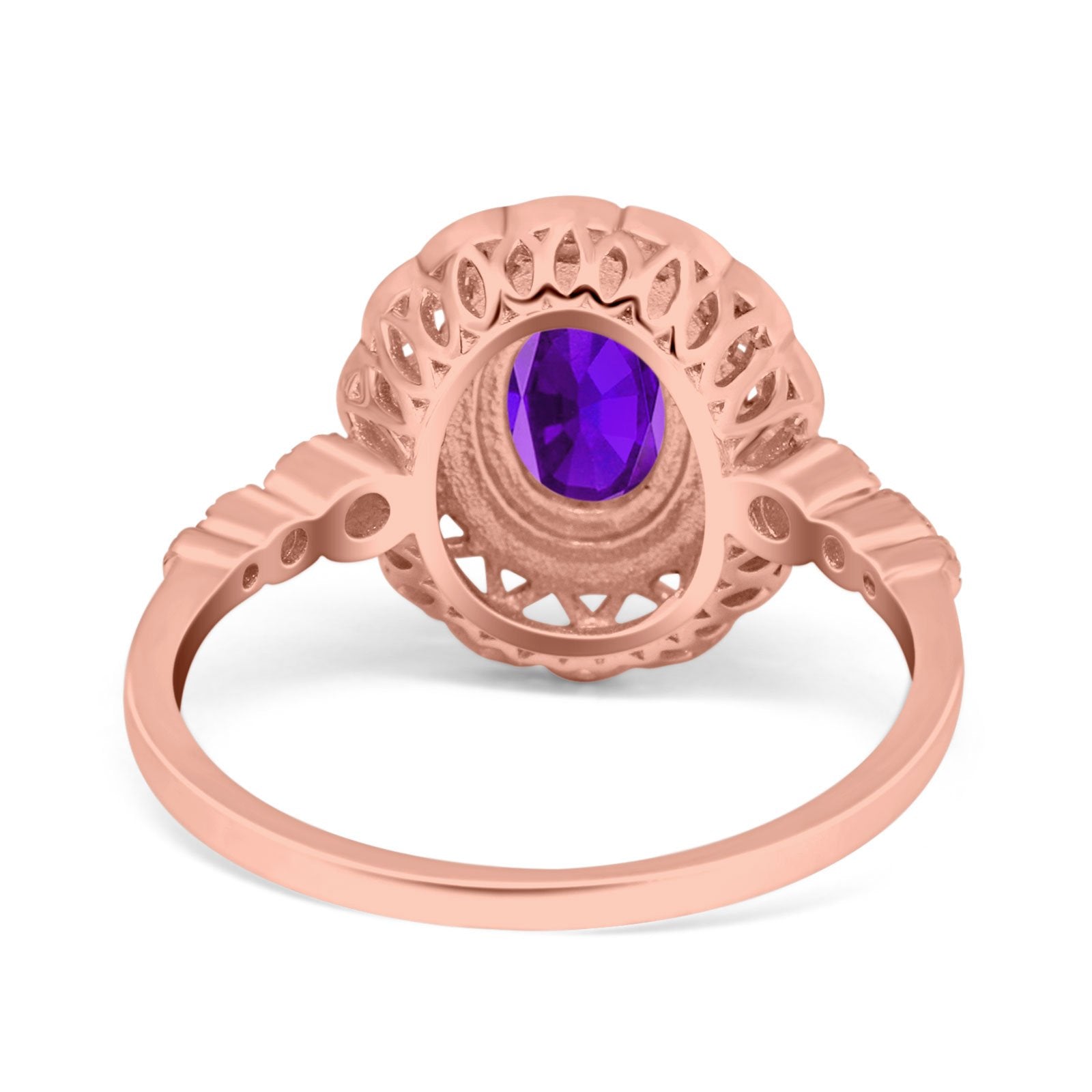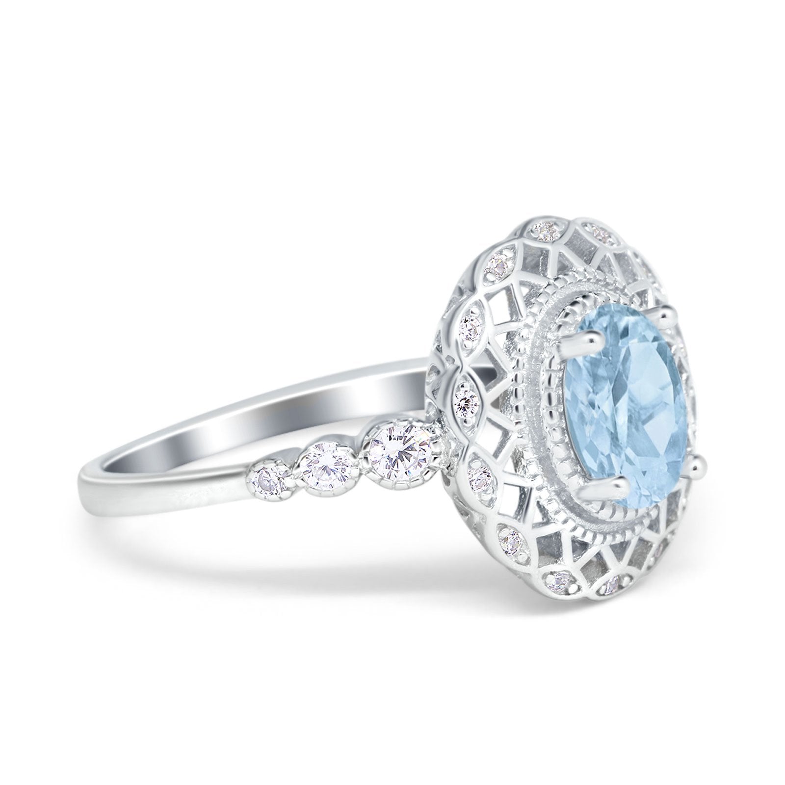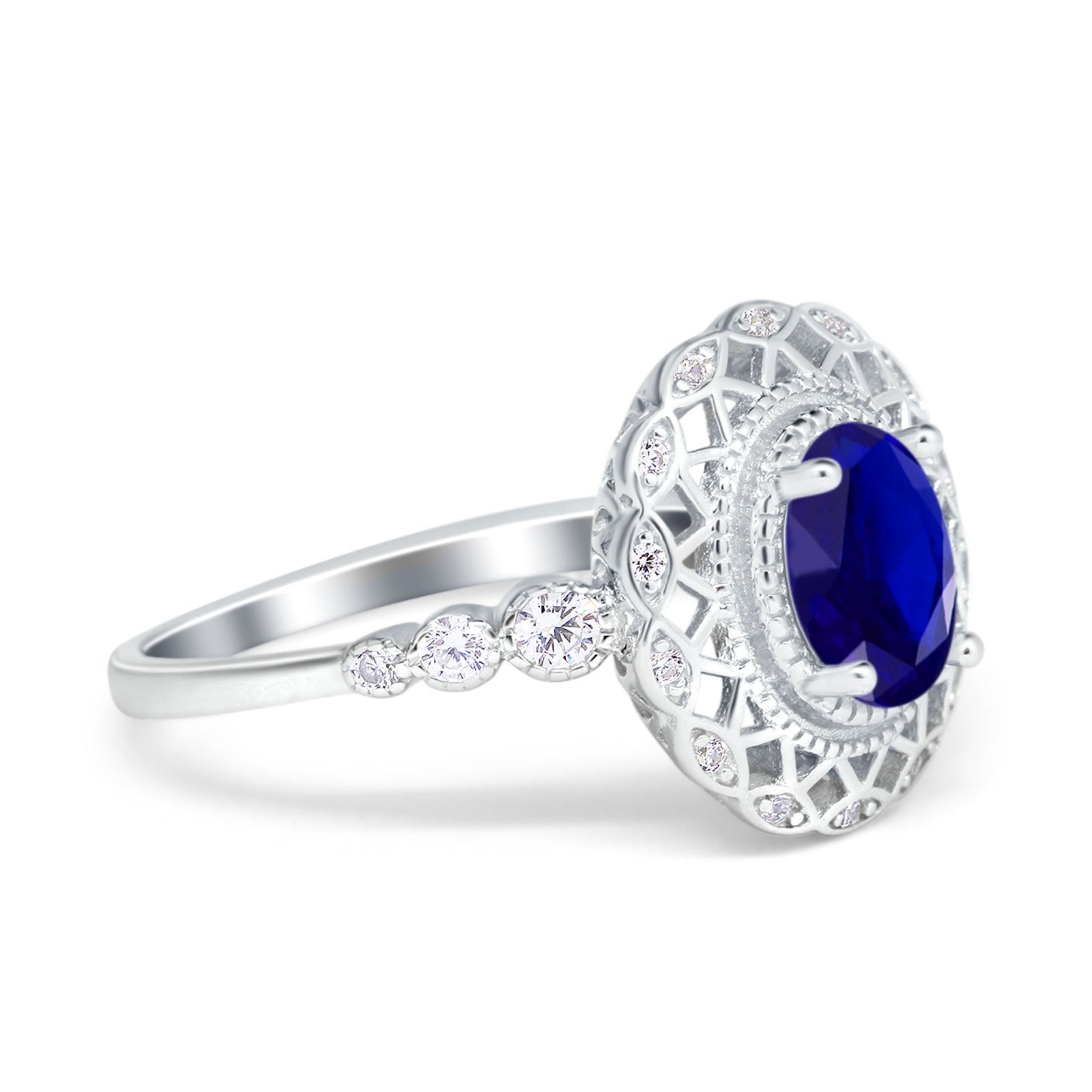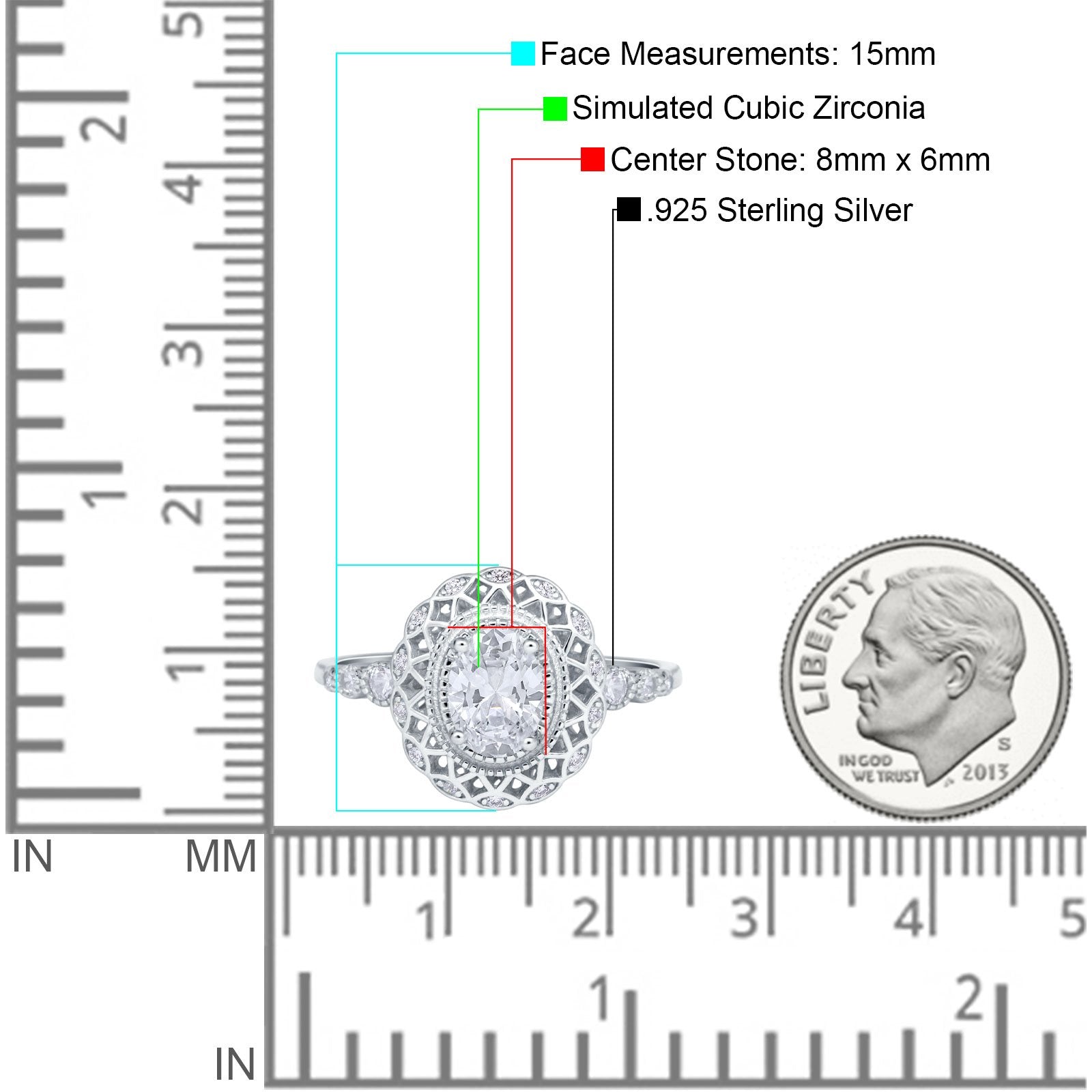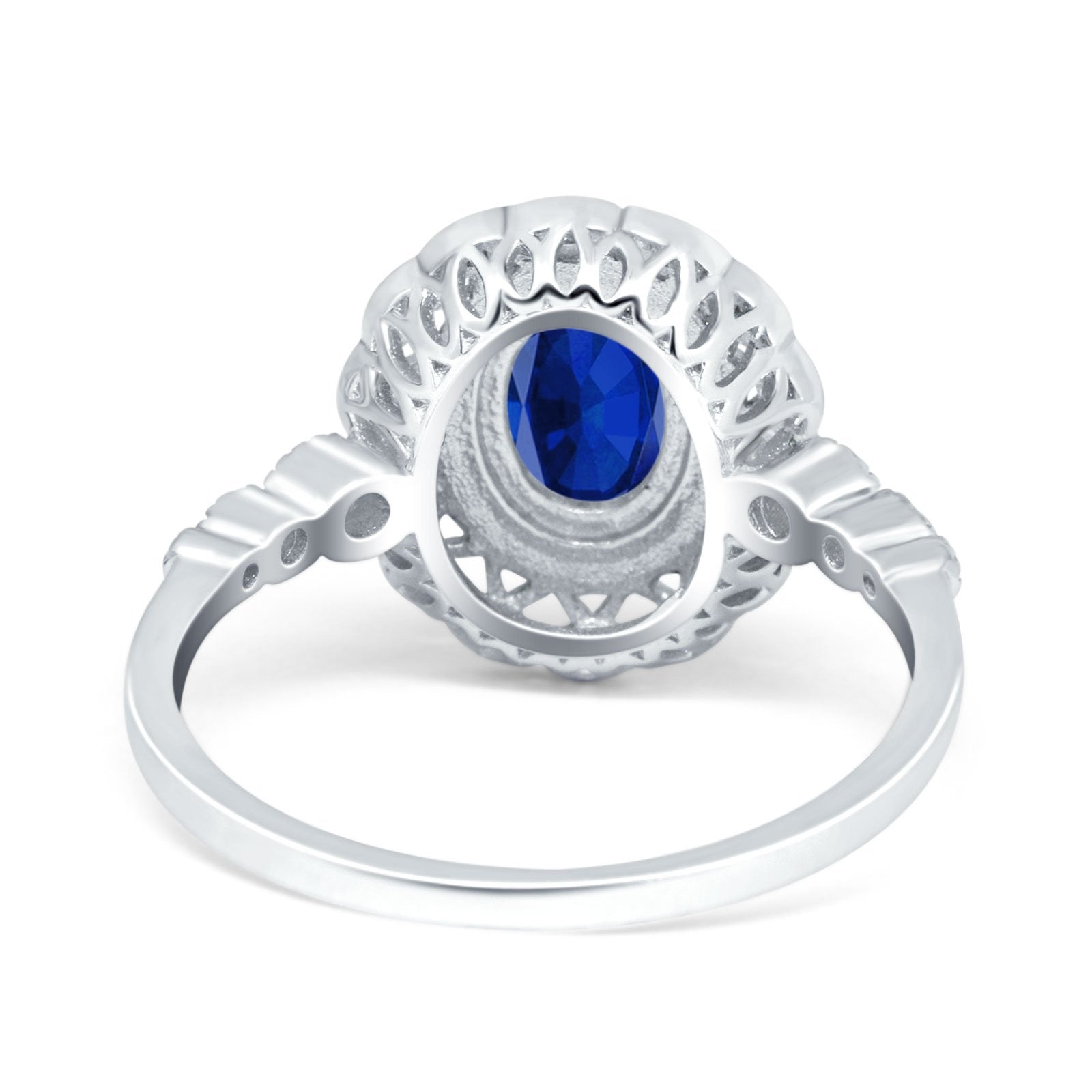 Oval Vintage Art Deco Halo Wedding Engagement Bridal Ring Round Simulated Cubic Zirconia 925 Sterling Silver