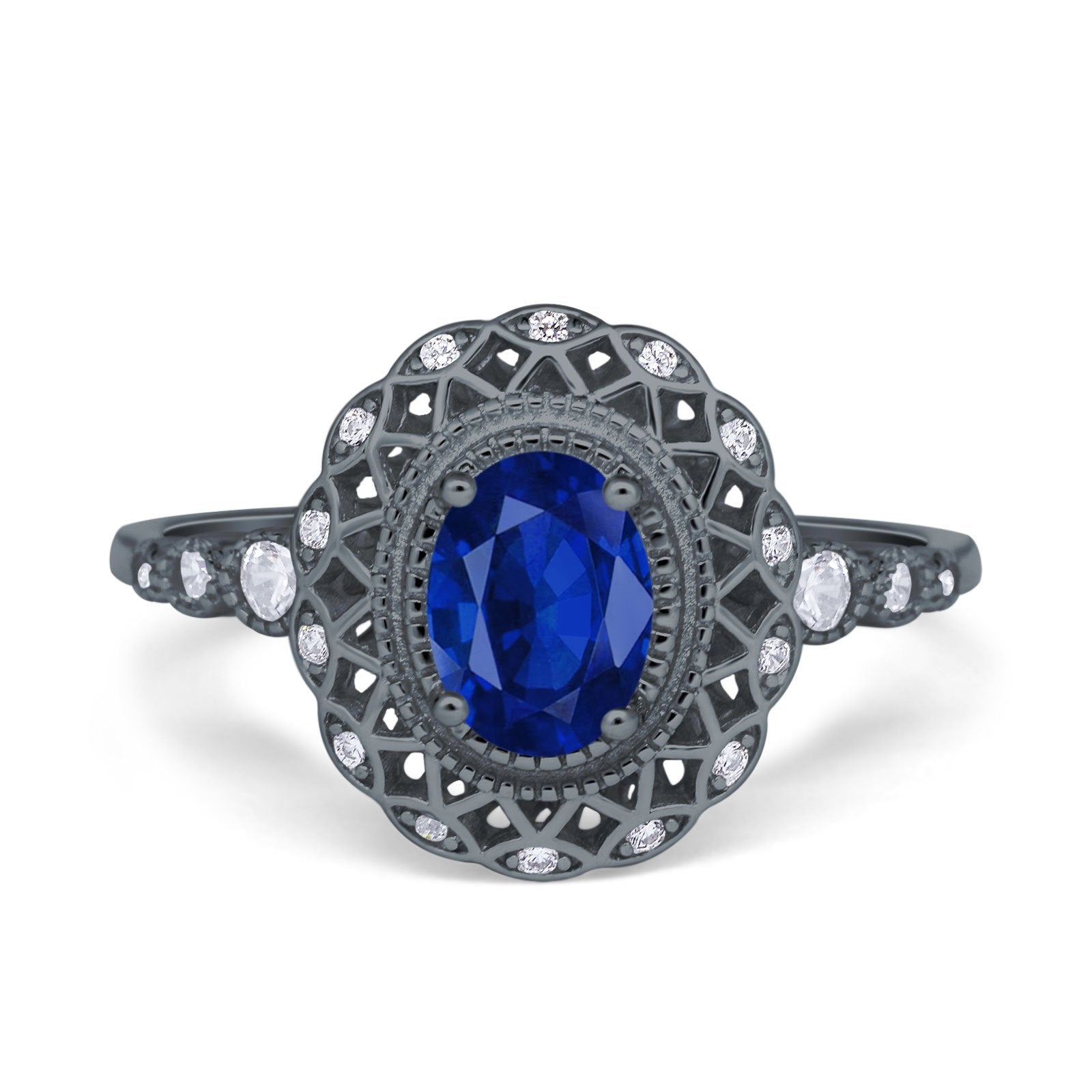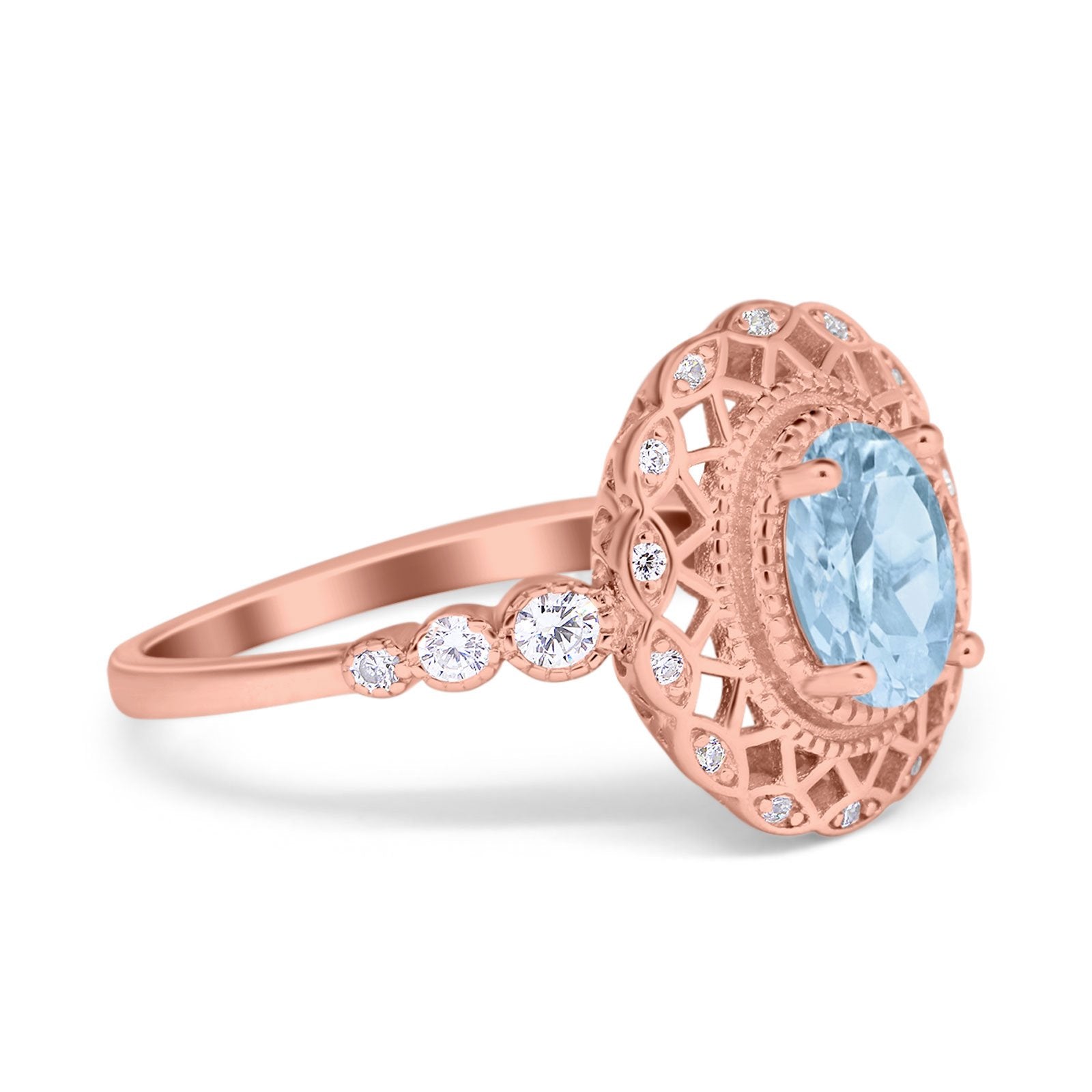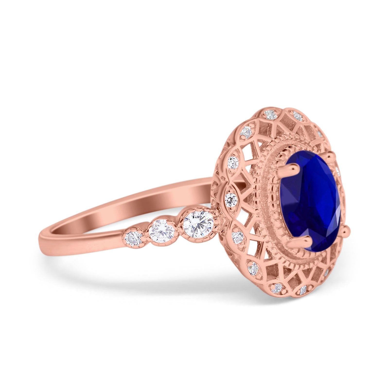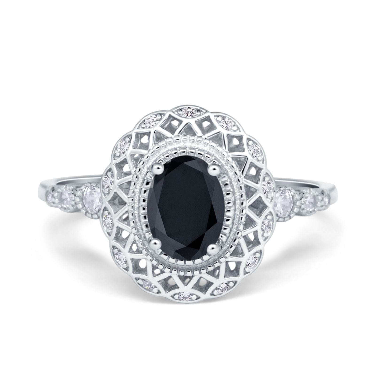 Oval Vintage Art Deco Halo Wedding Engagement Bridal Ring Round Simulated Cubic Zirconia 925 Sterling Silver