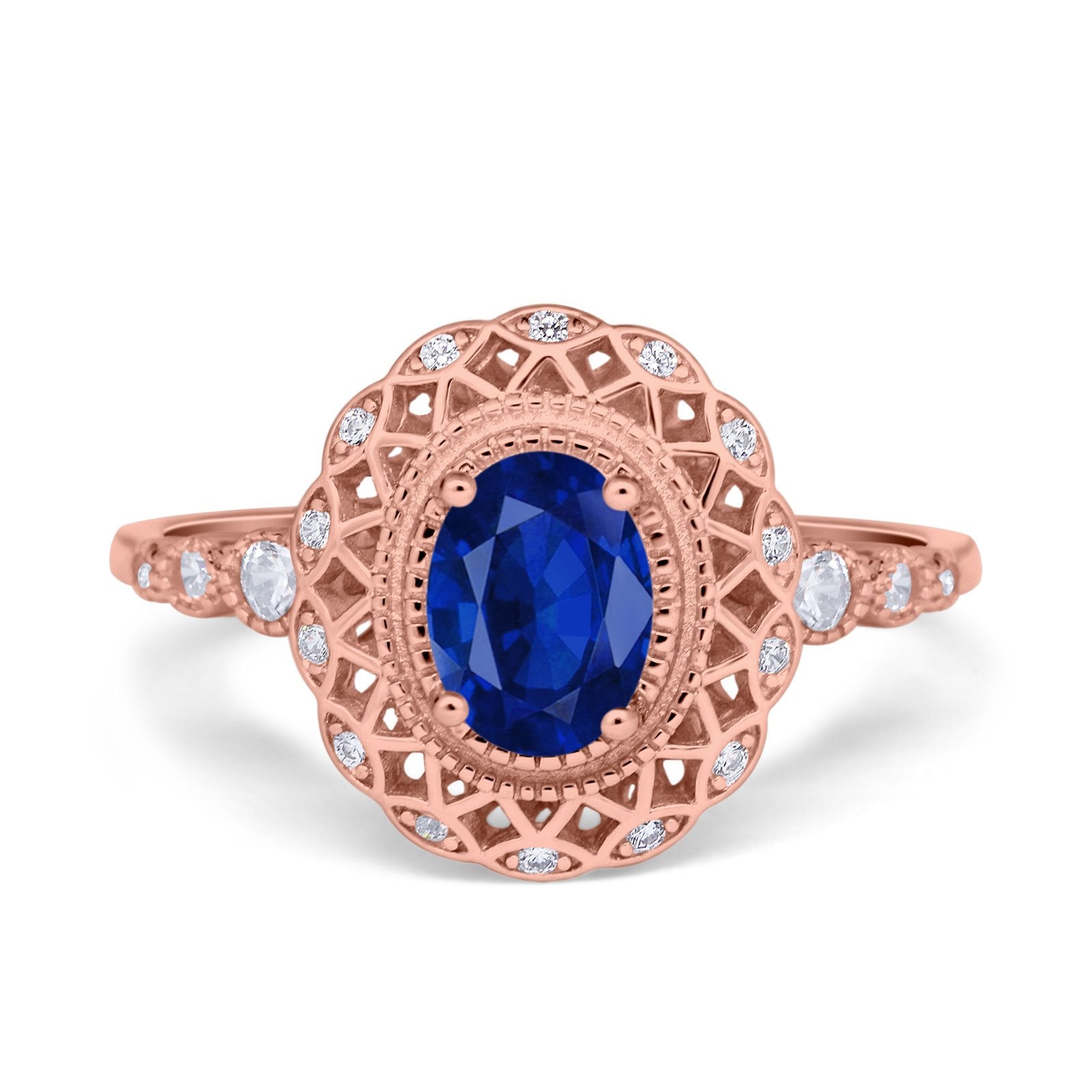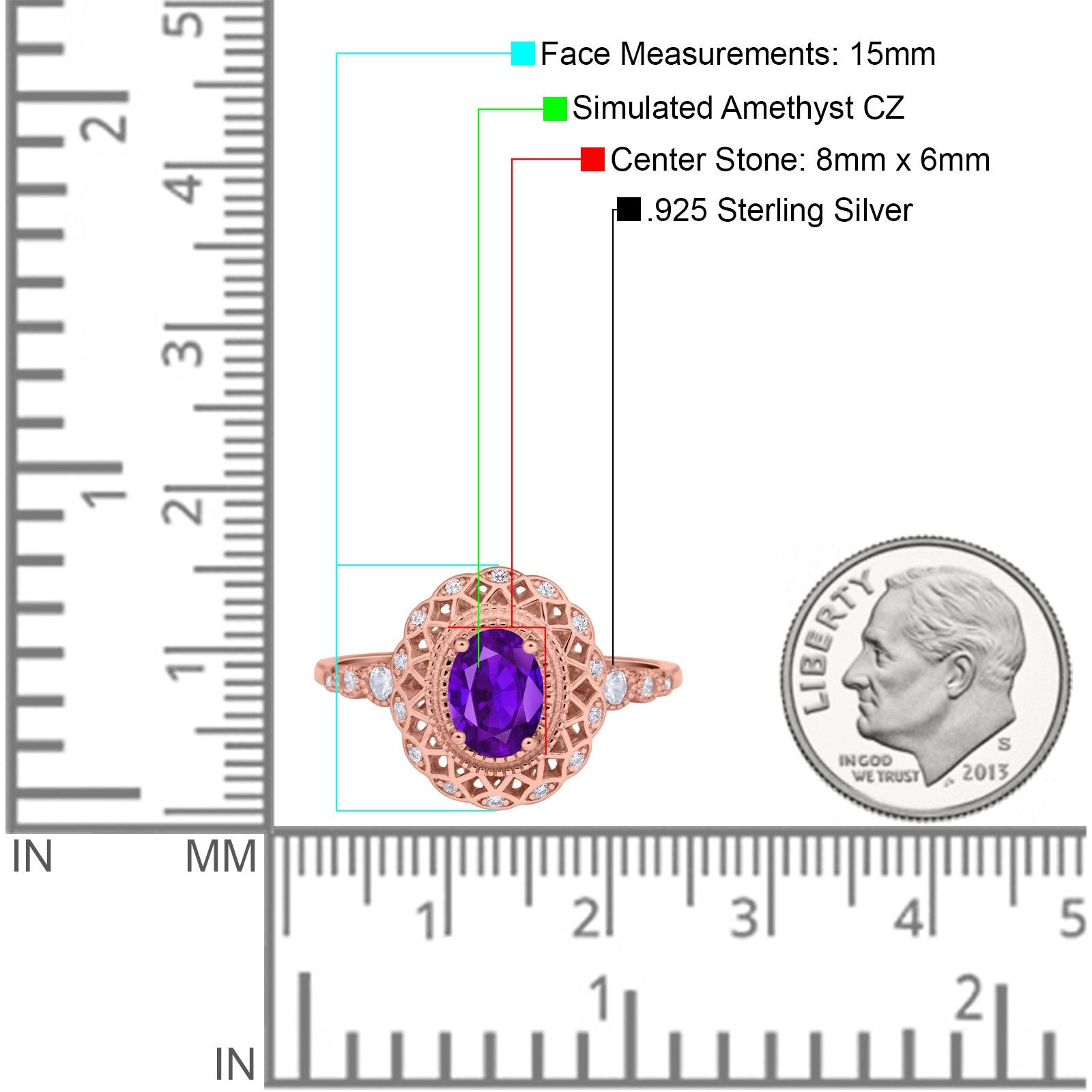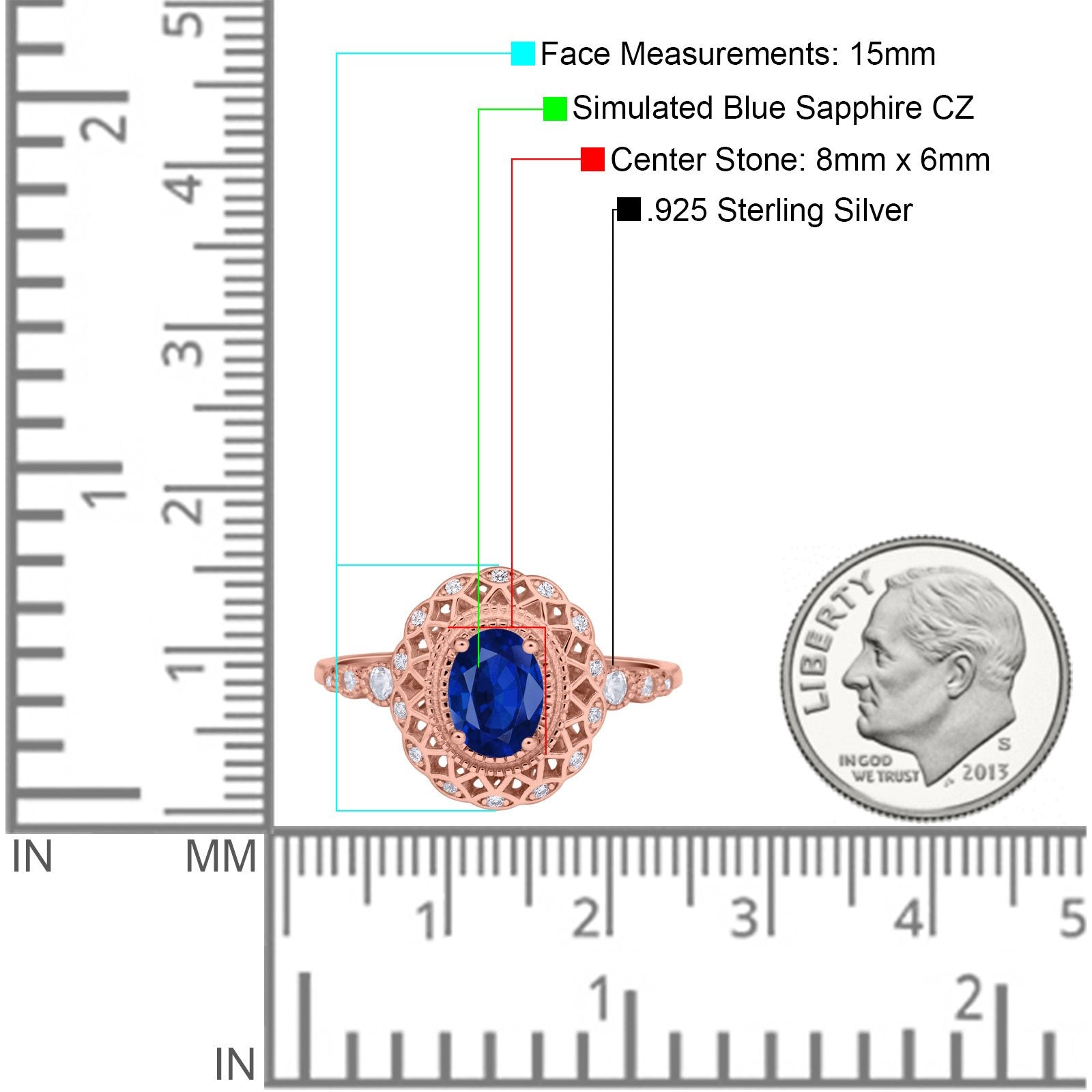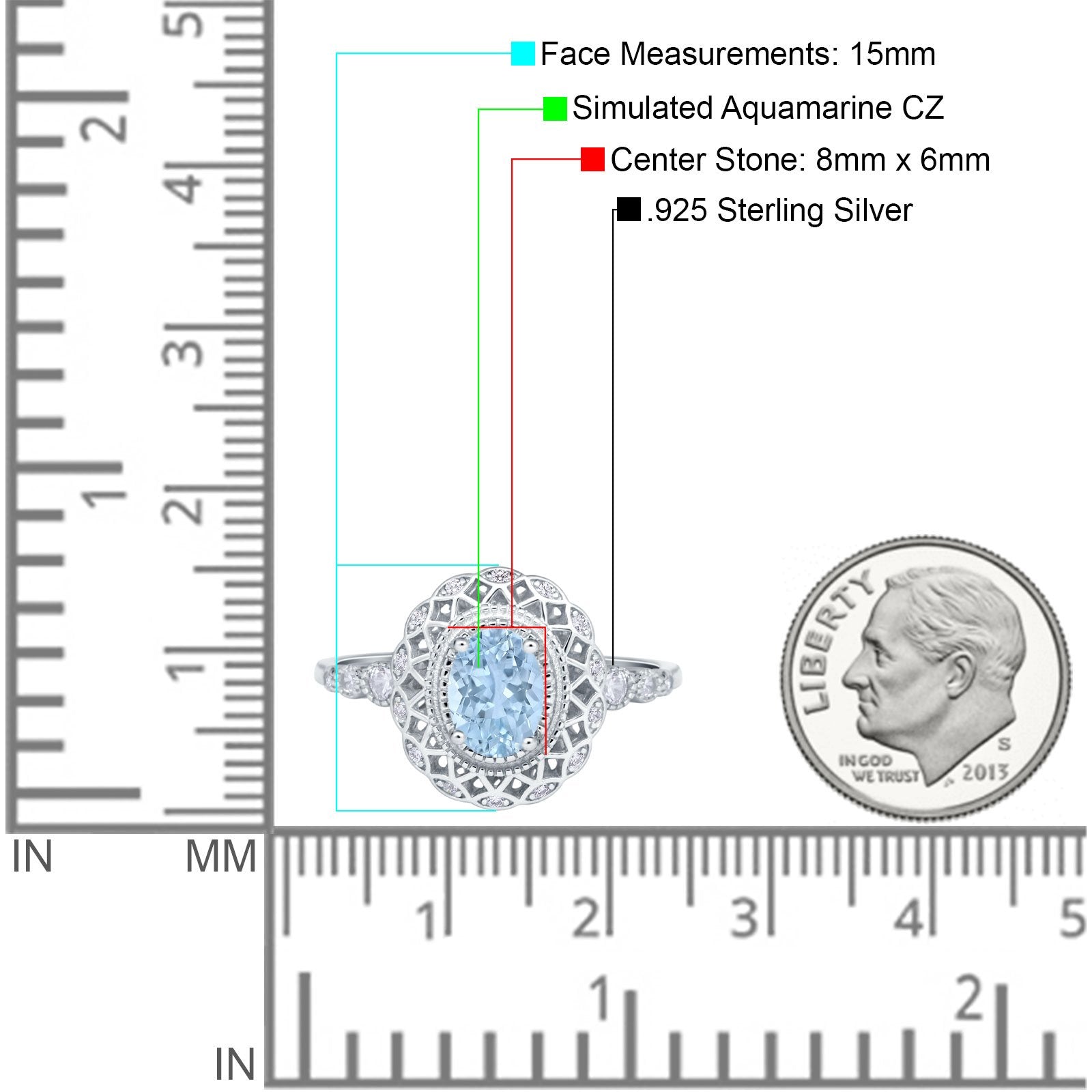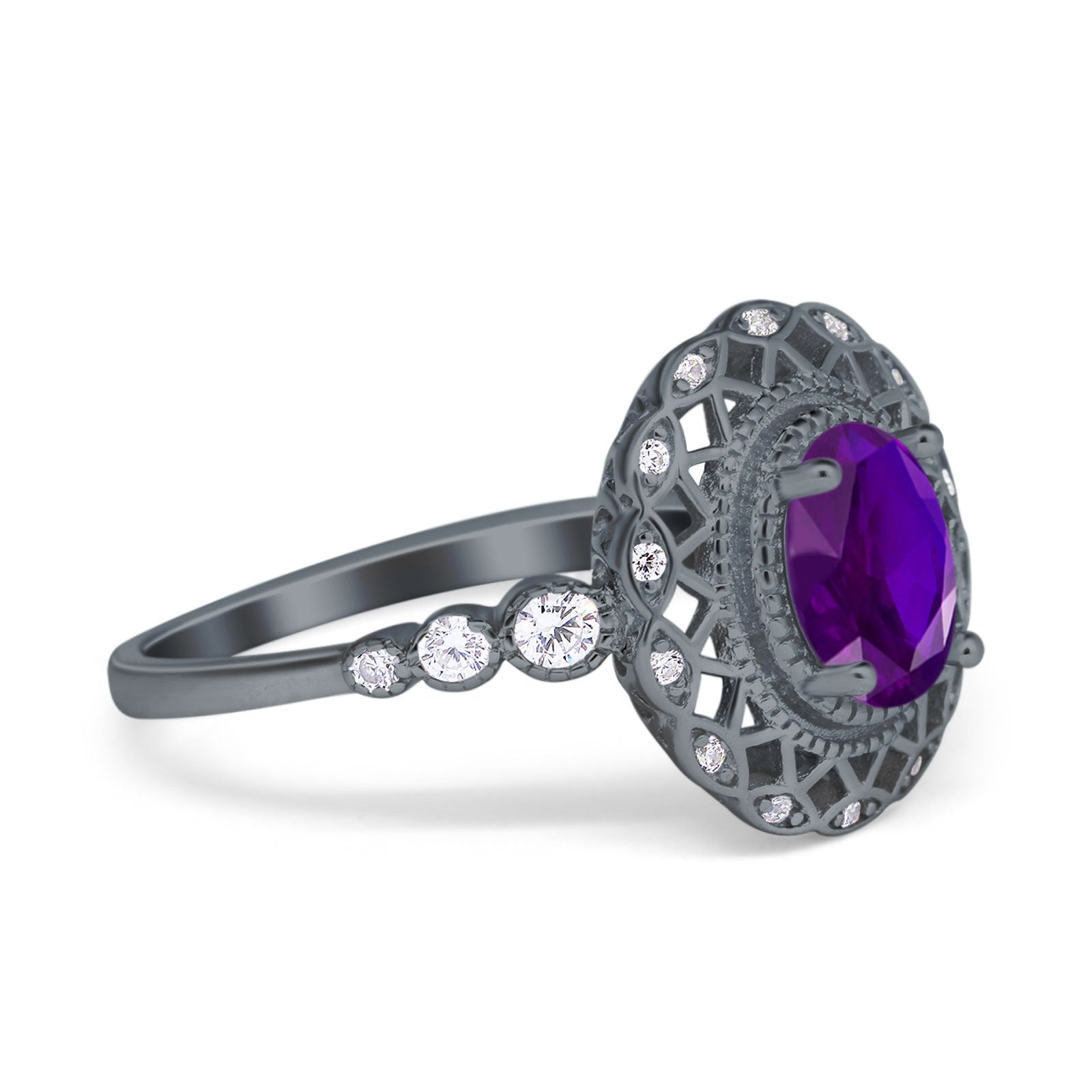 Oval Vintage Art Deco Halo Wedding Engagement Bridal Ring Round Simulated Cubic Zirconia 925 Sterling Silver