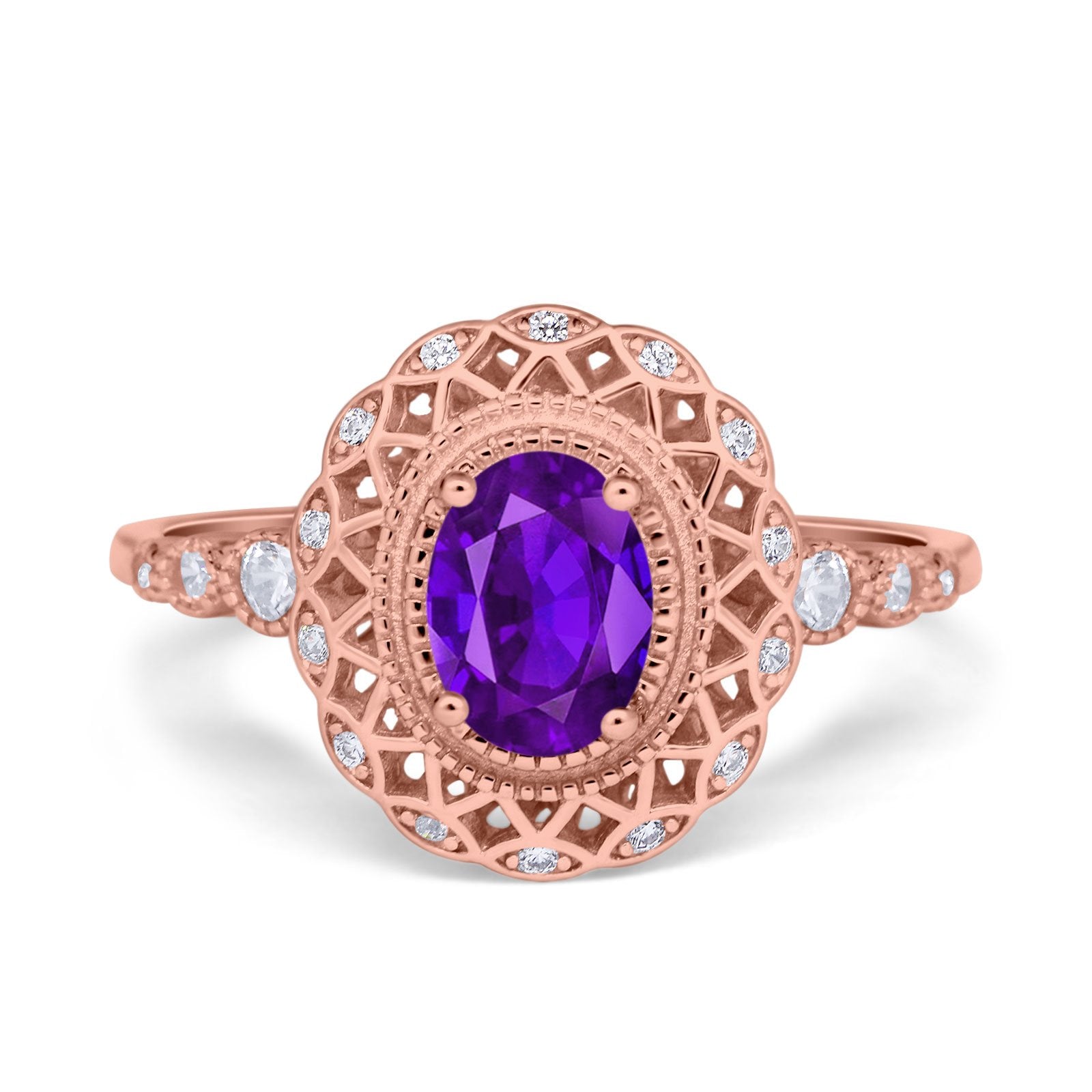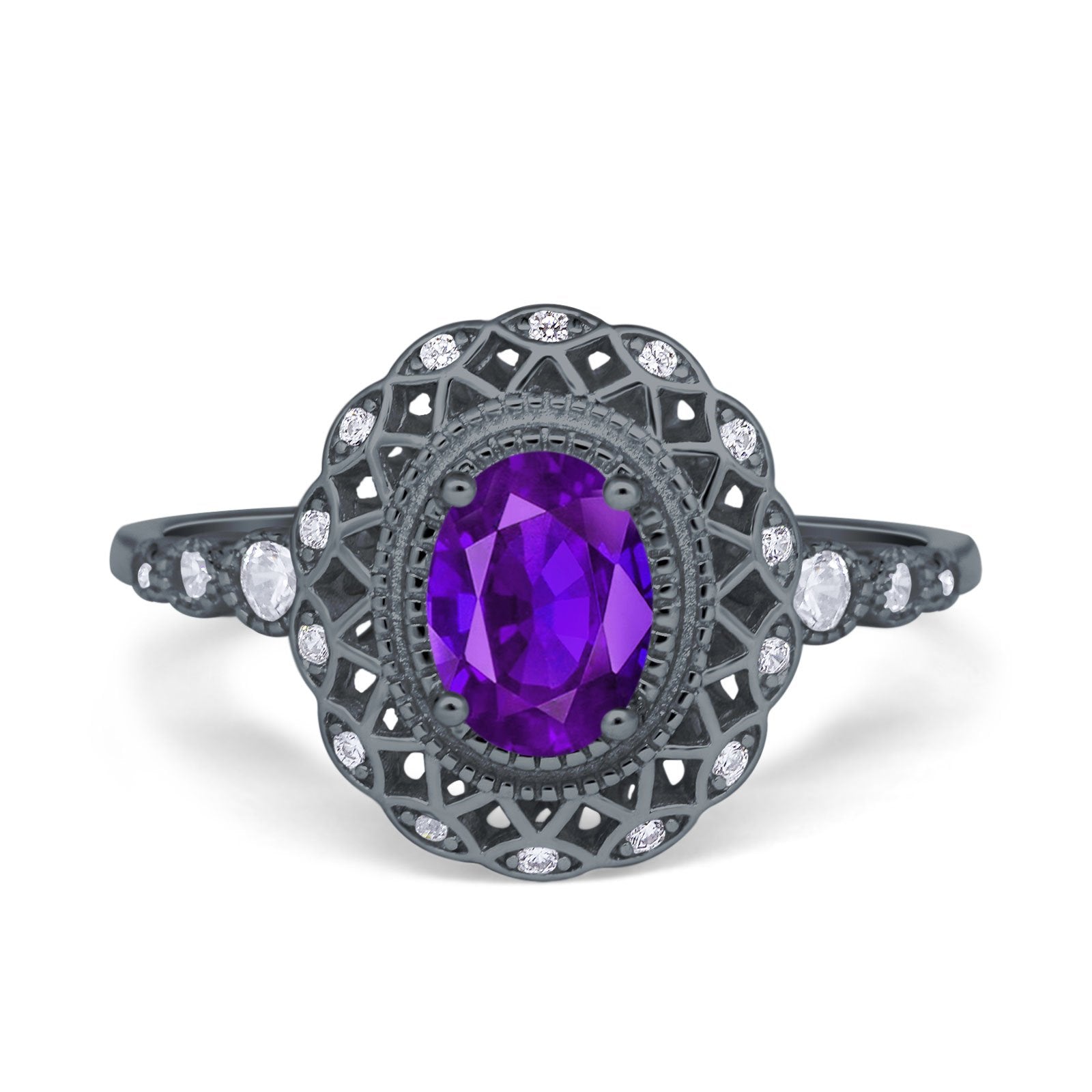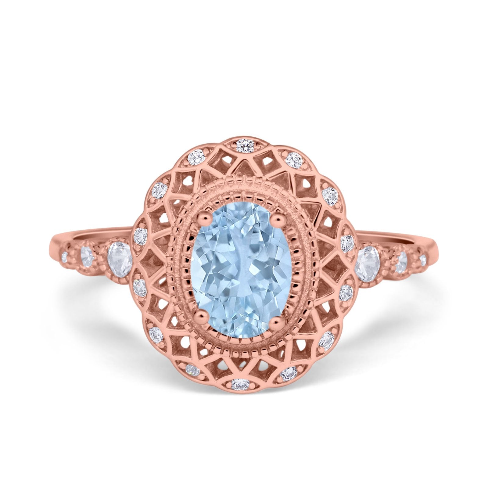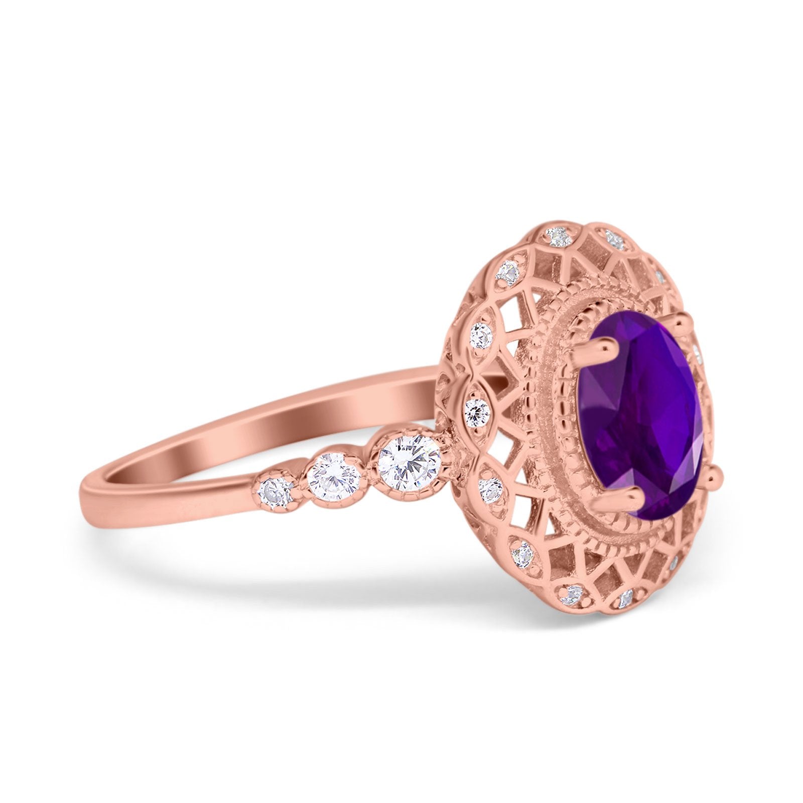 Oval Vintage Art Deco Halo Wedding Engagement Bridal Ring Round Simulated Cubic Zirconia 925 Sterling Silver