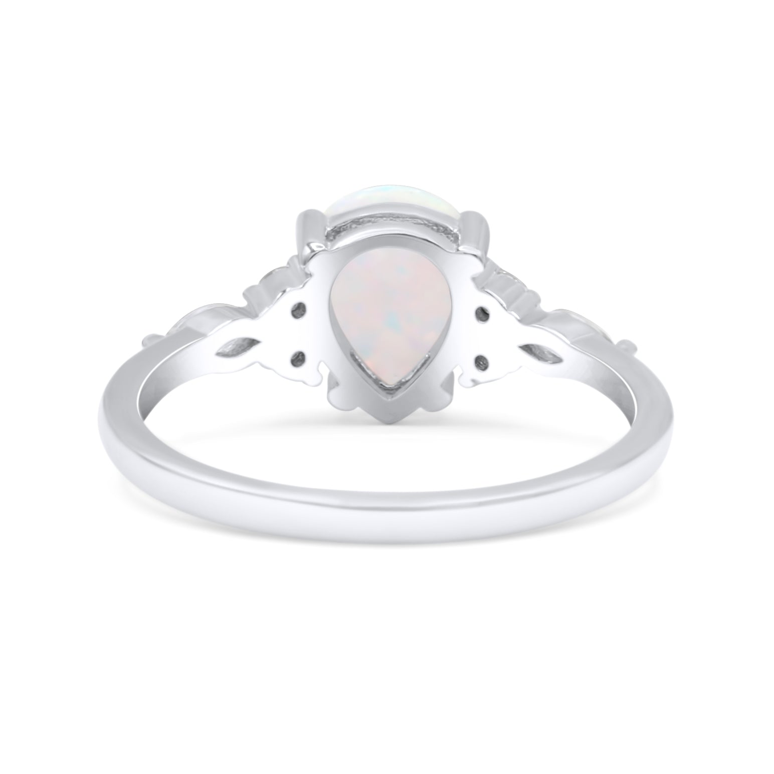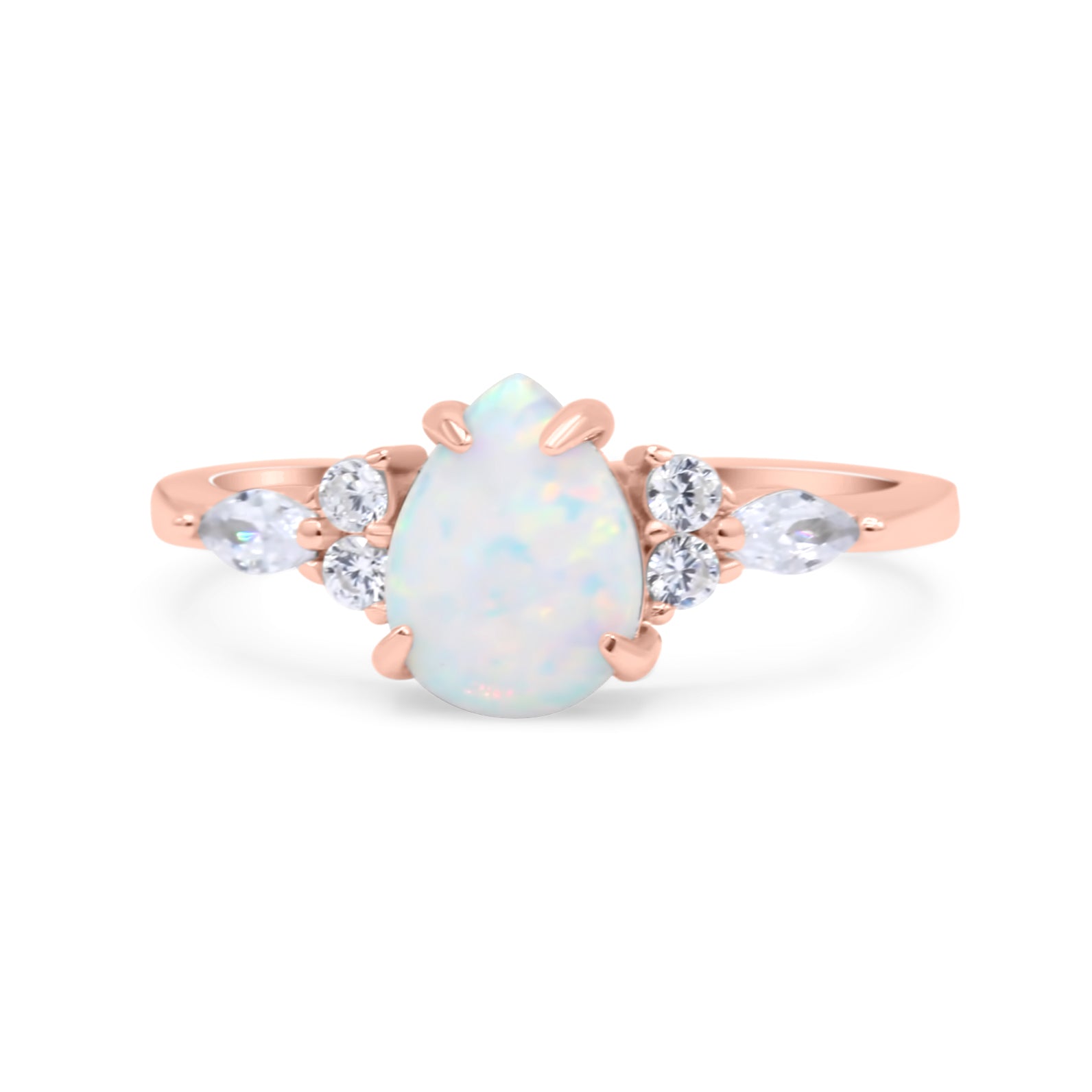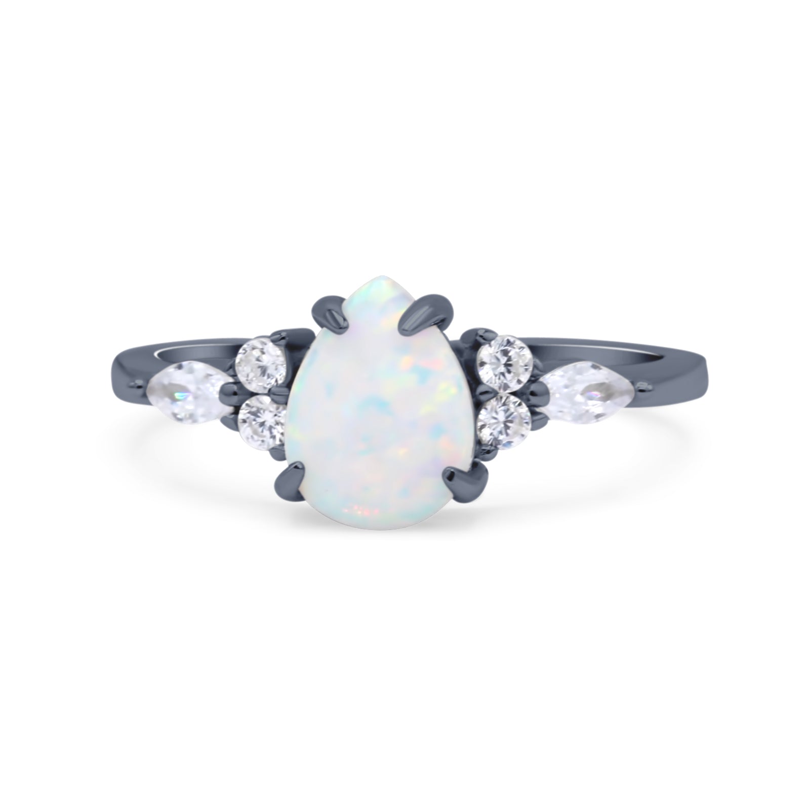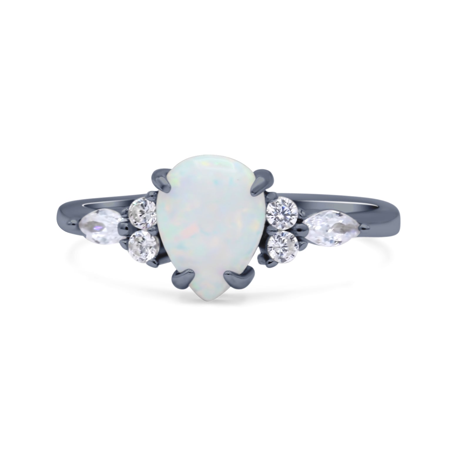 Pear Art Deco Five Stone Engagement Bridal Ring Round Simulated Cubic Zirconia 925 Sterling Silver