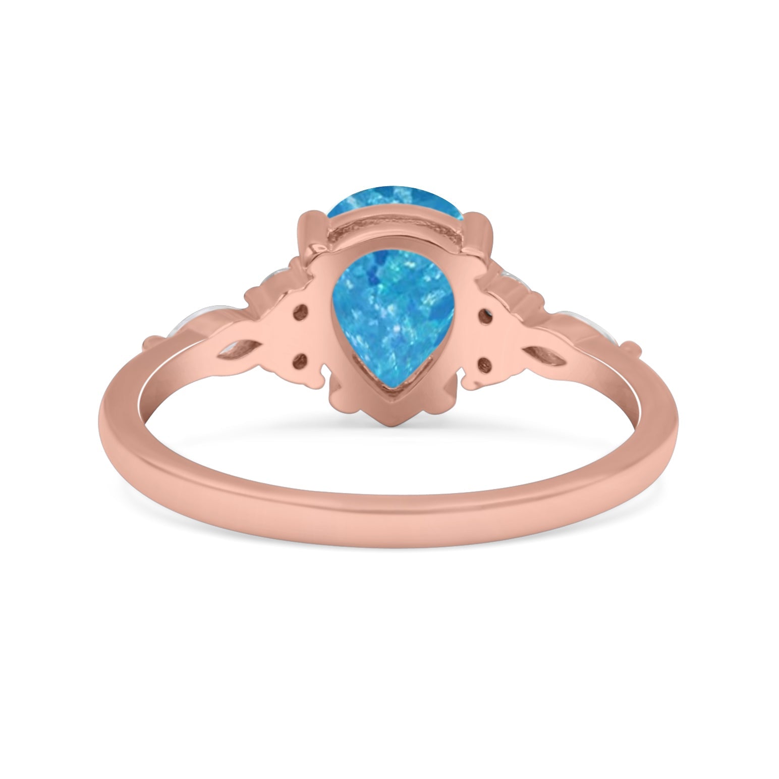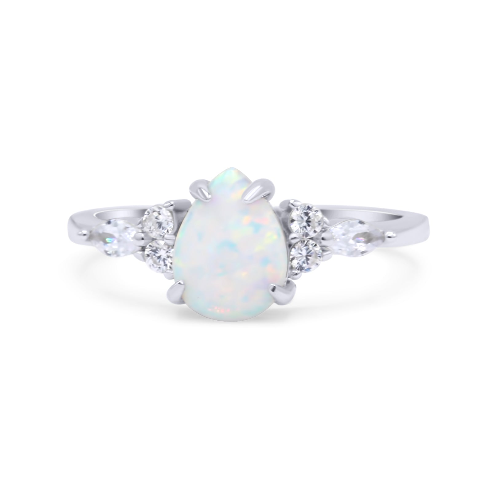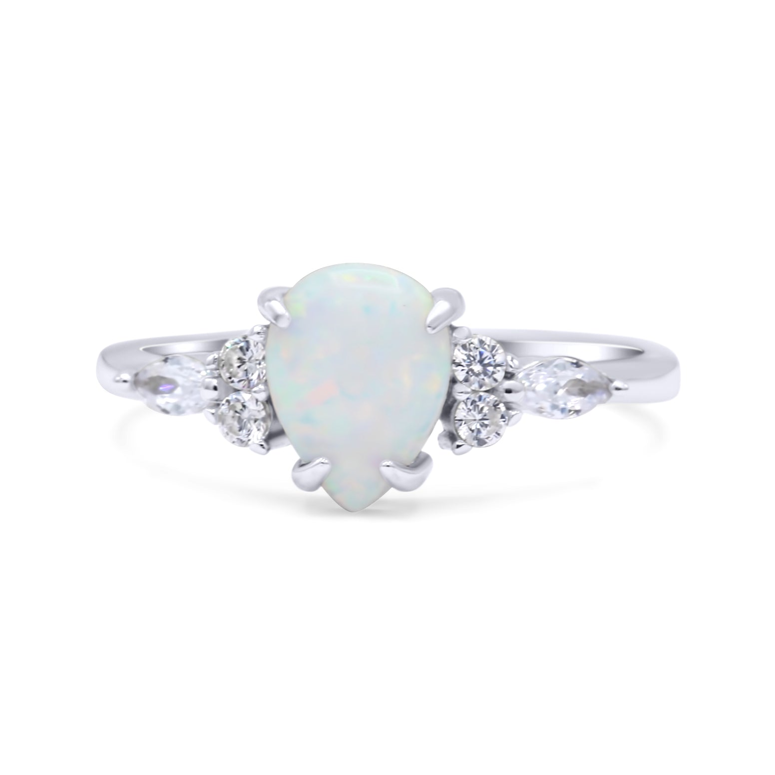 Pear Art Deco Five Stone Engagement Bridal Ring Round Simulated Cubic Zirconia 925 Sterling Silver