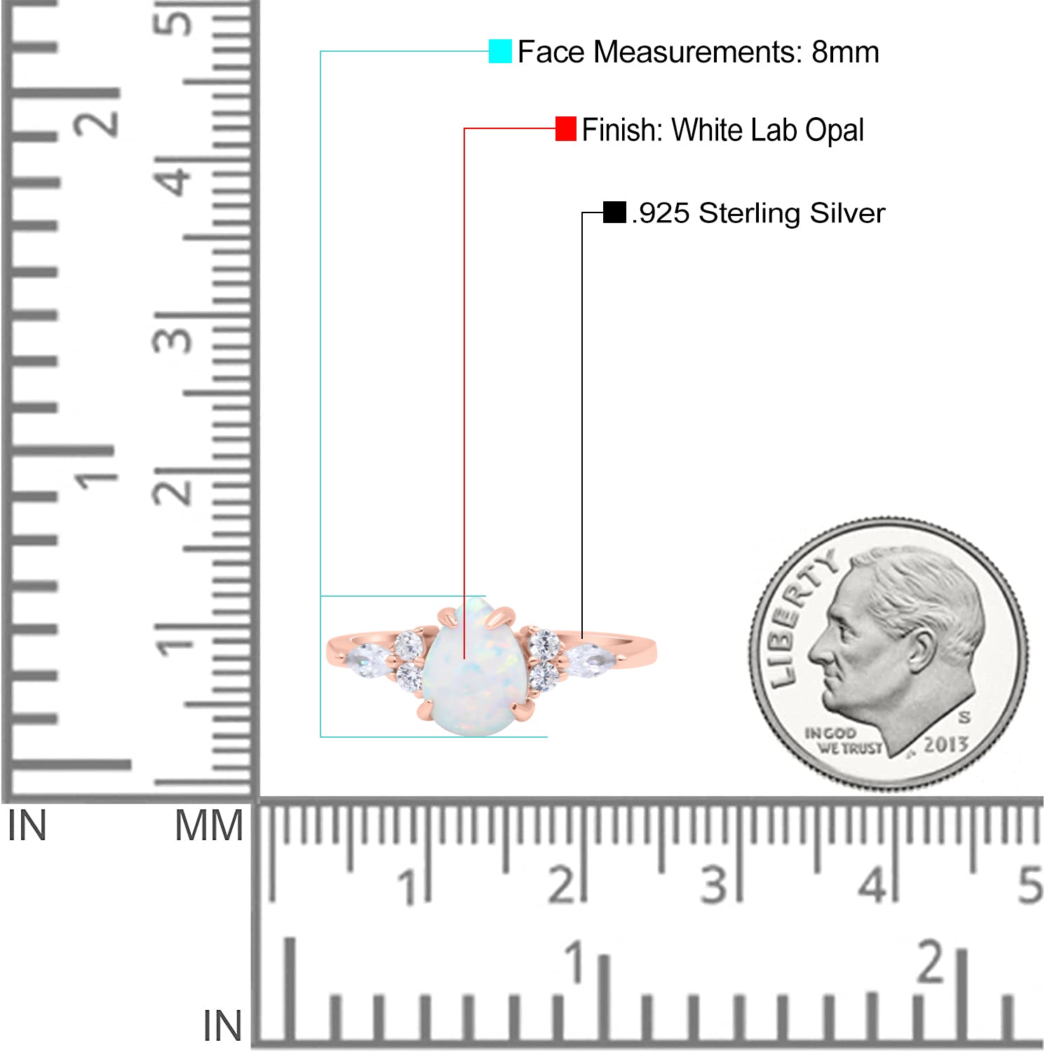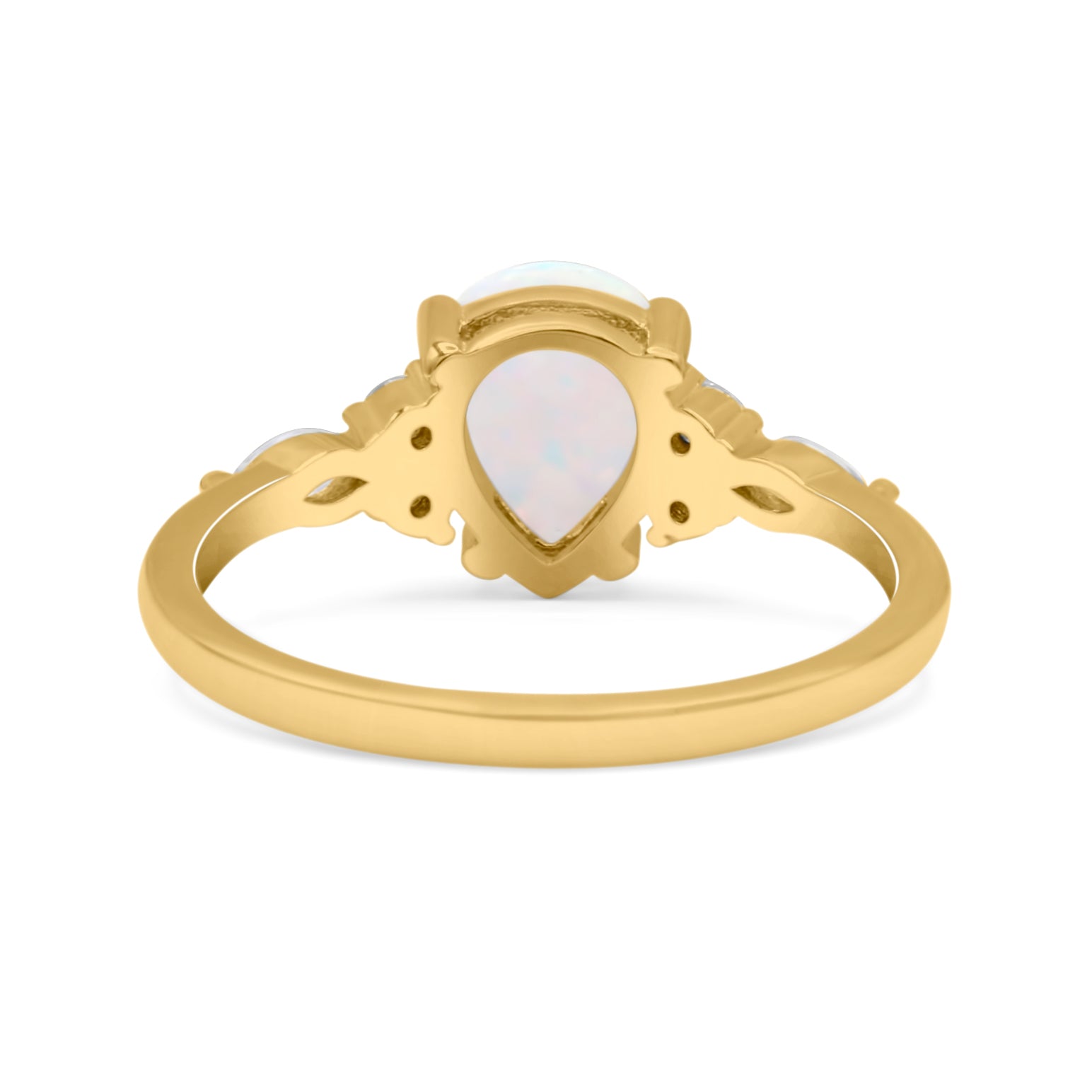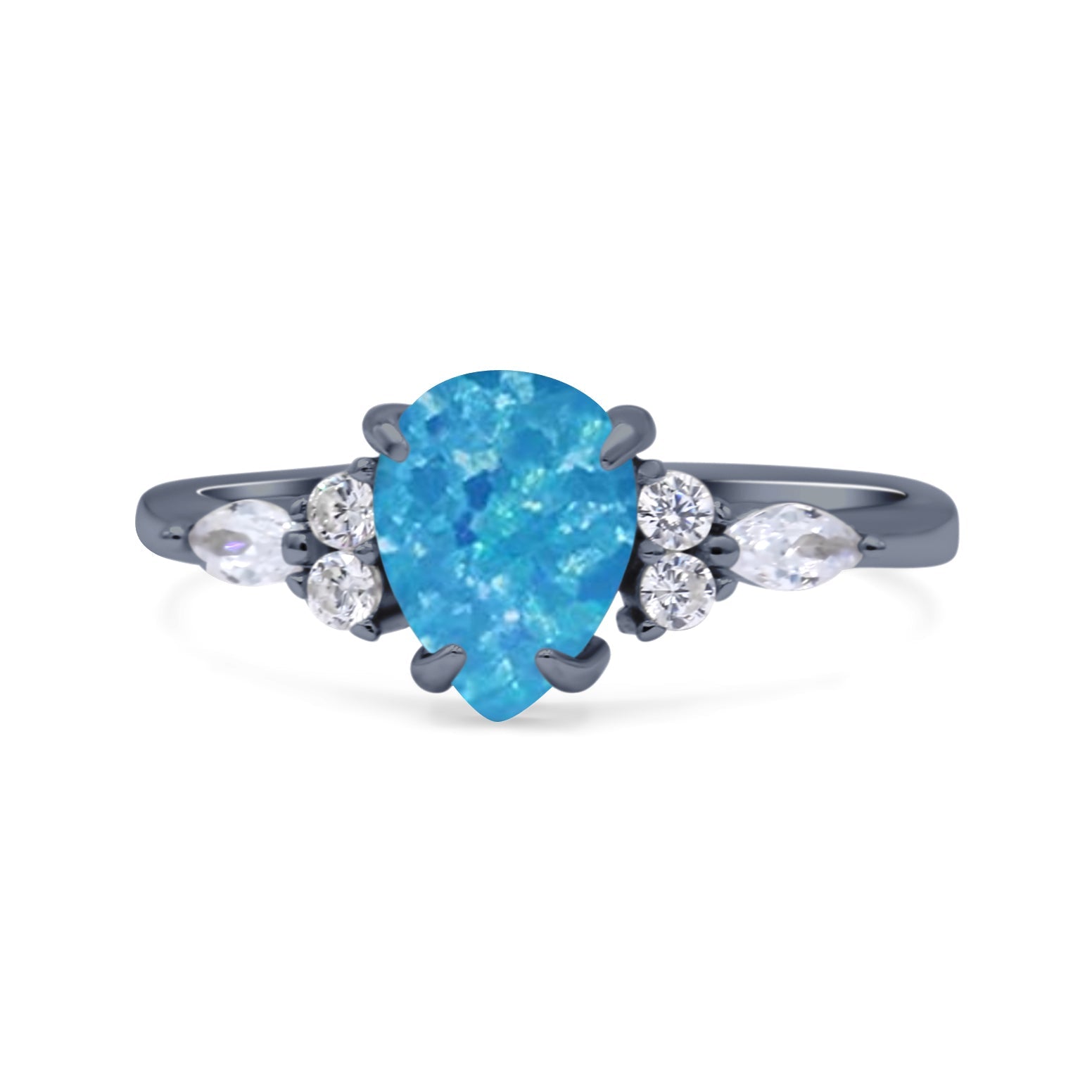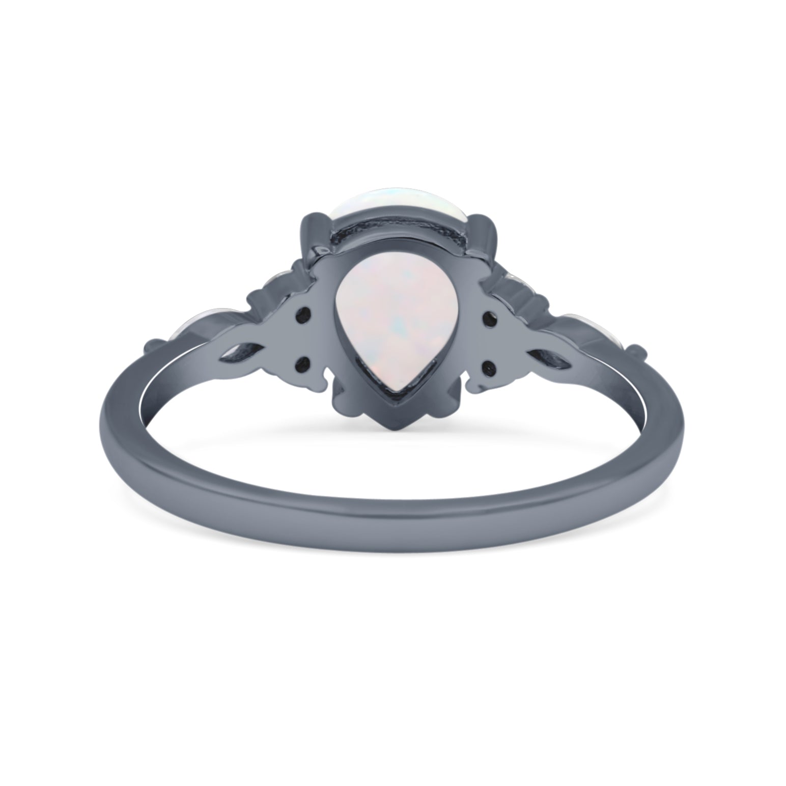 Pear Art Deco Five Stone Engagement Bridal Ring Round Simulated Cubic Zirconia 925 Sterling Silver