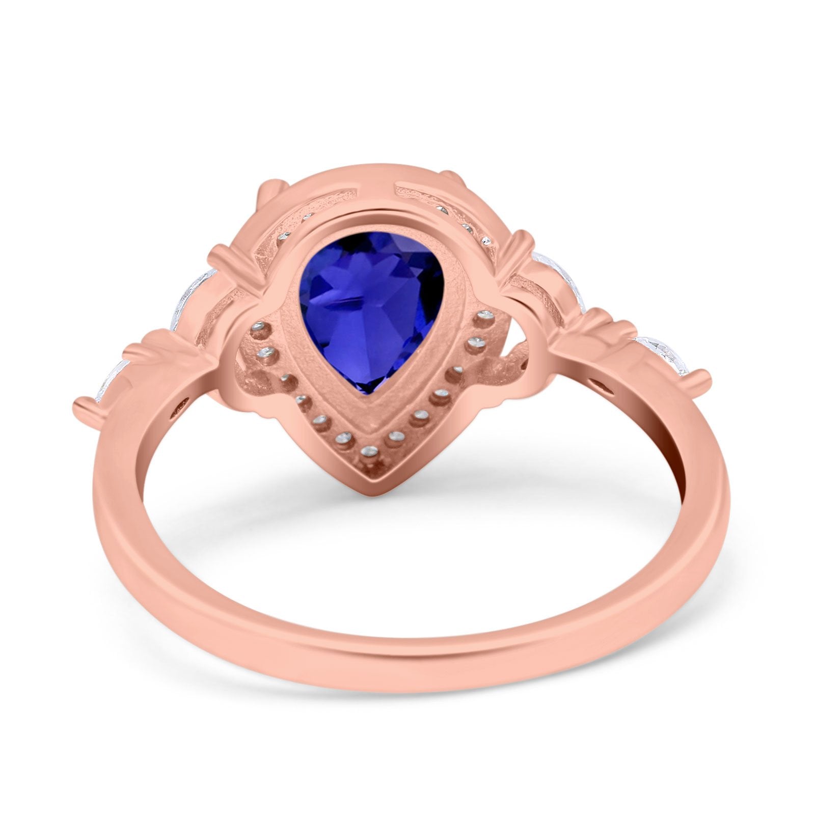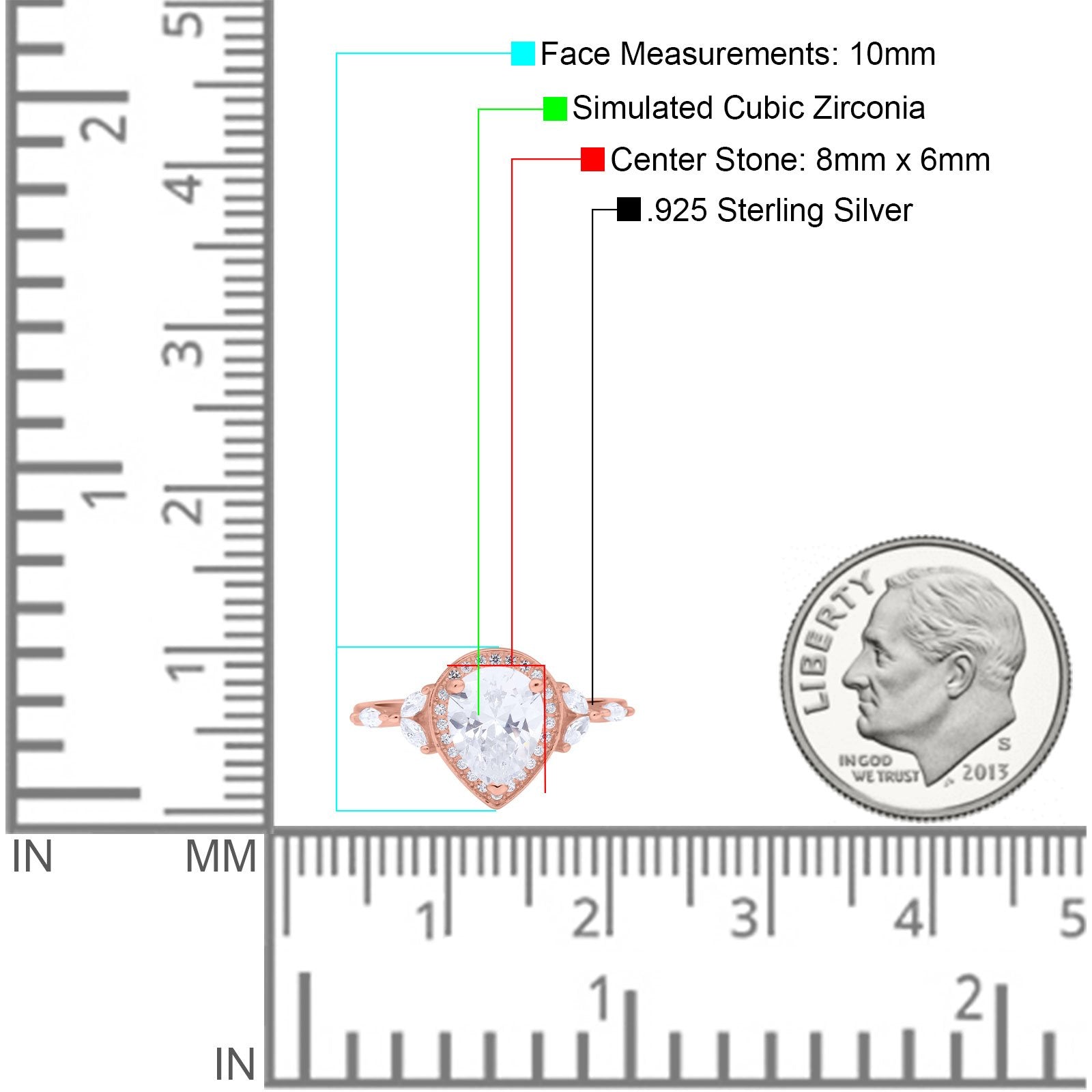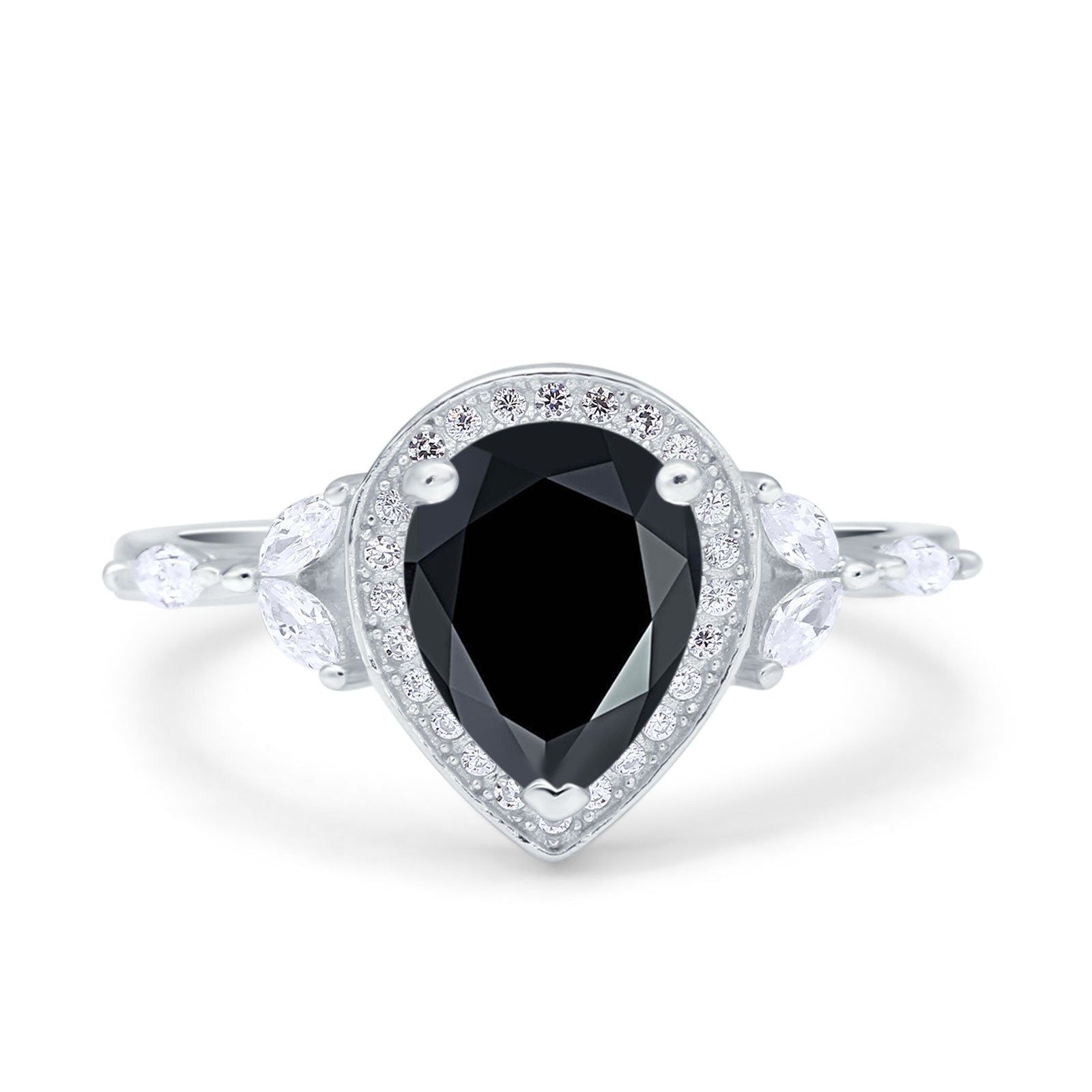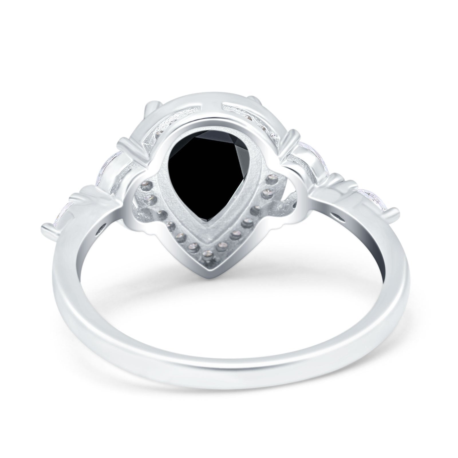 Teardrop Pear Art Deco Engagement Wedding Bridal Halo Ring Round Simulated Cubic Zirconia 925 Sterling Silver