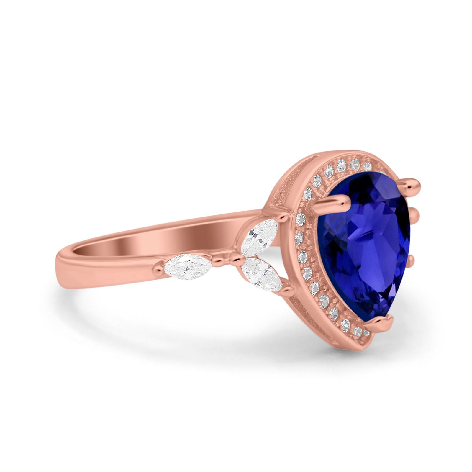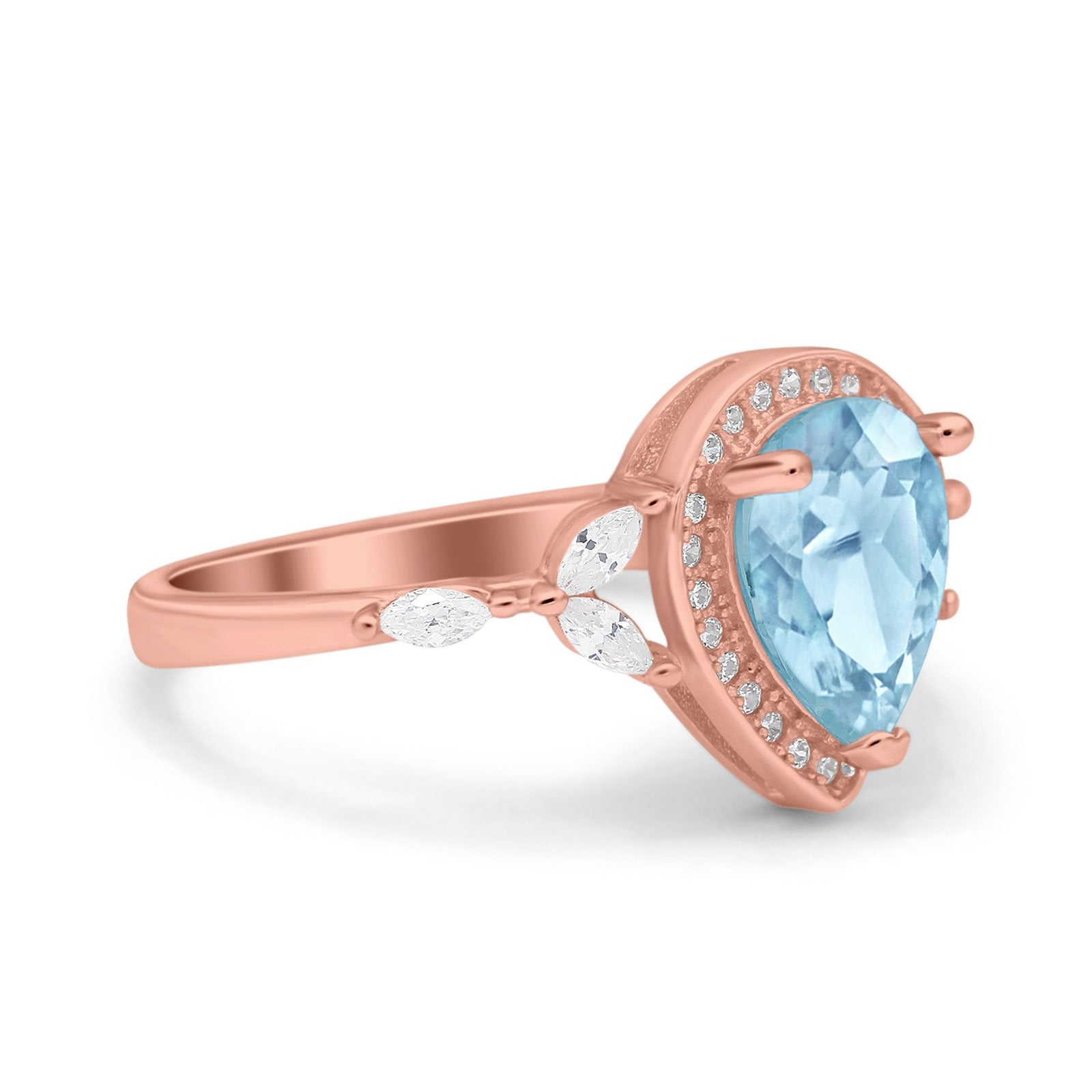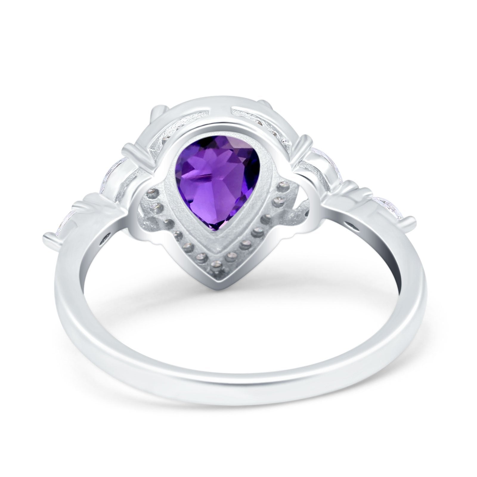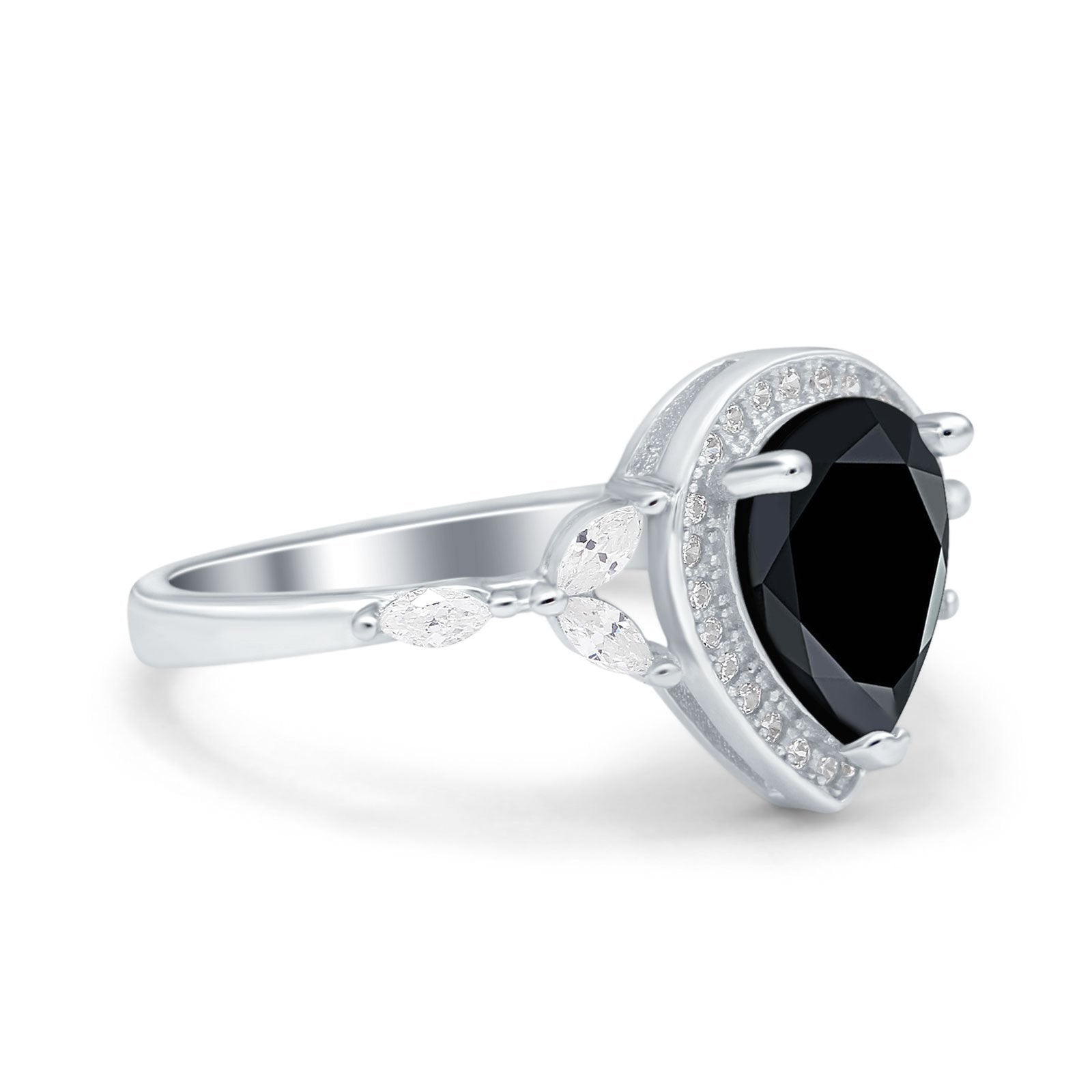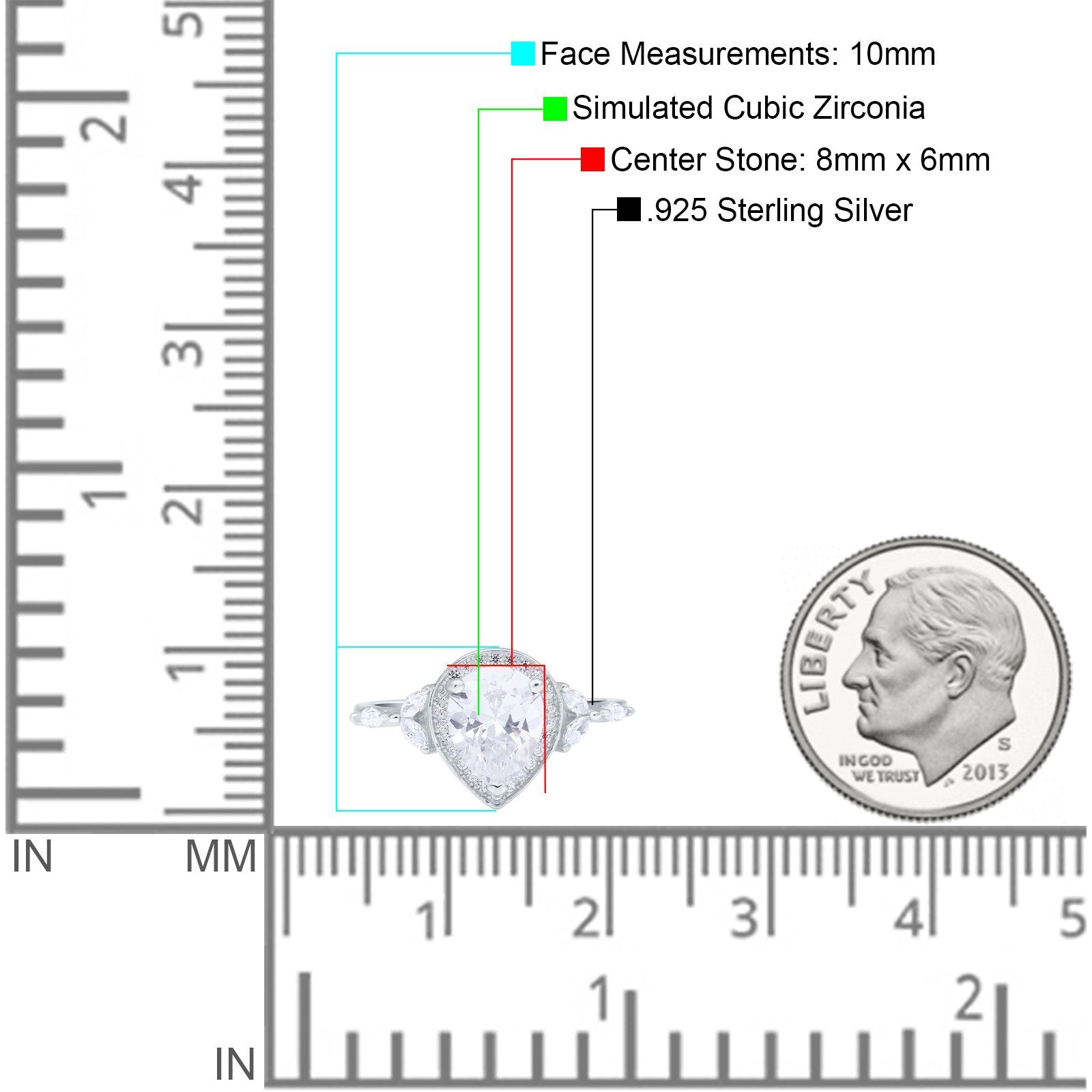 Teardrop Pear Art Deco Engagement Wedding Bridal Halo Ring Round Simulated Cubic Zirconia 925 Sterling Silver