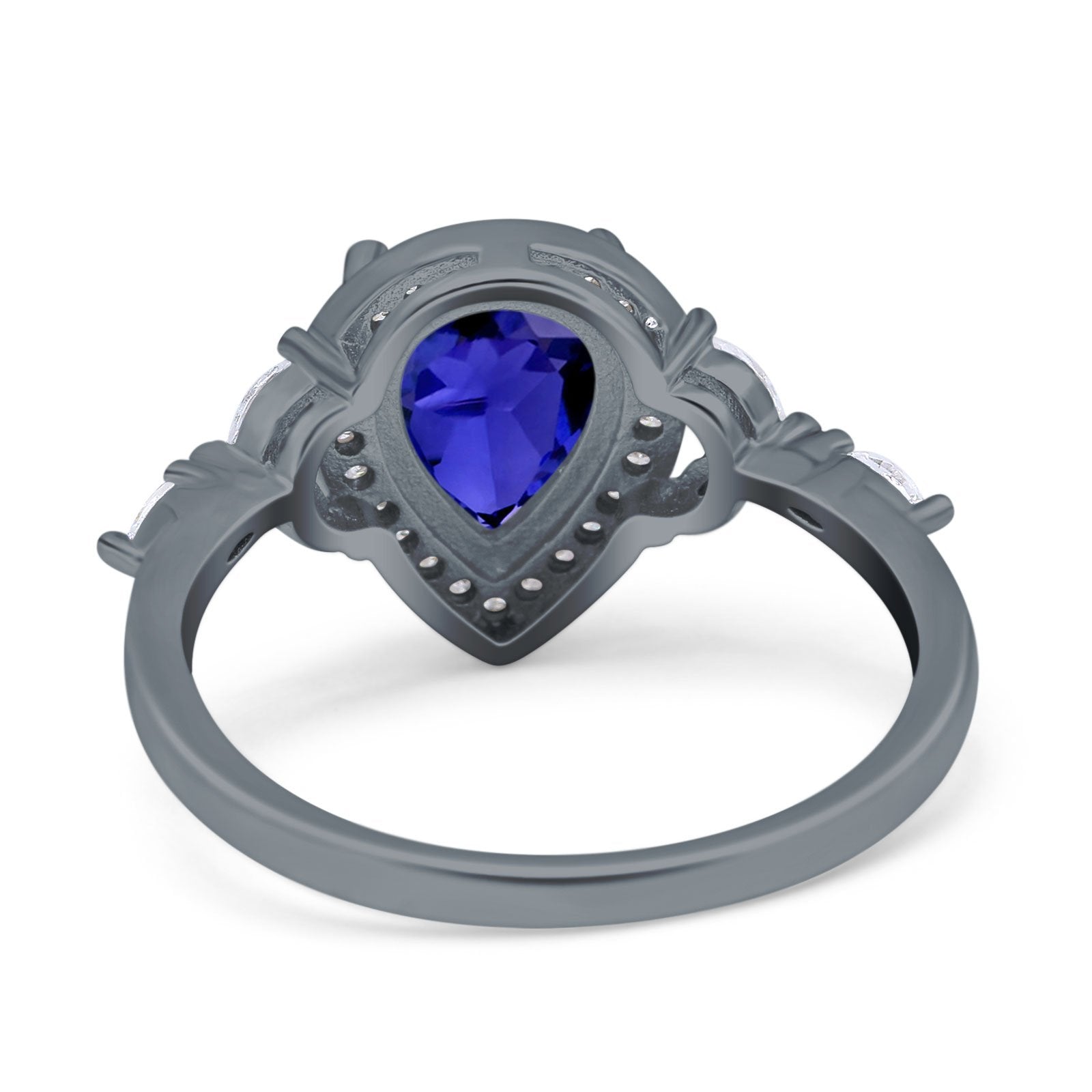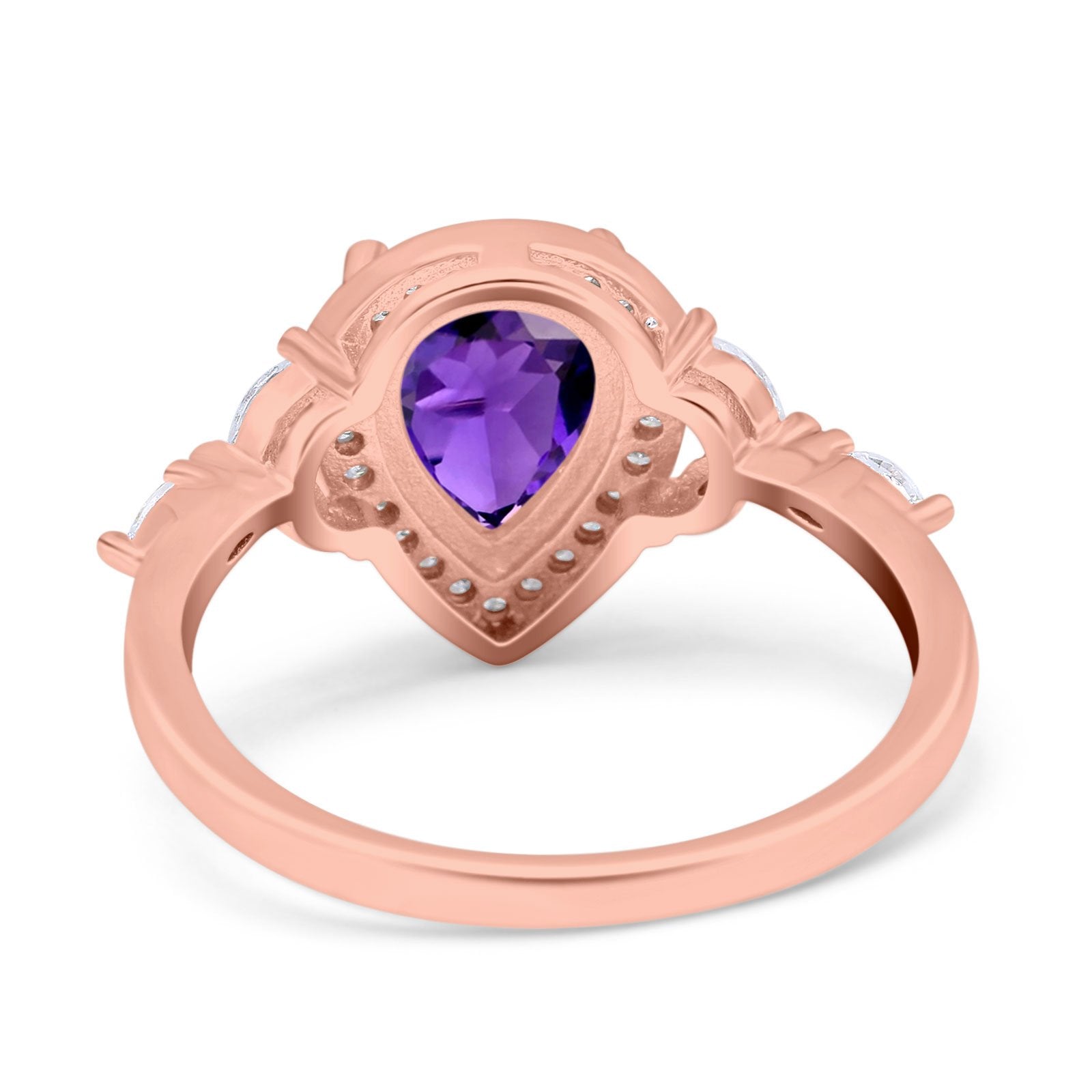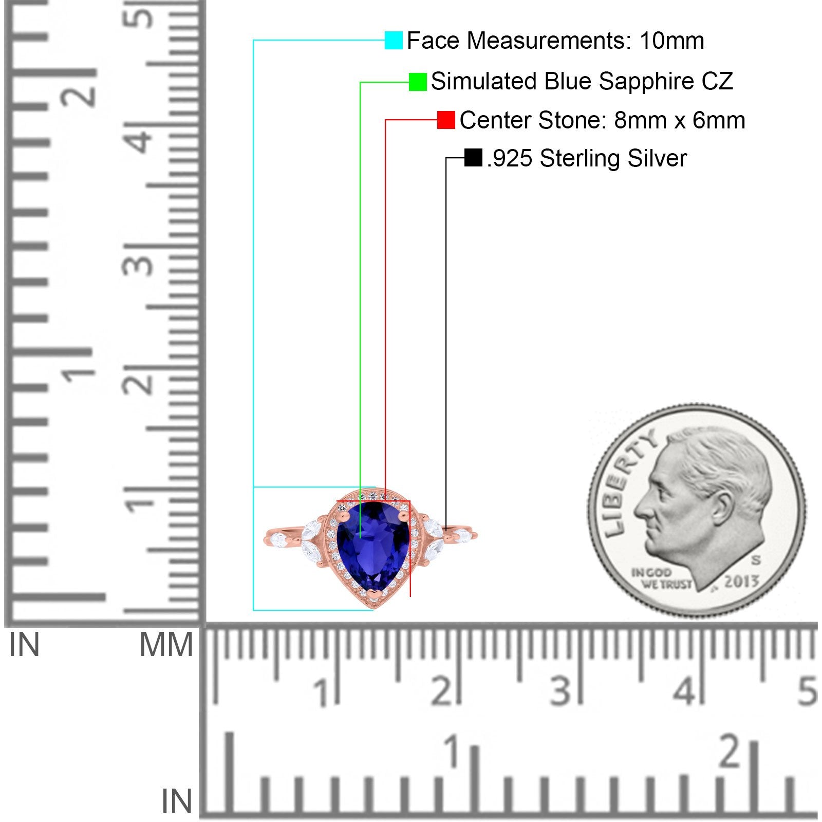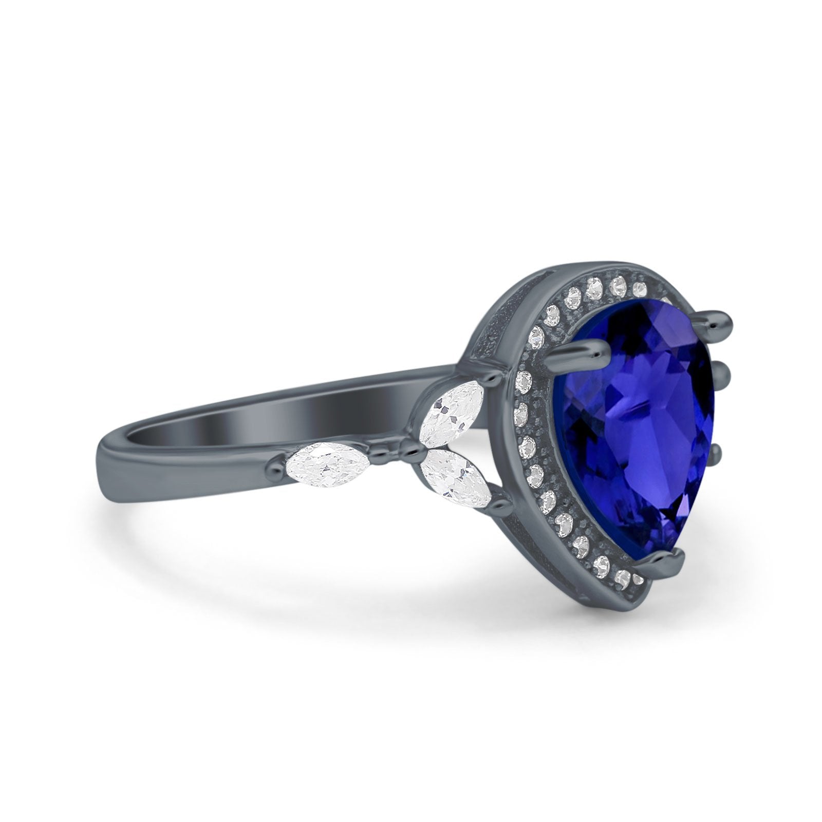 Teardrop Pear Art Deco Engagement Wedding Bridal Halo Ring Round Simulated Cubic Zirconia 925 Sterling Silver