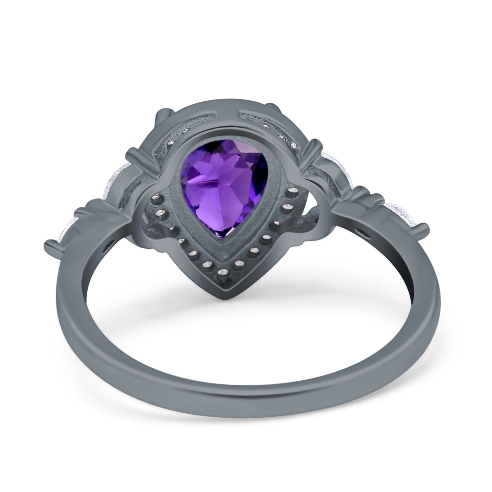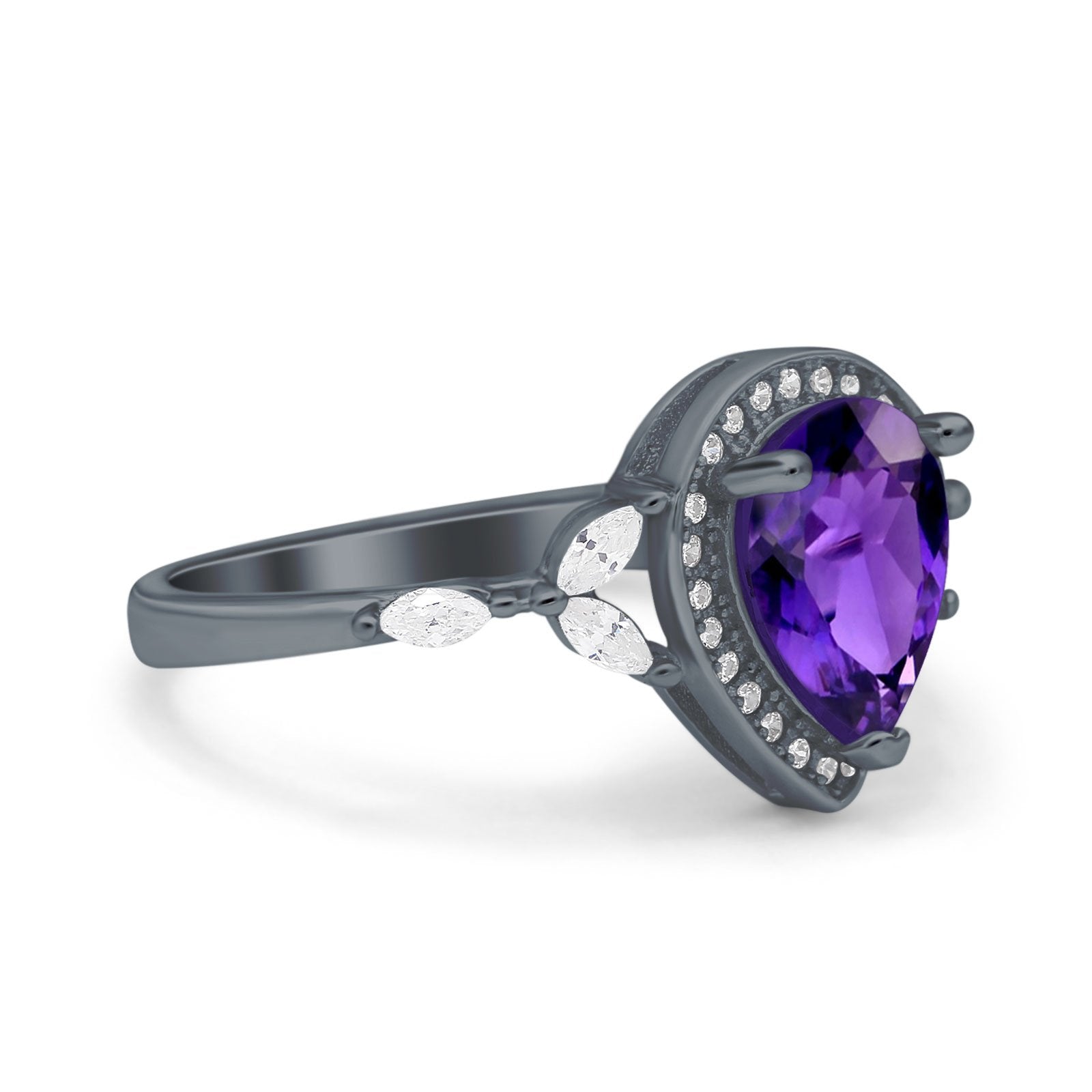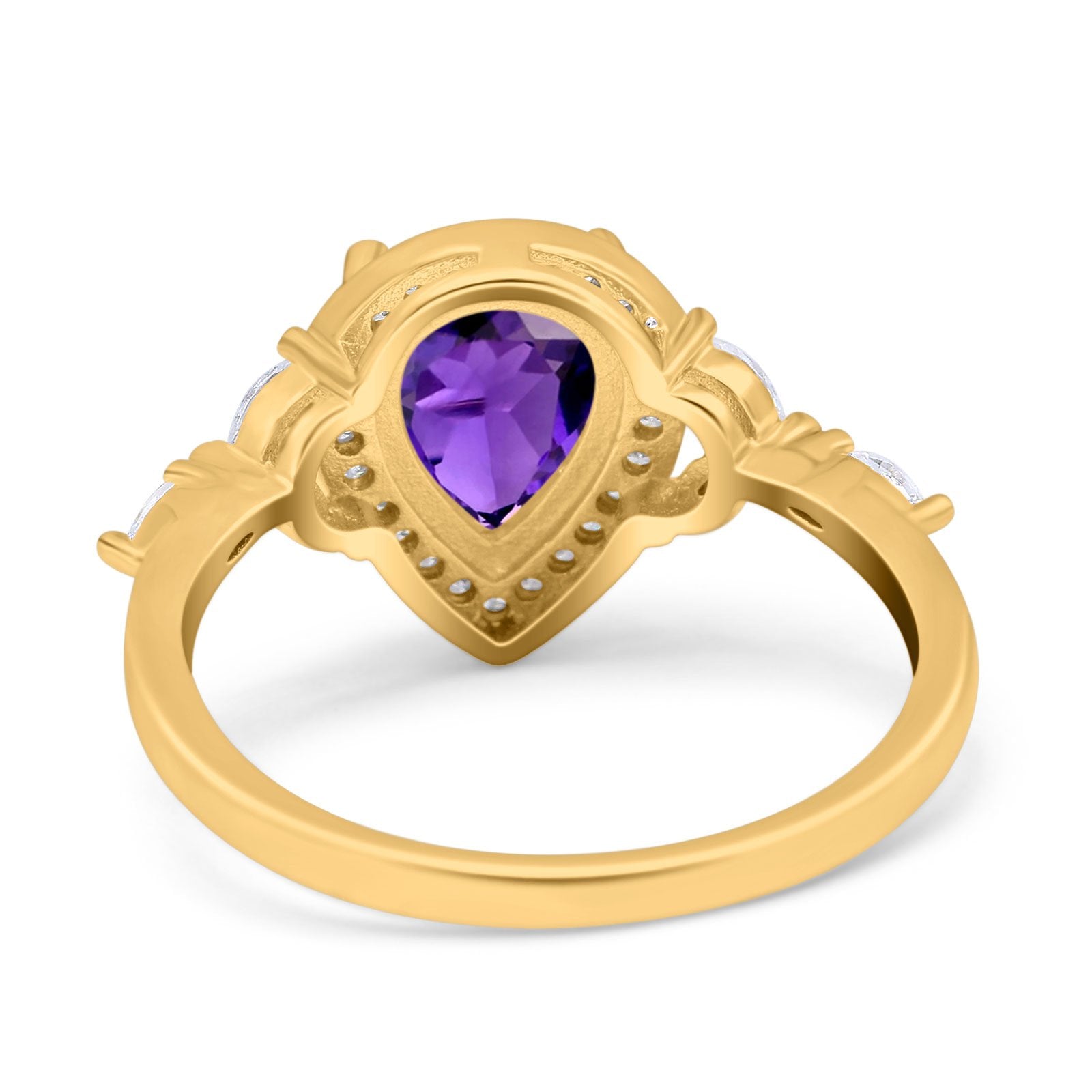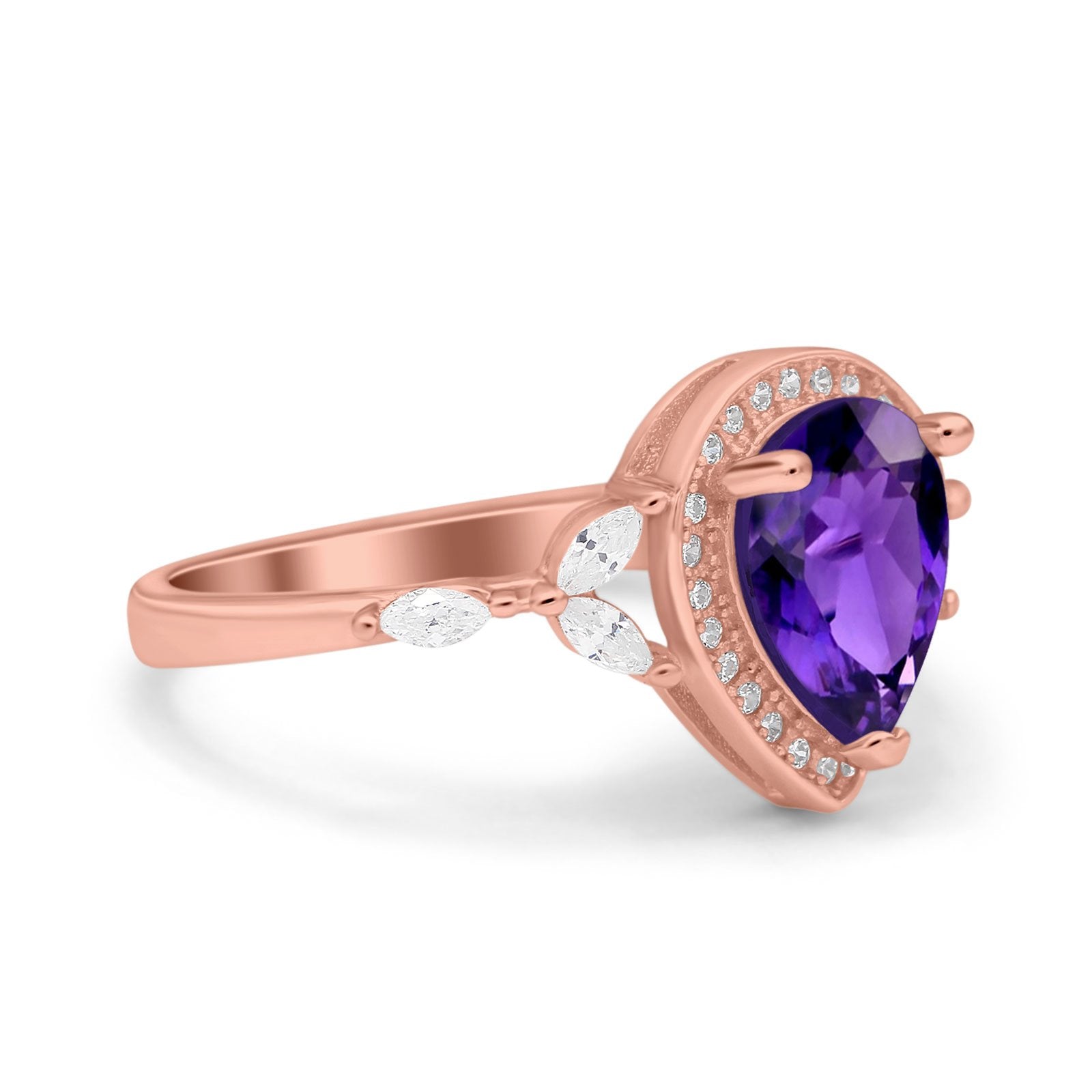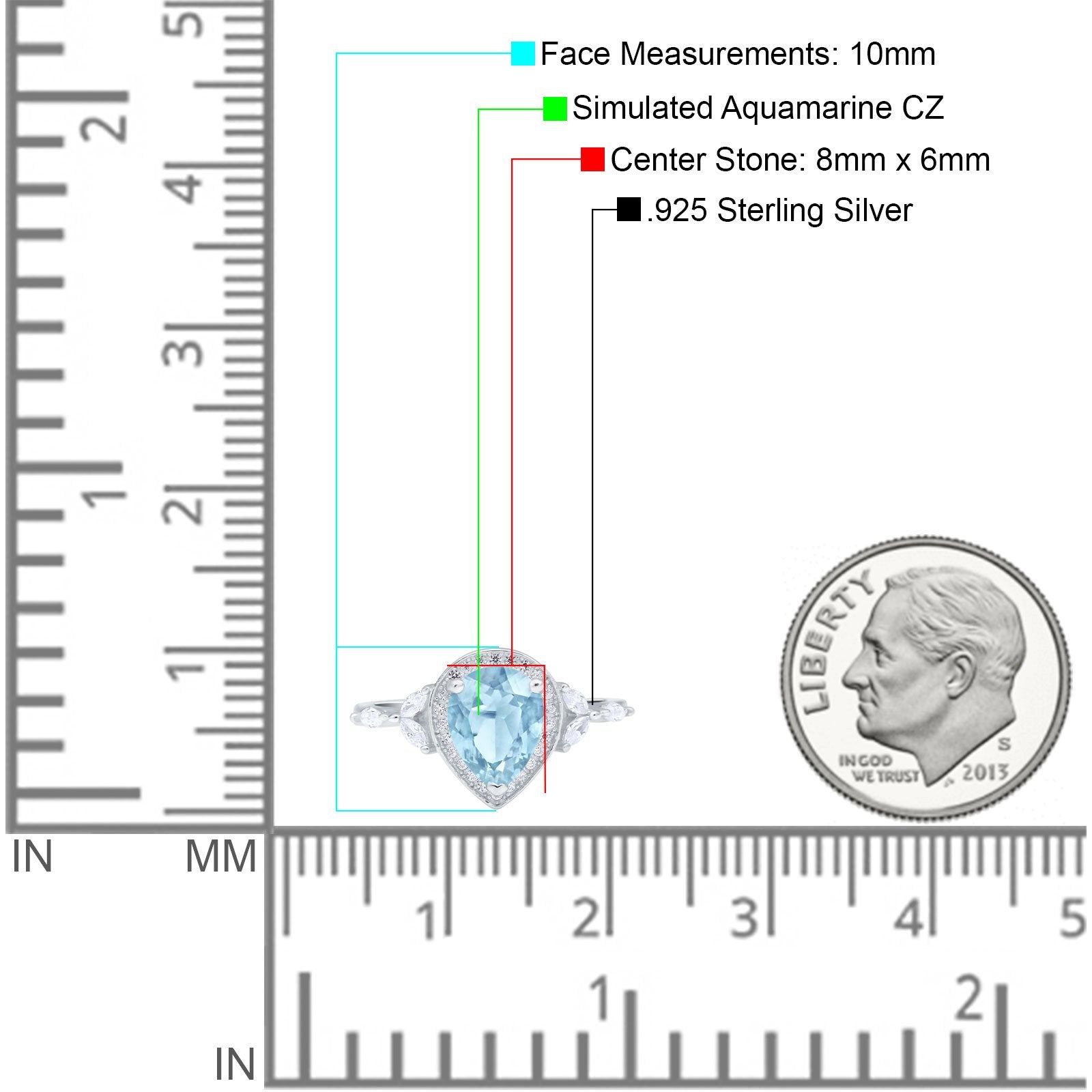 Teardrop Pear Art Deco Engagement Wedding Bridal Halo Ring Round Simulated Cubic Zirconia 925 Sterling Silver