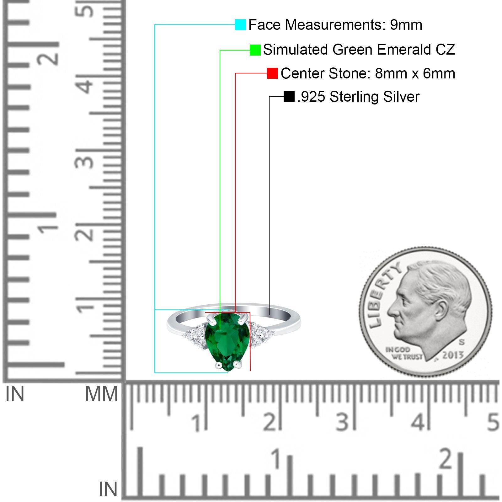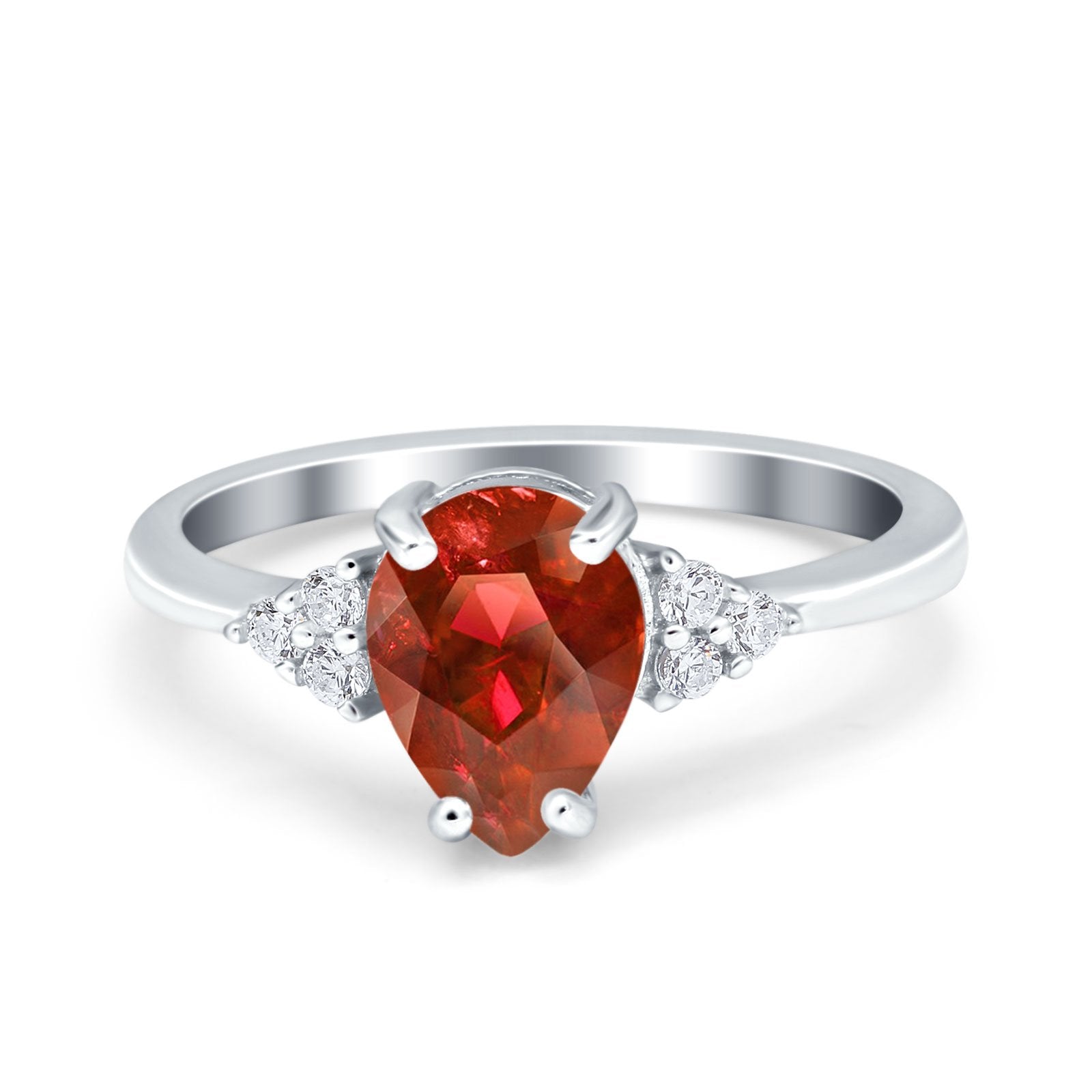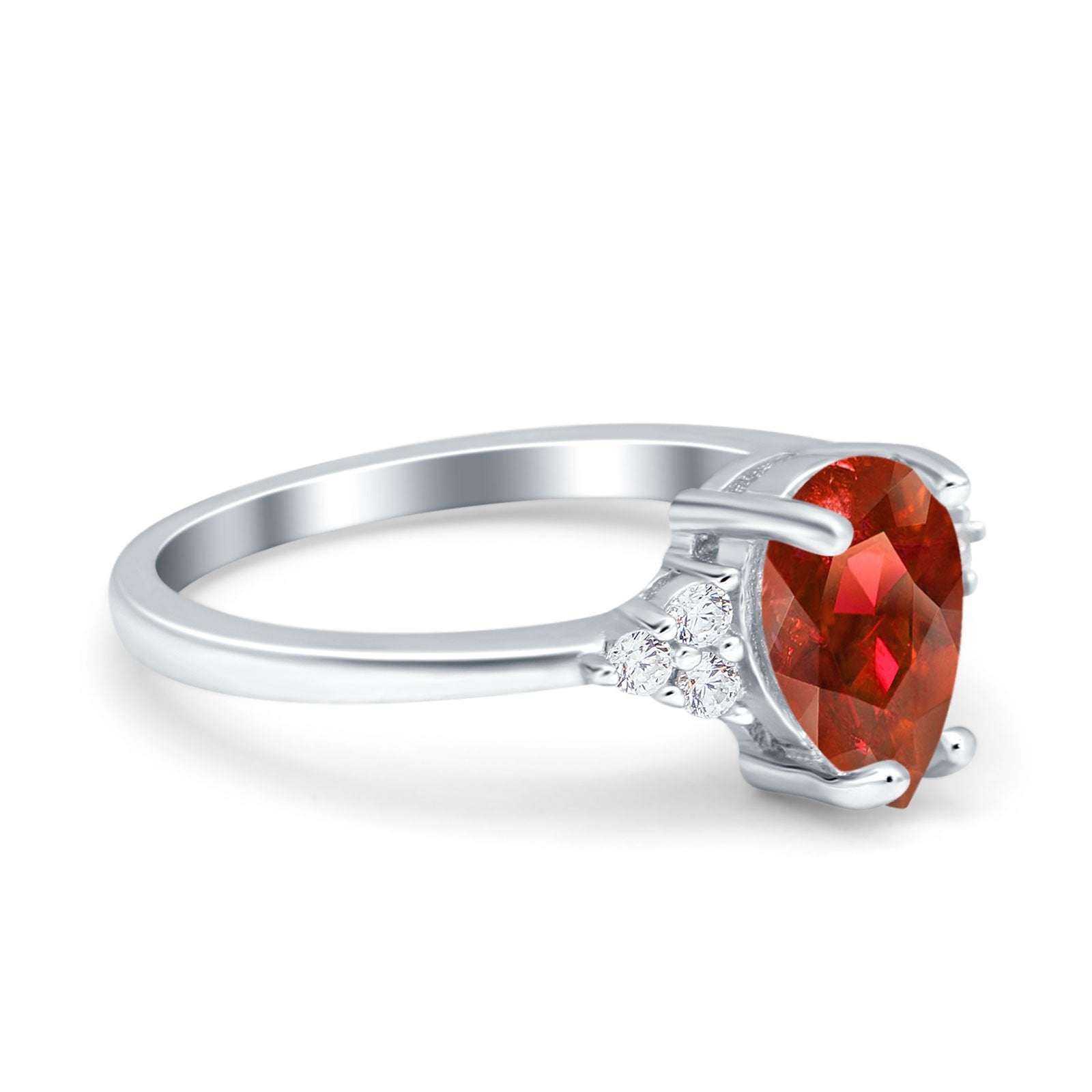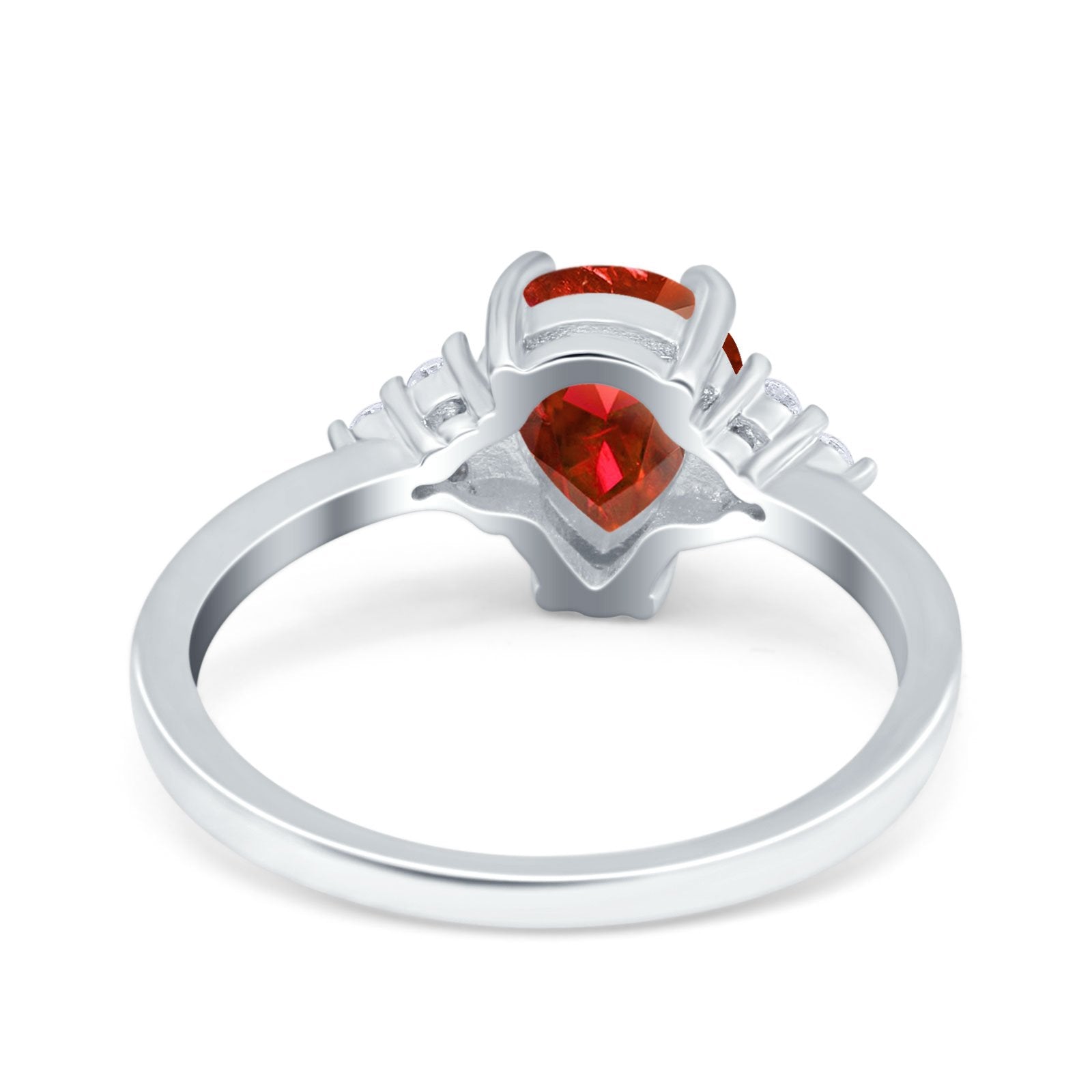 Teardrop Pear Art Deco Engagement Wedding Bridal Ring Round Simulated Cubic Zirconia Accent 925 Sterling Silver