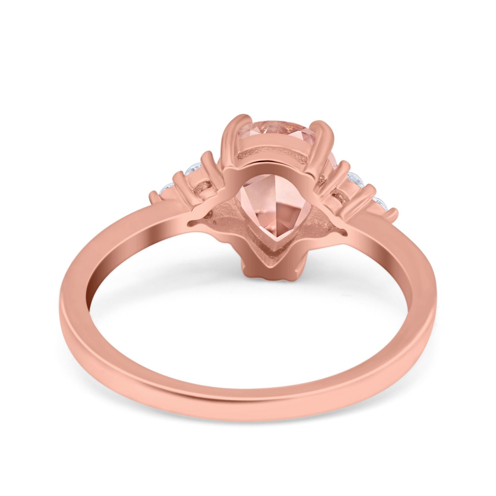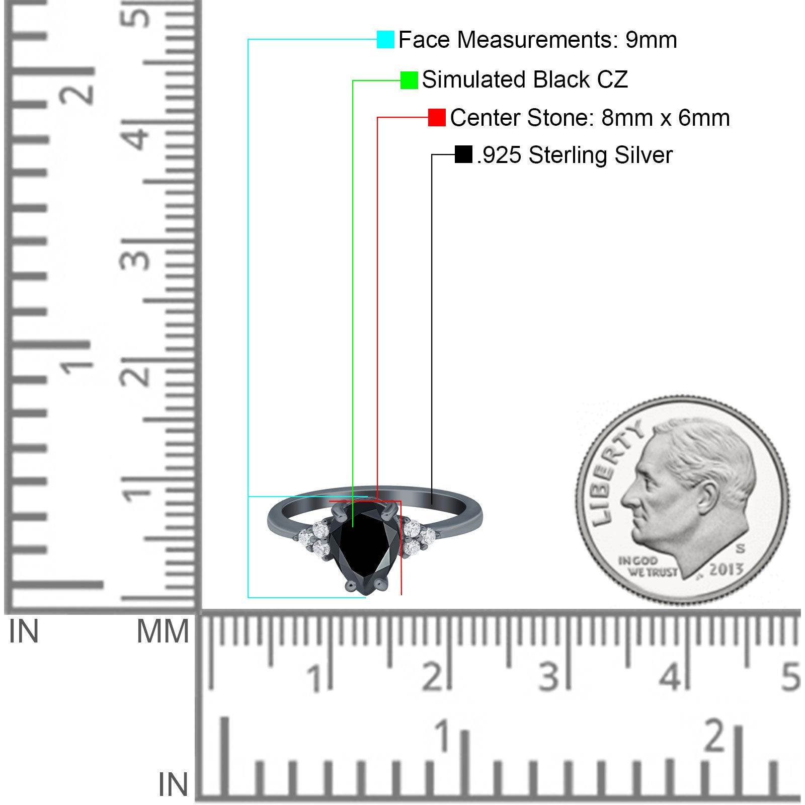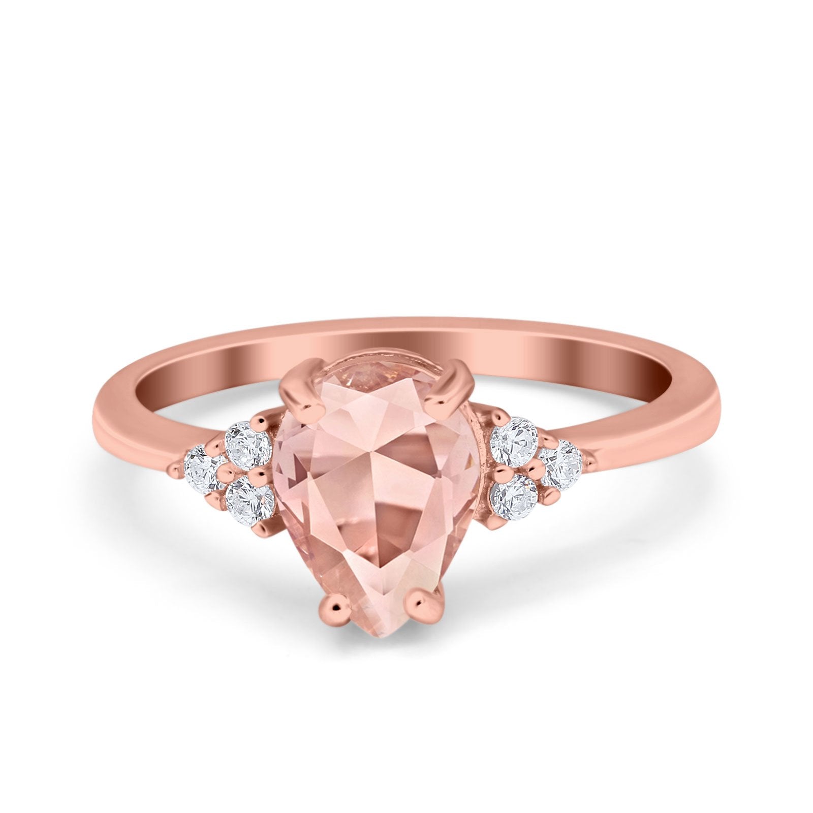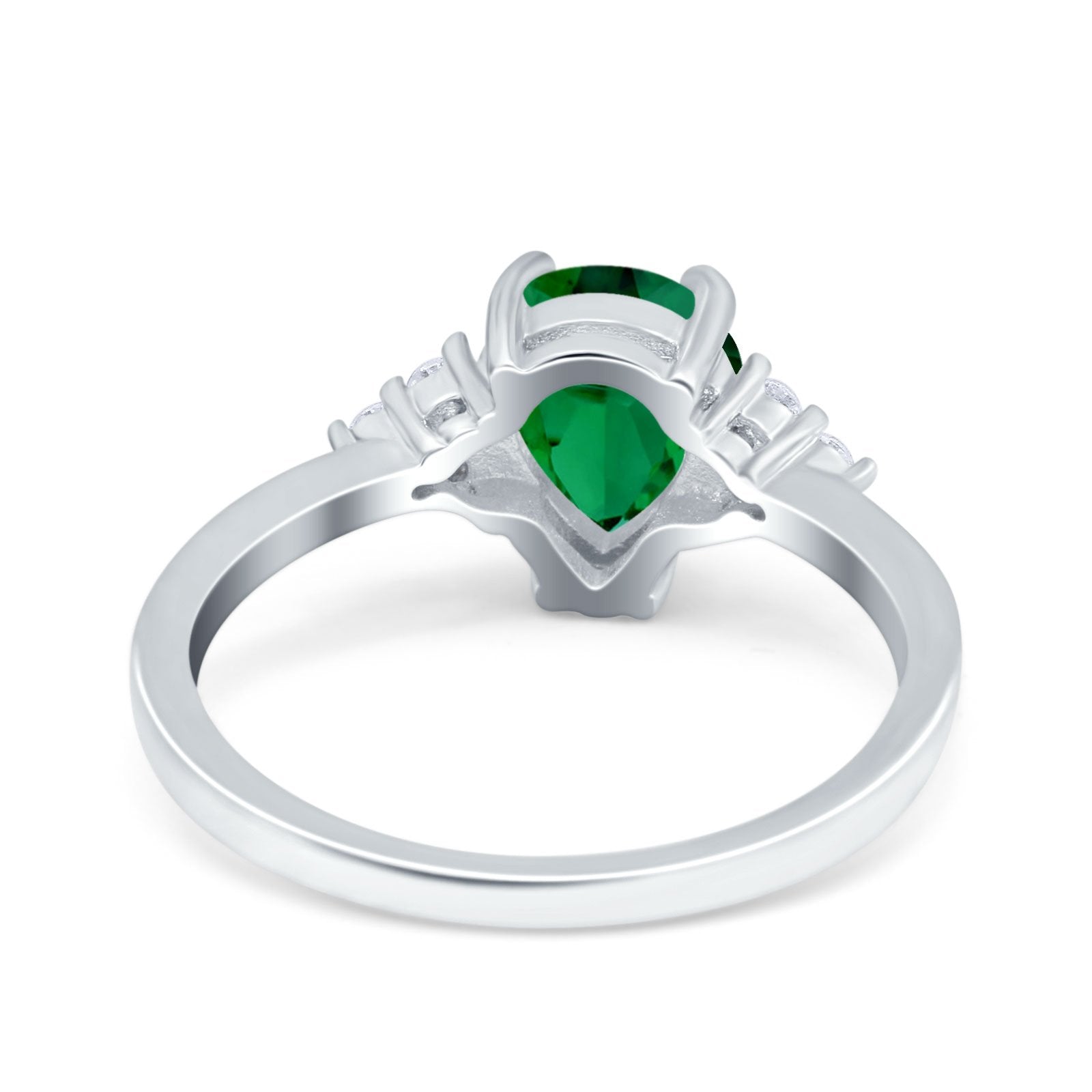 Teardrop Pear Art Deco Engagement Wedding Bridal Ring Round Simulated Cubic Zirconia Accent 925 Sterling Silver