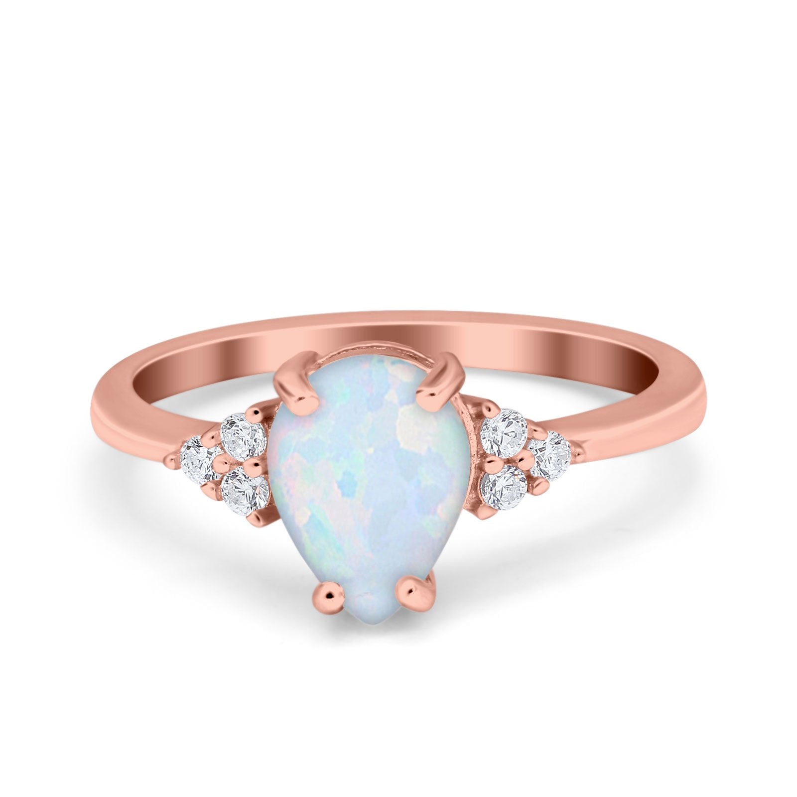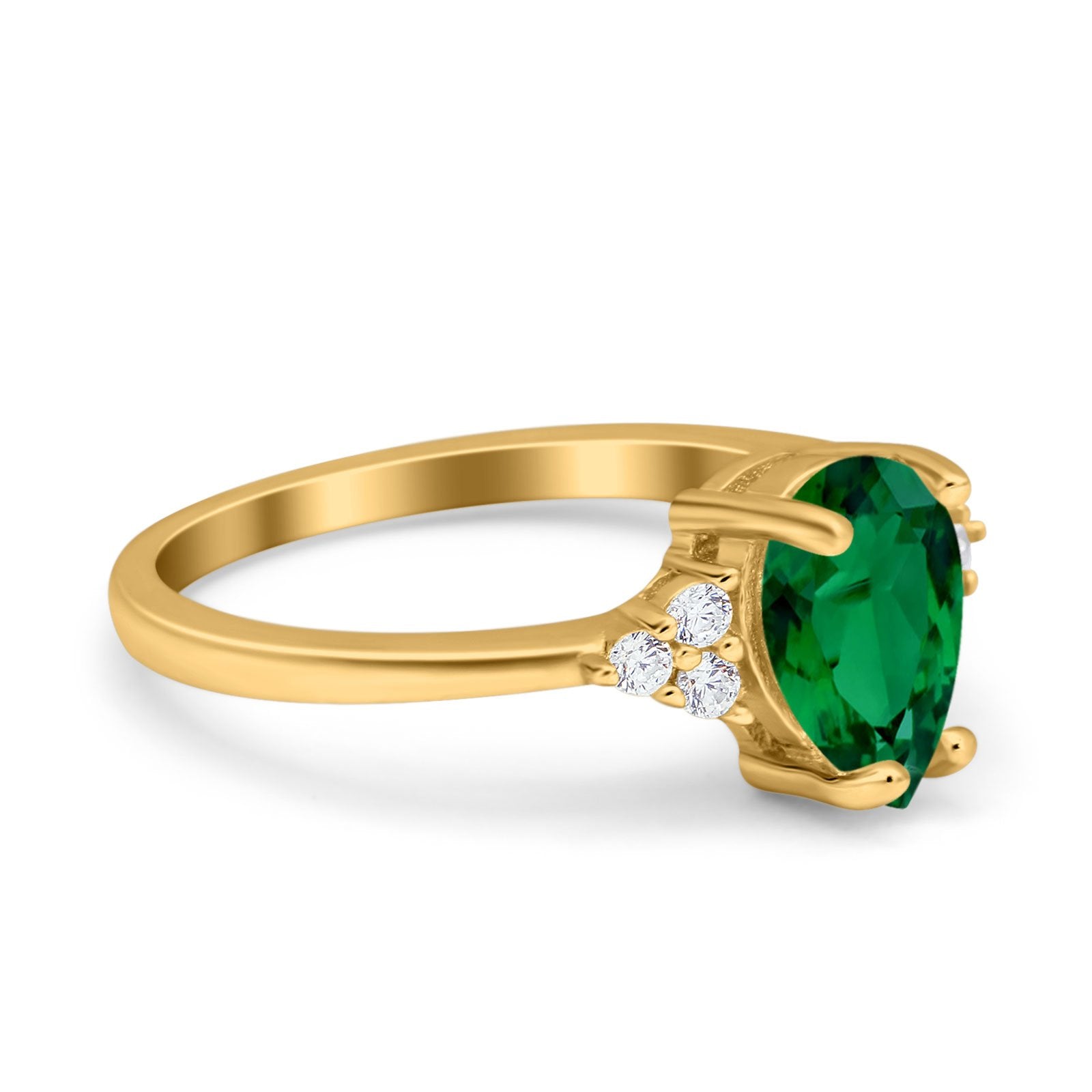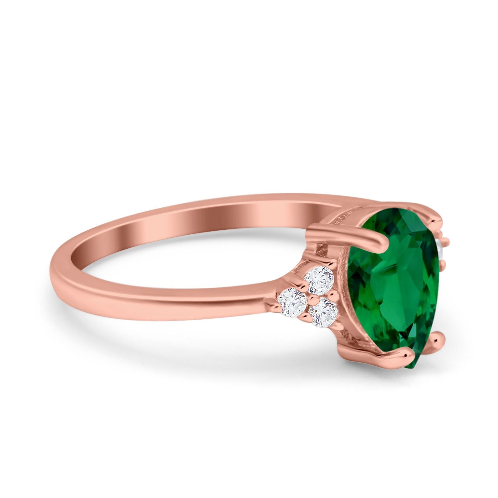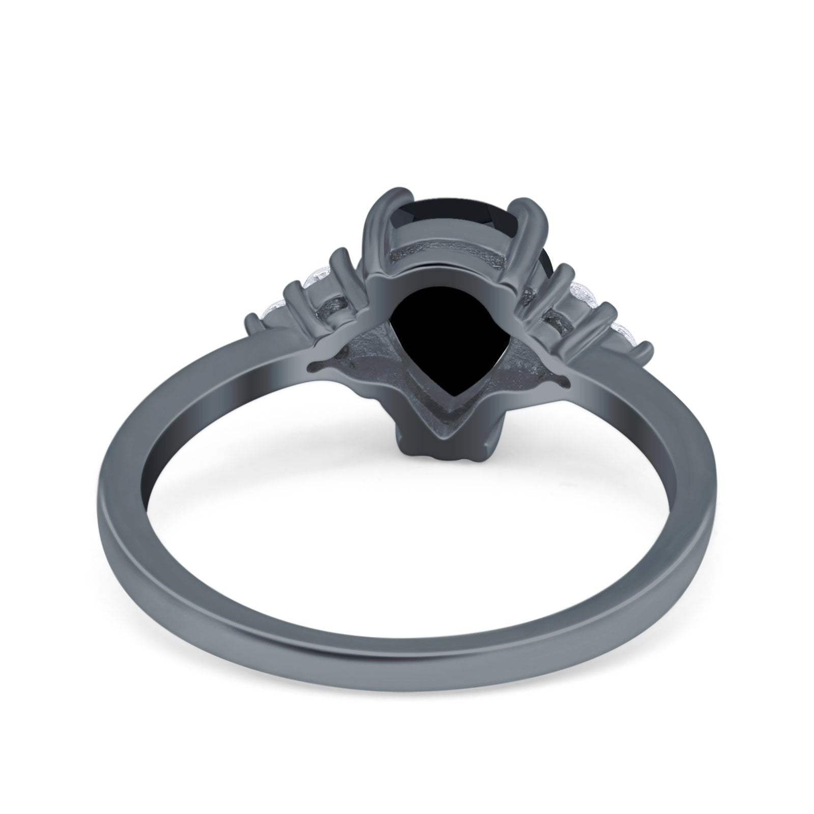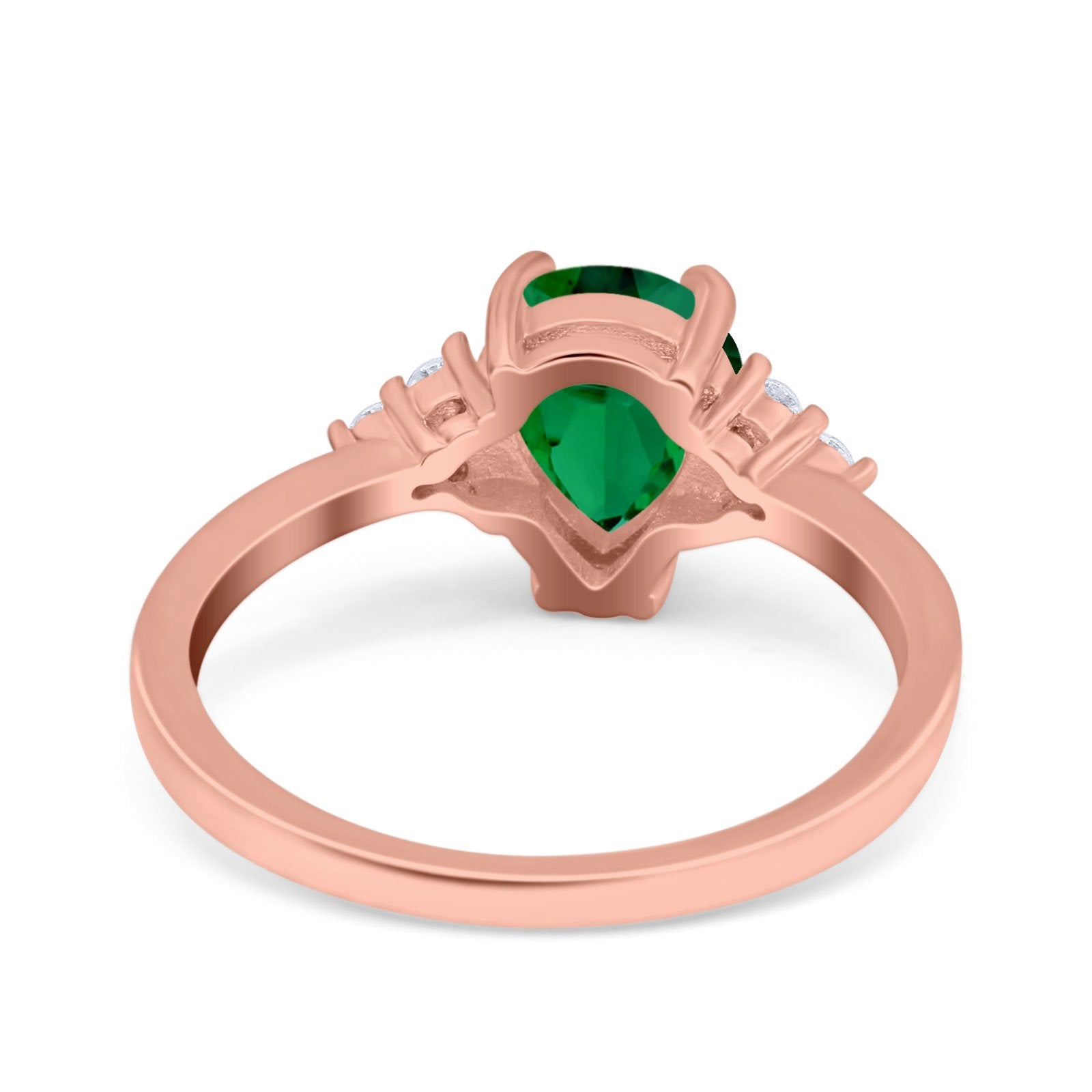 Teardrop Pear Art Deco Engagement Wedding Bridal Ring Round Simulated Cubic Zirconia Accent 925 Sterling Silver
