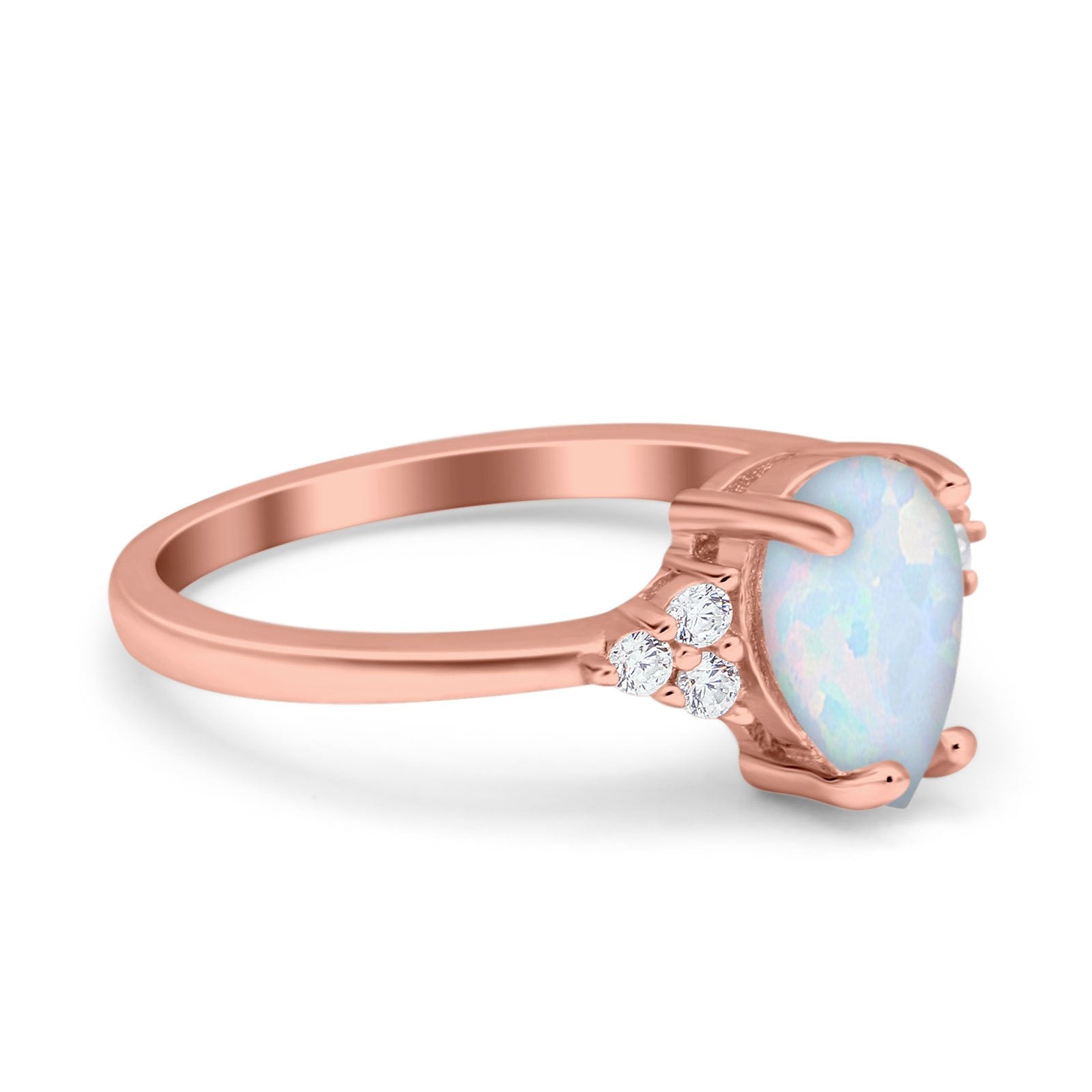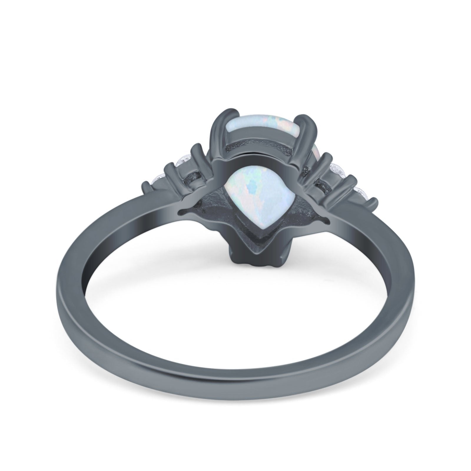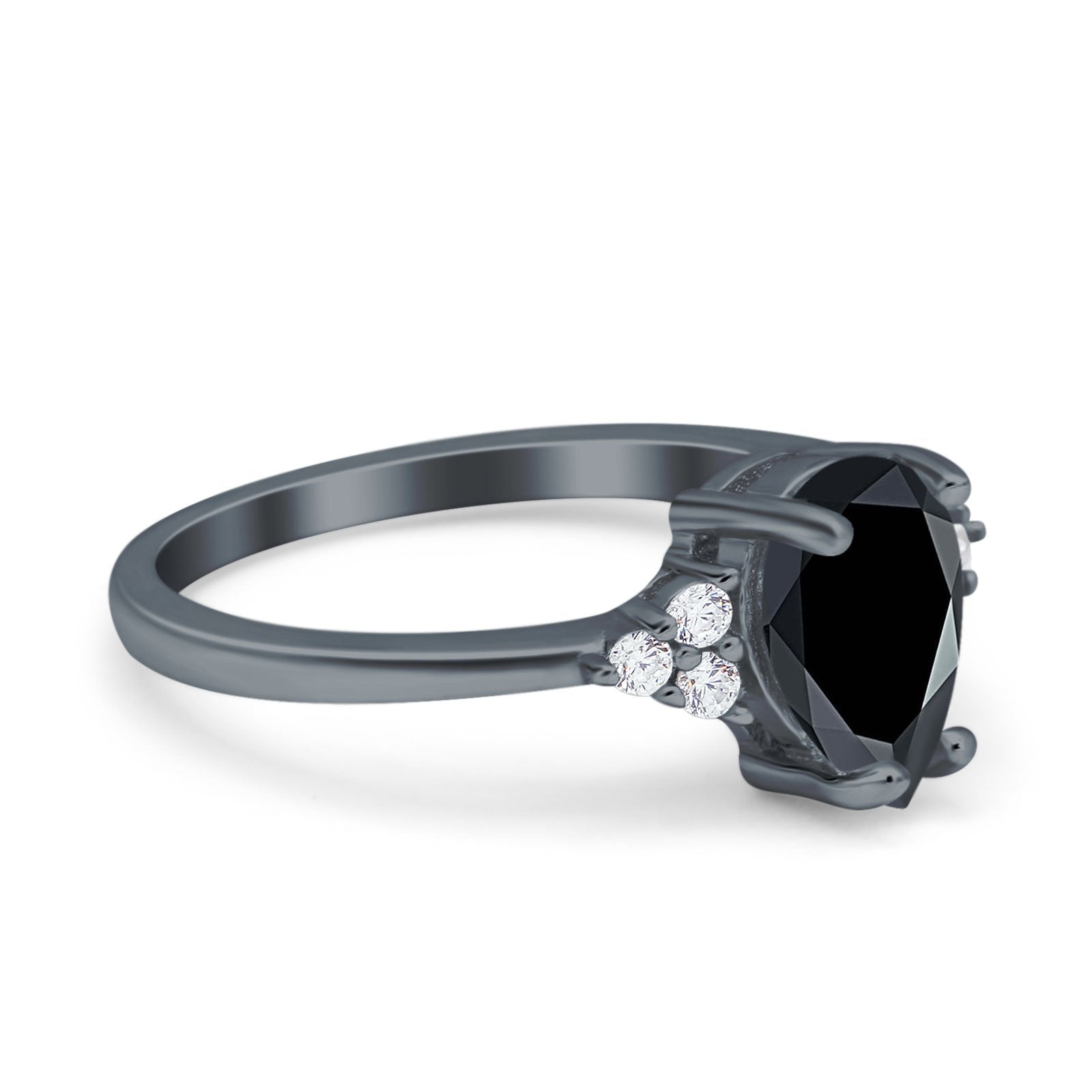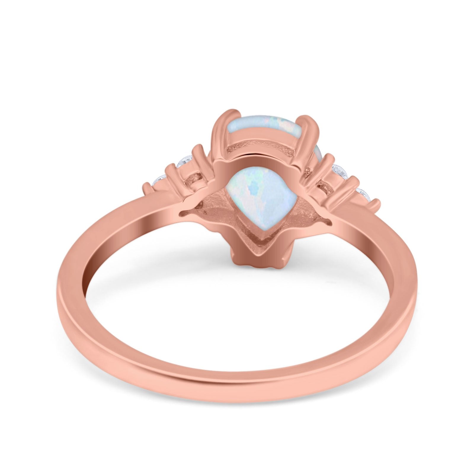 Teardrop Pear Art Deco Engagement Wedding Bridal Ring Round Simulated Cubic Zirconia Accent 925 Sterling Silver