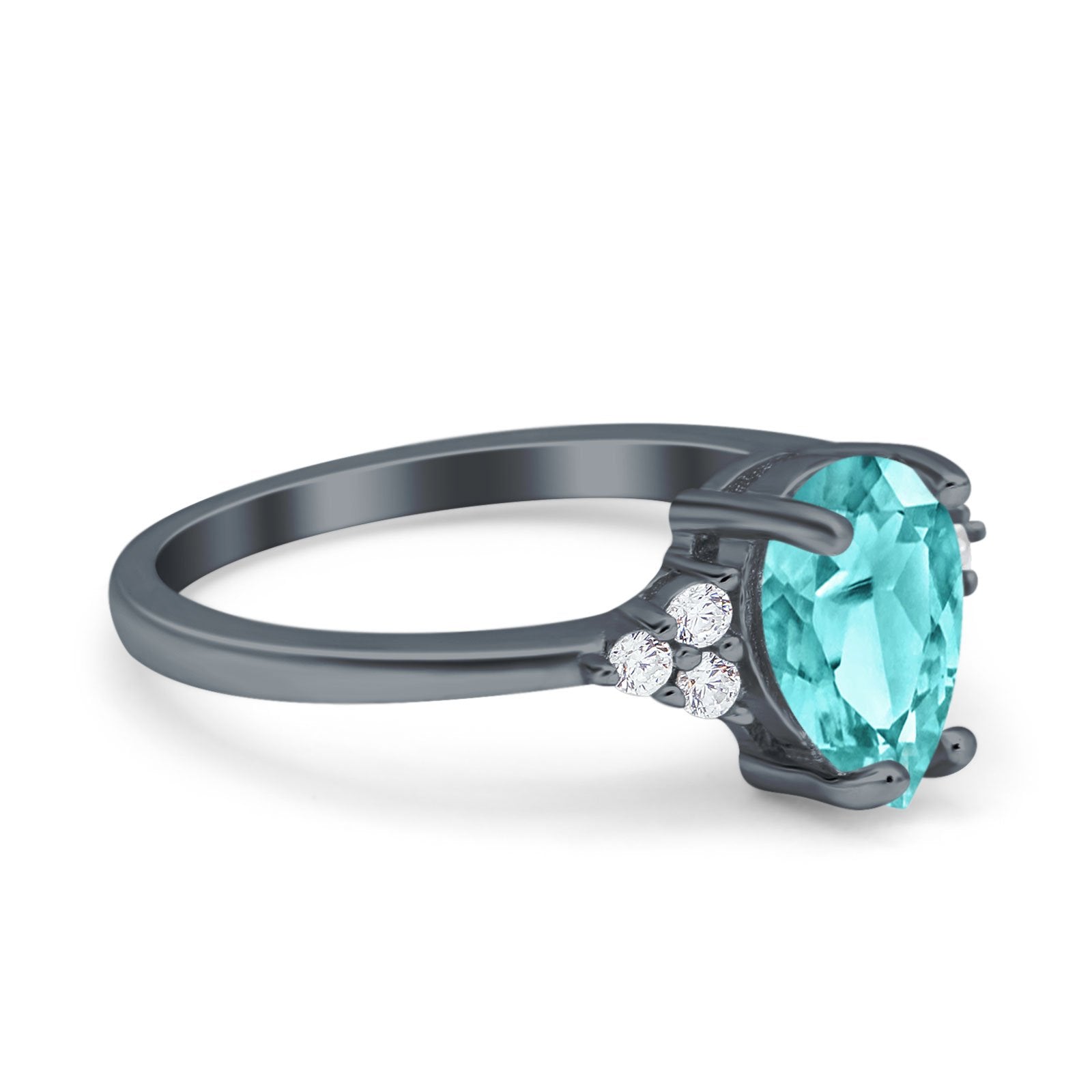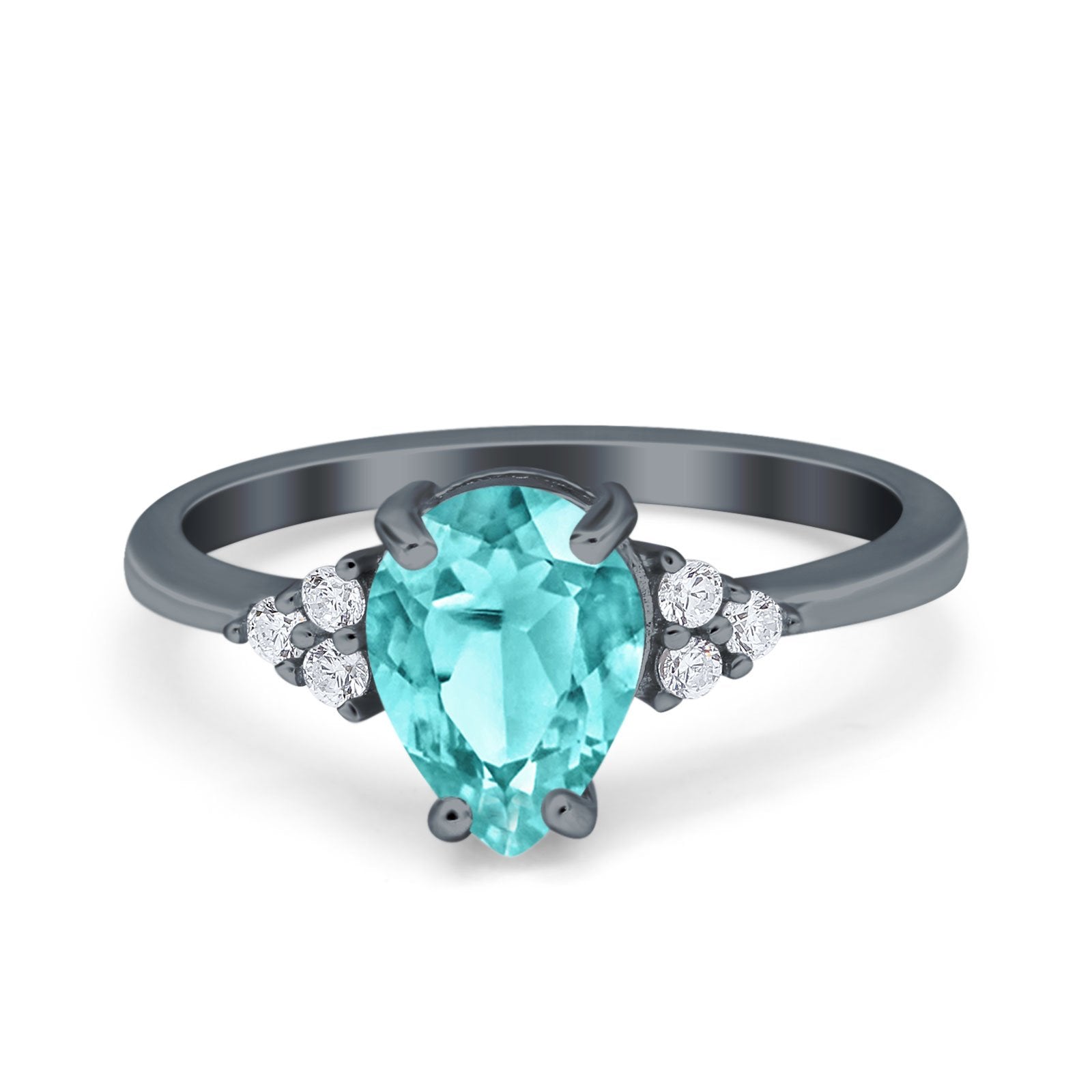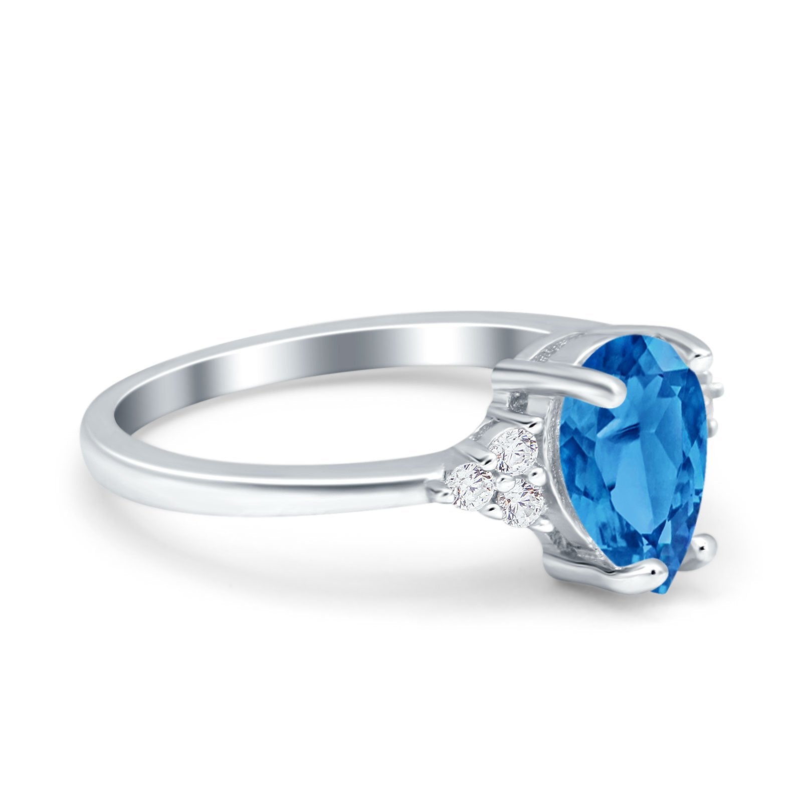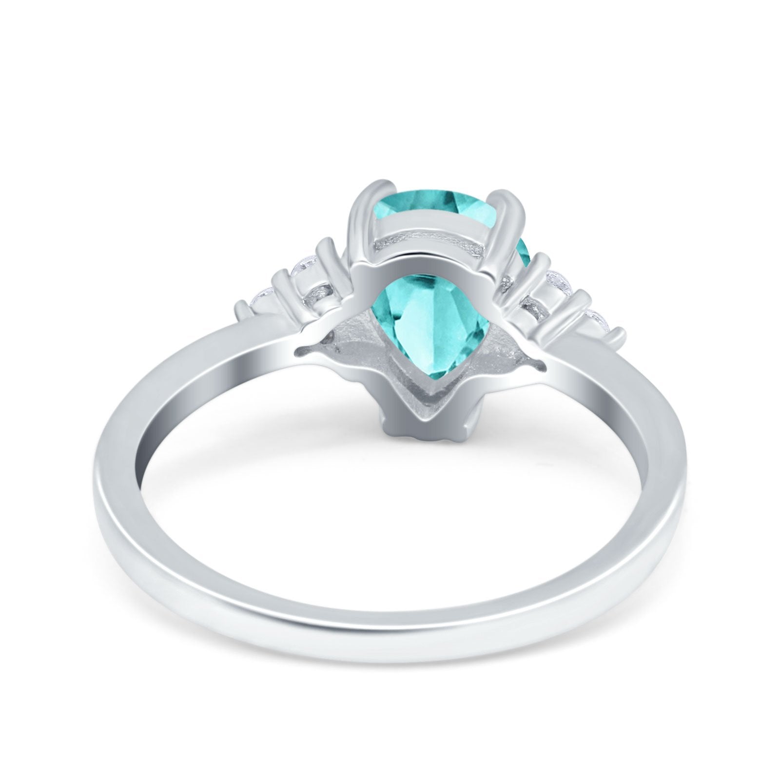 Teardrop Pear Art Deco Engagement Wedding Bridal Ring Round Simulated Cubic Zirconia Accent 925 Sterling Silver