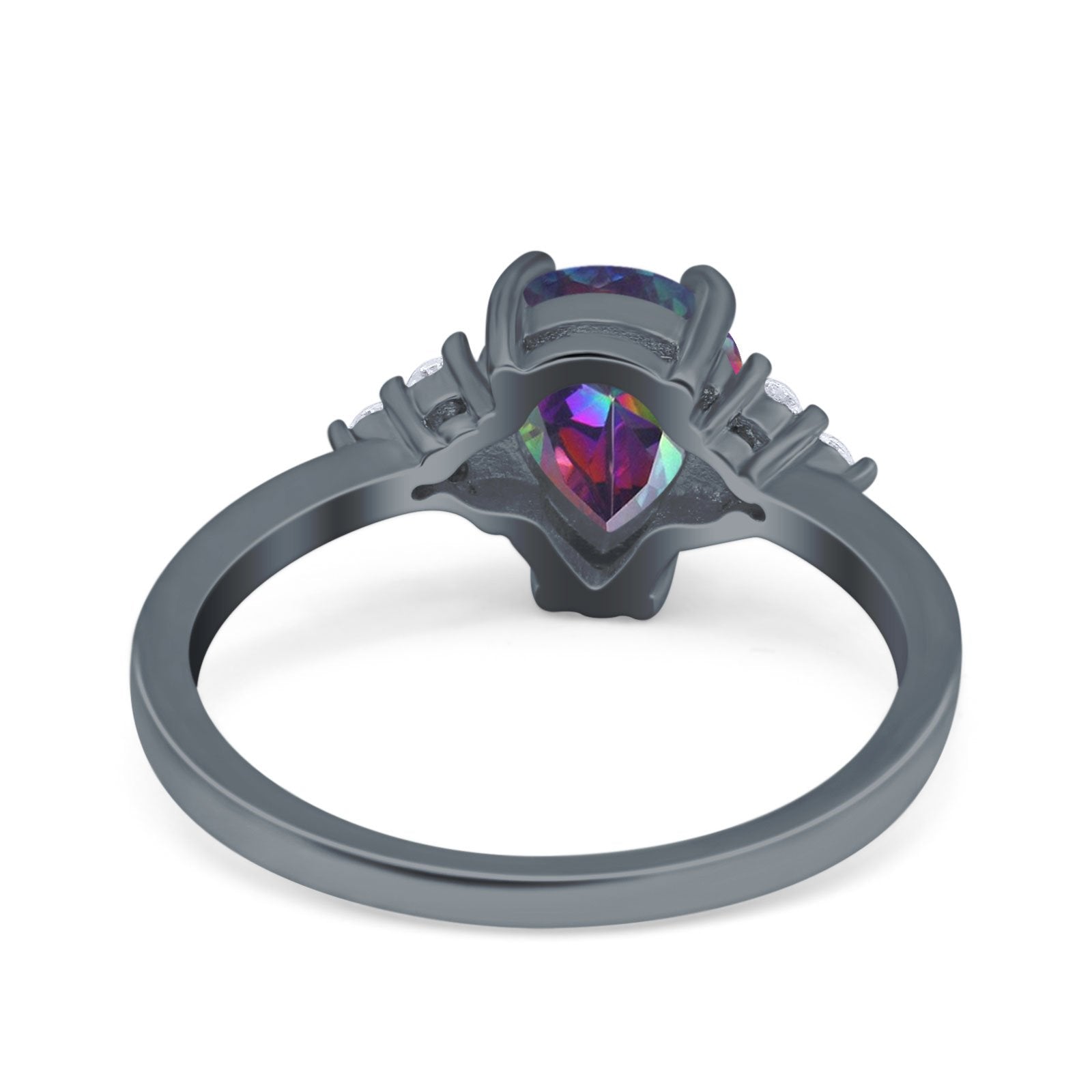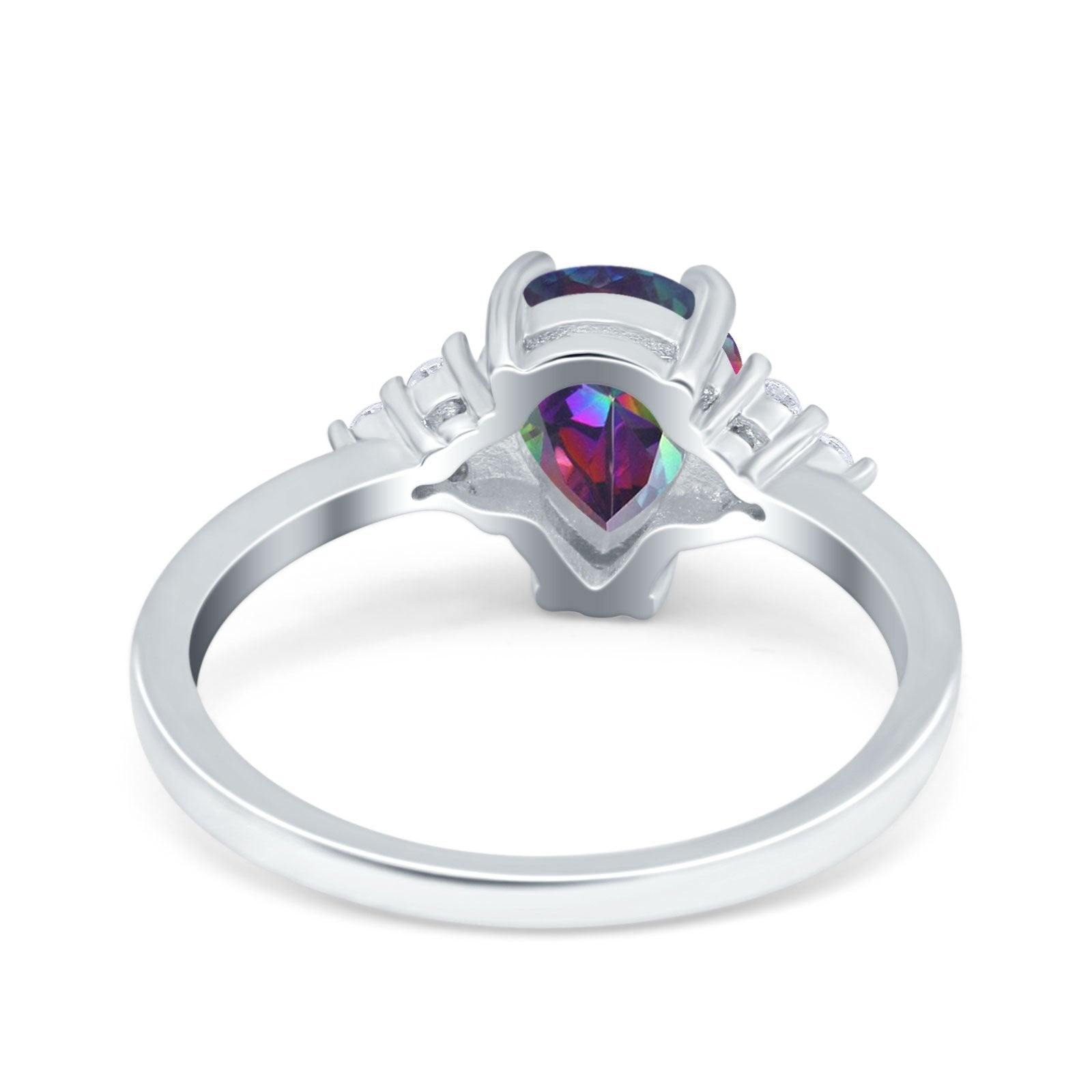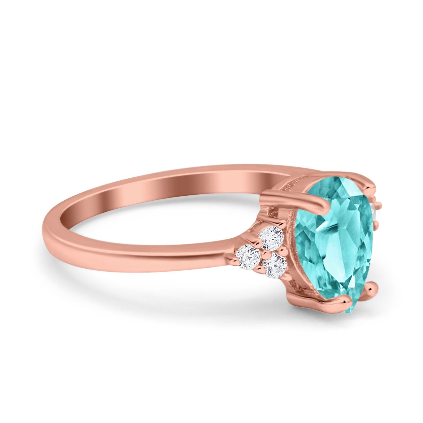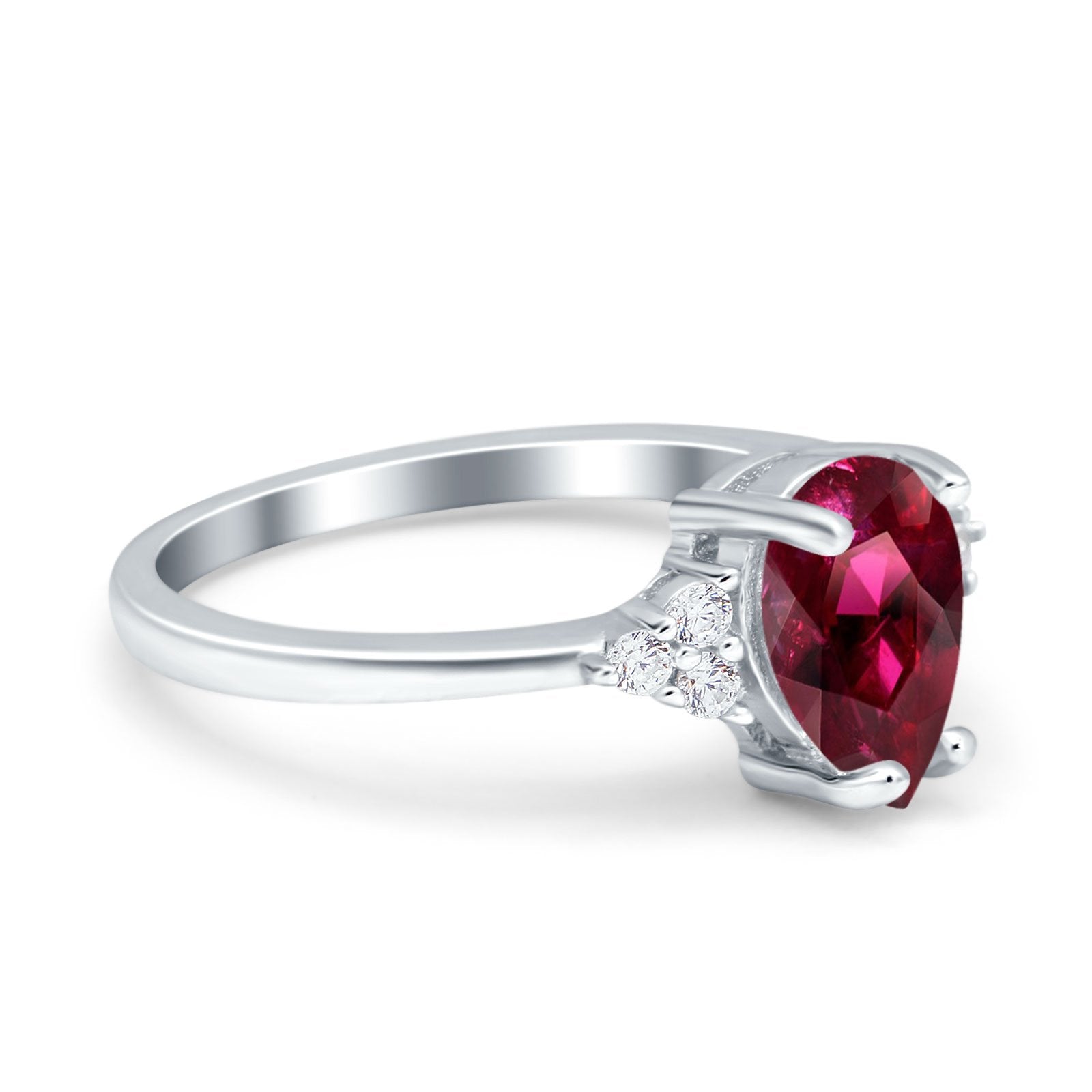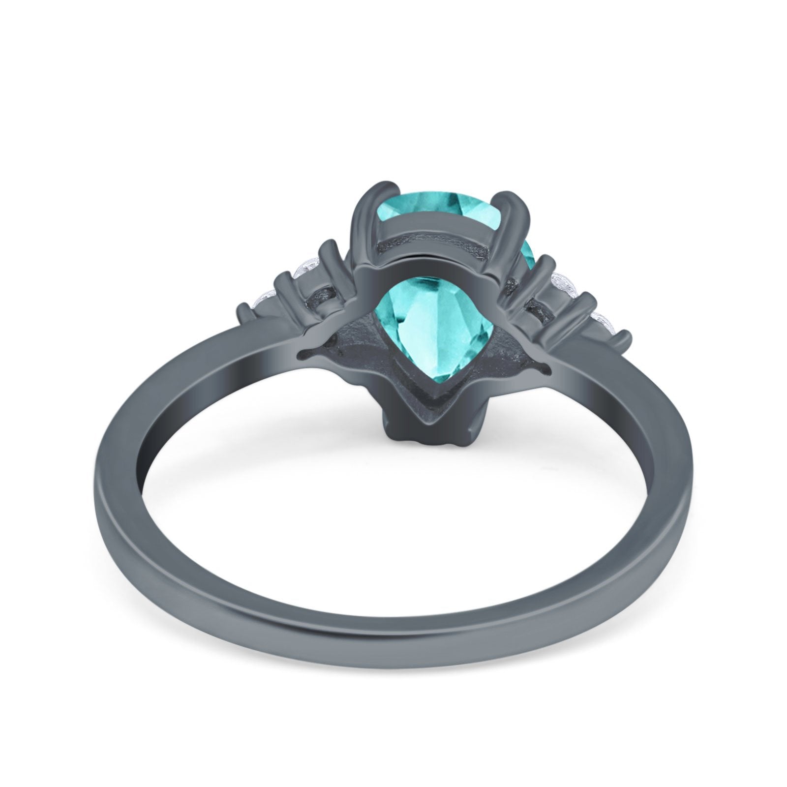 Teardrop Pear Art Deco Engagement Wedding Bridal Ring Round Simulated Cubic Zirconia Accent 925 Sterling Silver