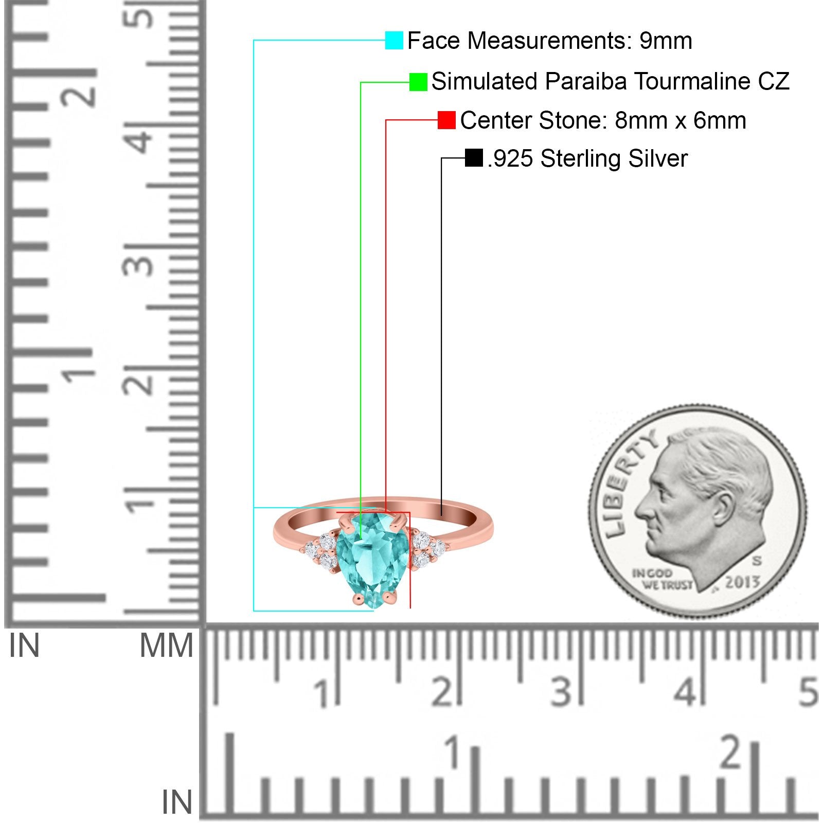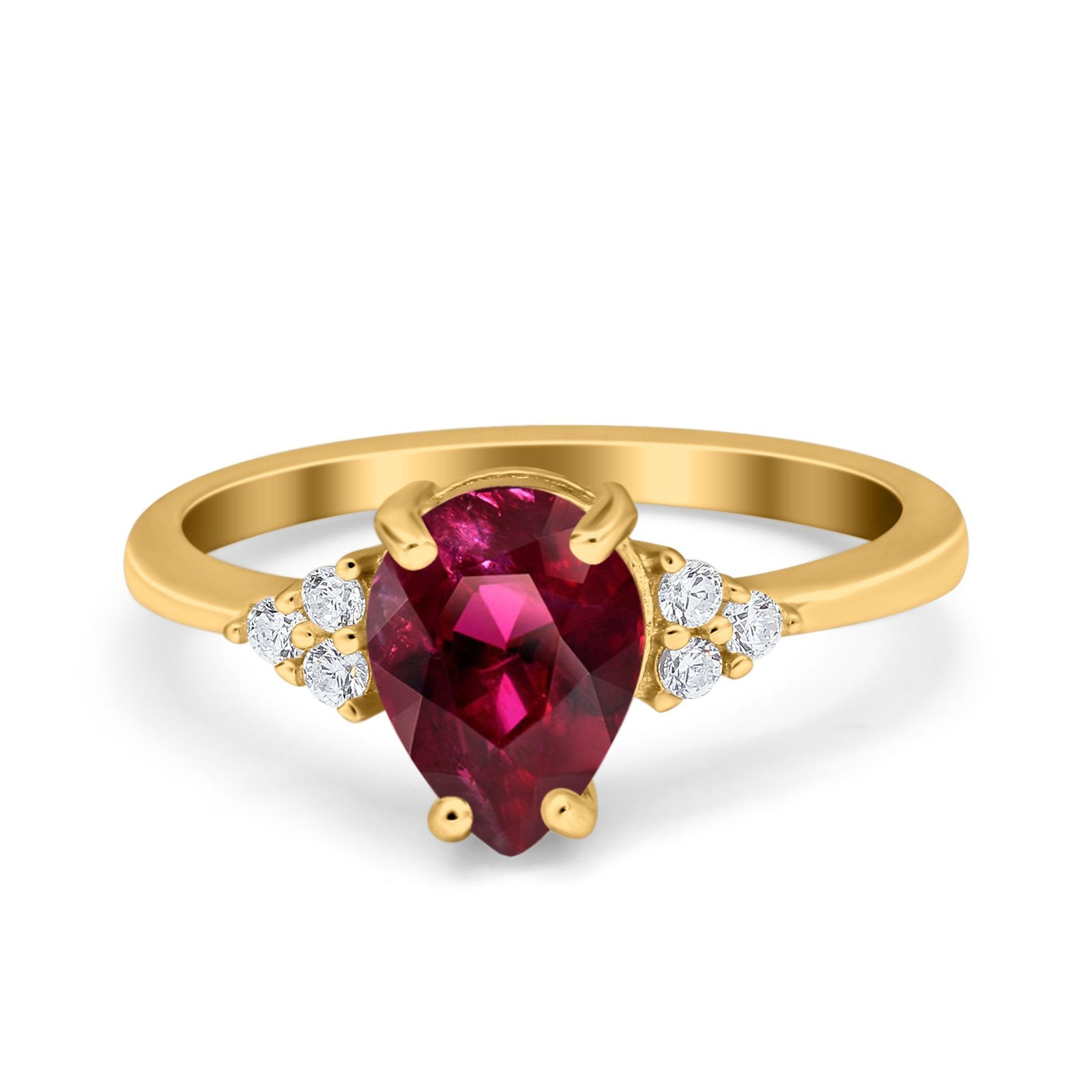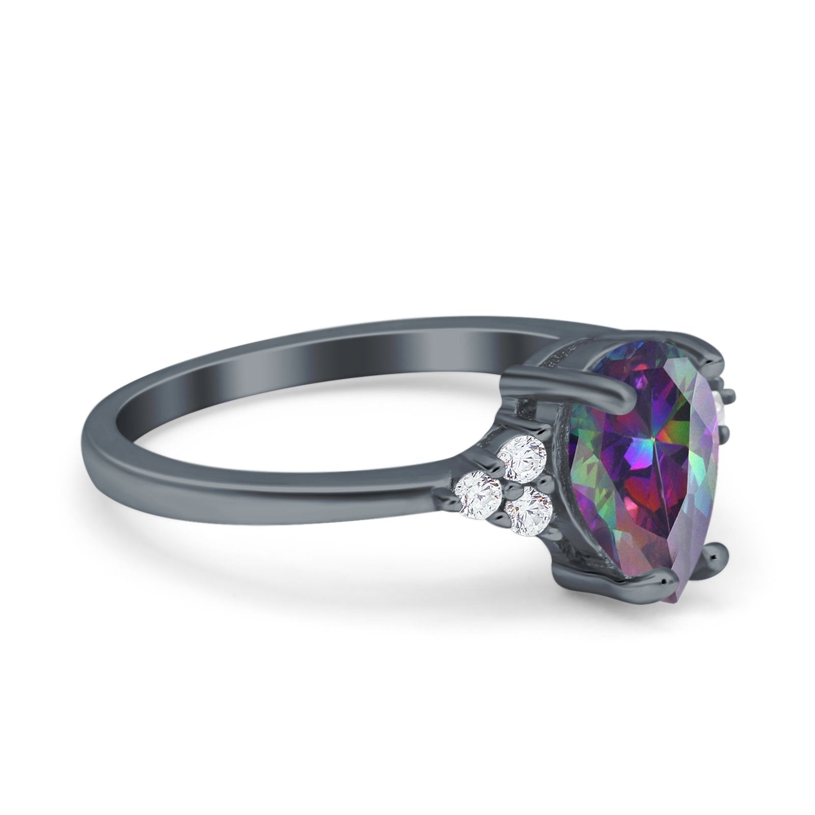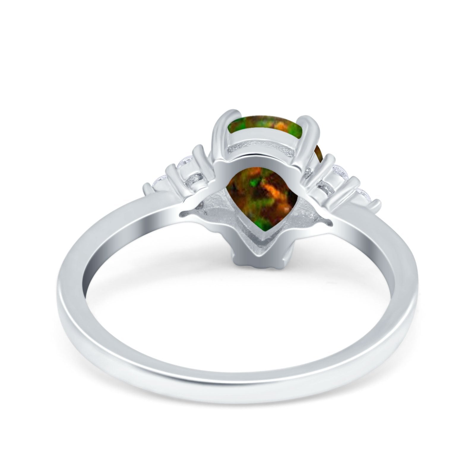 Teardrop Pear Art Deco Engagement Wedding Bridal Ring Round Simulated Cubic Zirconia Accent 925 Sterling Silver