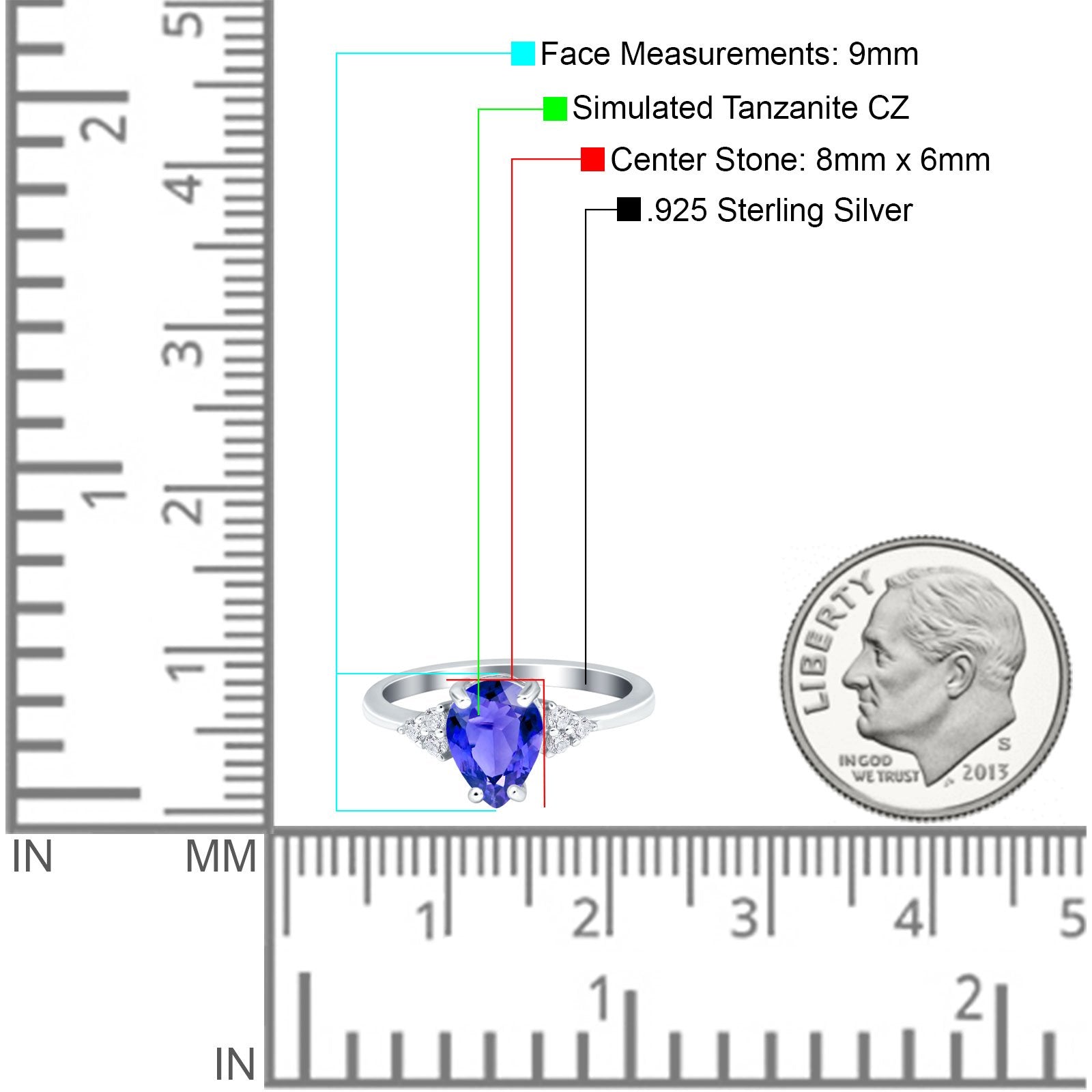 Metal Purity: 92.5% Sterling.
