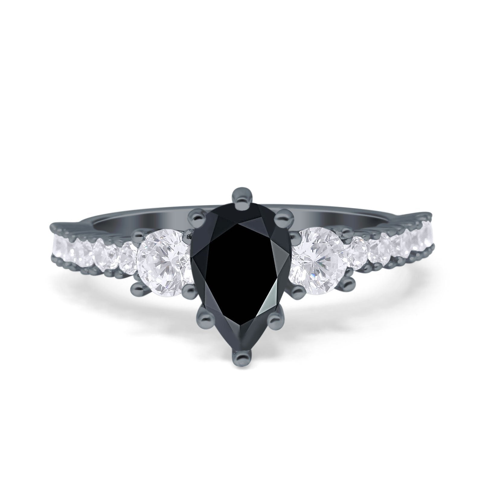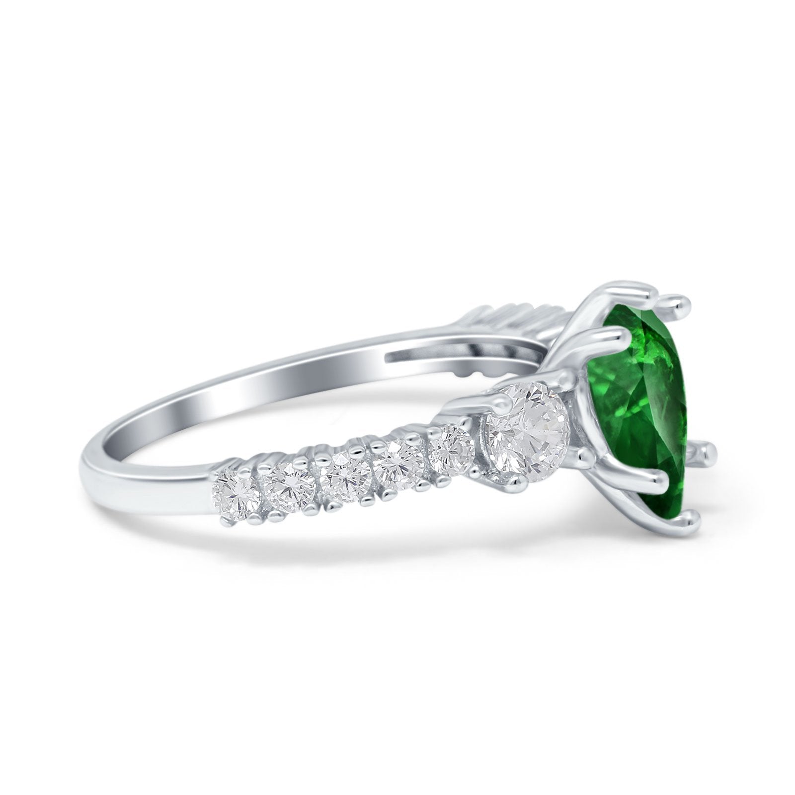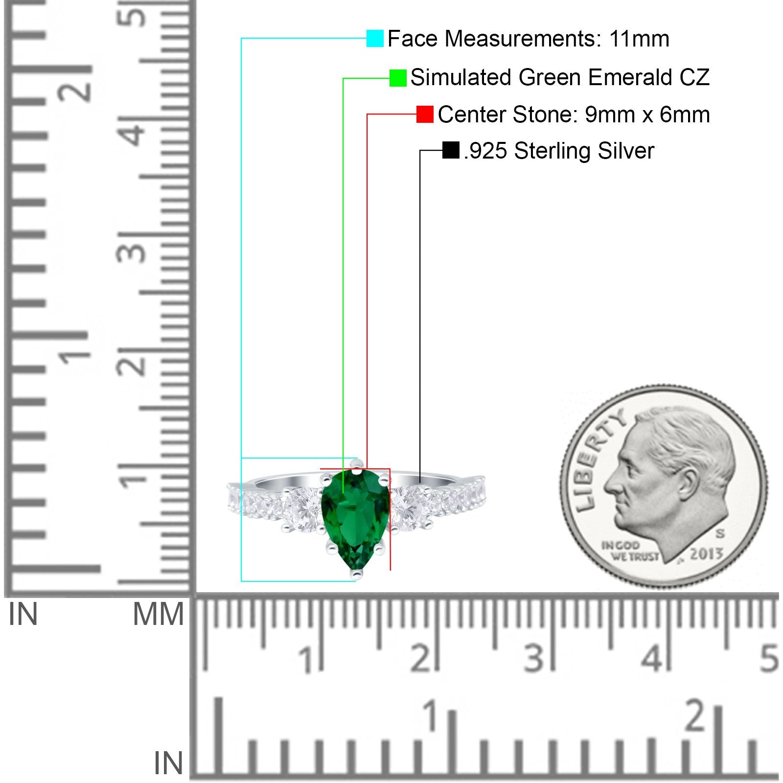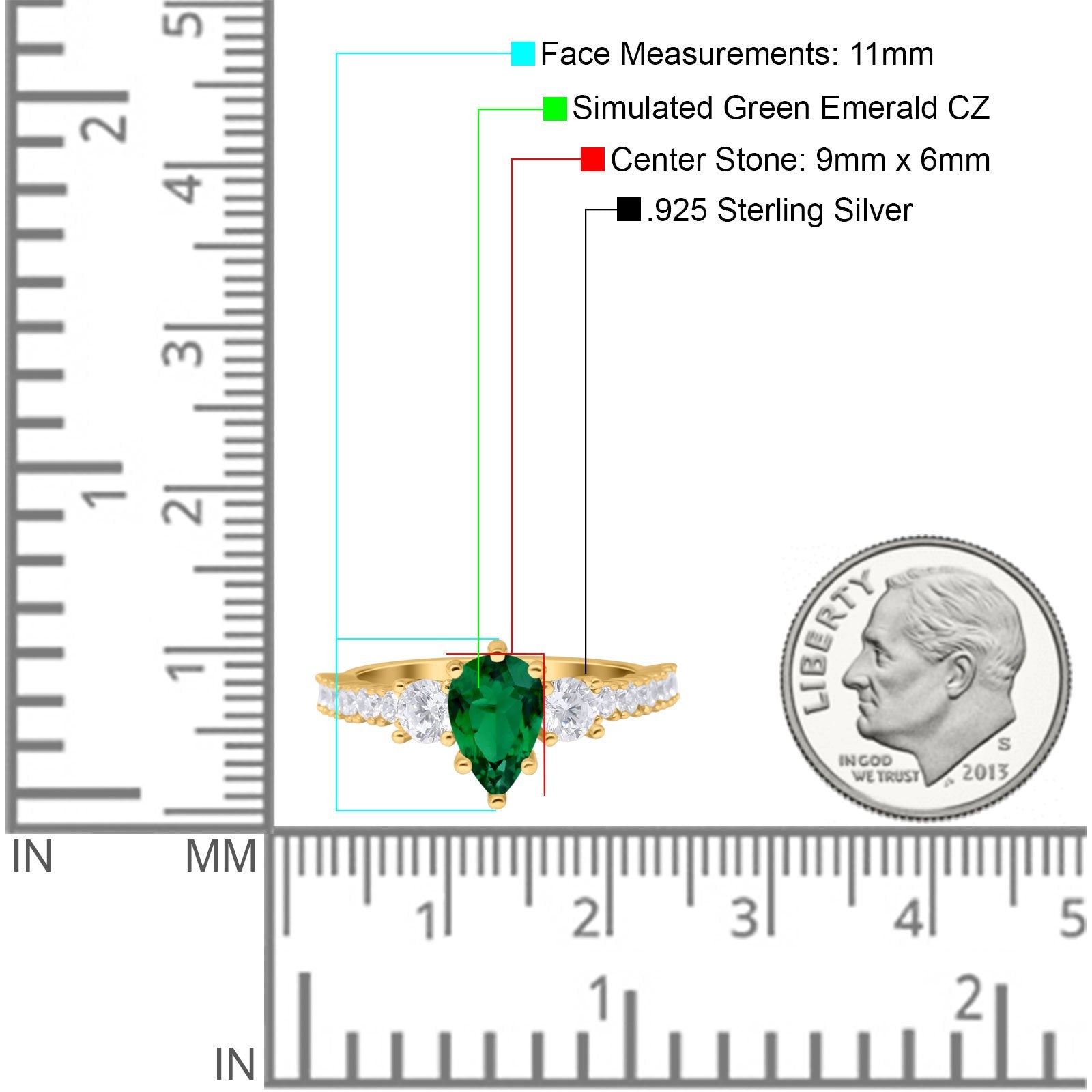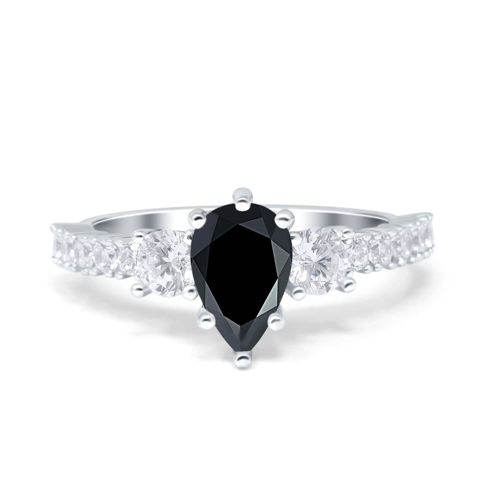 Teardrop Pear Art Deco Three Stone Accent Engagement Ring Round Simulated Simulated Cubic Zirconia 925 Sterling Silver