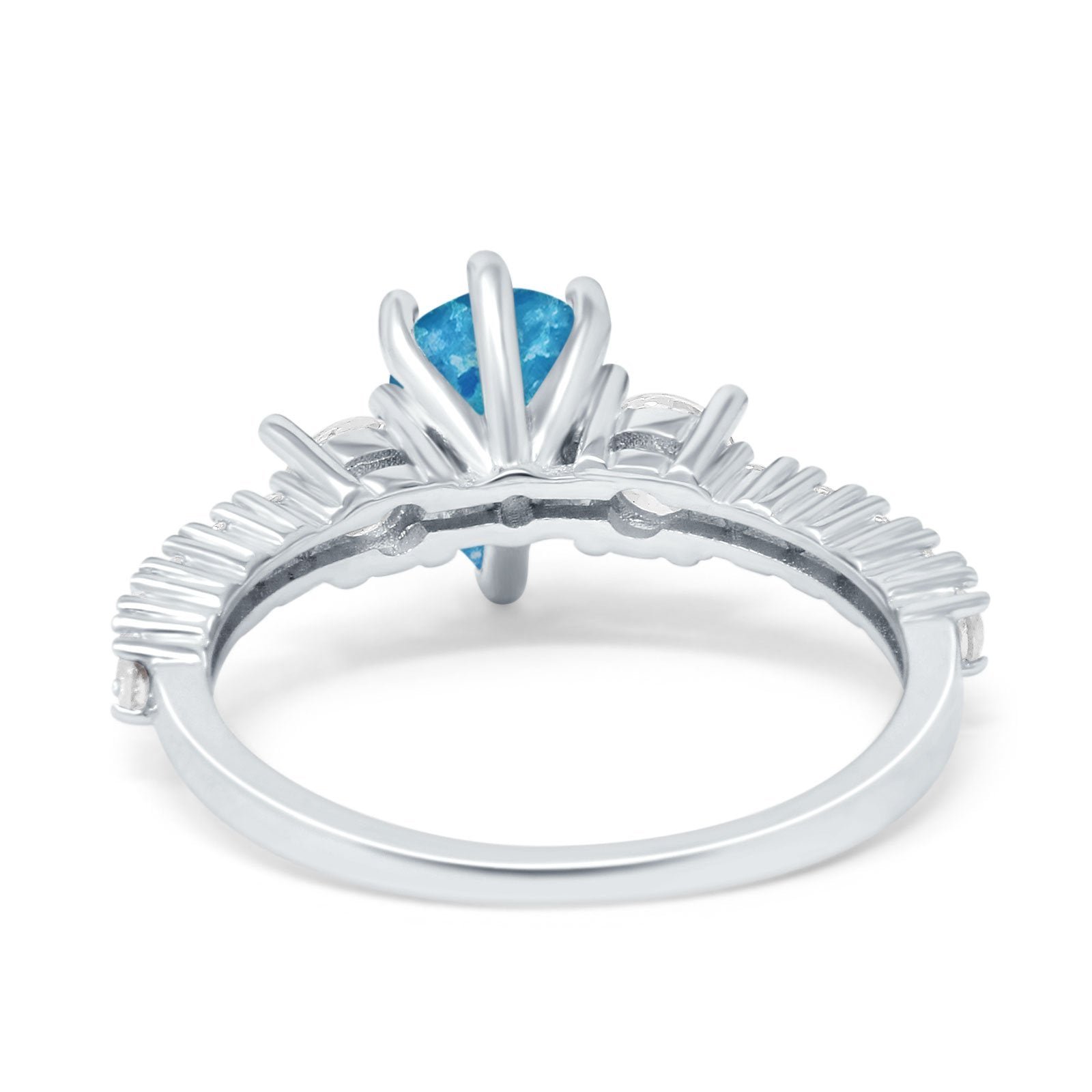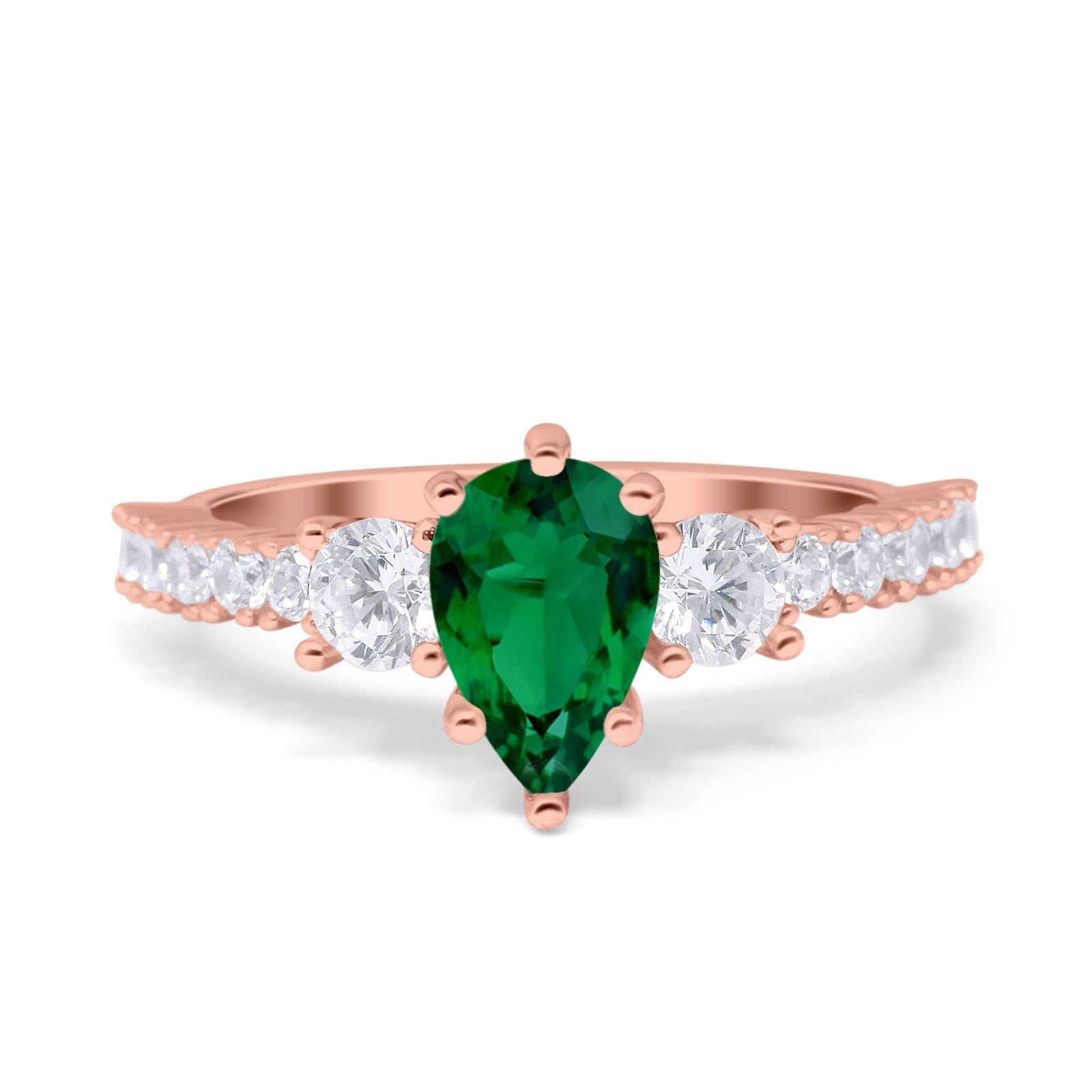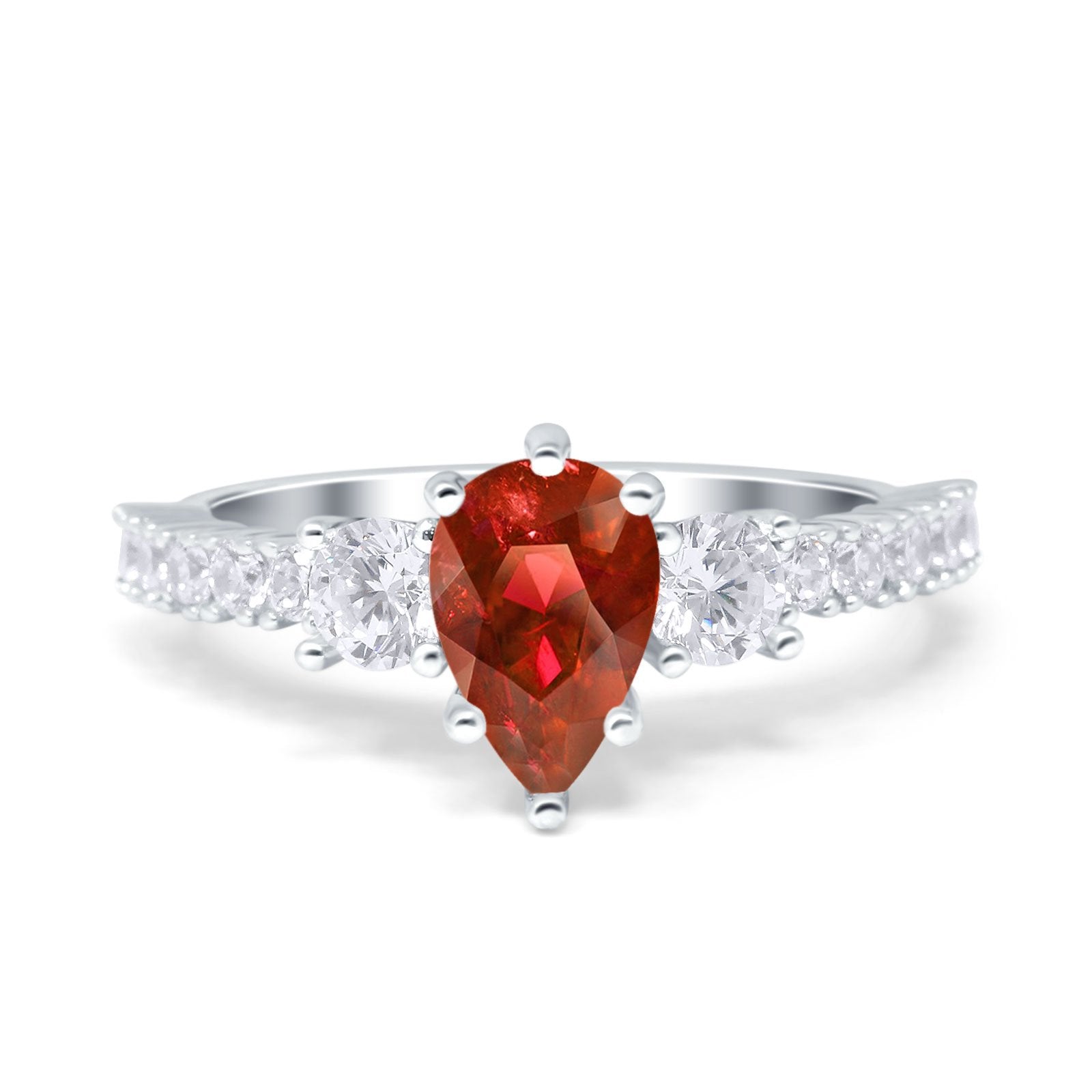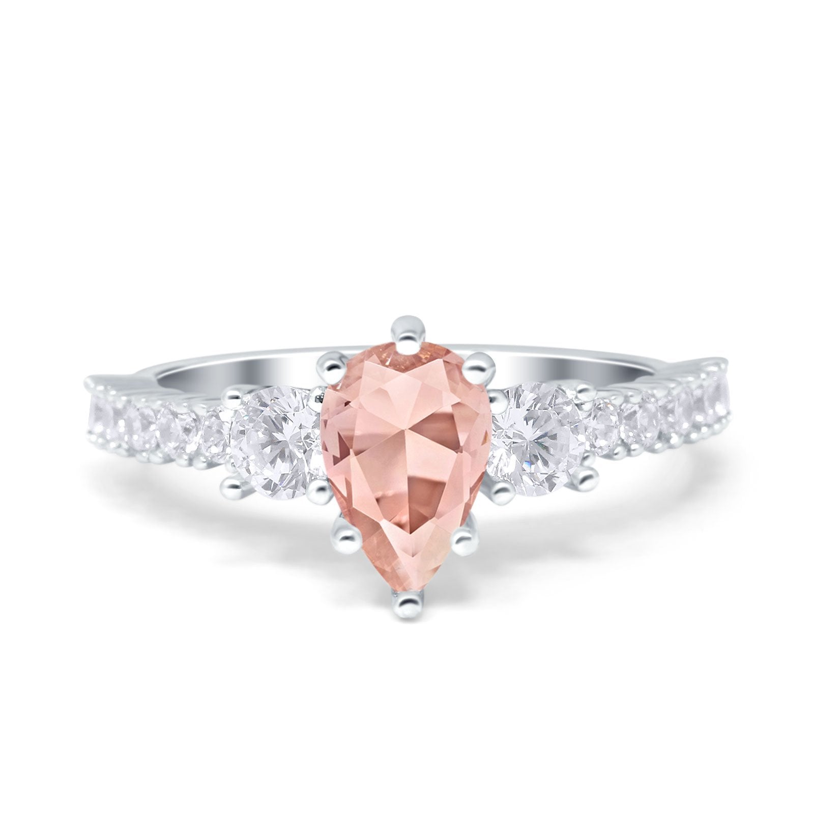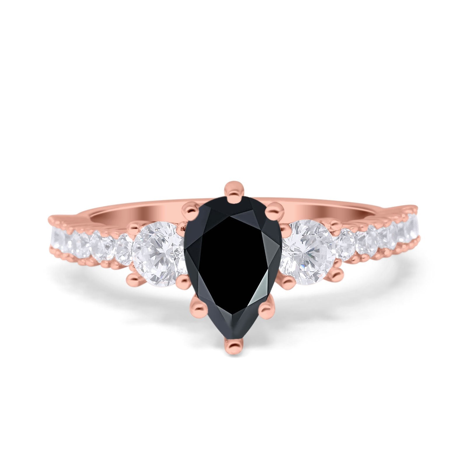Teardrop Pear Art Deco Three Stone Accent Engagement Ring Round Simulated Simulated Cubic Zirconia 925 Sterling Silver