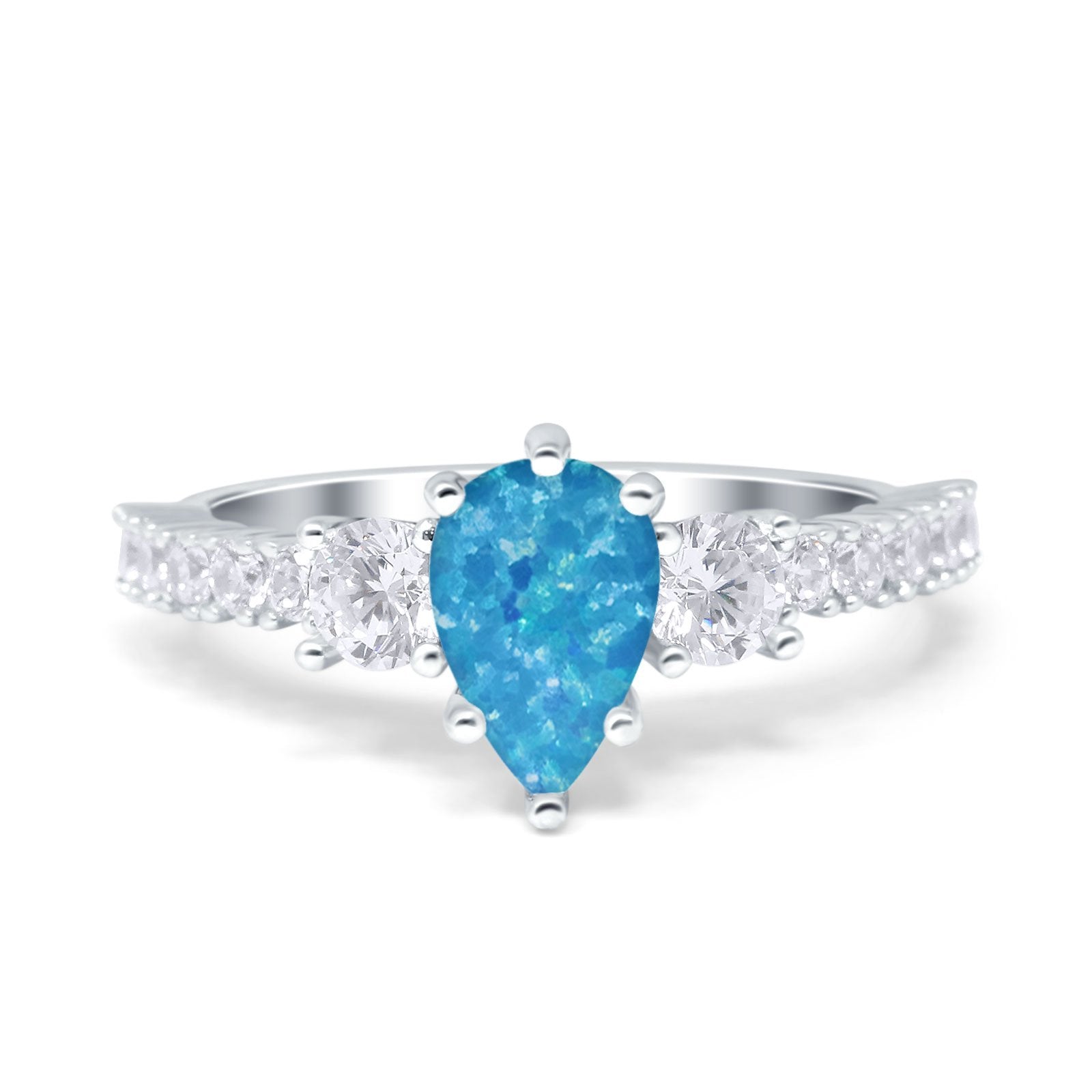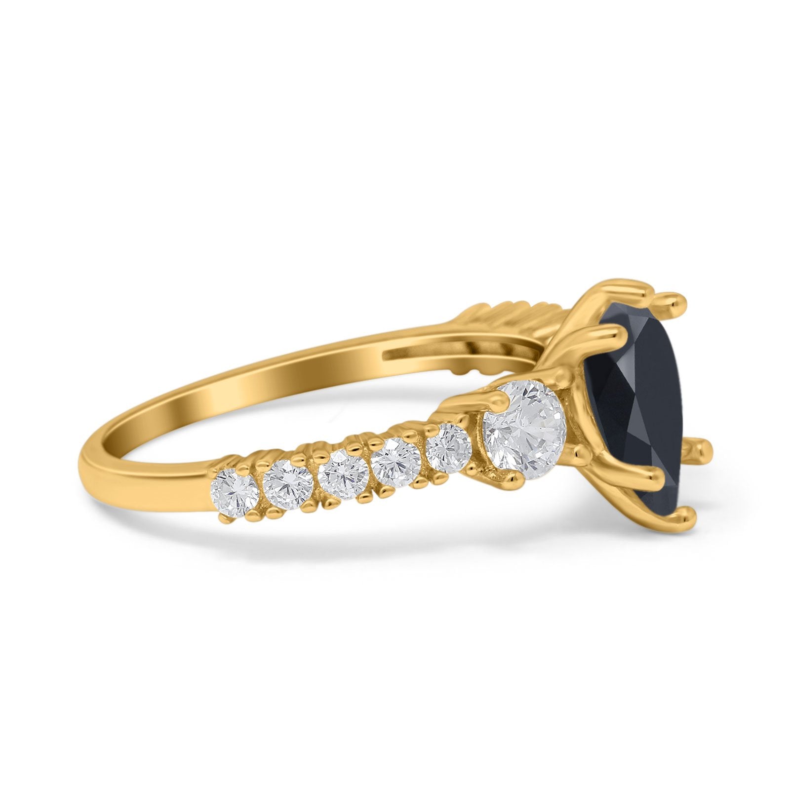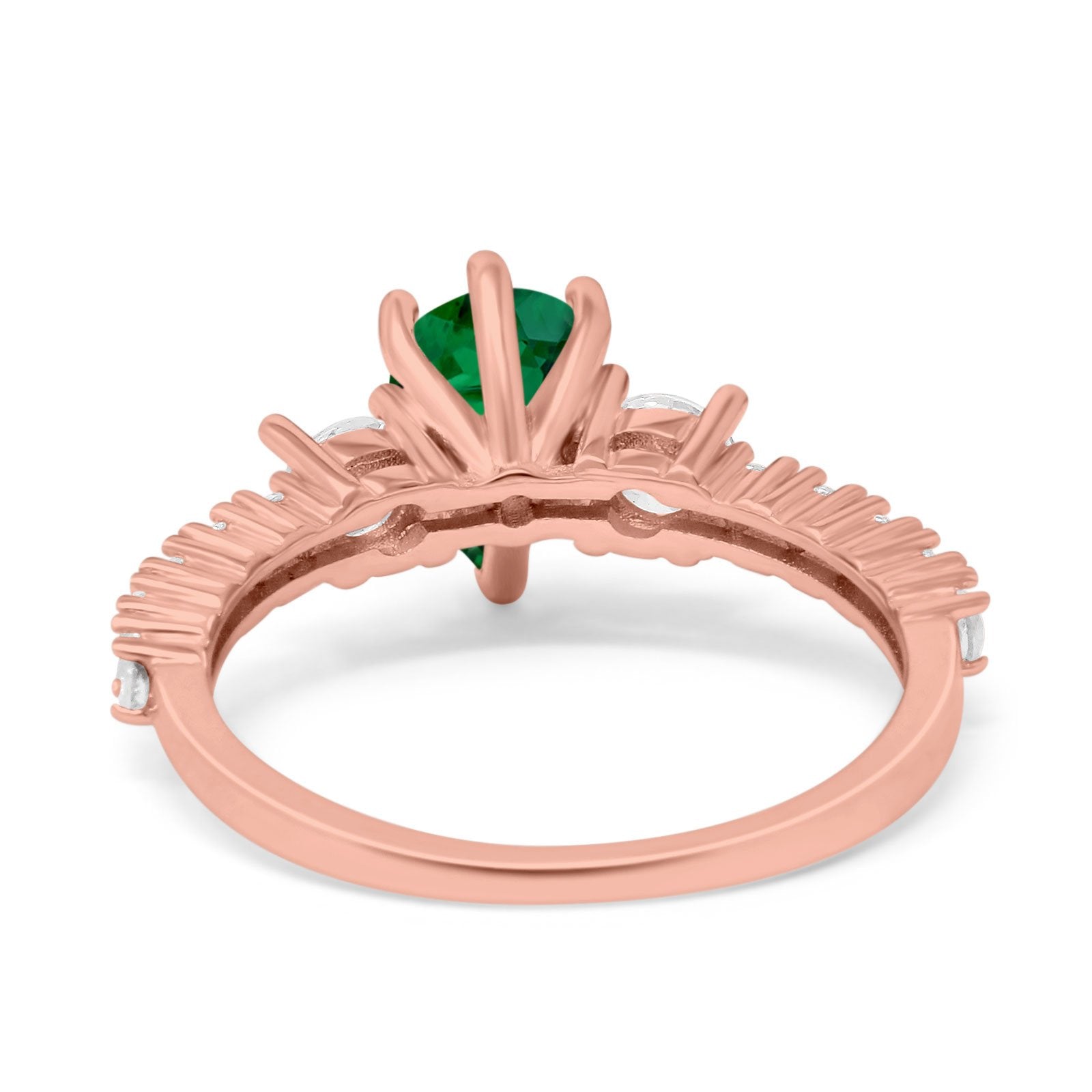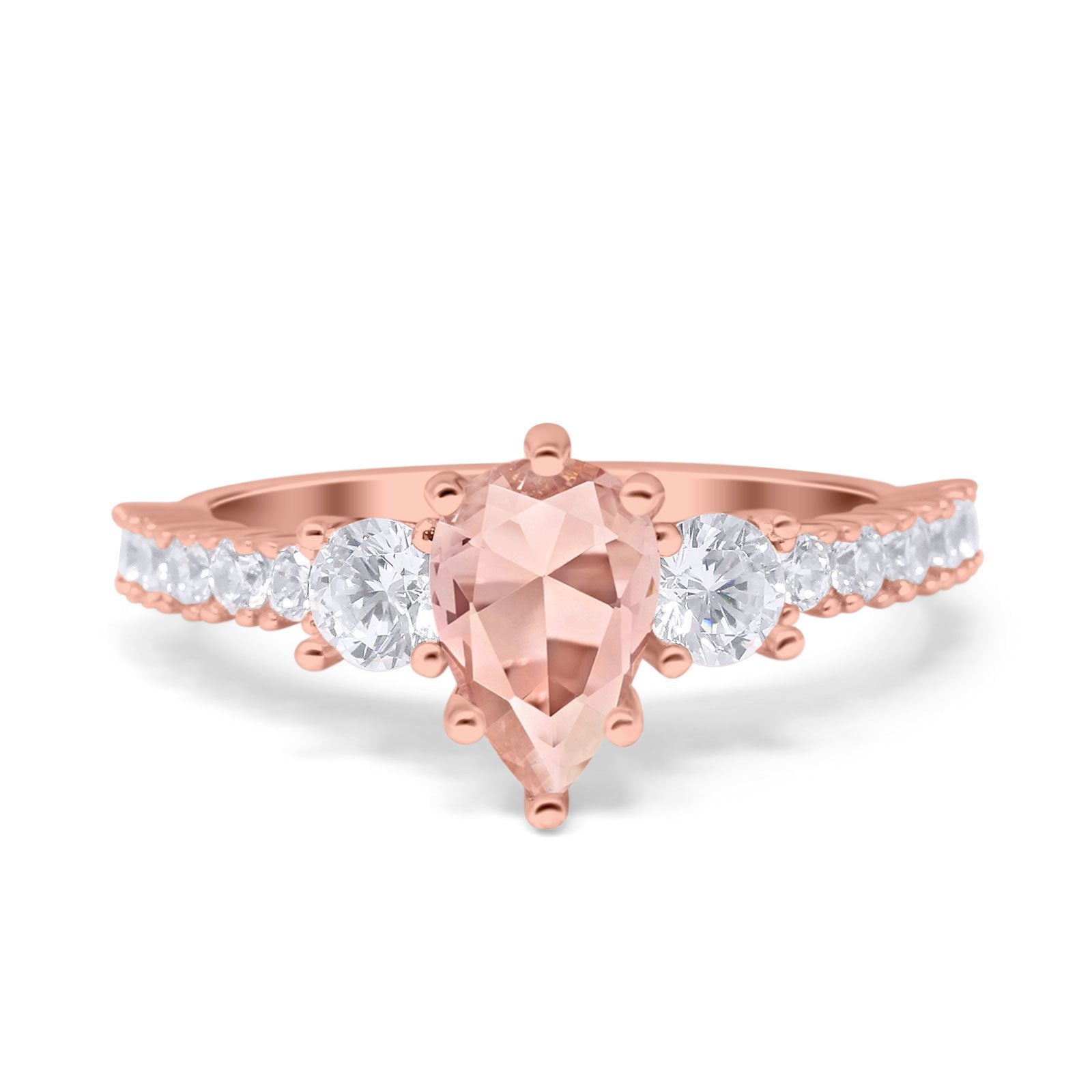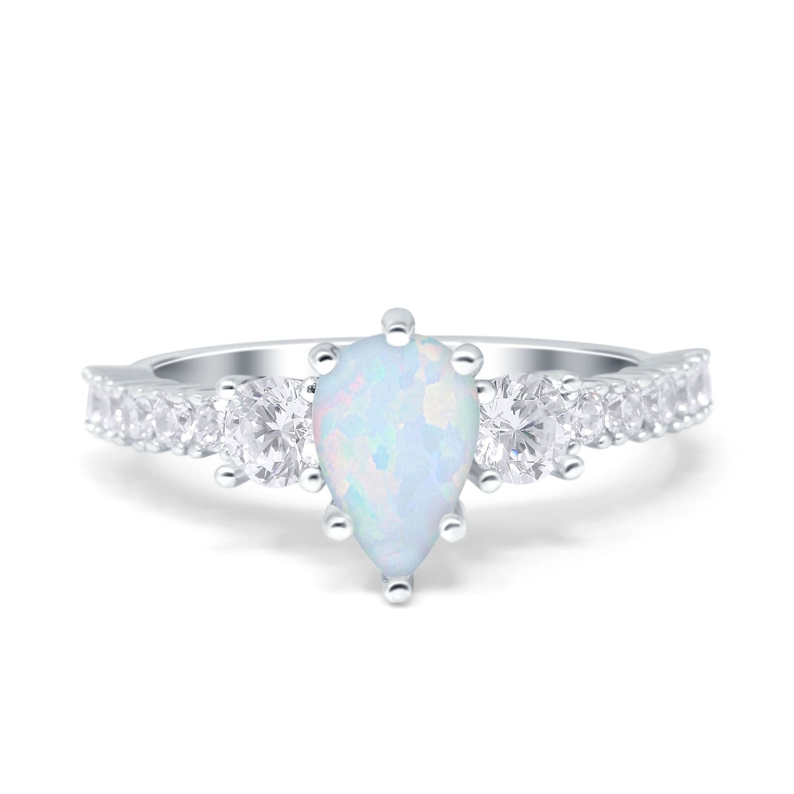 Teardrop Pear Art Deco Three Stone Accent Engagement Ring Round Simulated Simulated Cubic Zirconia 925 Sterling Silver