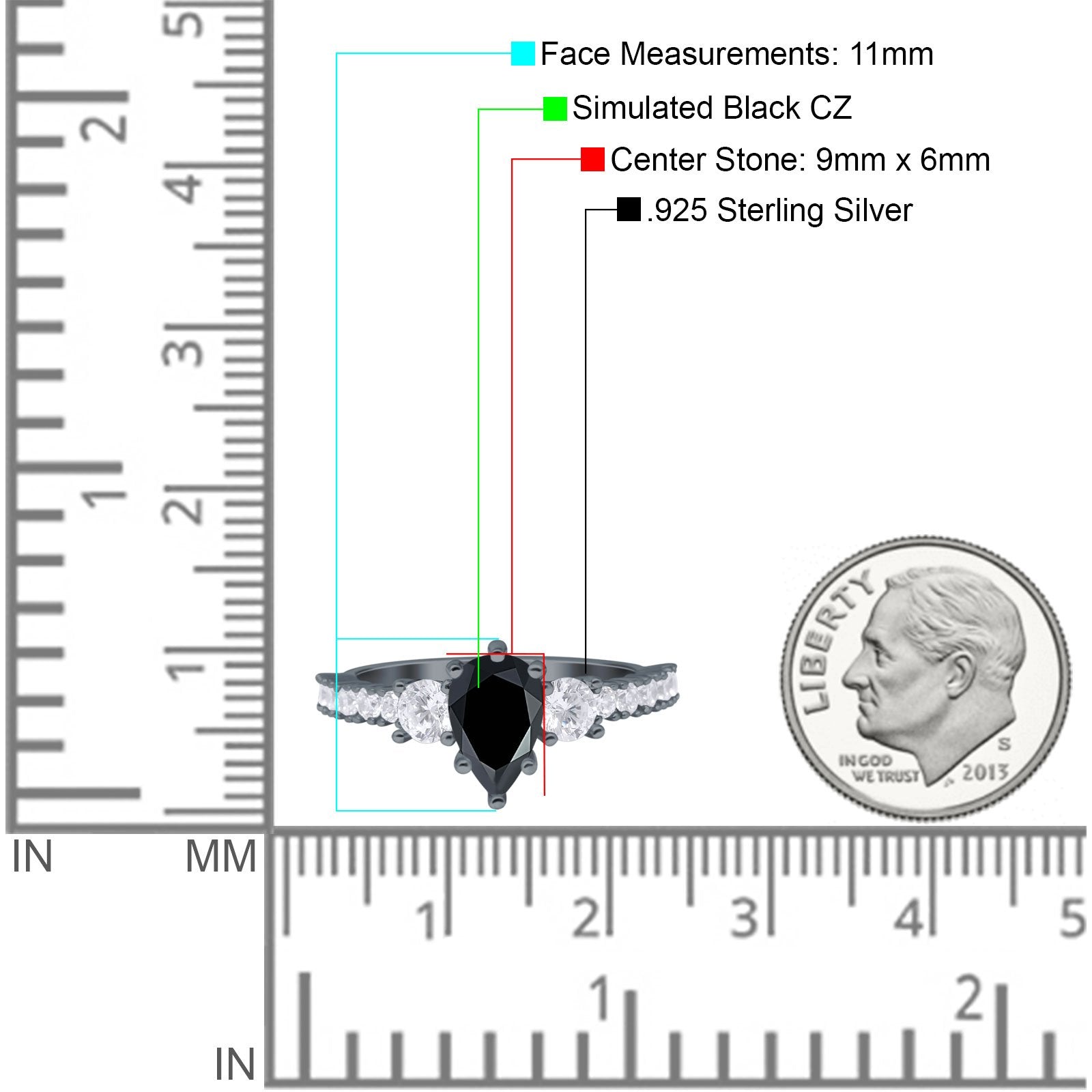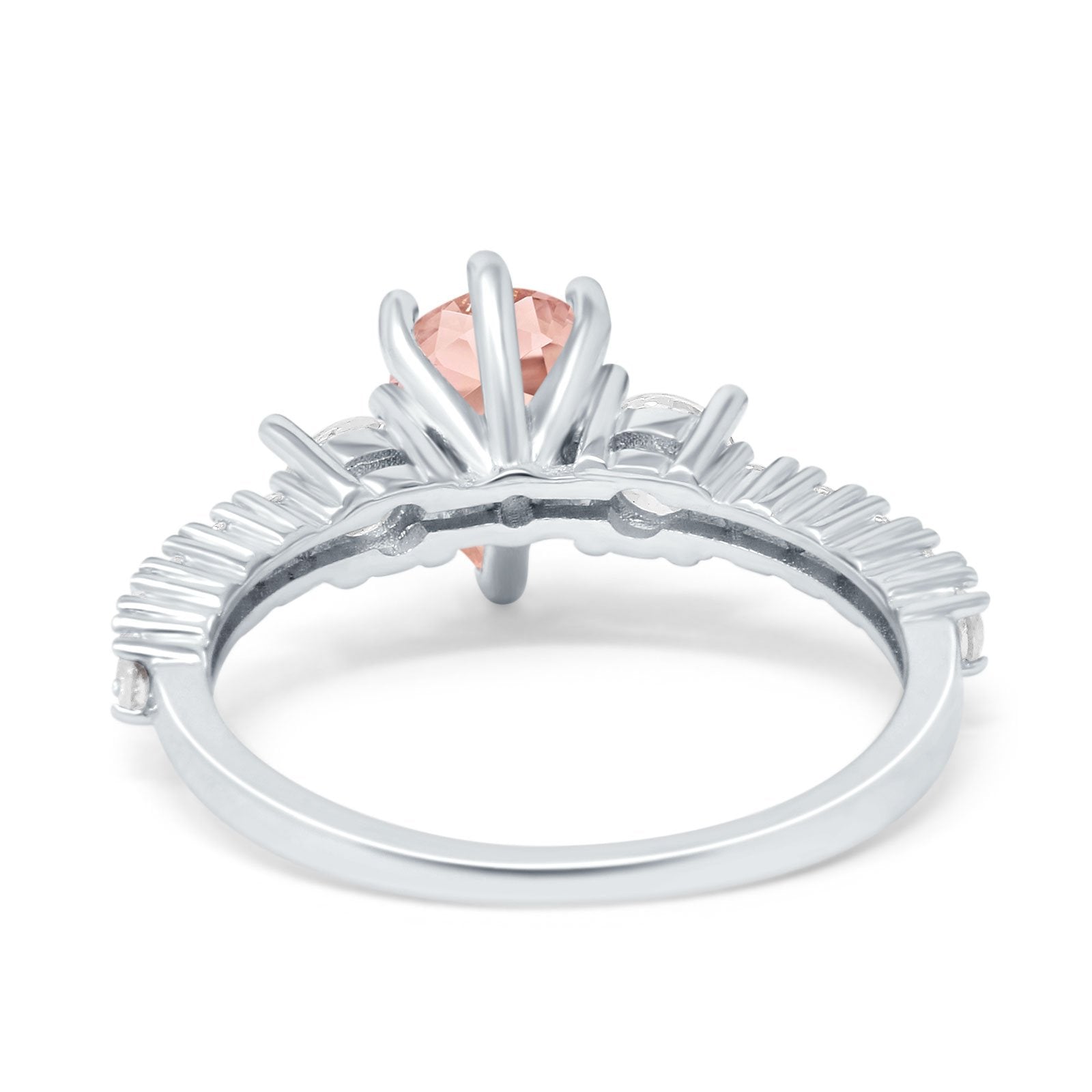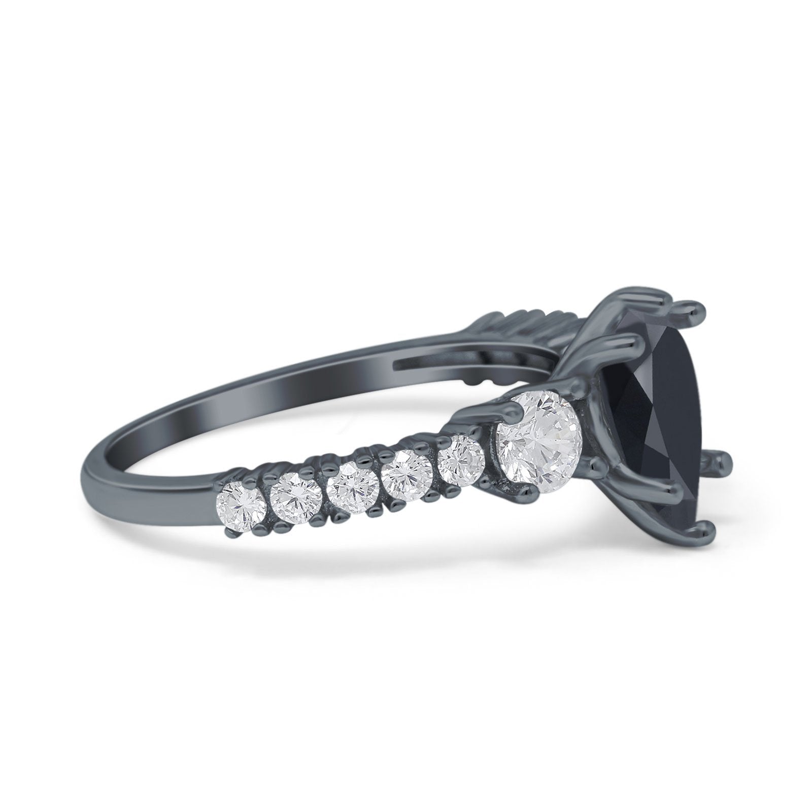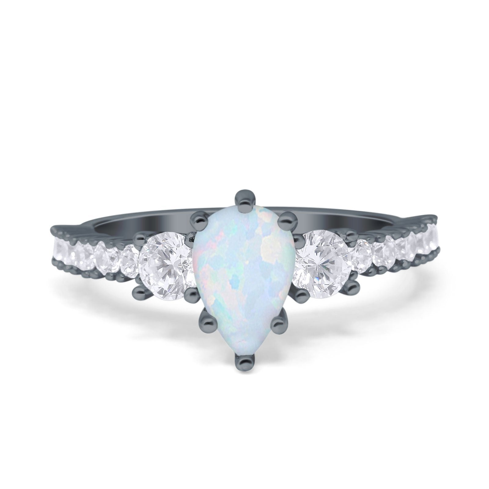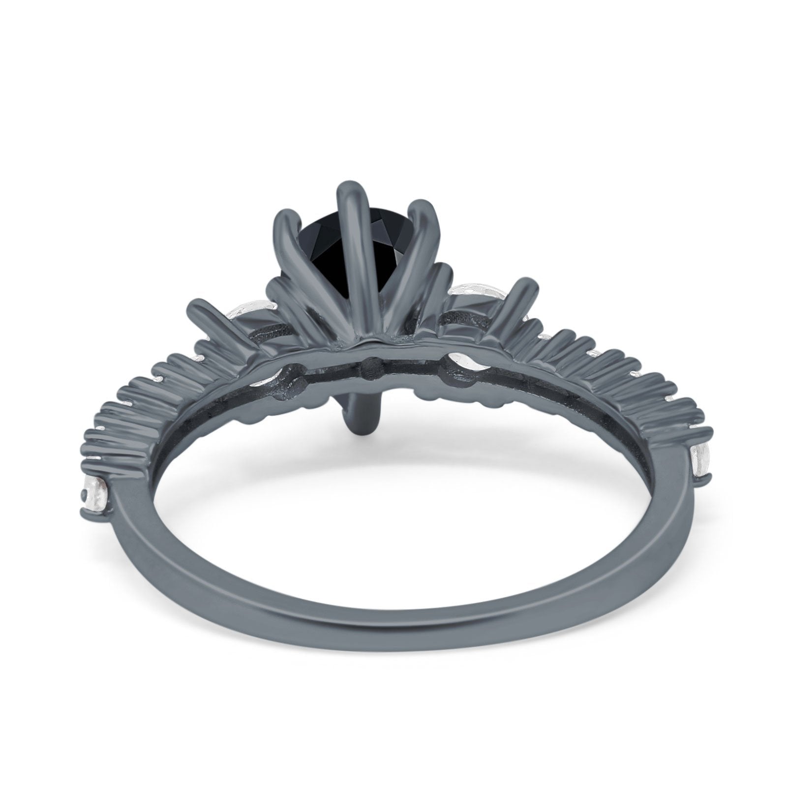 Teardrop Pear Art Deco Three Stone Accent Engagement Ring Round Simulated Simulated Cubic Zirconia 925 Sterling Silver