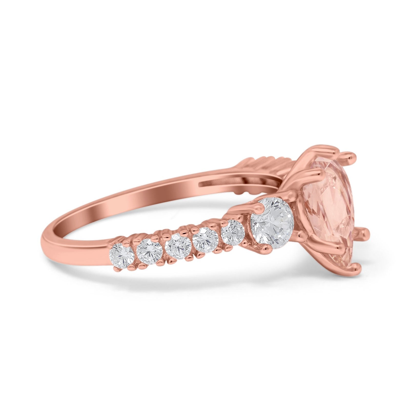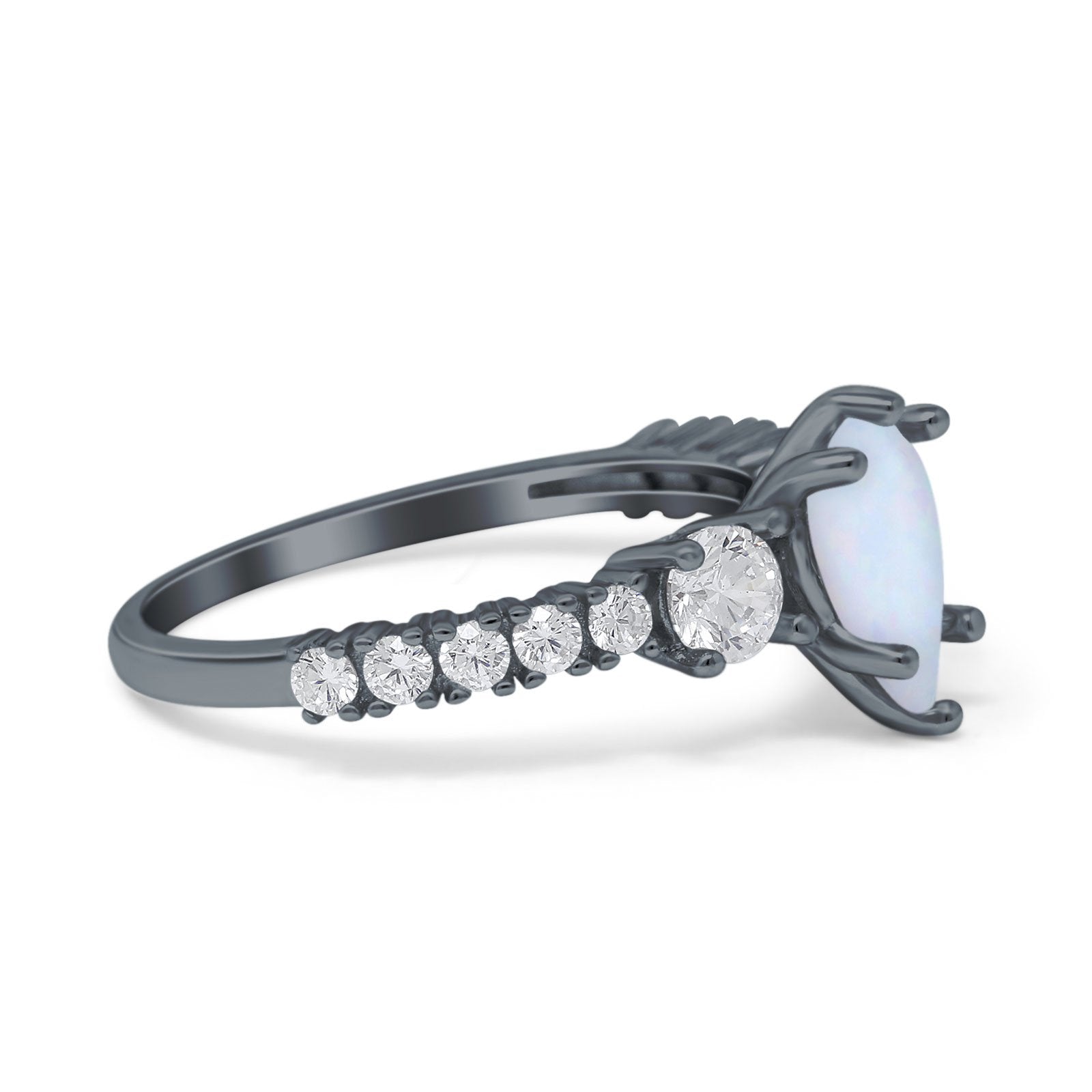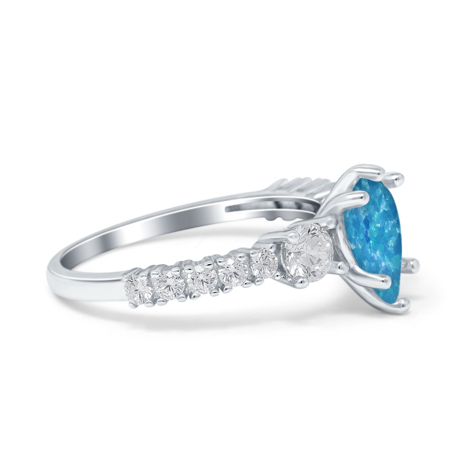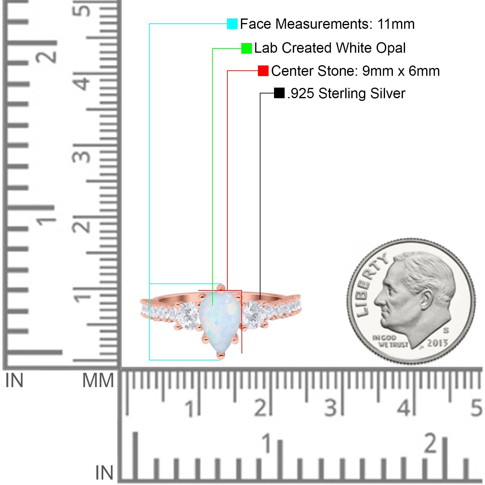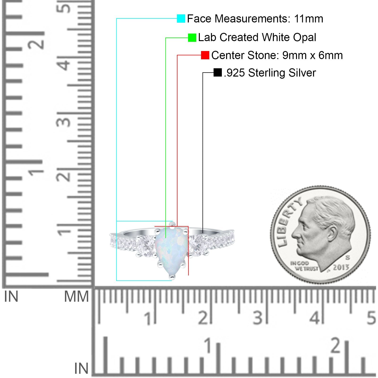Teardrop Pear Art Deco Three Stone Accent Engagement Ring Round Simulated Simulated Cubic Zirconia 925 Sterling Silver