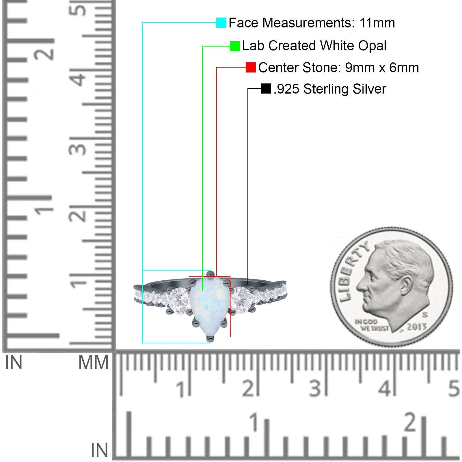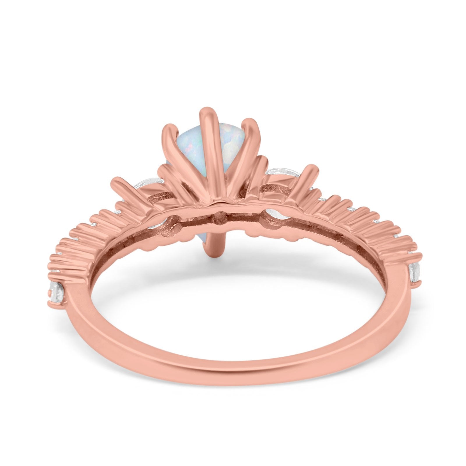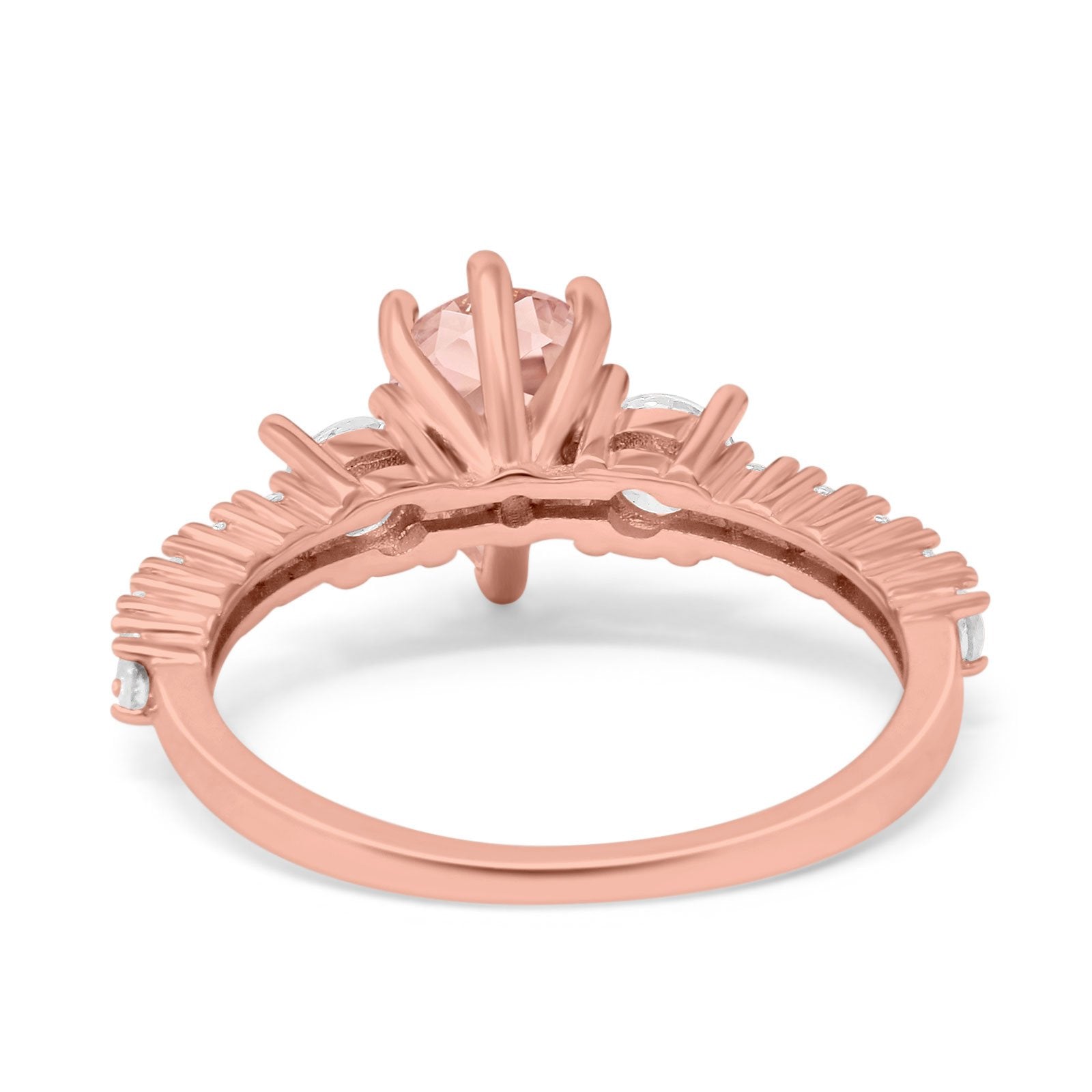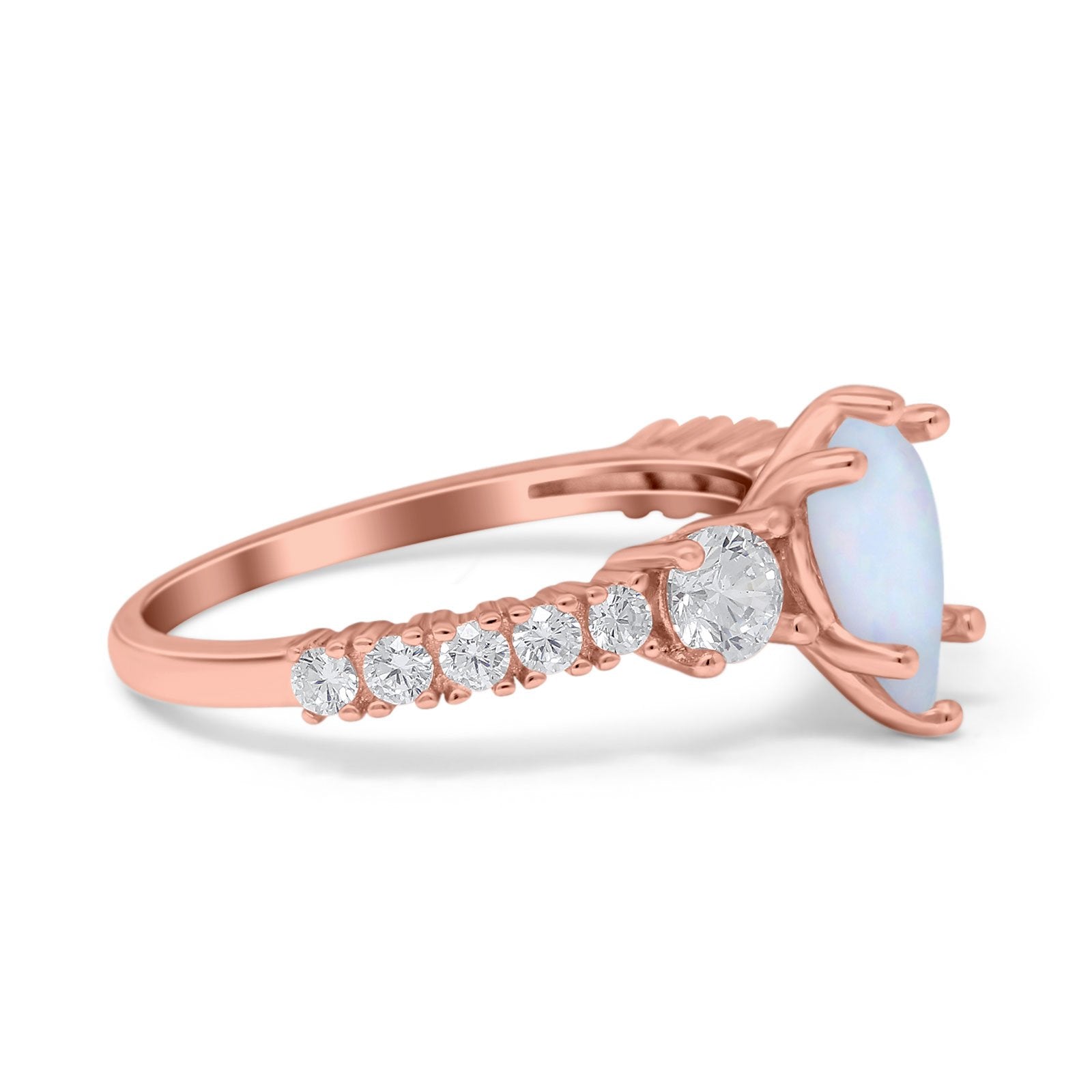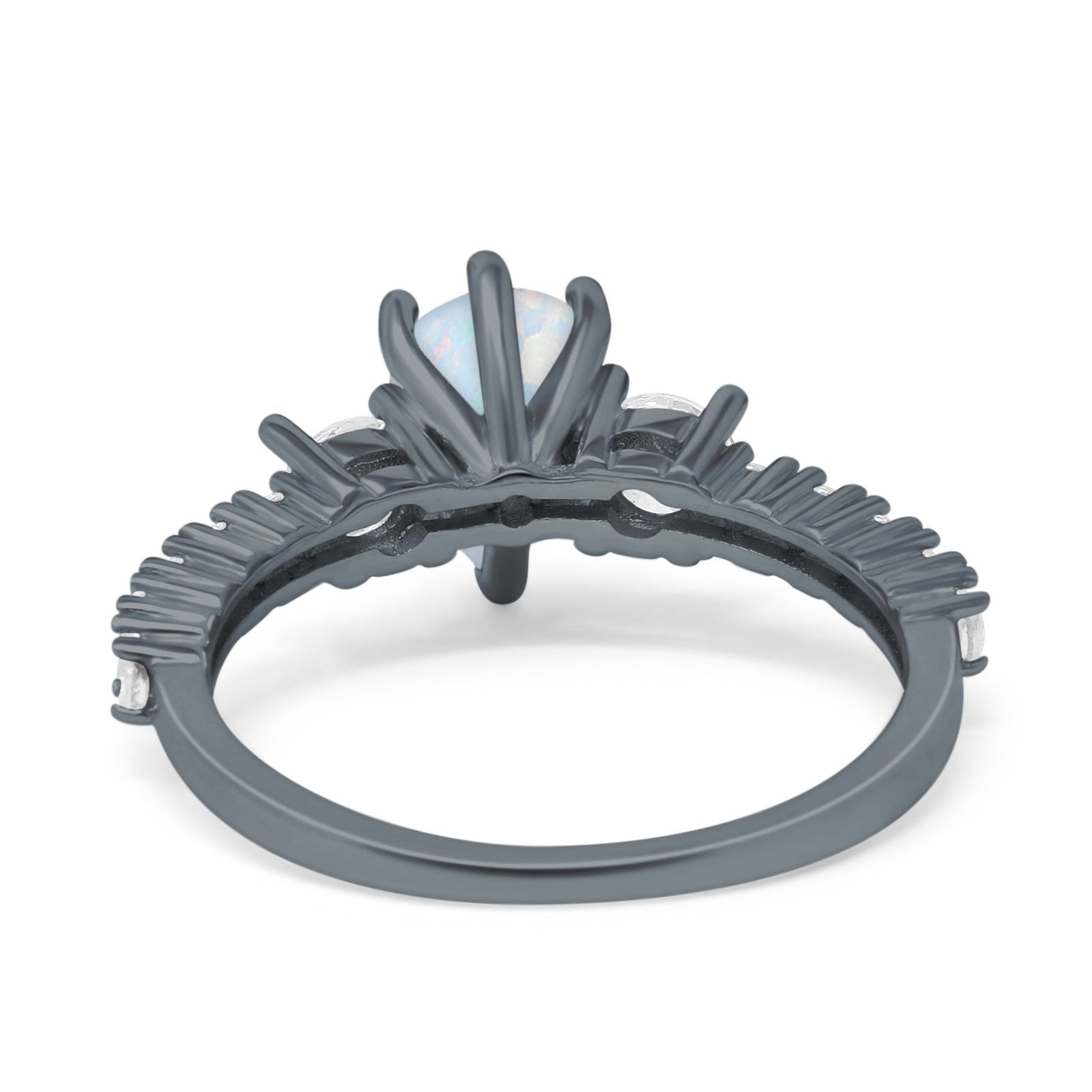 Teardrop Pear Art Deco Three Stone Accent Engagement Ring Round Simulated Simulated Cubic Zirconia 925 Sterling Silver