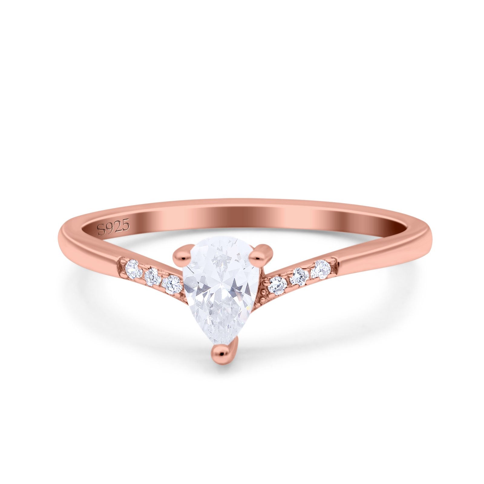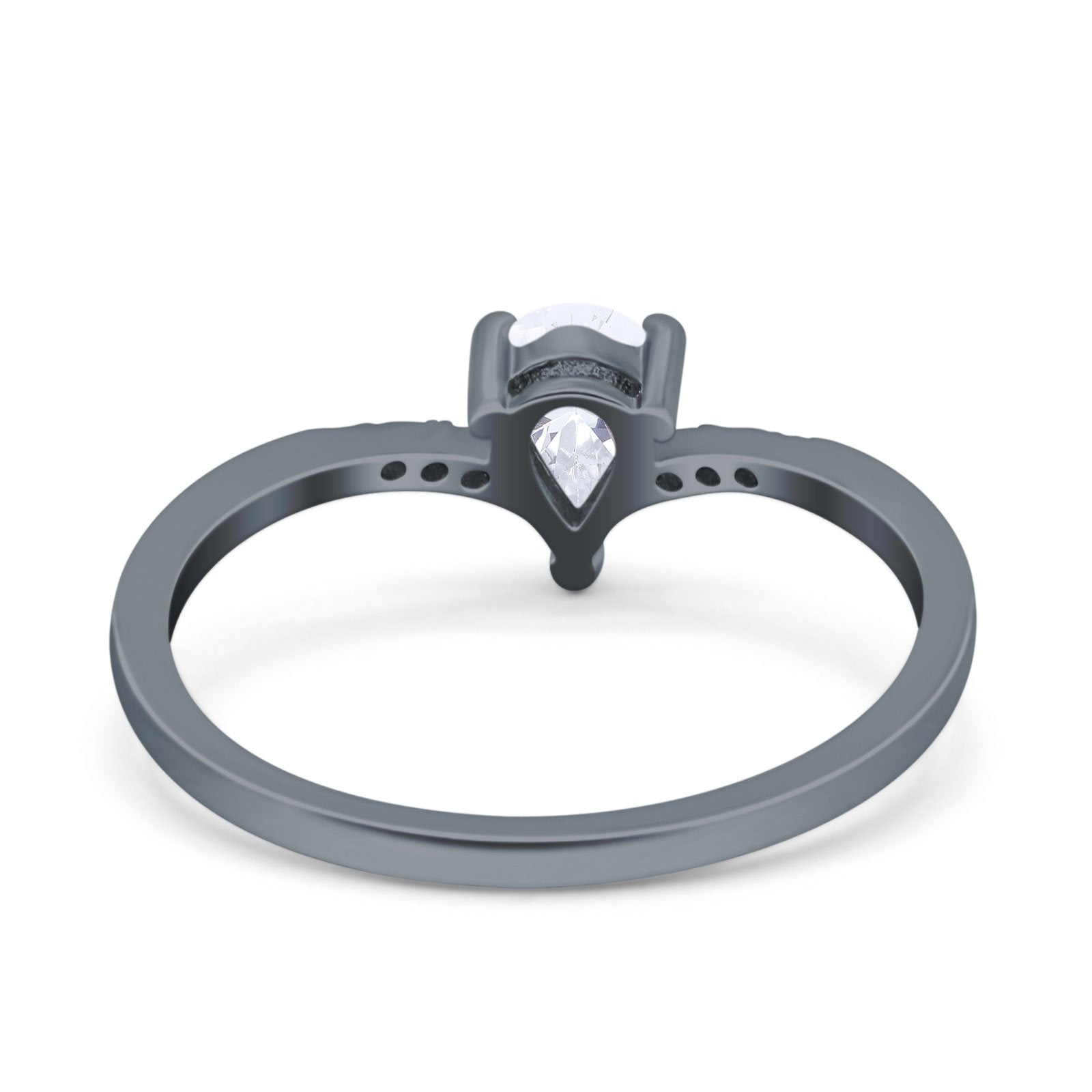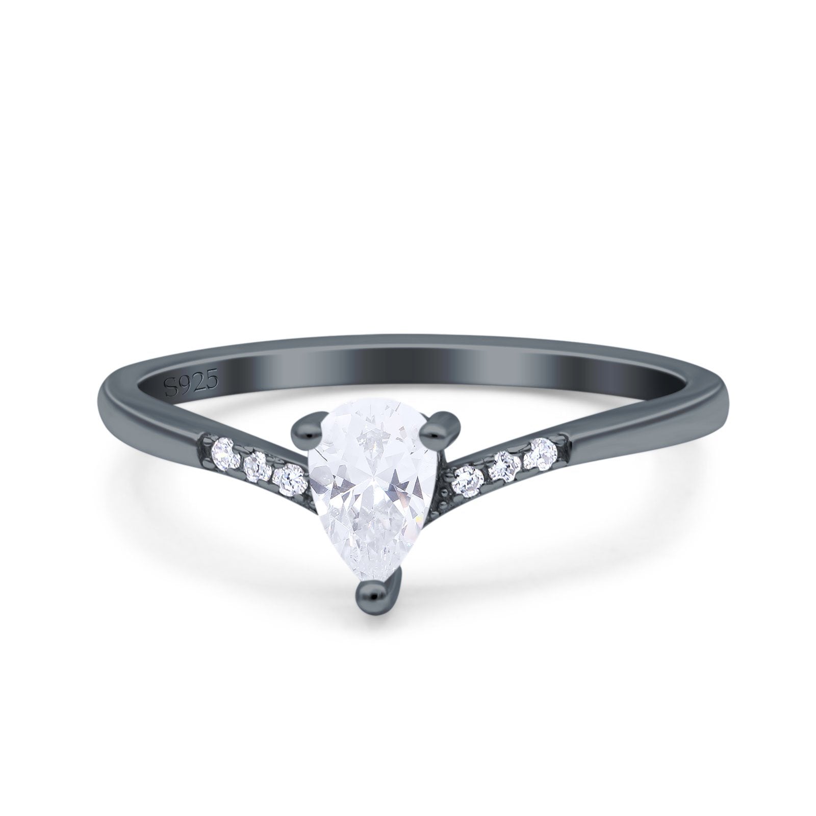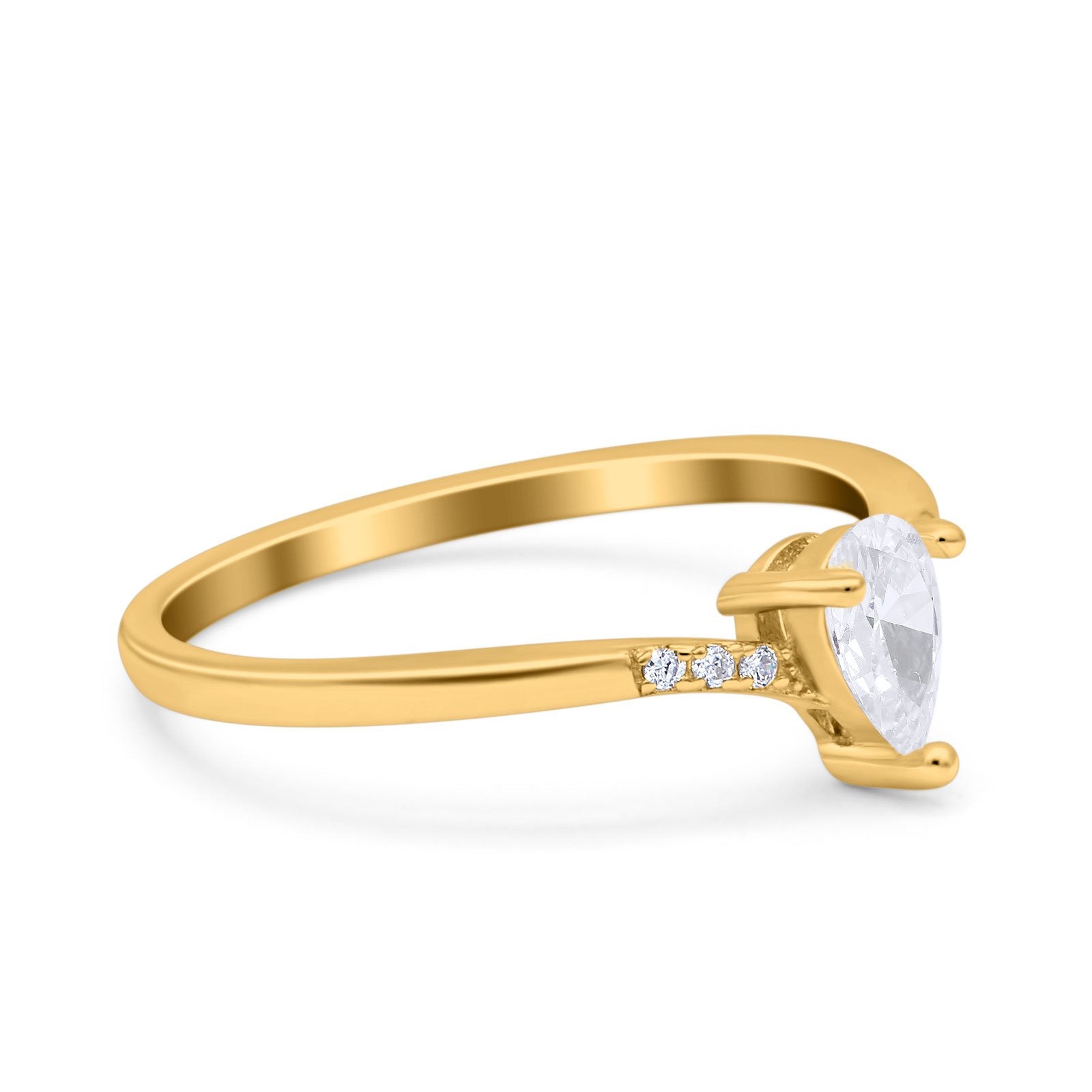 Teardrop Pear Art Deco Wedding Bridal Engagement Ring Round Simulated Cubic Zirconia 925 Sterling Silver