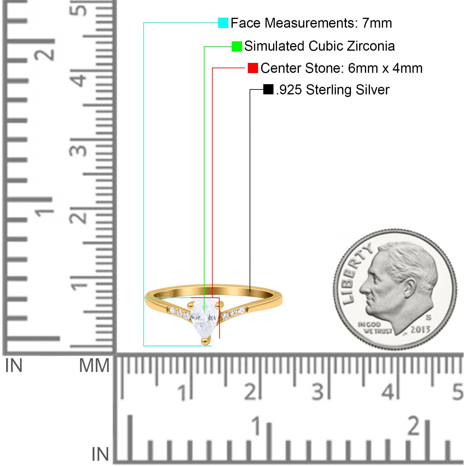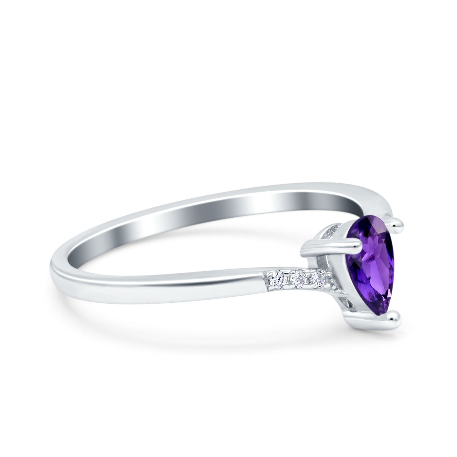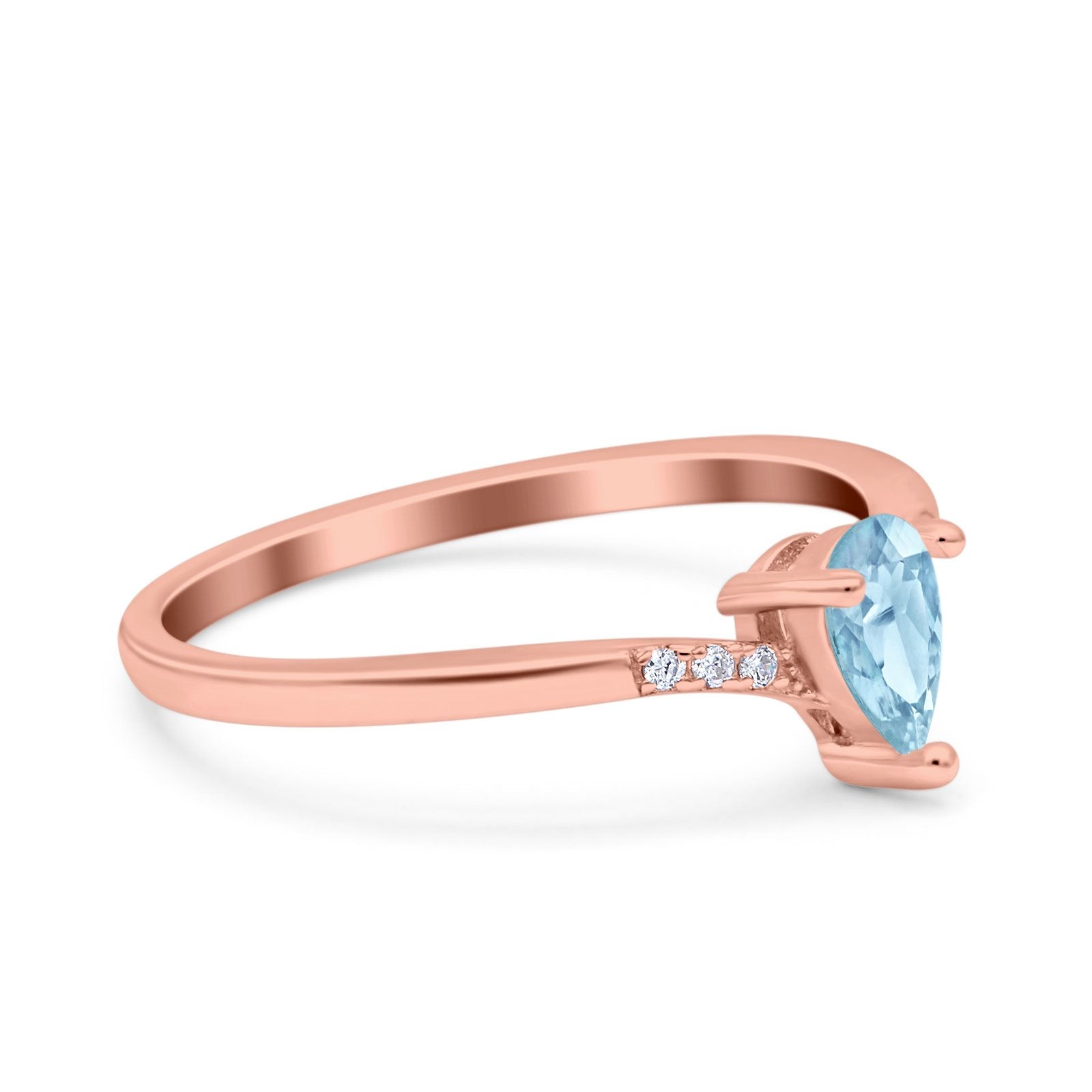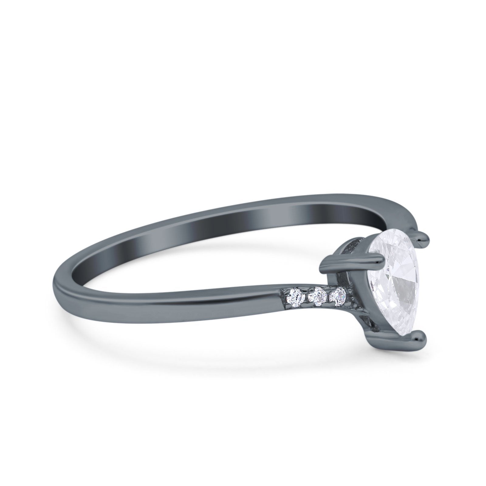 Teardrop Pear Art Deco Wedding Bridal Engagement Ring Round Simulated Cubic Zirconia 925 Sterling Silver