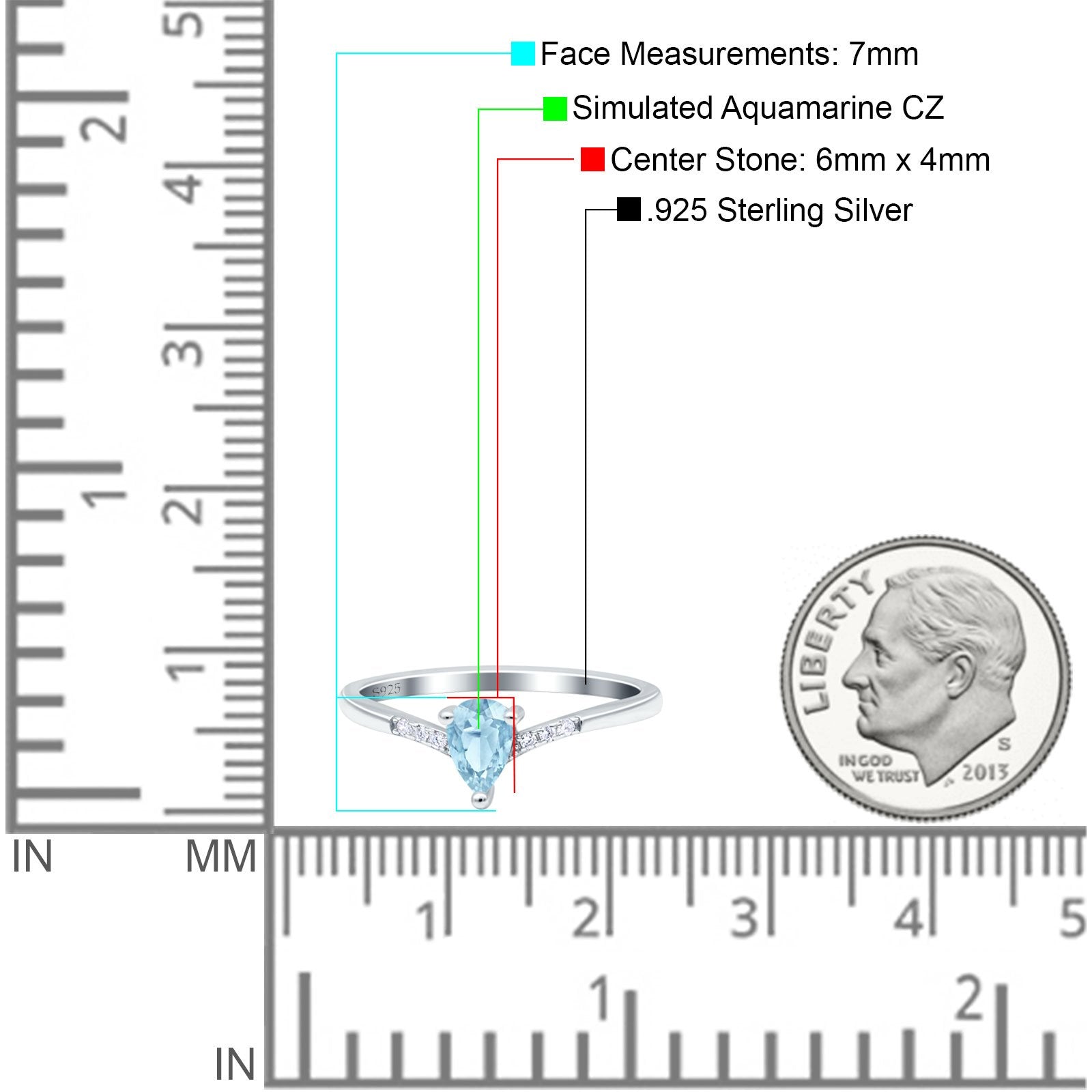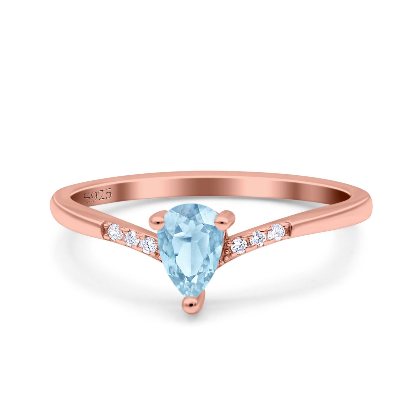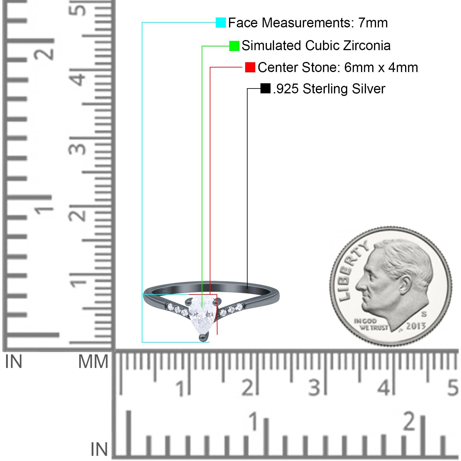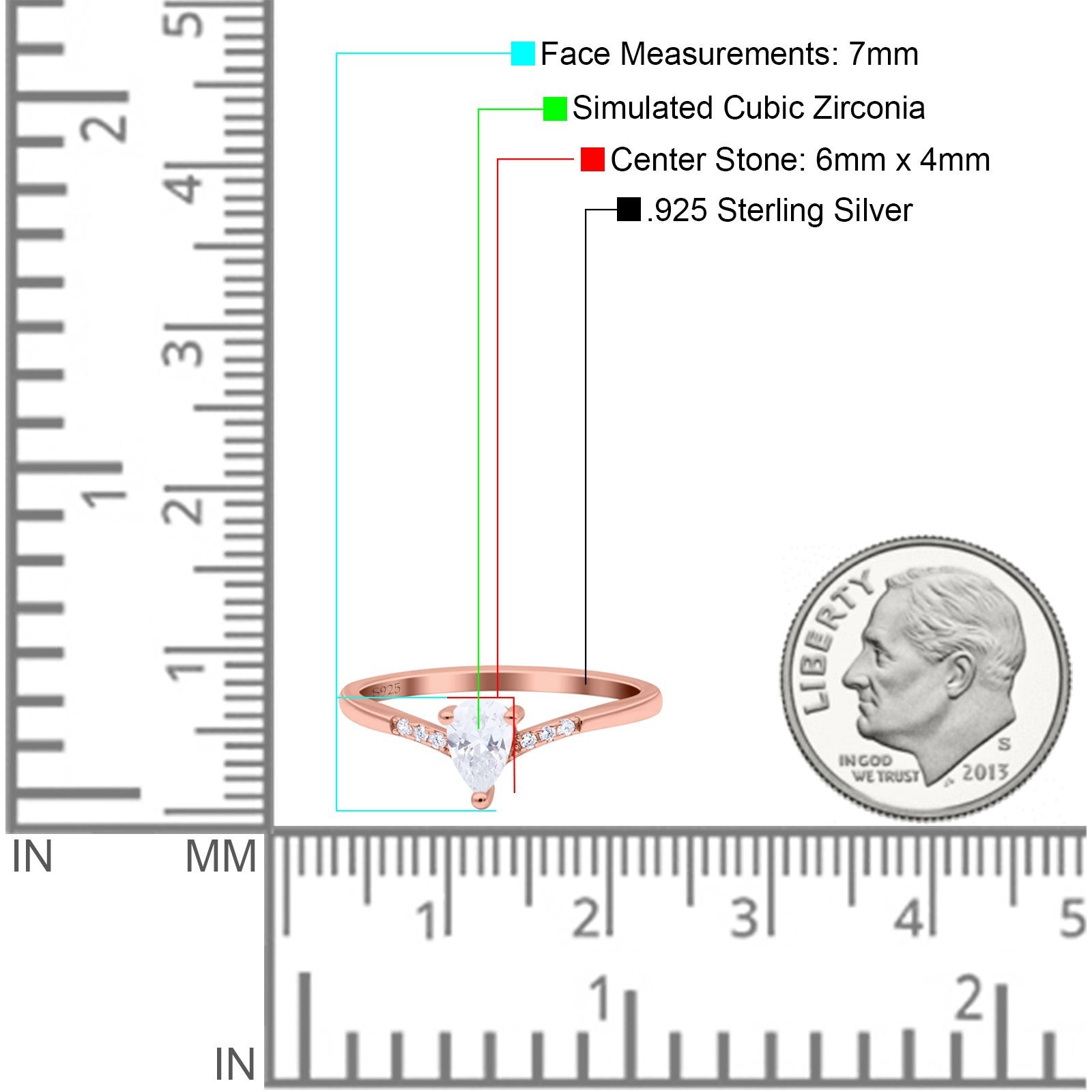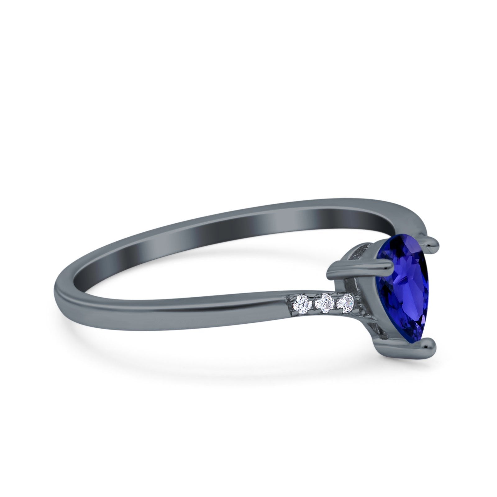 Teardrop Pear Art Deco Wedding Bridal Engagement Ring Round Simulated Cubic Zirconia 925 Sterling Silver