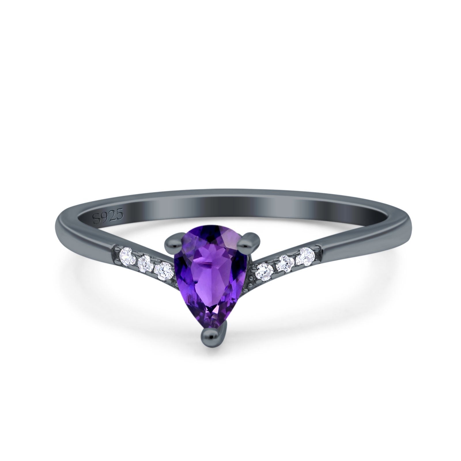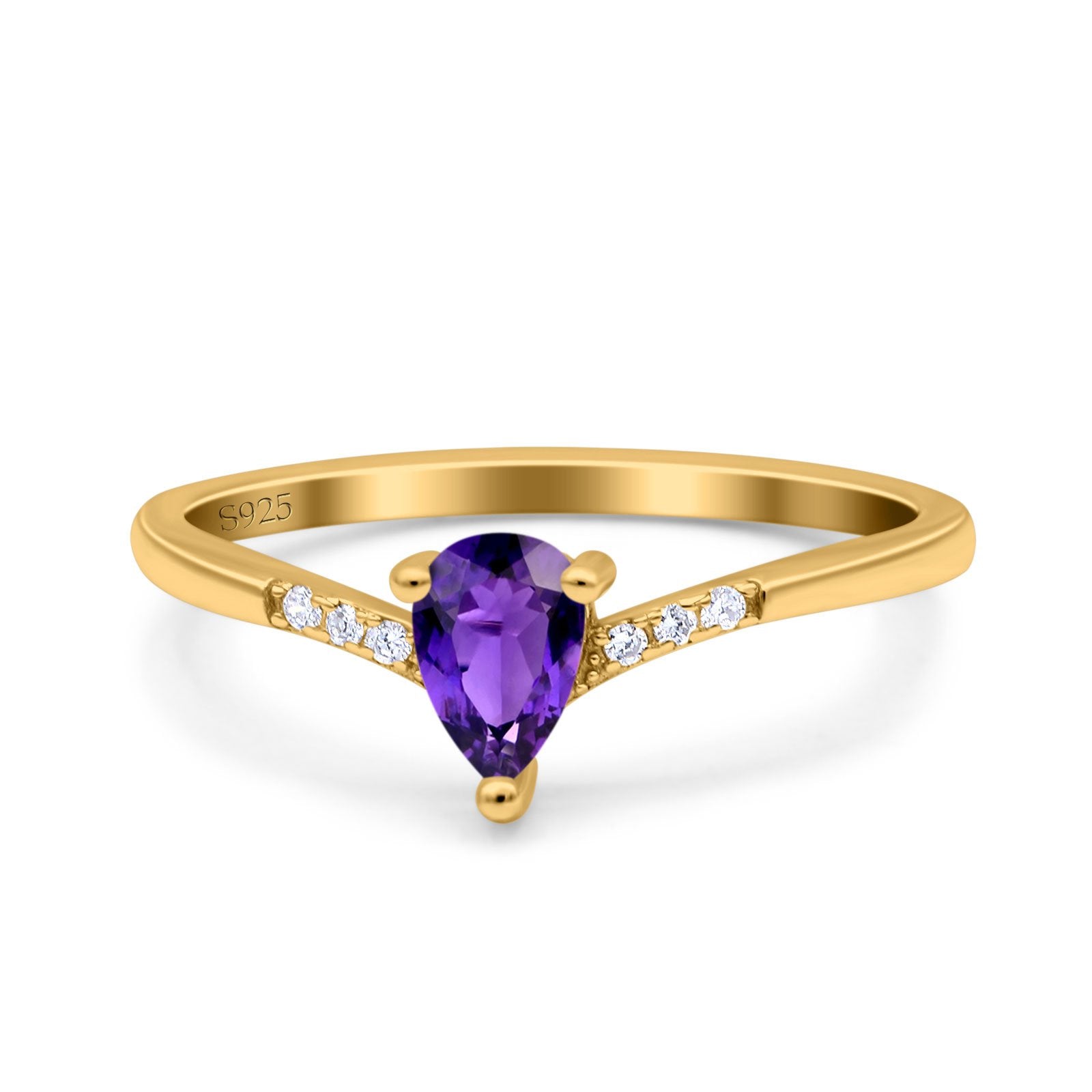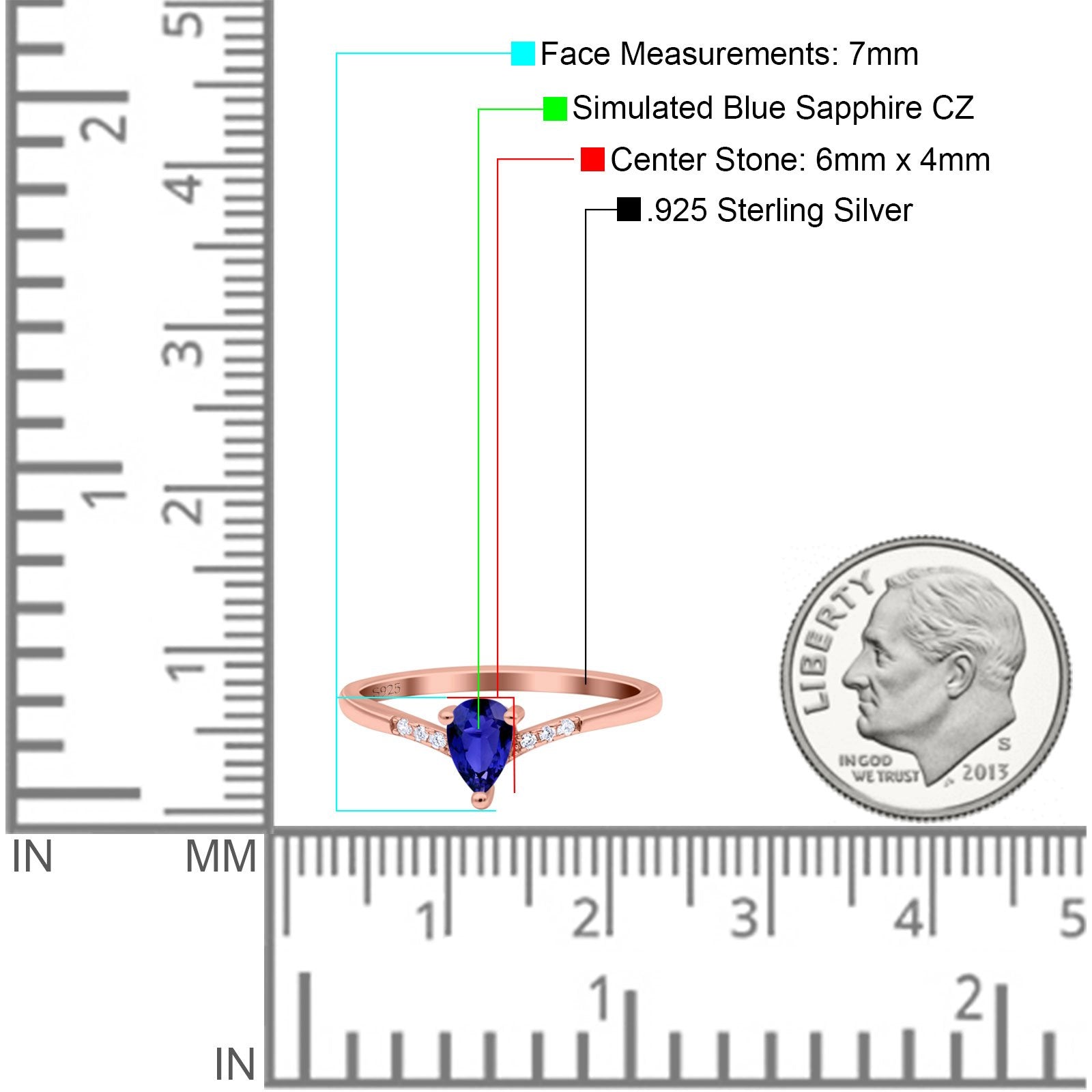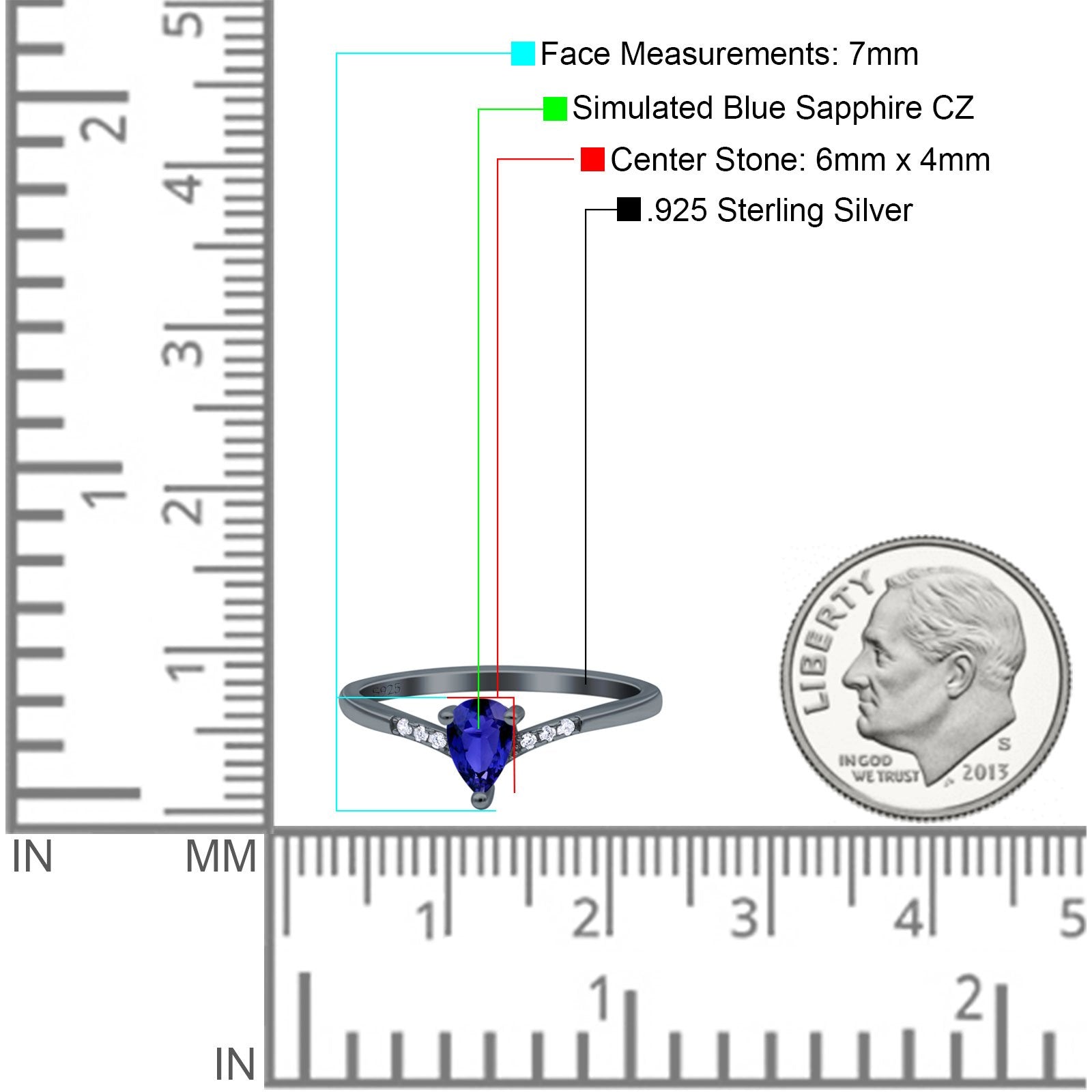 Teardrop Pear Art Deco Wedding Bridal Engagement Ring Round Simulated Cubic Zirconia 925 Sterling Silver